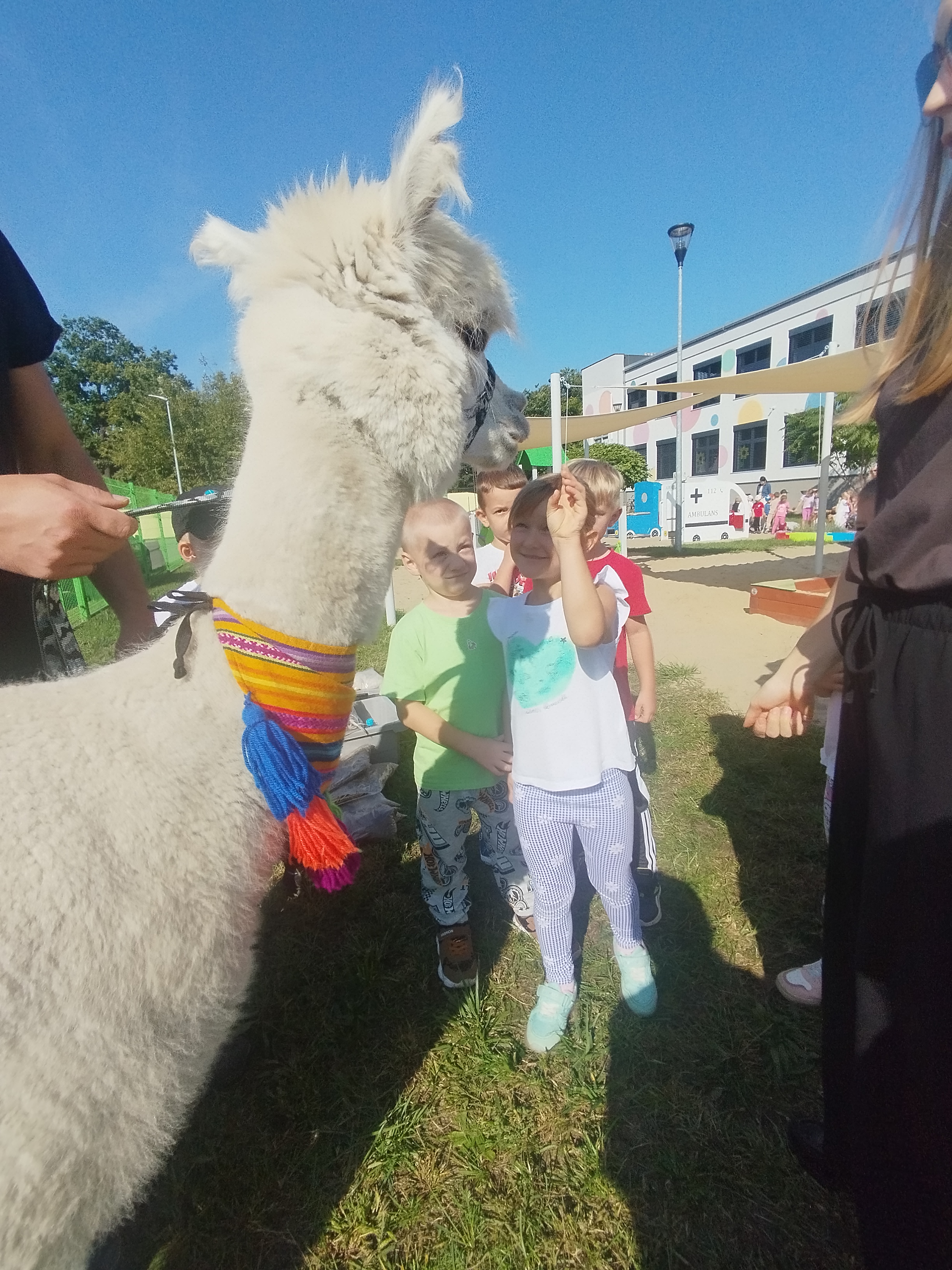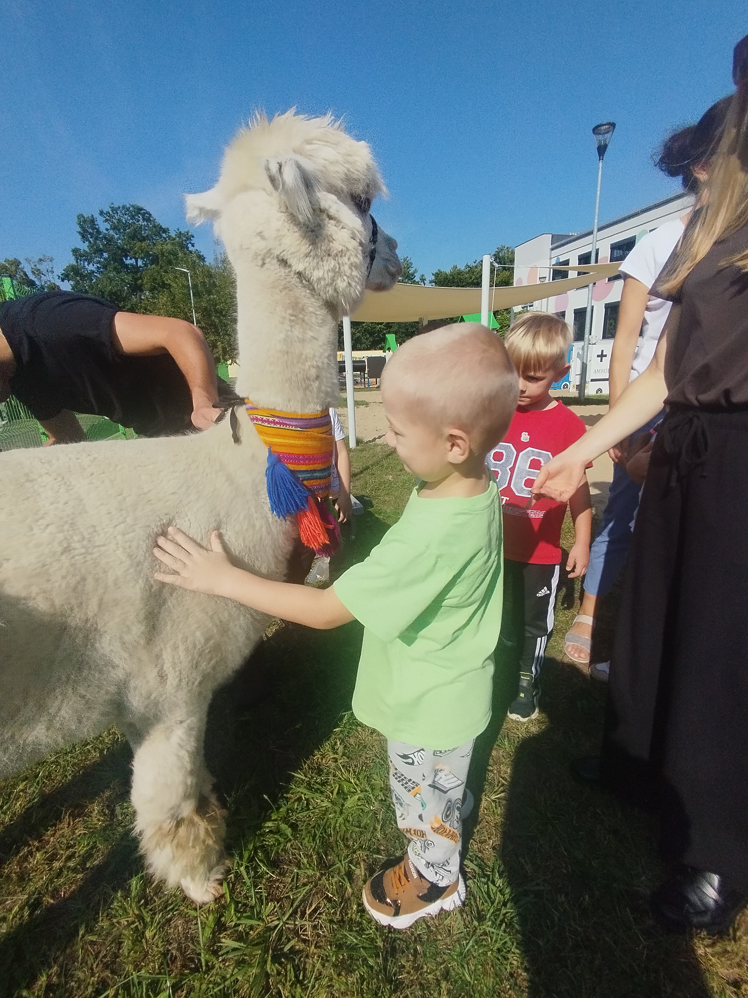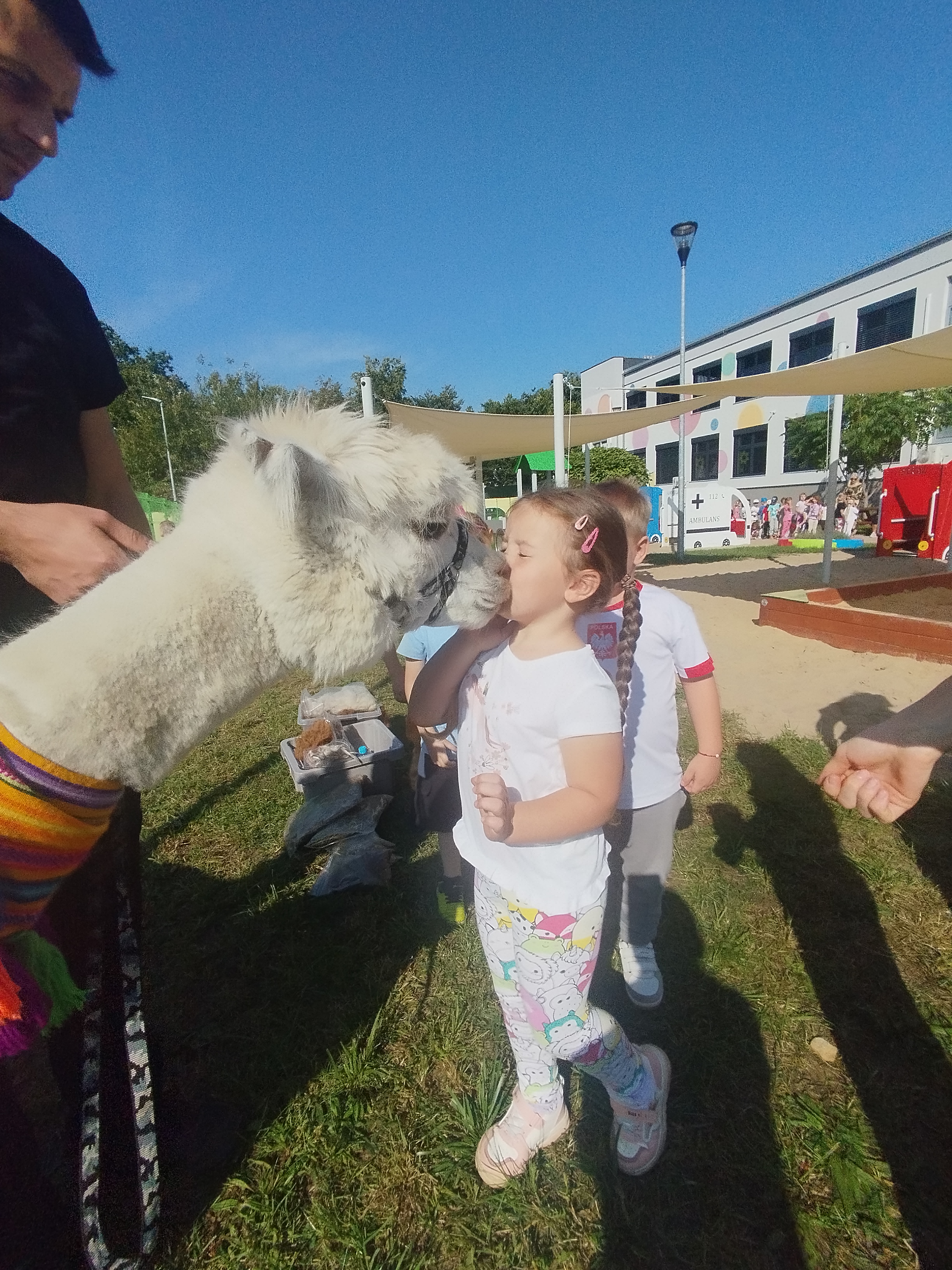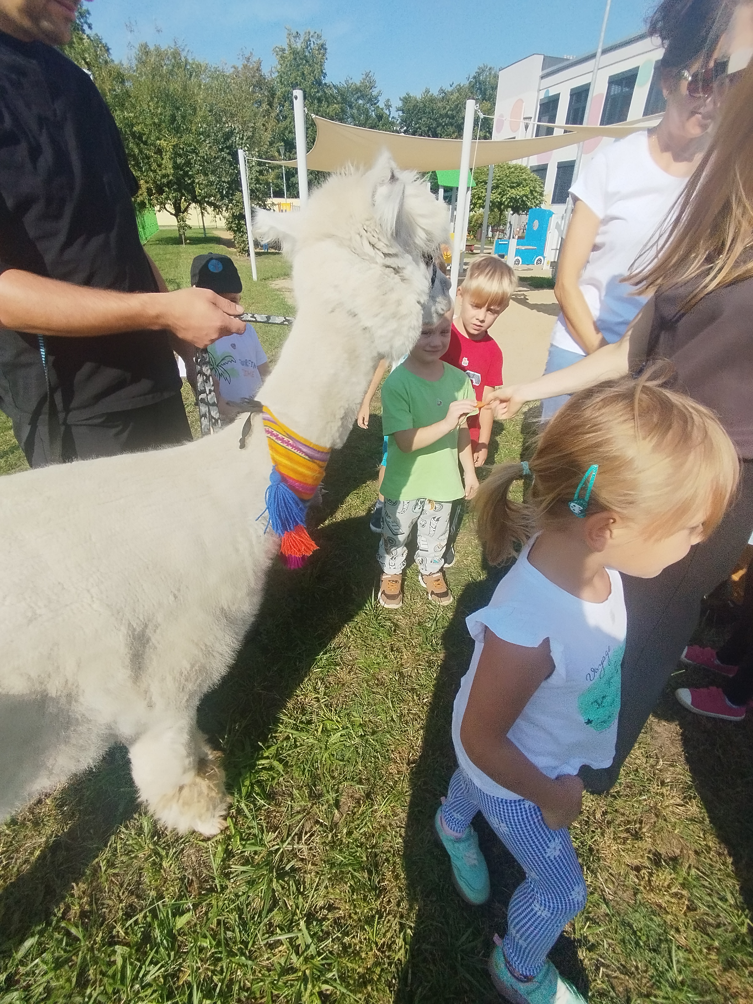 Wczoraj nasze przedszkole odwiedzili specjalni goście, byli to Leon i Śnieżek. Alpaki były bardzo przyjazne i mięciutkie. Dowiedzieliśmy się co lubią jeść i co można wykonać z ich futerka.