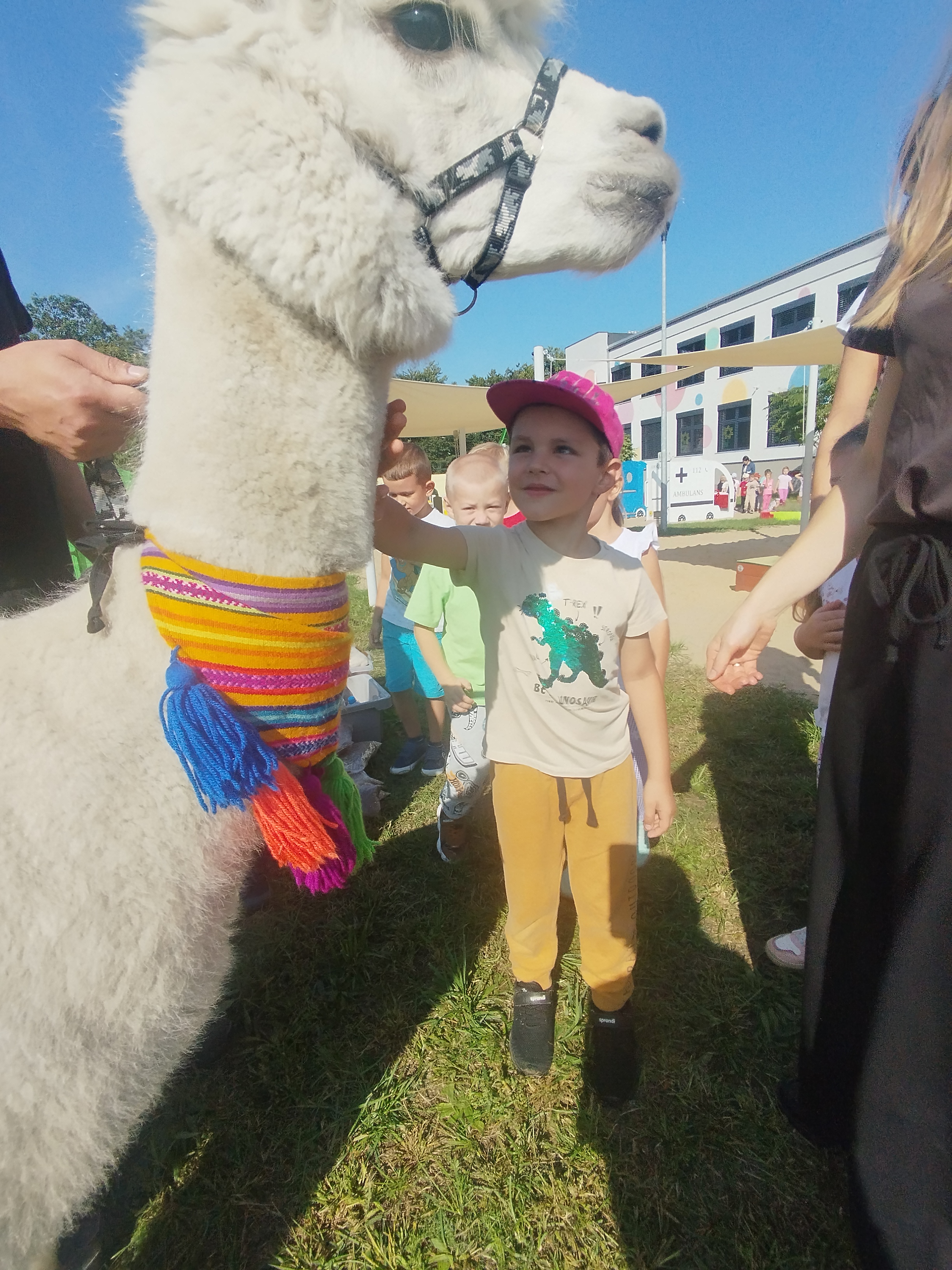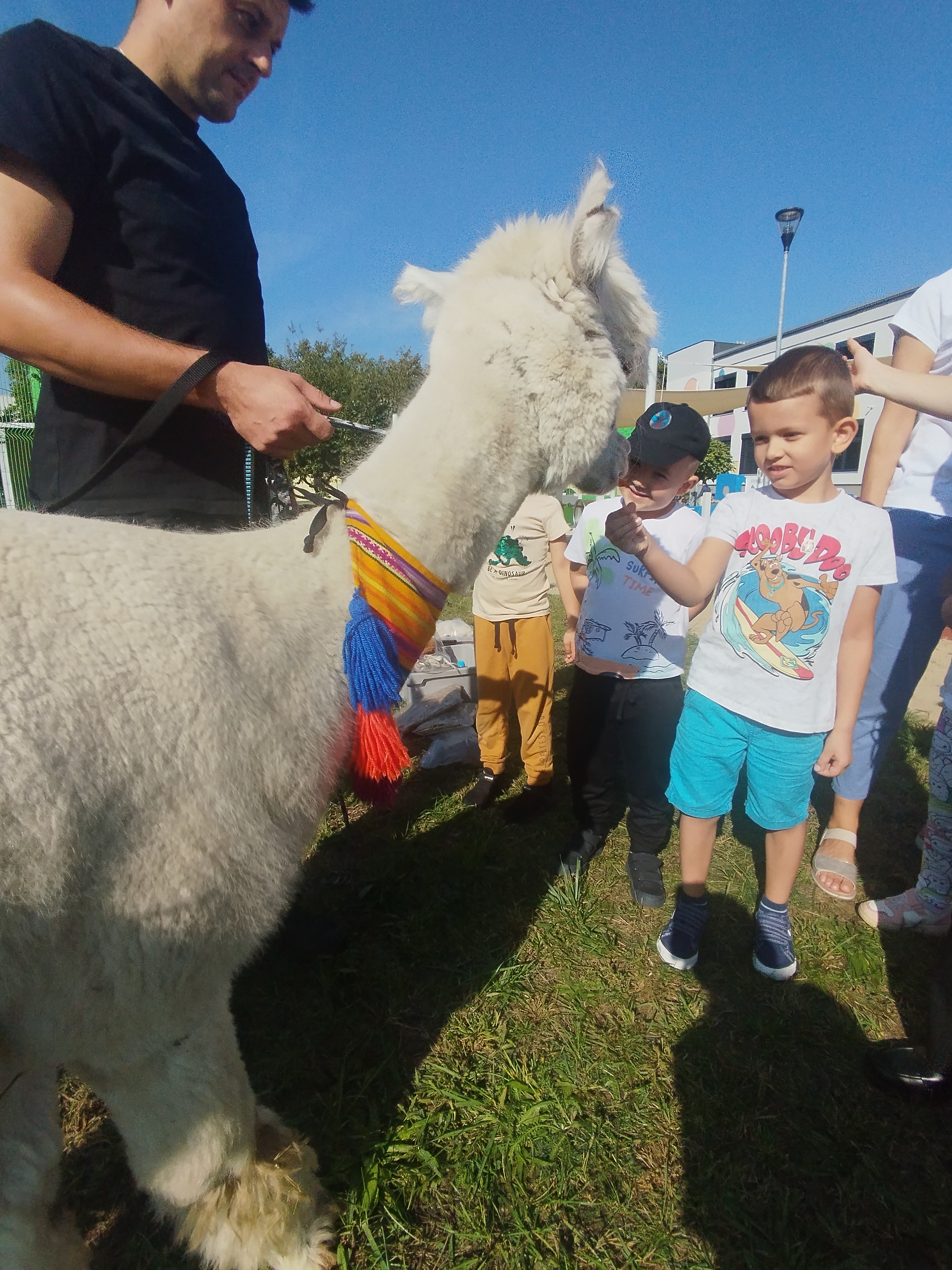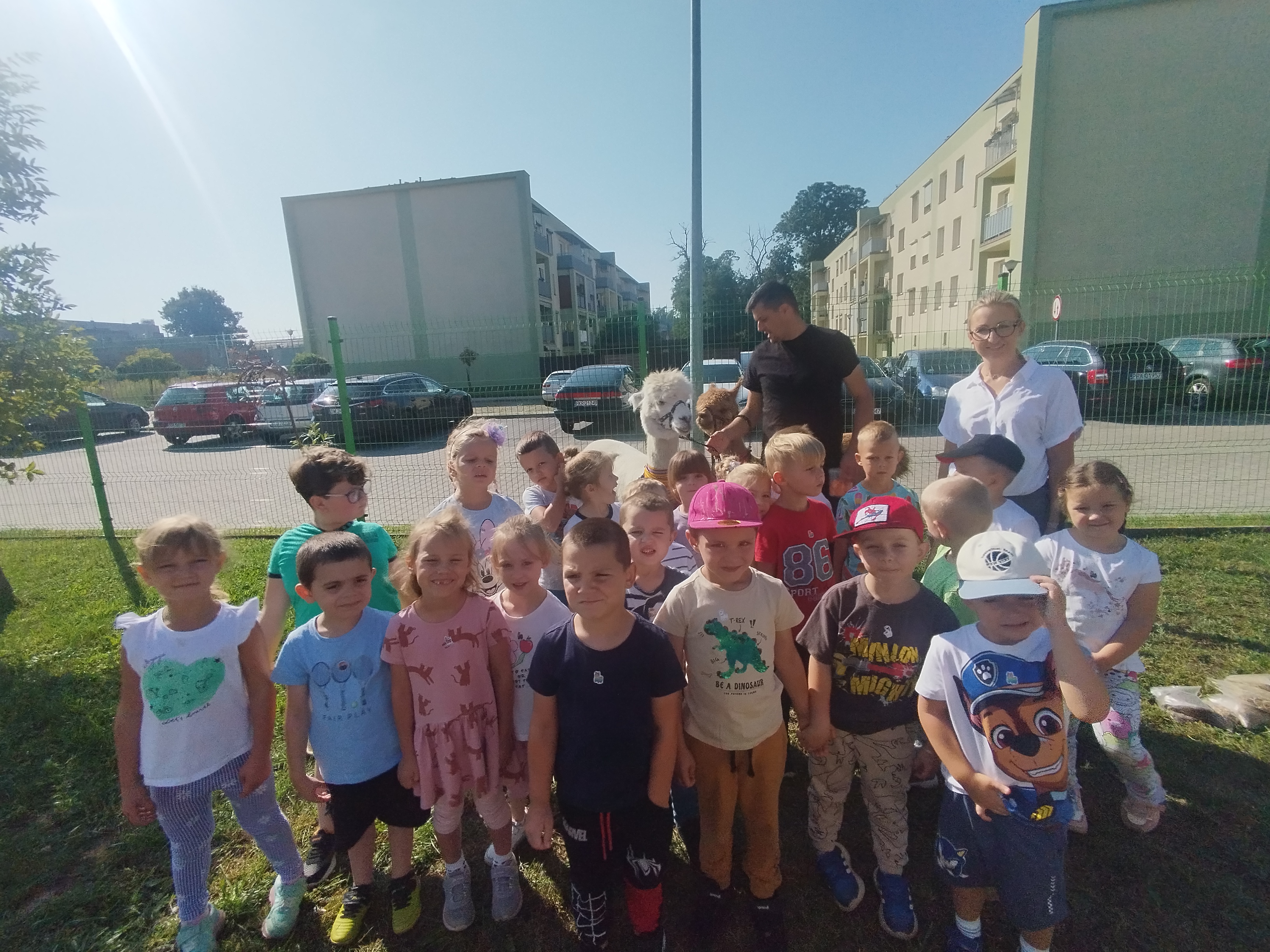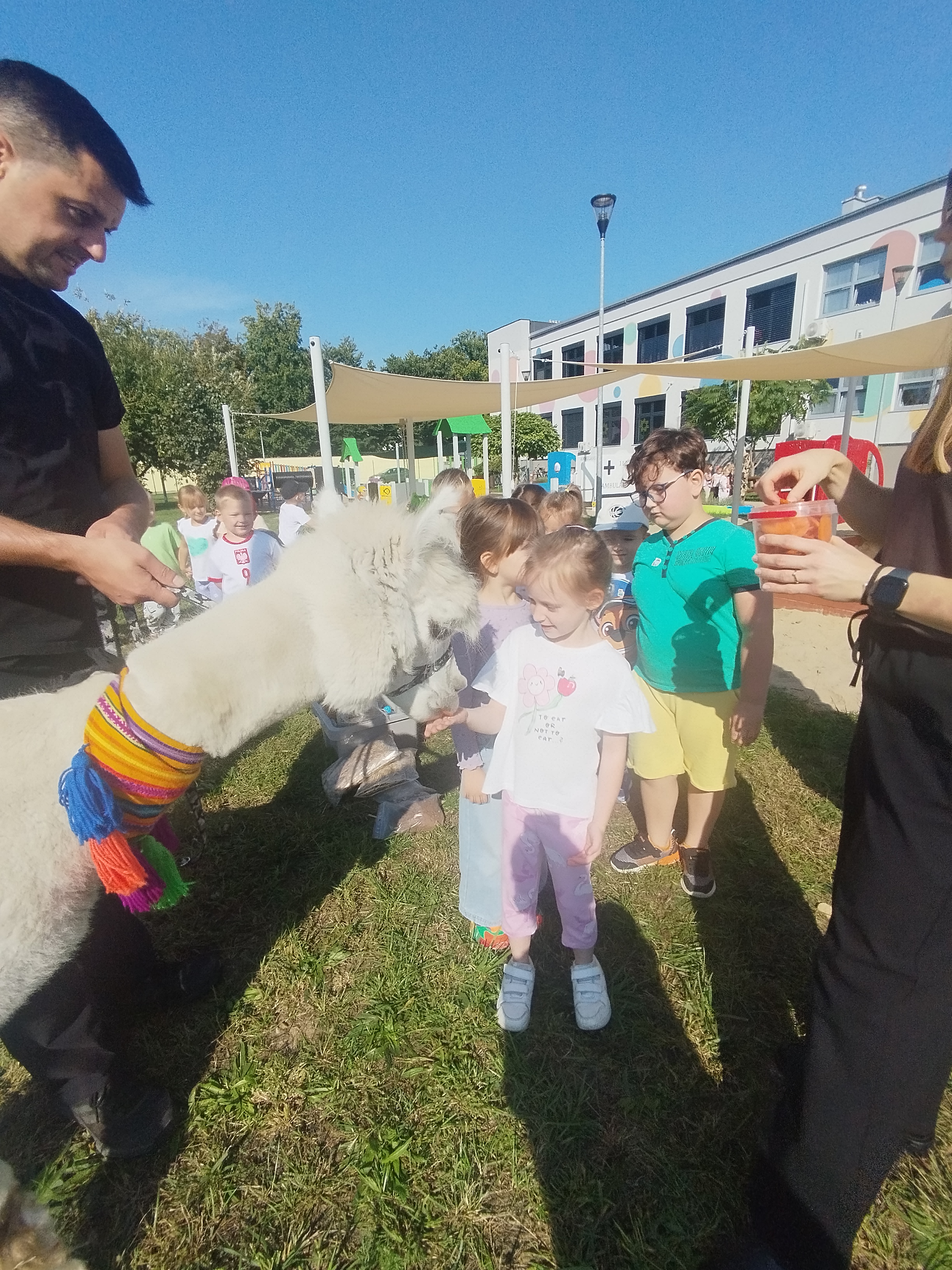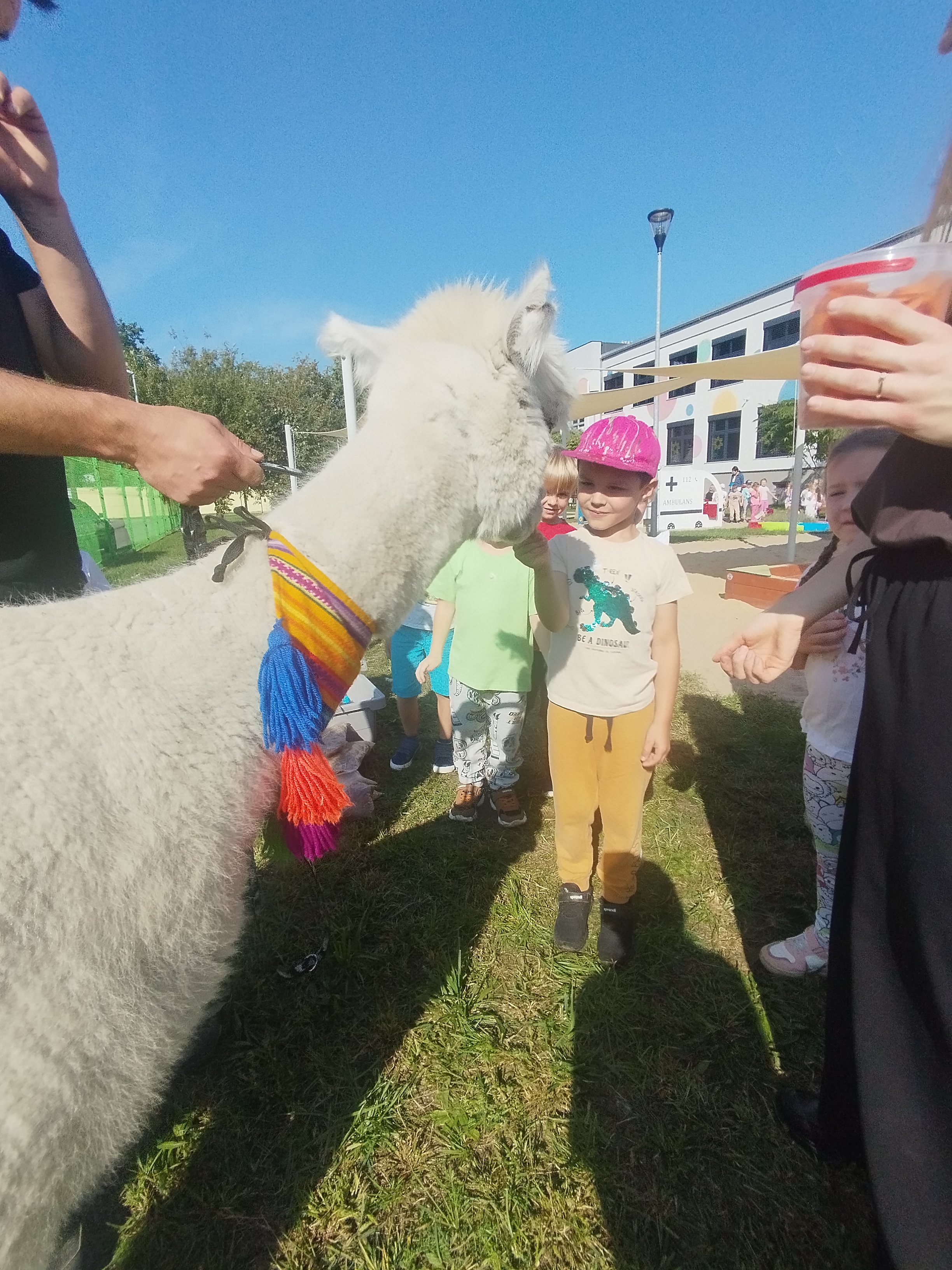 Wczoraj nasze przedszkole odwiedzili specjalni goście, byli to Leon i Śnieżek. Alpaki były bardzo przyjazne i mięciutkie. Dowiedzieliśmy się co lubią jeść i co można wykonać z ich futerka.