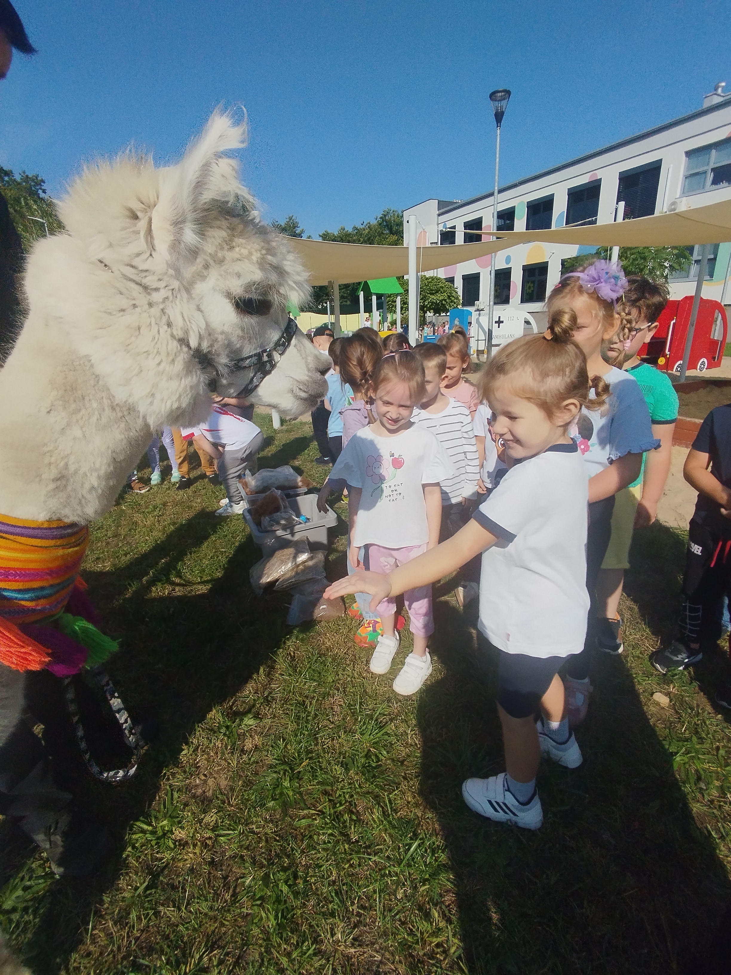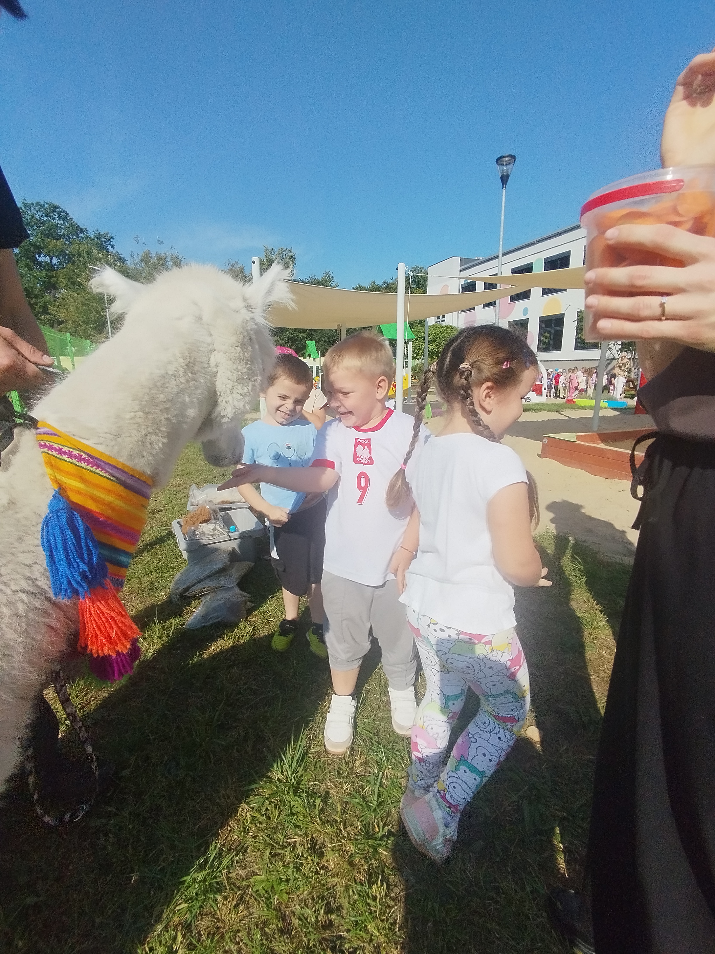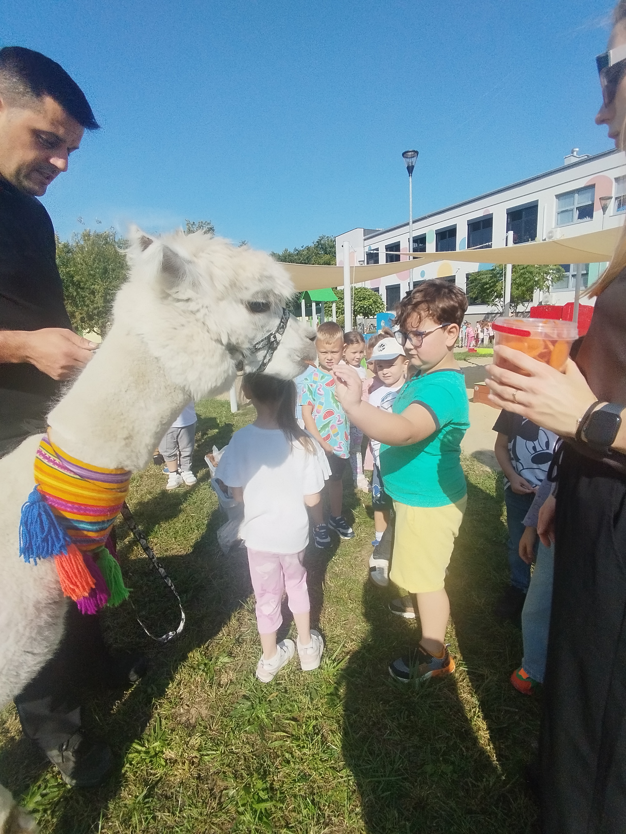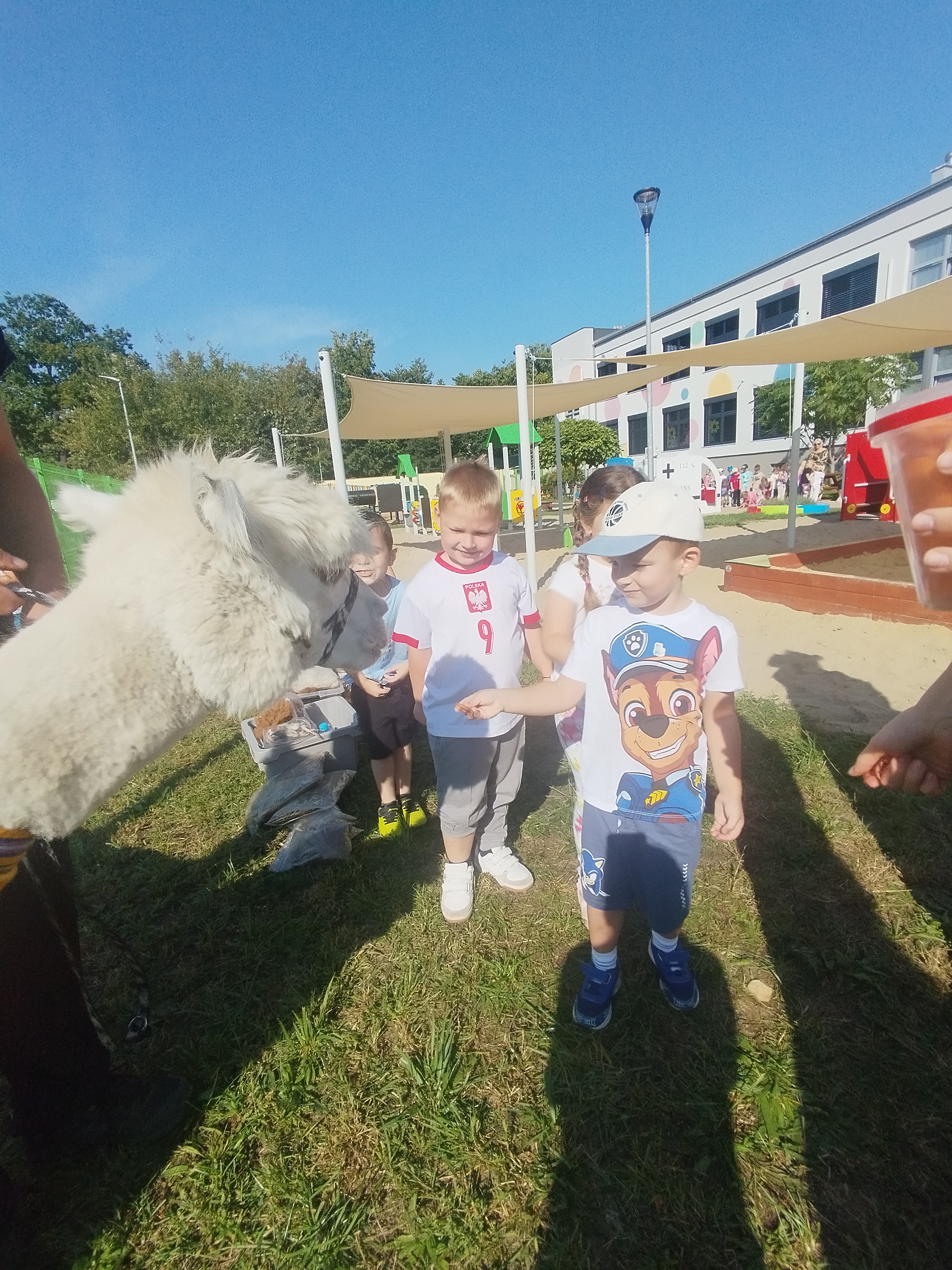 Wczoraj nasze przedszkole odwiedzili specjalni goście, byli to Leon i Śnieżek. Alpaki były bardzo przyjazne i mięciutkie. Dowiedzieliśmy się co lubią jeść i co można wykonać z ich futerka.