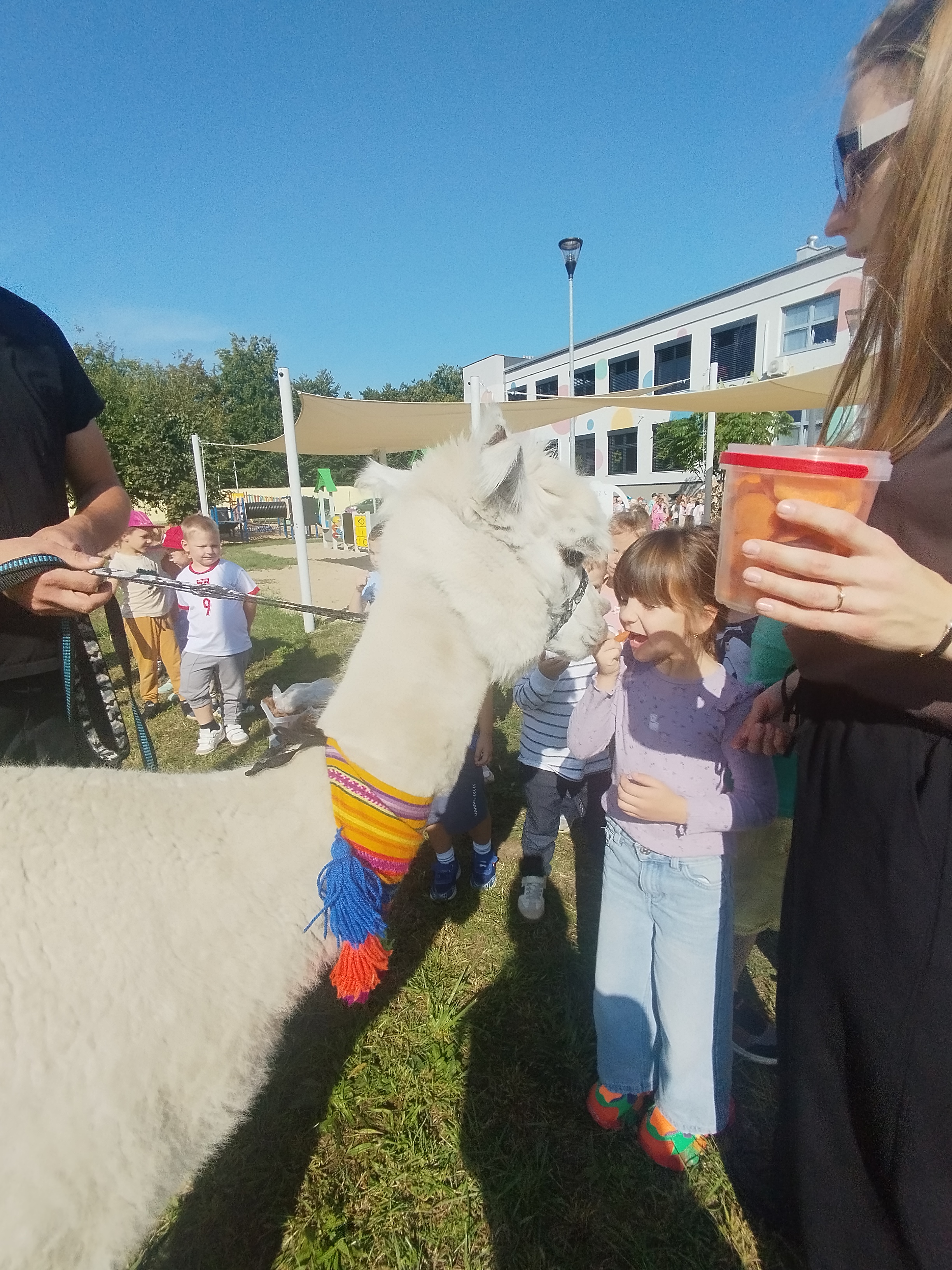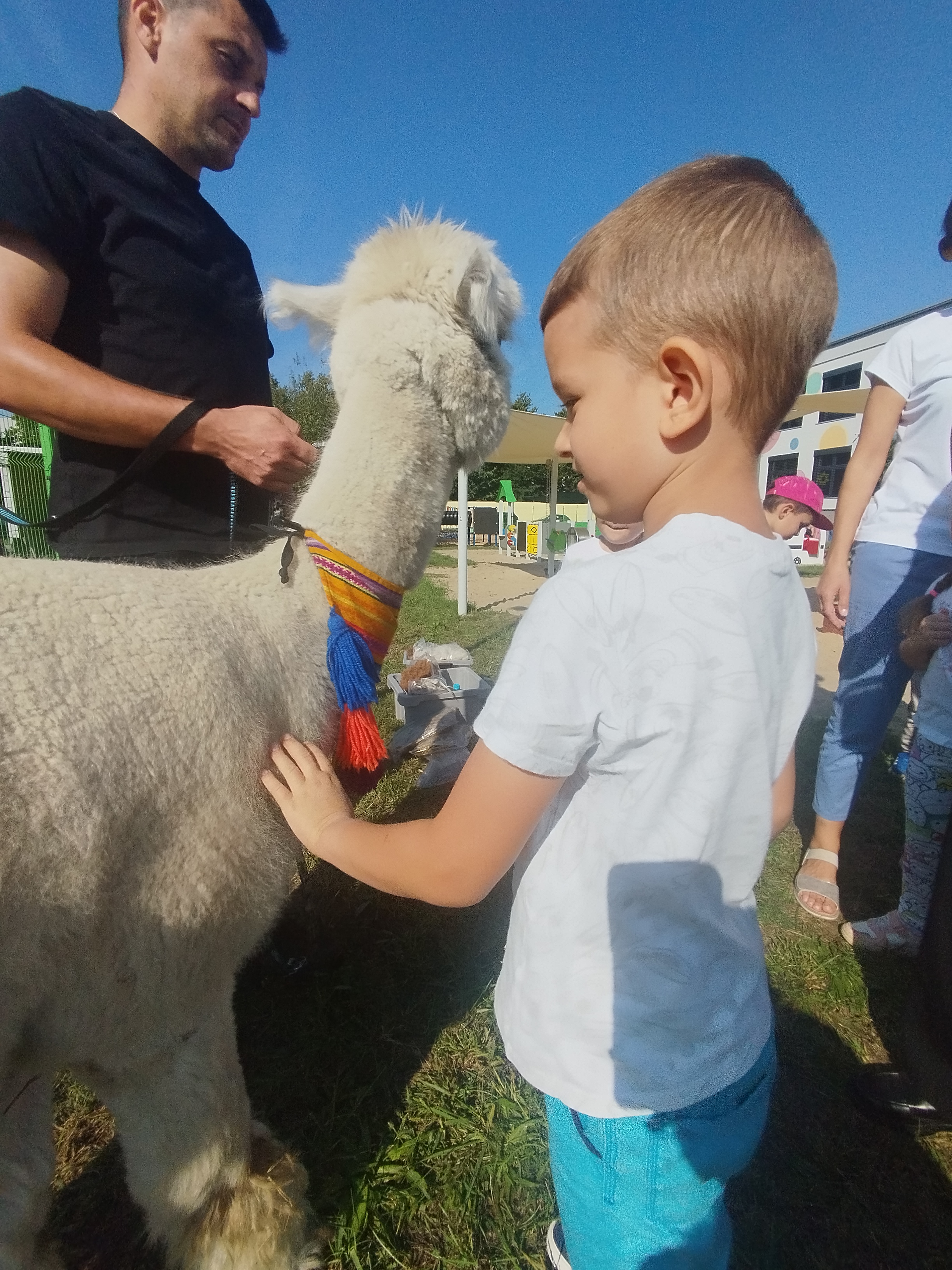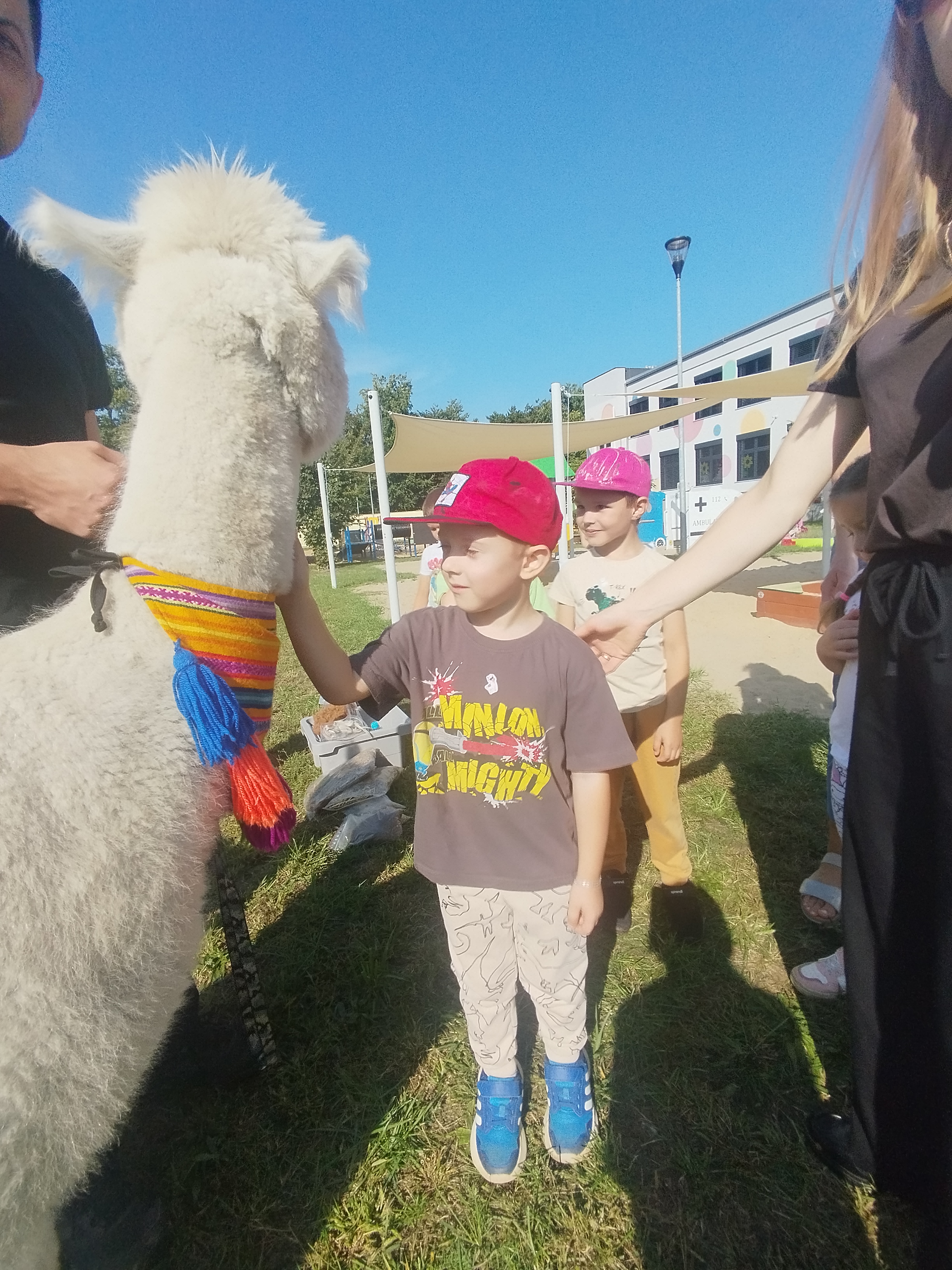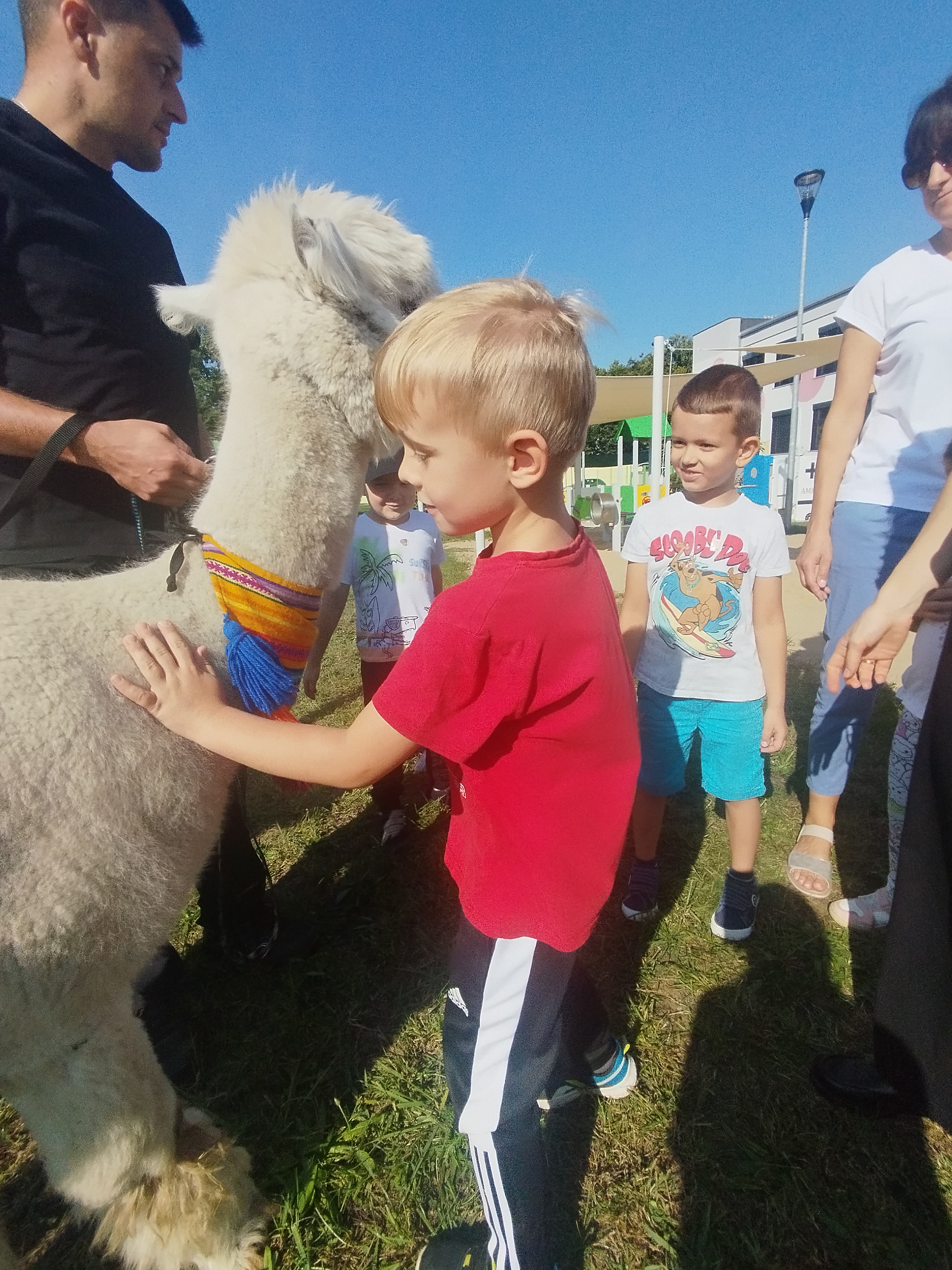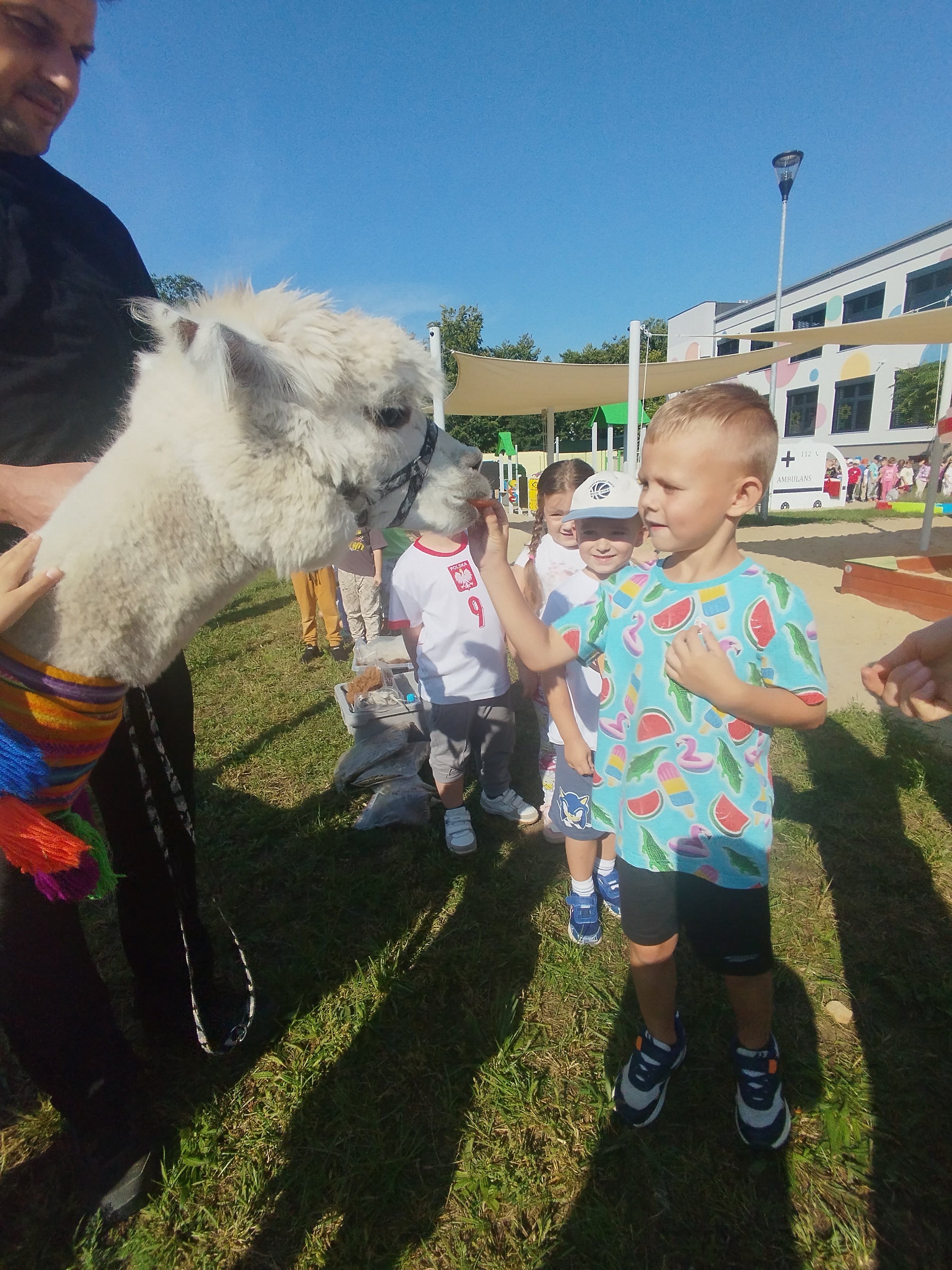 Wczoraj nasze przedszkole odwiedzili specjalni goście, byli to Leon i Śnieżek. Alpaki były bardzo przyjazne i mięciutkie. Dowiedzieliśmy się co lubią jeść i co można wykonać z ich futerka.