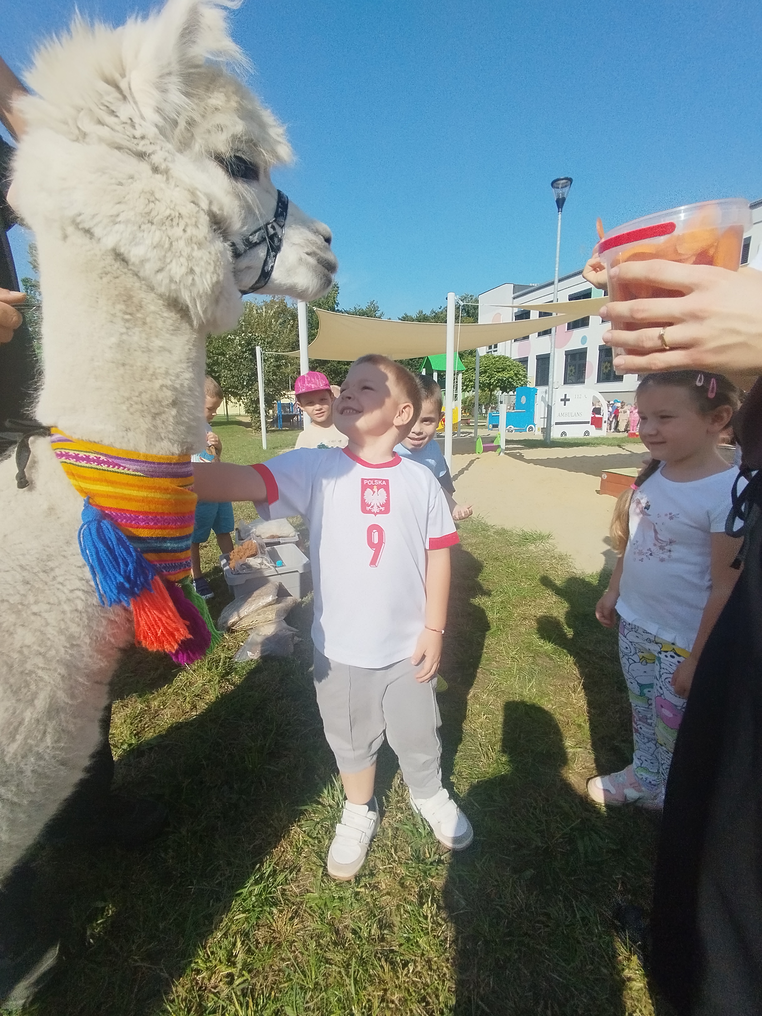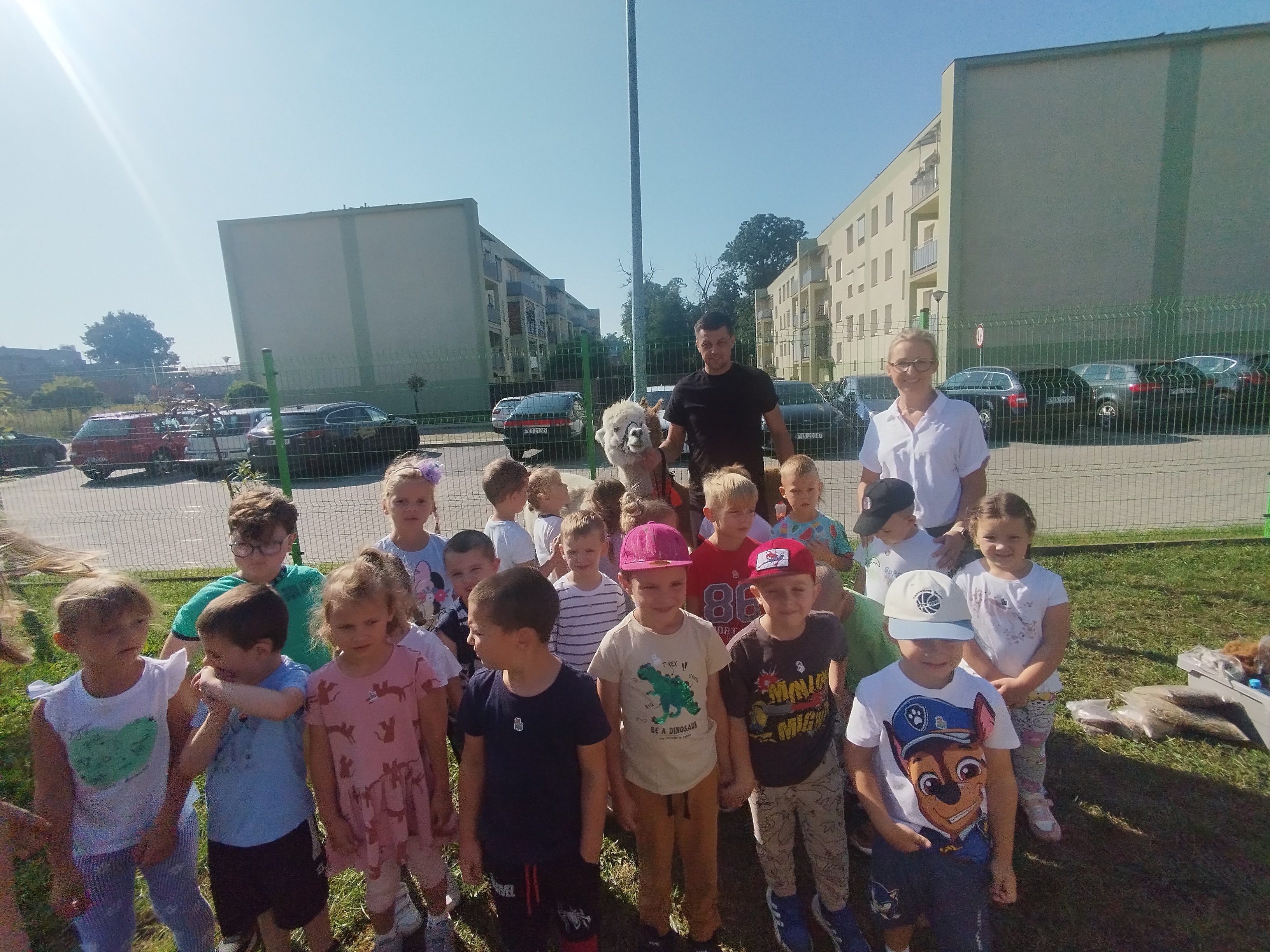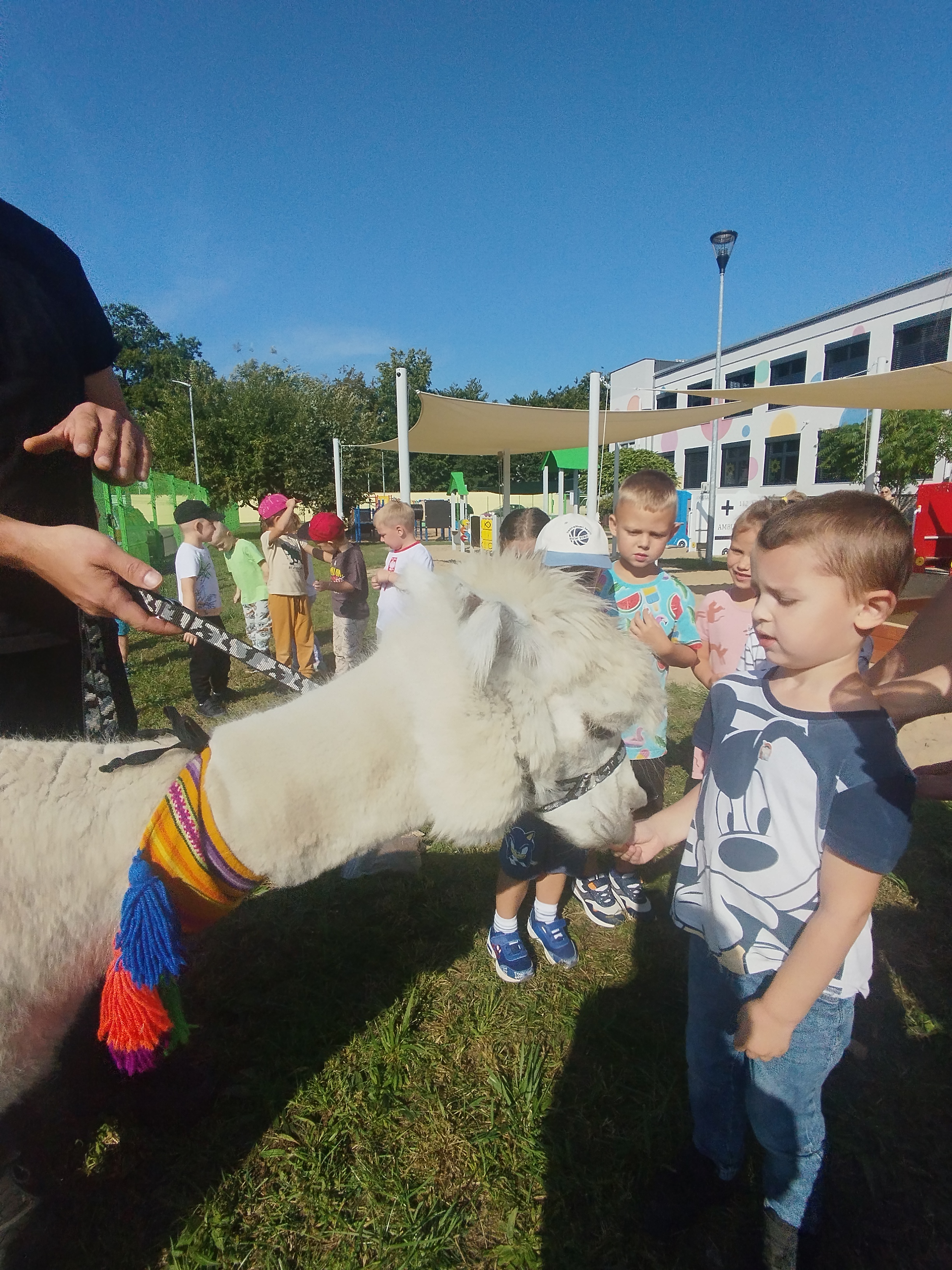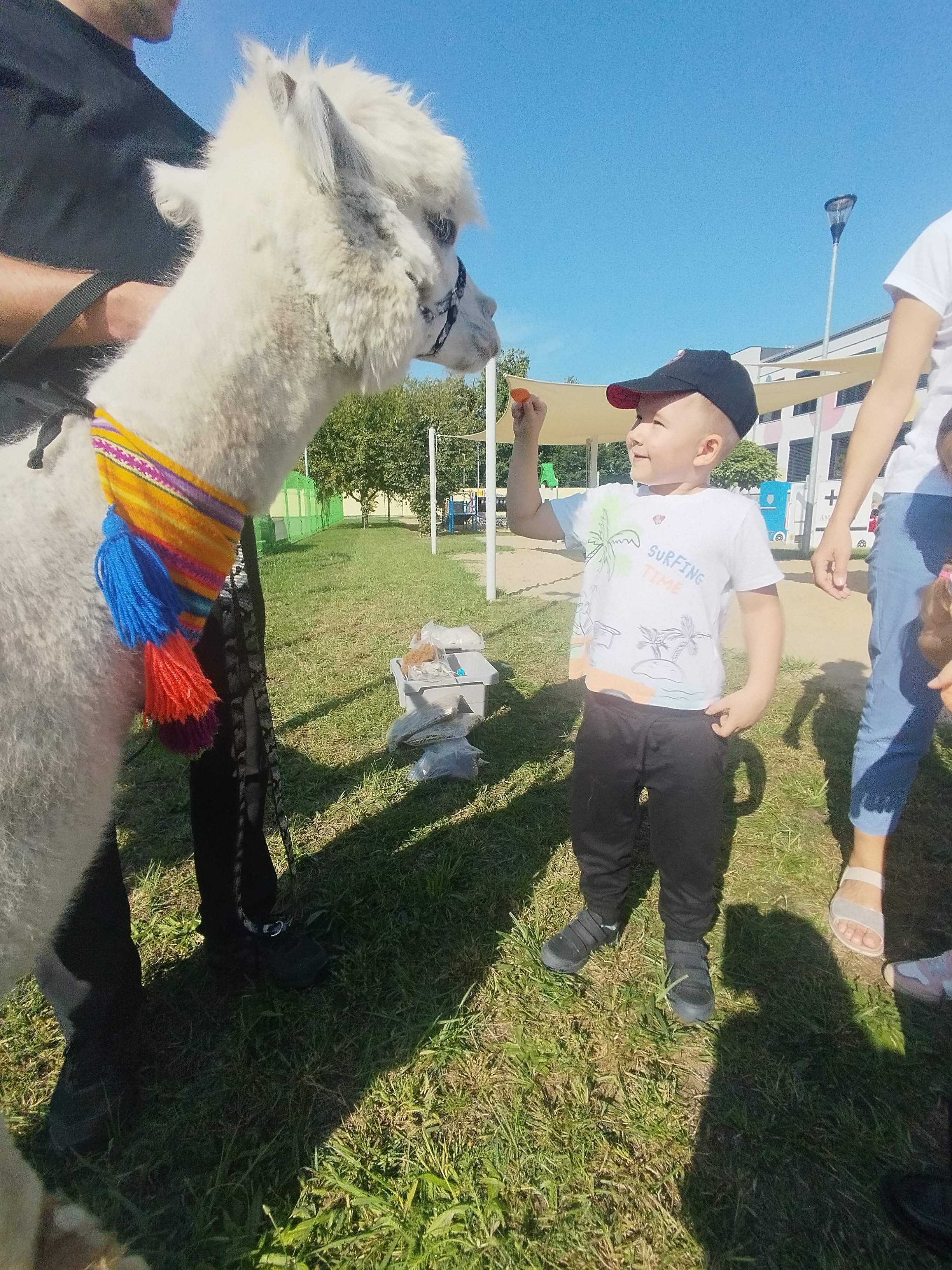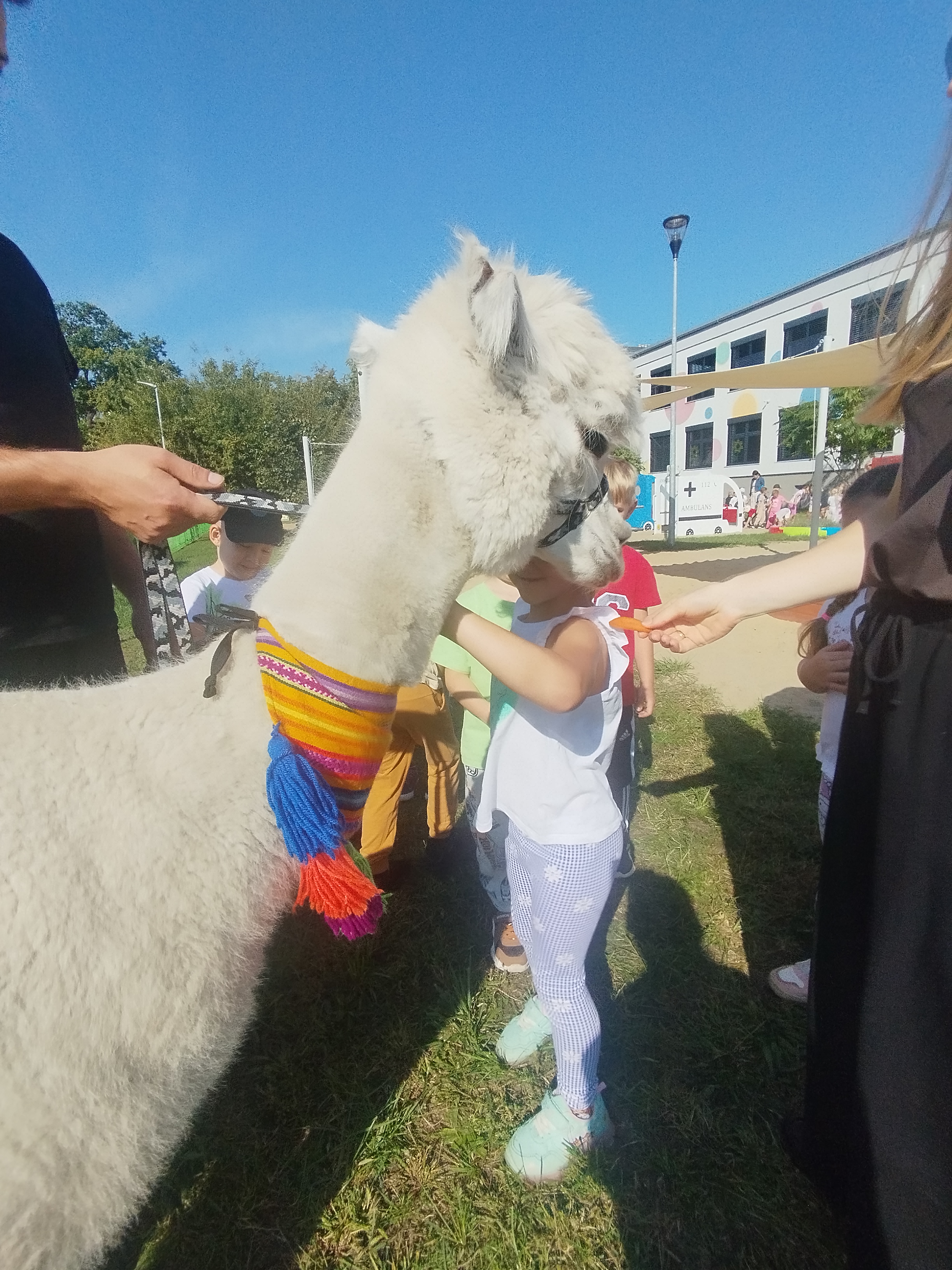 Wczoraj nasze przedszkole odwiedzili specjalni goście, byli to Leon i Śnieżek. Alpaki były bardzo przyjazne i mięciutkie. Dowiedzieliśmy się co lubią jeść i co można wykonać z ich futerka.