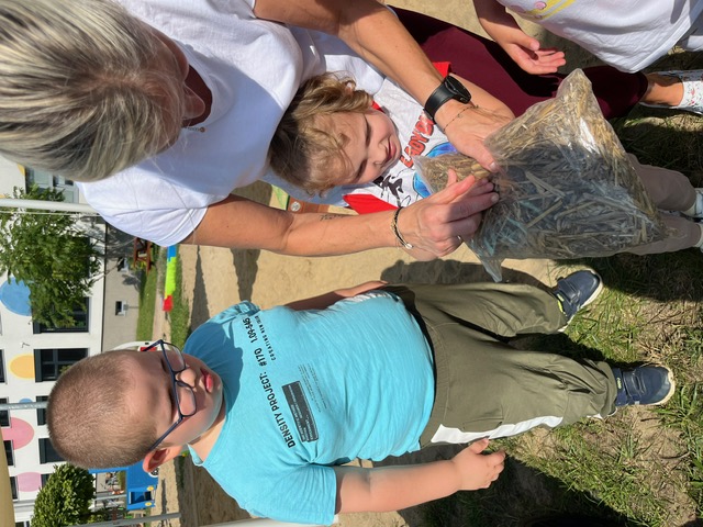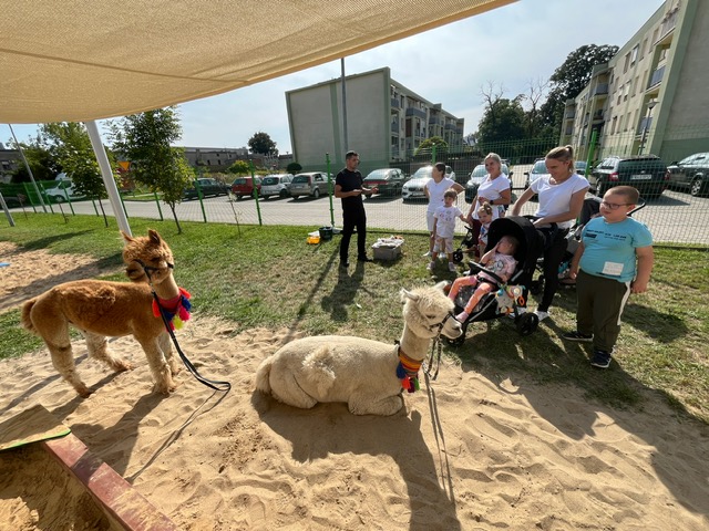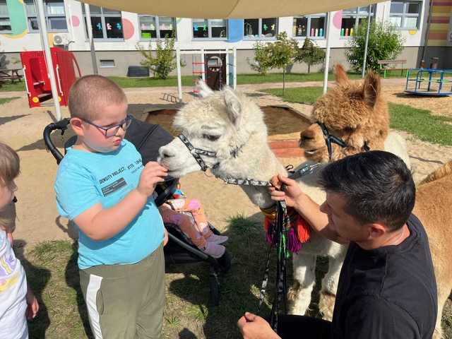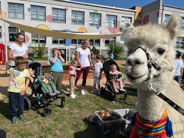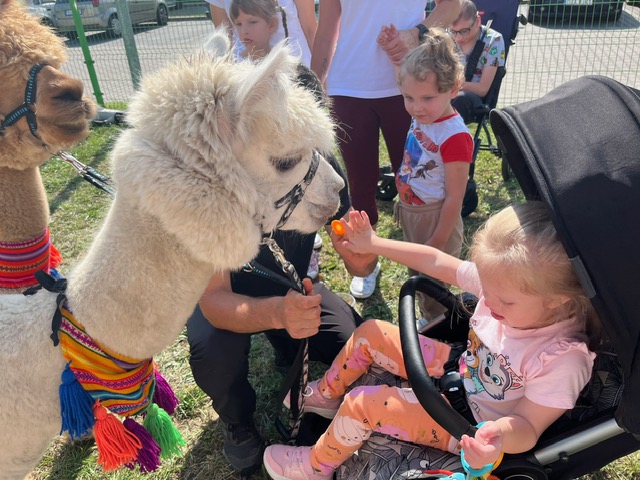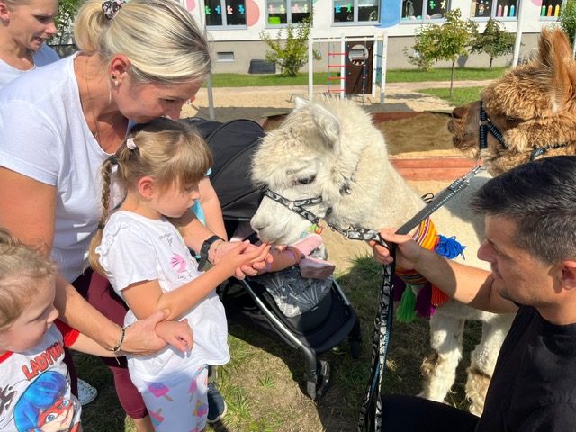 Do naszego przedszkola zawitały goście – dwie urocze alpaki: Leon i Śnieżka. Dzieci miały okazję pogłaskać ich miękkie, puszyste futerko, nakarmić świeżą marchewką. Ten dzień dzieciom sprawił dużą frajdę :)