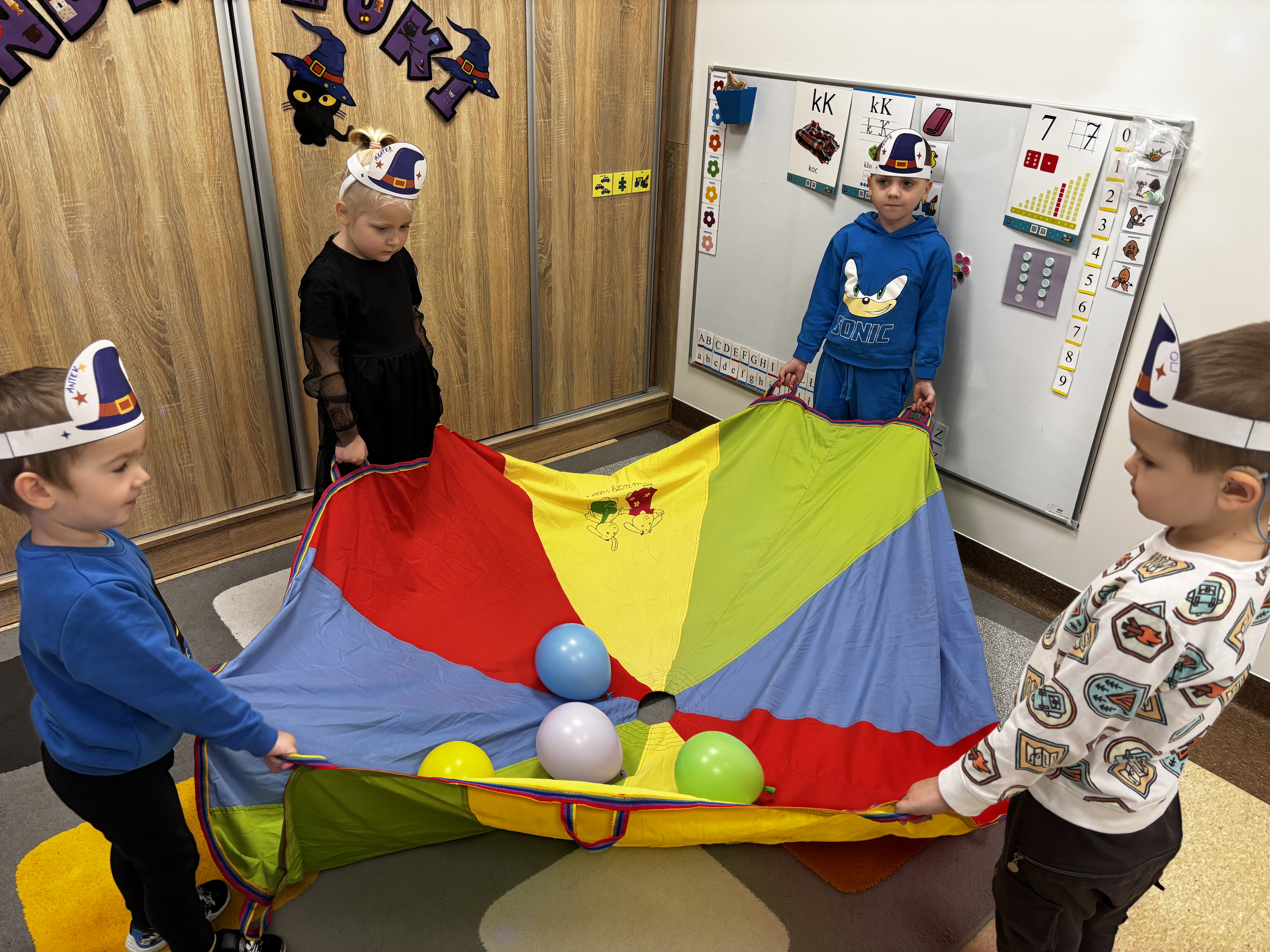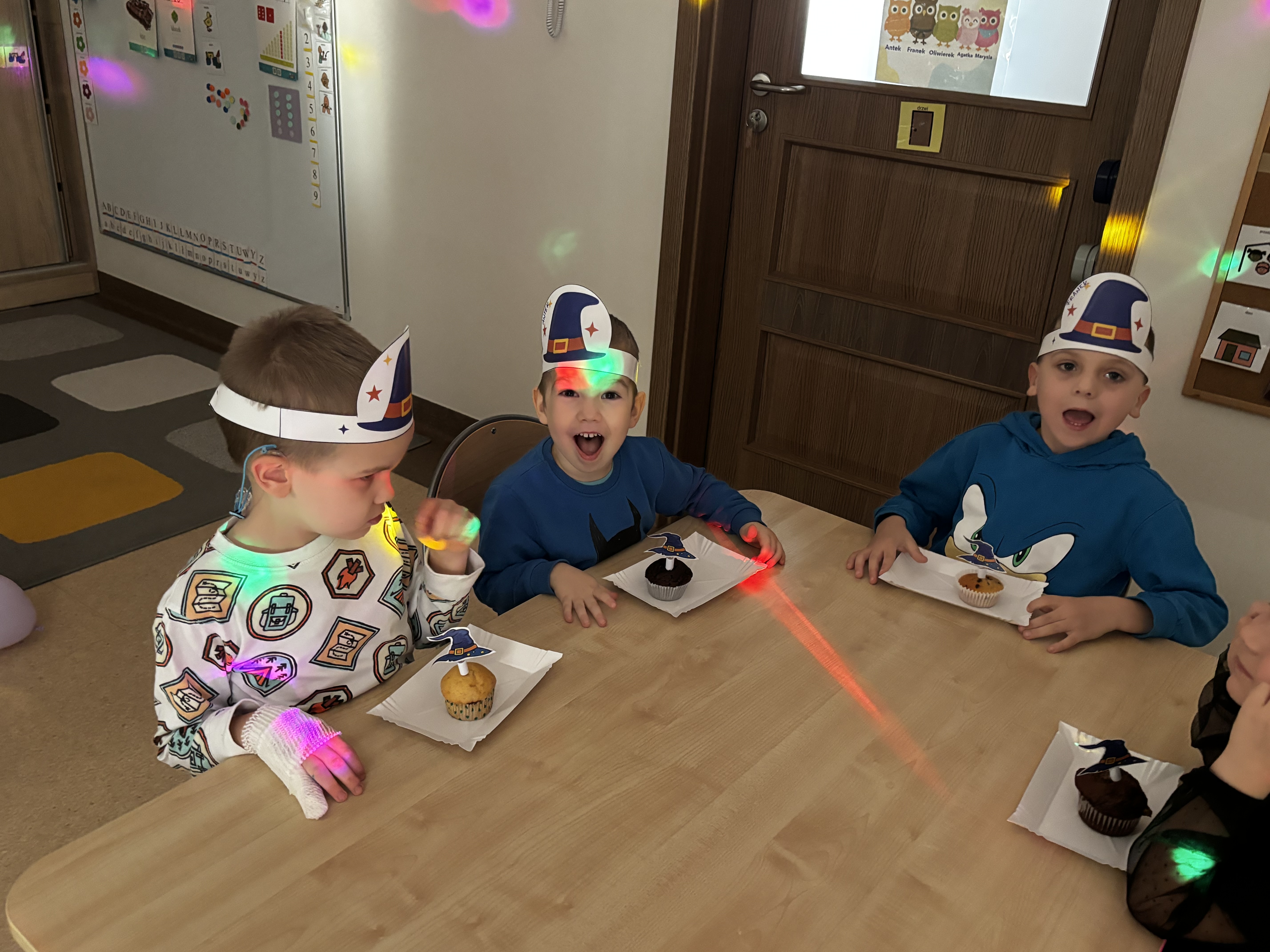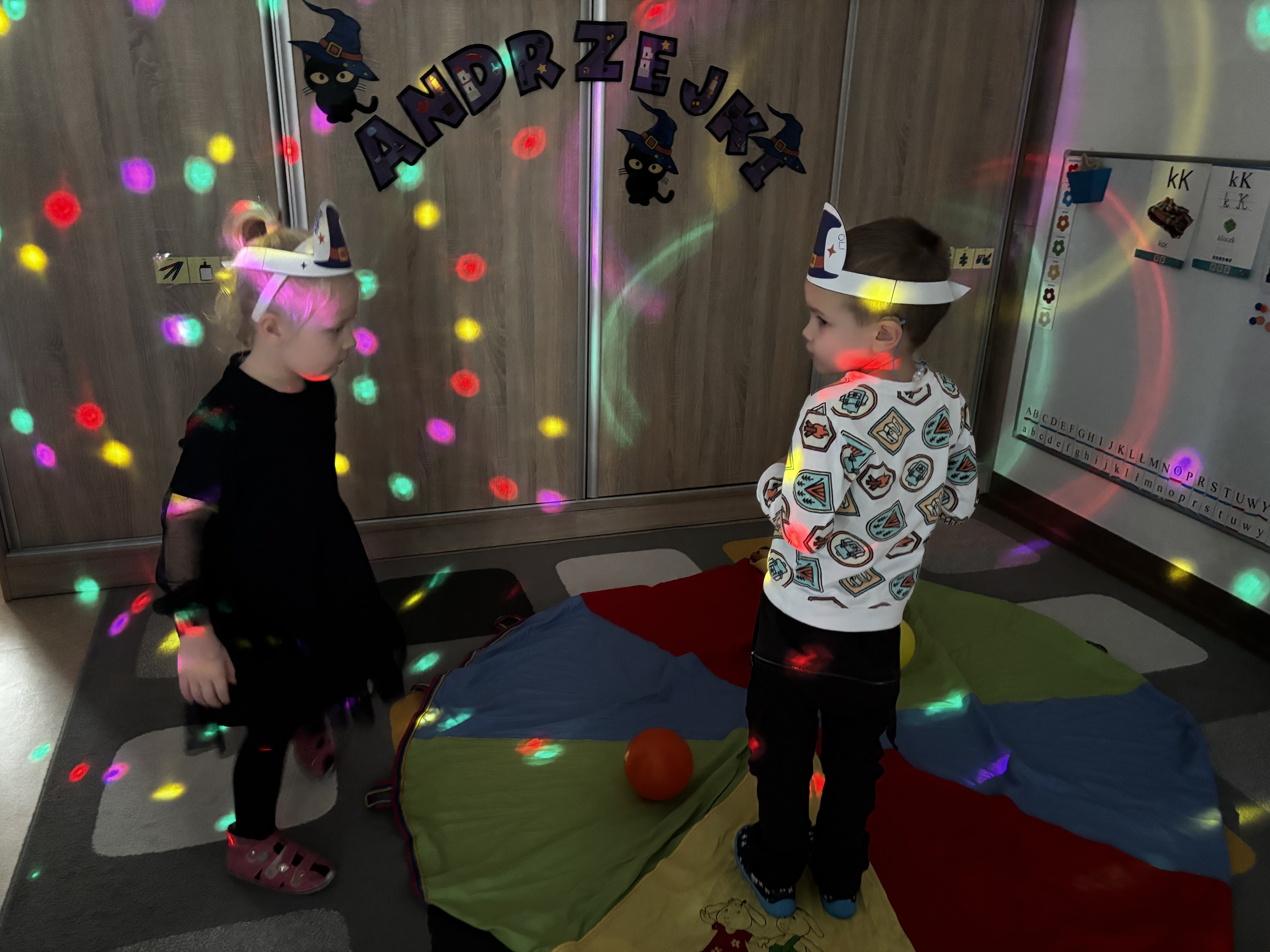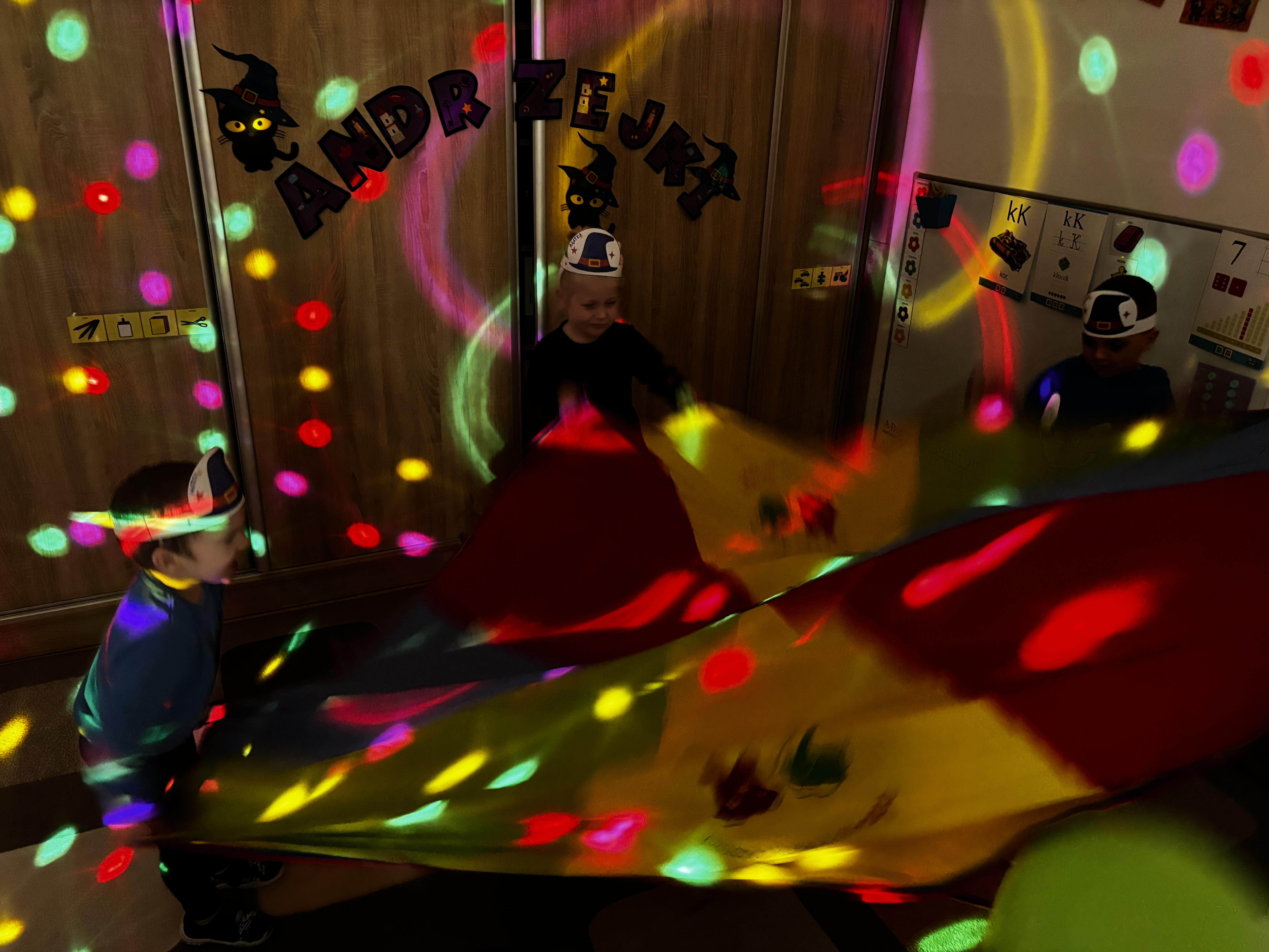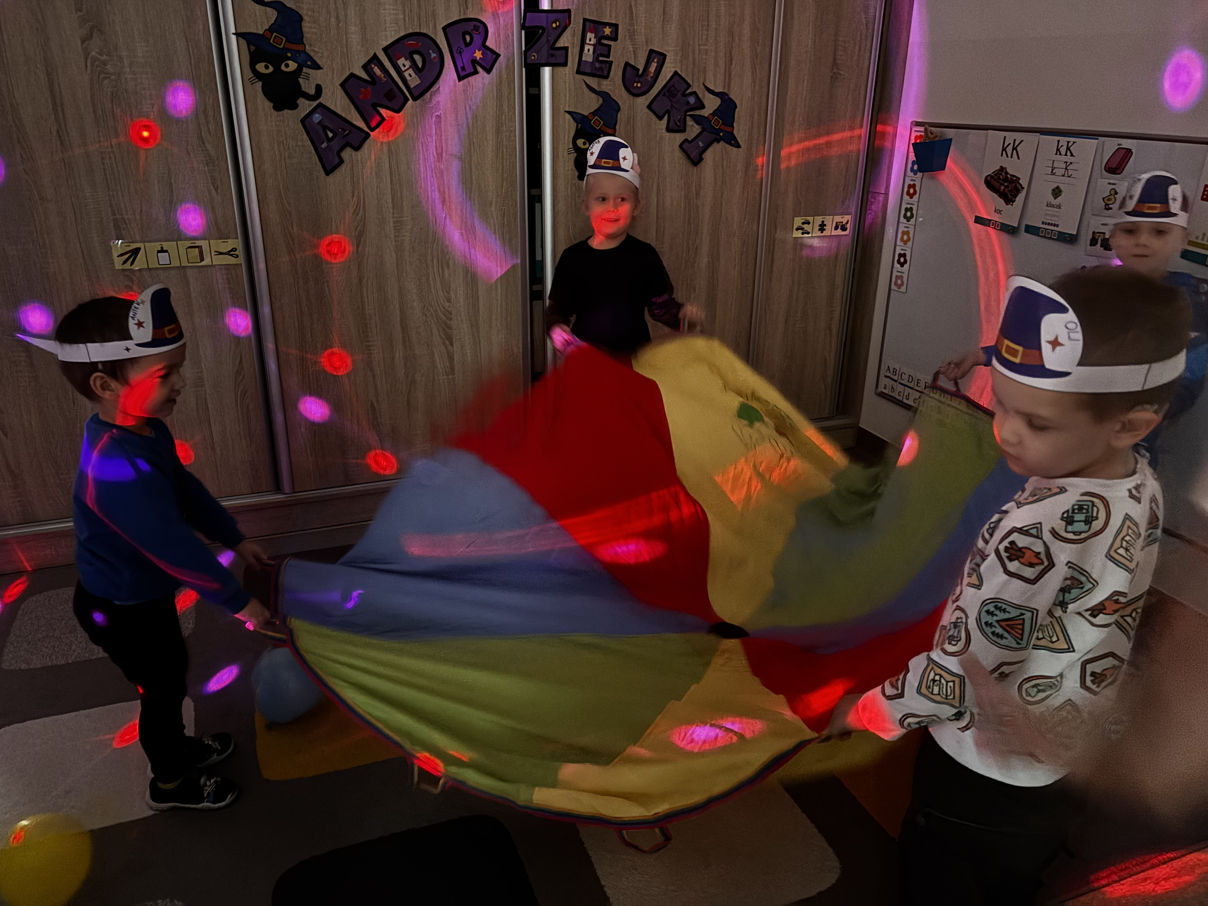 W naszej grupie świętowaliśmy dziś Andrzejki. Dzieci brały udział w wróżbach, zabawach z chustą animacyjną oraz wspólnych tańcach. Nie zabrakło też pamiątkowego zdjęcia w fotobudce. Wielką atrakcją była „andrzejkowa cukiernia”, gdzie każdy mógł kupić babeczkę z wróżbą- szczęście dopisało Franusiowi, który wylosował dodatkowo nagrodę !tNa naszej sali zagościło również kilka całkiem sympatycznych pająków:) Było radośnie i magicznie!