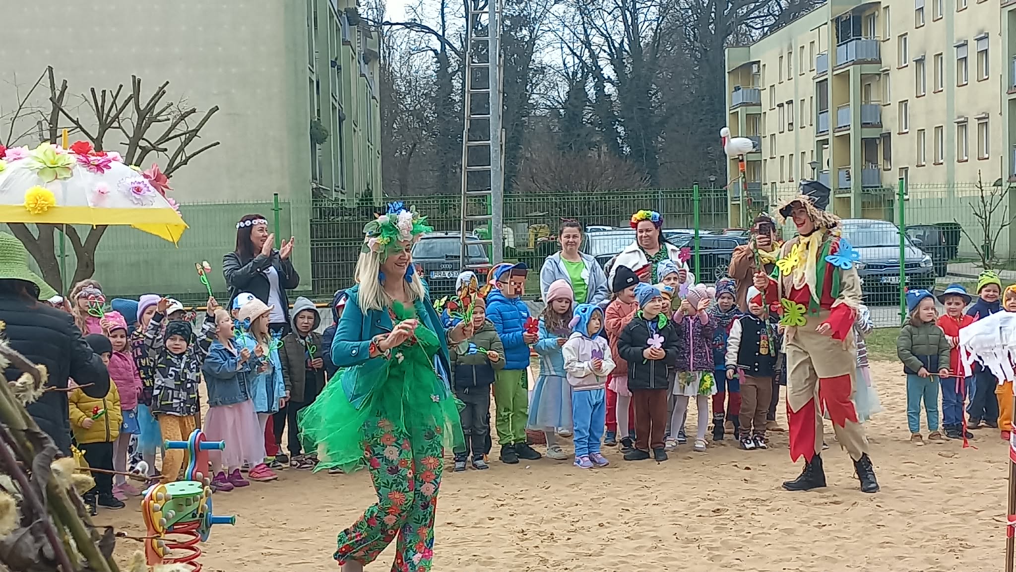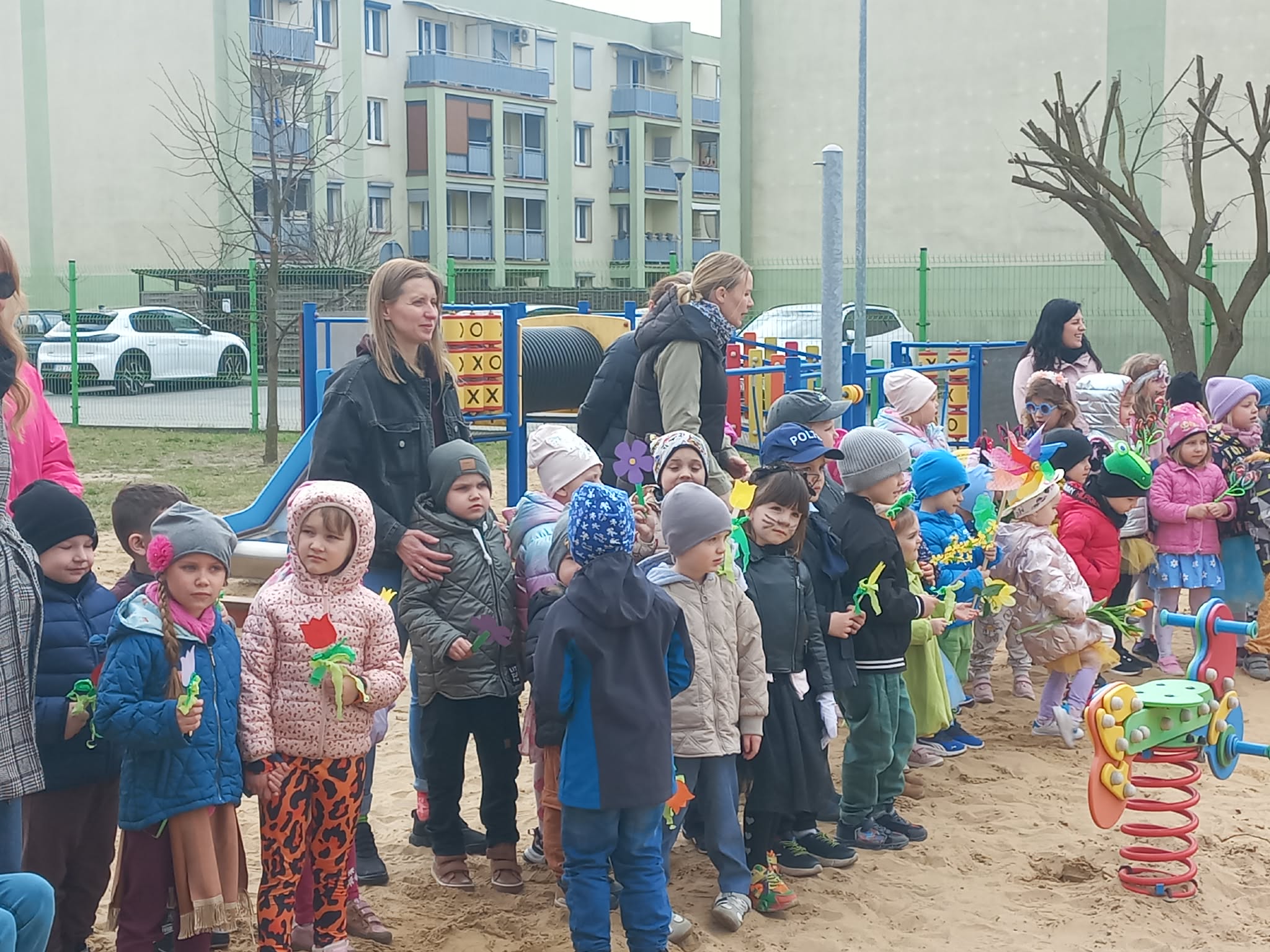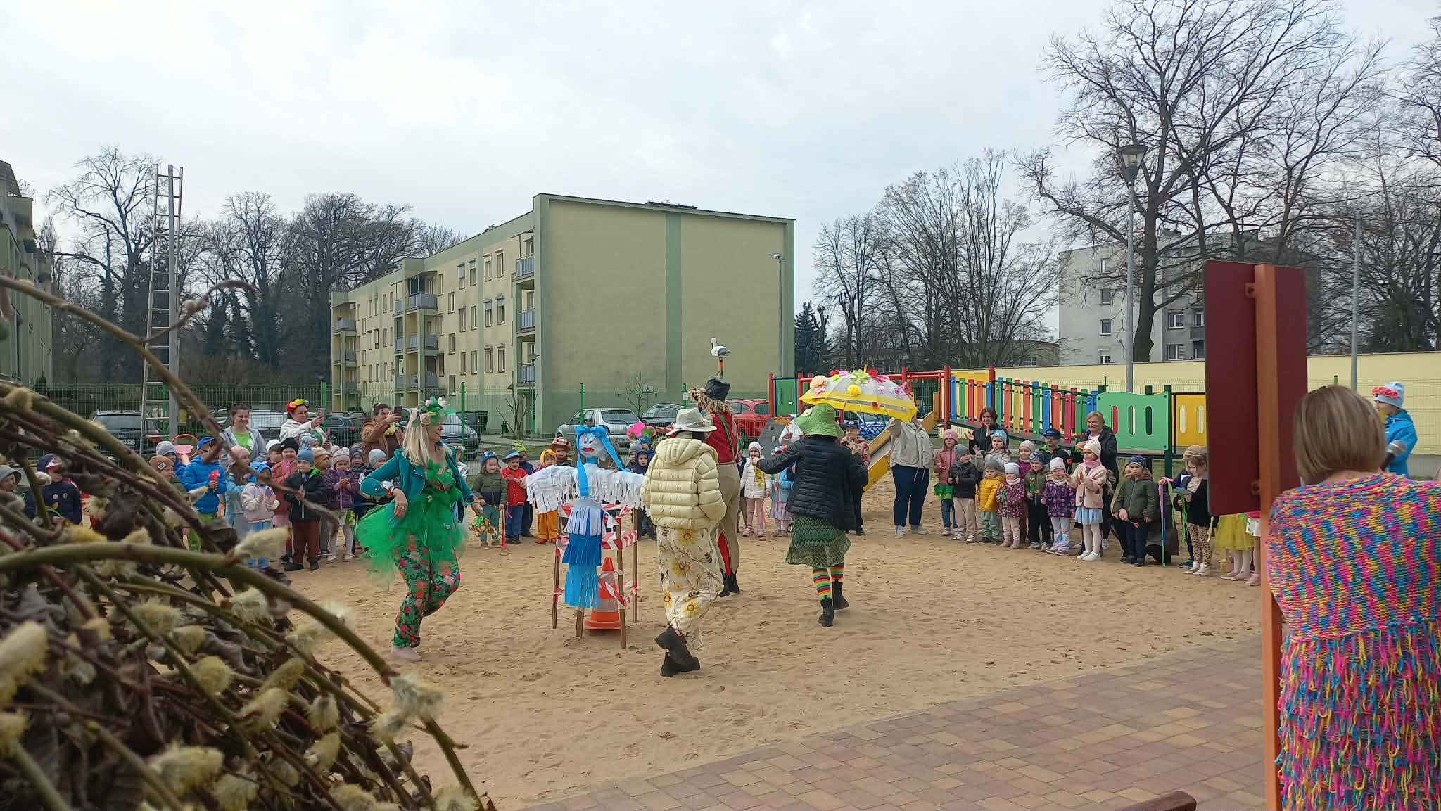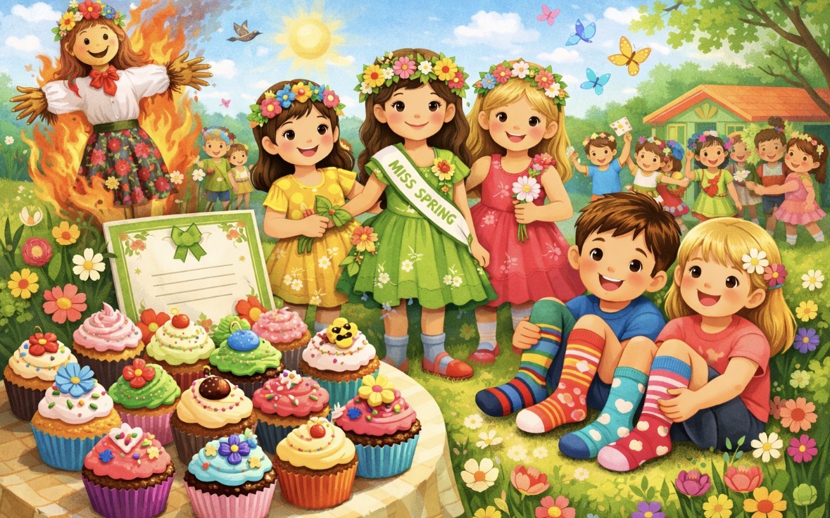 W czwartek i piątek w naszym przedszkolu panowała wyjątkowo radosna i wiosenna atmosfera. Te dni były pełne emocji, atrakcji i wspólnego świętowania nadejścia wiosny.Jednym z najważniejszych wydarzeń był kiermasz babeczek, który cieszył się ogromnym zainteresowaniem. Kolorowe, pachnące wypieki nie tylko zachwycały smakiem, ale także wprowadzały wszystkich w wiosenny nastrój.Nie zabrakło również tradycyjnych elementów powitania wiosny. Wspólnie pożegnaliśmy zimę, paląc Marzannę, a następnie wzięliśmy udział w radosnym przemarszu wiosennym. Dzieci z entuzjazmem nawoływały Panią Wiosnę, śpiewając i maszerując z uśmiechami na twarzach.Ogromnym przeżyciem były także wybory najpiękniejszej Pani Wiosny, podczas których mogliśmy podziwiać kreatywność uczestniczek. Dodatkowo również trzymaliśmy pamiątkowy dyplom za udział w konkursie wiosennym, co było dla nas powodem do dumy.W tych dniach pamiętaliśmy również o ważnym święcie – Światowym Dniu Osób z Zespołem Downa. Na znak solidarności i akceptacji dzieci oraz pracownicy założyli kolorowe, nie do pary skarpetki, pokazując, jak ważna jest różnorodność i wzajemny szacunek.To były dwa niezwykle inspirujące dni, pełne radości, integracji i wspólnego przeżywania pięknych chwil