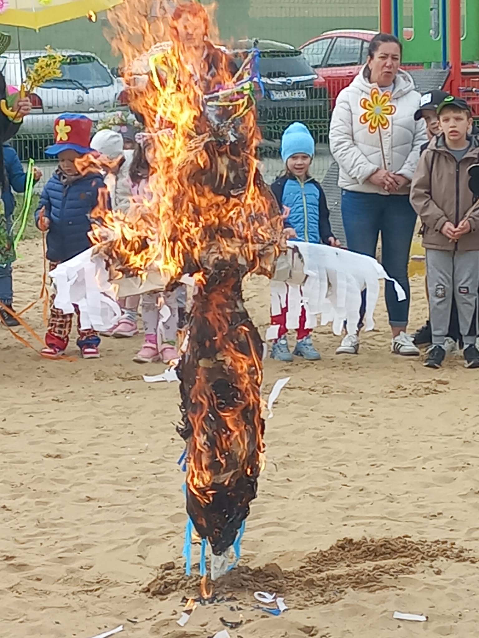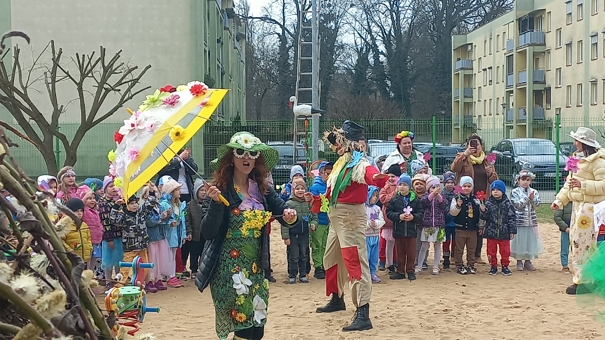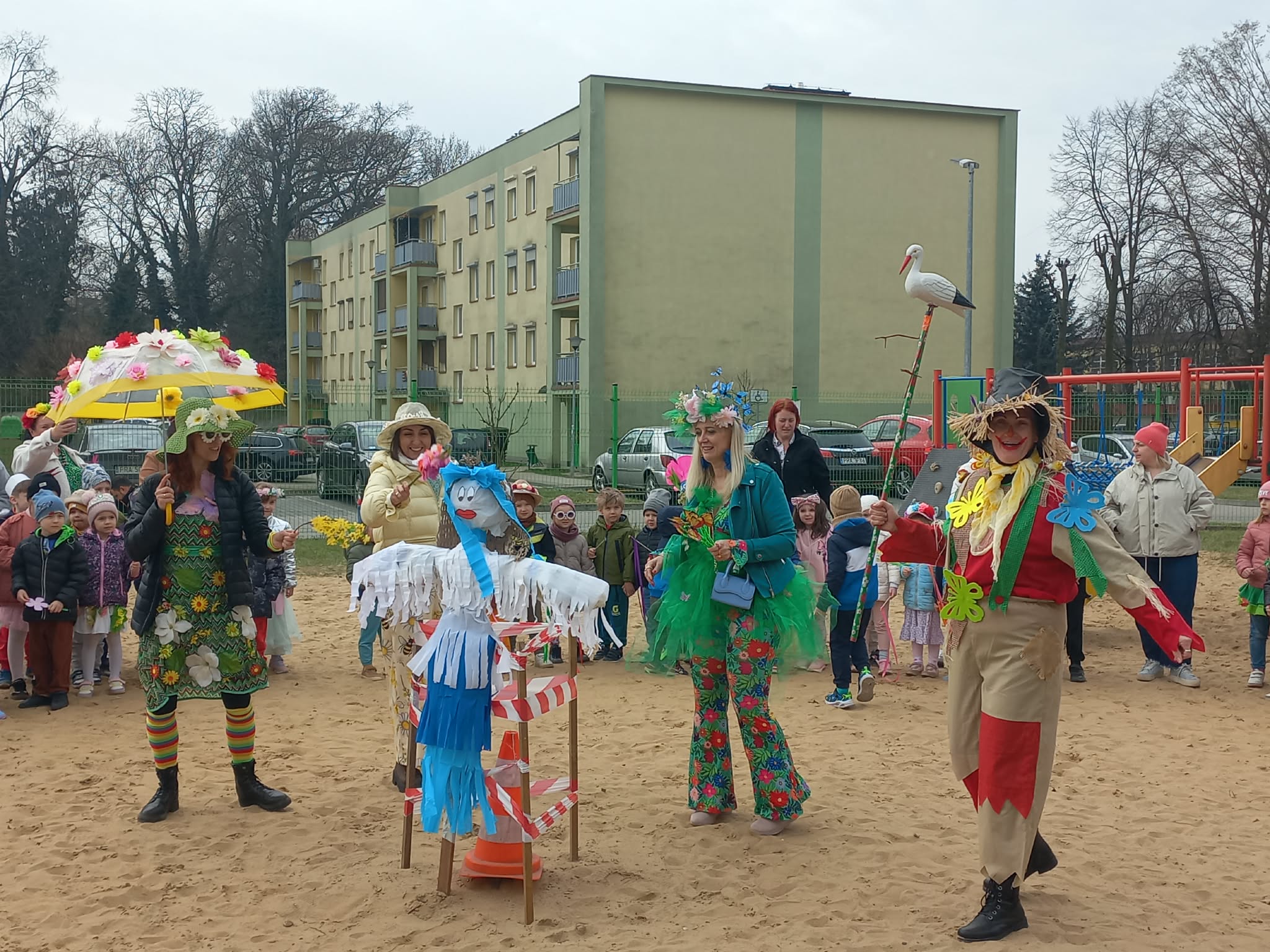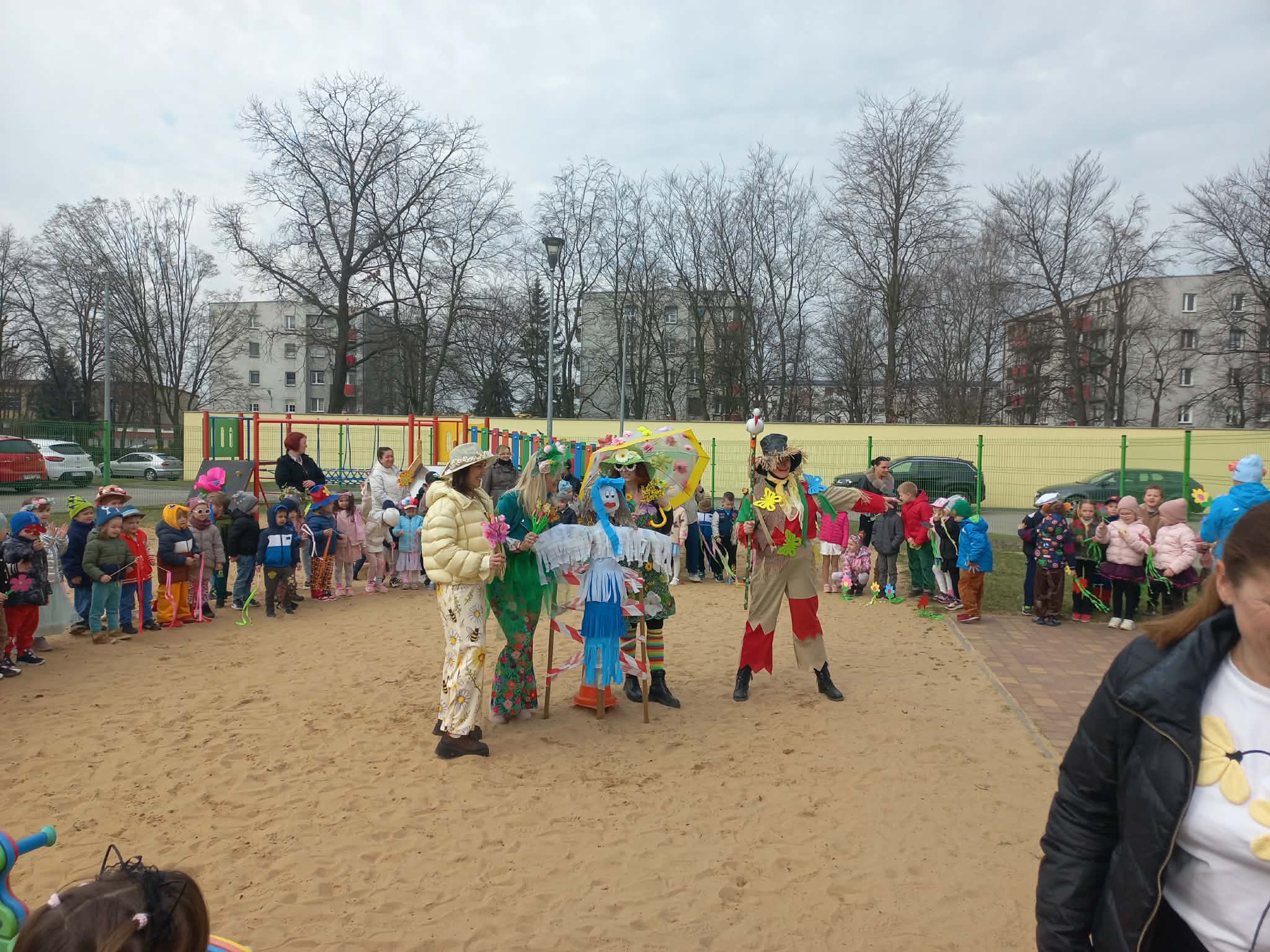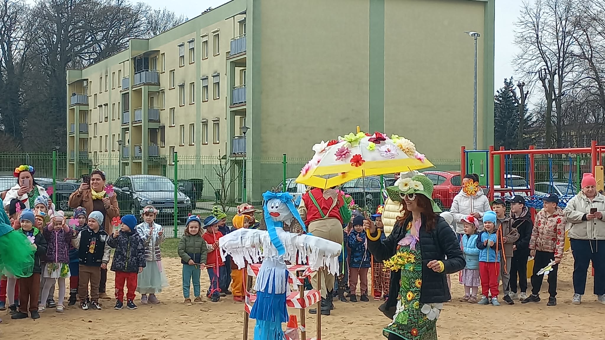 W czwartek i piątek w naszym przedszkolu panowała wyjątkowo radosna i wiosenna atmosfera. Te dni były pełne emocji, atrakcji i wspólnego świętowania nadejścia wiosny.Jednym z najważniejszych wydarzeń był kiermasz babeczek, który cieszył się ogromnym zainteresowaniem. Kolorowe, pachnące wypieki nie tylko zachwycały smakiem, ale także wprowadzały wszystkich w wiosenny nastrój.Nie zabrakło również tradycyjnych elementów powitania wiosny. Wspólnie pożegnaliśmy zimę, paląc Marzannę, a następnie wzięliśmy udział w radosnym przemarszu wiosennym. Dzieci z entuzjazmem nawoływały Panią Wiosnę, śpiewając i maszerując z uśmiechami na twarzach.Ogromnym przeżyciem były także wybory najpiękniejszej Pani Wiosny, podczas których mogliśmy podziwiać kreatywność uczestniczek. Dodatkowo również trzymaliśmy pamiątkowy dyplom za udział w konkursie wiosennym, co było dla nas powodem do dumy.W tych dniach pamiętaliśmy również o ważnym święcie – Światowym Dniu Osób z Zespołem Downa. Na znak solidarności i akceptacji dzieci oraz pracownicy założyli kolorowe, nie do pary skarpetki, pokazując, jak ważna jest różnorodność i wzajemny szacunek.To były dwa niezwykle inspirujące dni, pełne radości, integracji i wspólnego przeżywania pięknych chwil