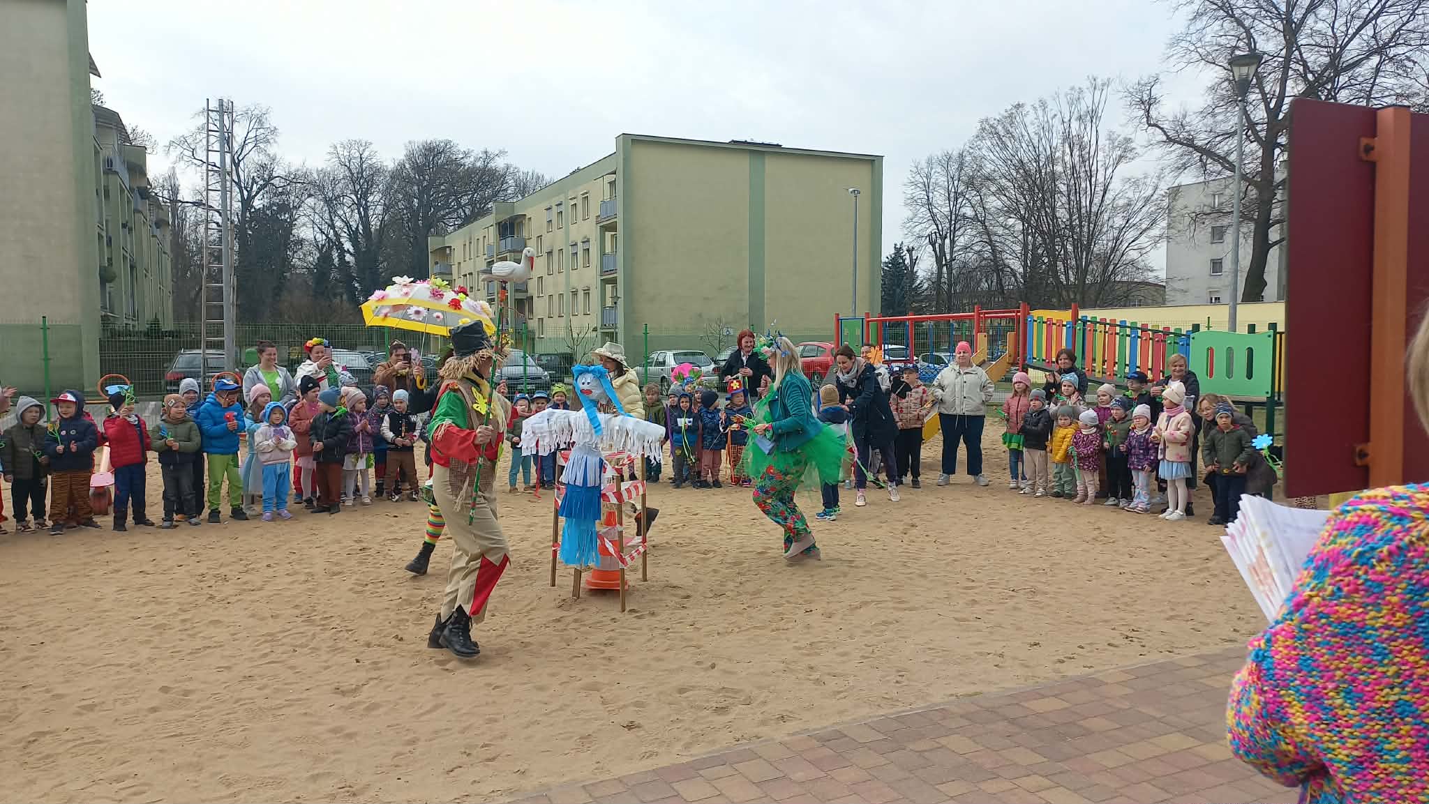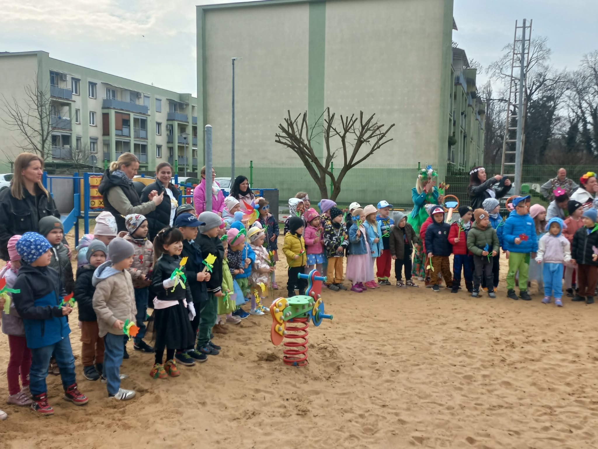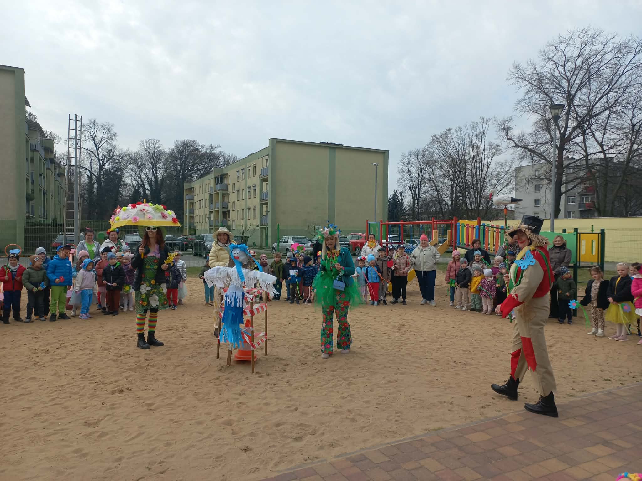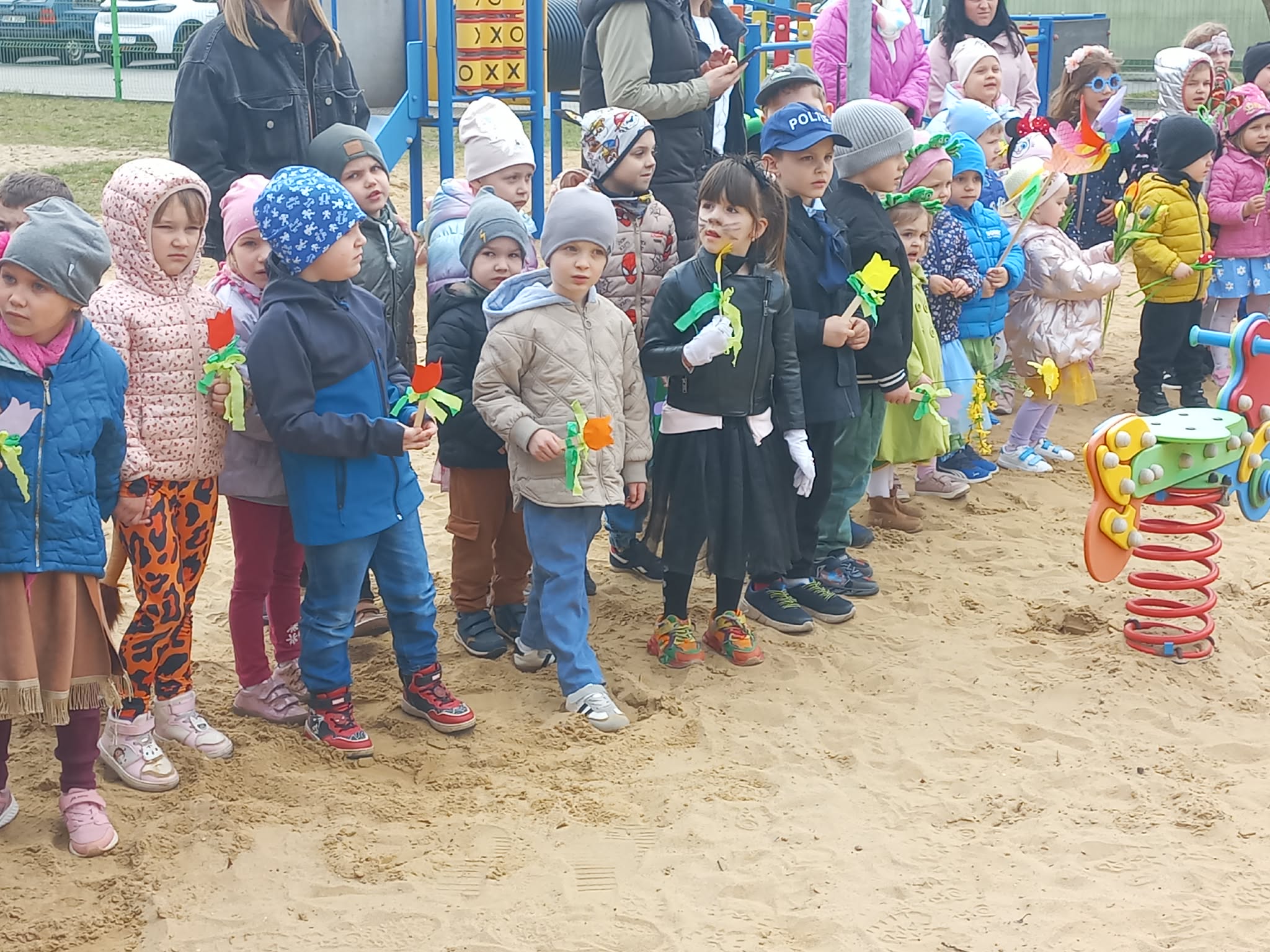 W czwartek i piątek w naszym przedszkolu panowała wyjątkowo radosna i wiosenna atmosfera. Te dni były pełne emocji, atrakcji i wspólnego świętowania nadejścia wiosny.Jednym z najważniejszych wydarzeń był kiermasz babeczek, który cieszył się ogromnym zainteresowaniem. Kolorowe, pachnące wypieki nie tylko zachwycały smakiem, ale także wprowadzały wszystkich w wiosenny nastrój.Nie zabrakło również tradycyjnych elementów powitania wiosny. Wspólnie pożegnaliśmy zimę, paląc Marzannę, a następnie wzięliśmy udział w radosnym przemarszu wiosennym. Dzieci z entuzjazmem nawoływały Panią Wiosnę, śpiewając i maszerując z uśmiechami na twarzach.Ogromnym przeżyciem były także wybory najpiękniejszej Pani Wiosny, podczas których mogliśmy podziwiać kreatywność uczestniczek. Dodatkowo również trzymaliśmy pamiątkowy dyplom za udział w konkursie wiosennym, co było dla nas powodem do dumy.W tych dniach pamiętaliśmy również o ważnym święcie – Światowym Dniu Osób z Zespołem Downa. Na znak solidarności i akceptacji dzieci oraz pracownicy założyli kolorowe, nie do pary skarpetki, pokazując, jak ważna jest różnorodność i wzajemny szacunek.To były dwa niezwykle inspirujące dni, pełne radości, integracji i wspólnego przeżywania pięknych chwil