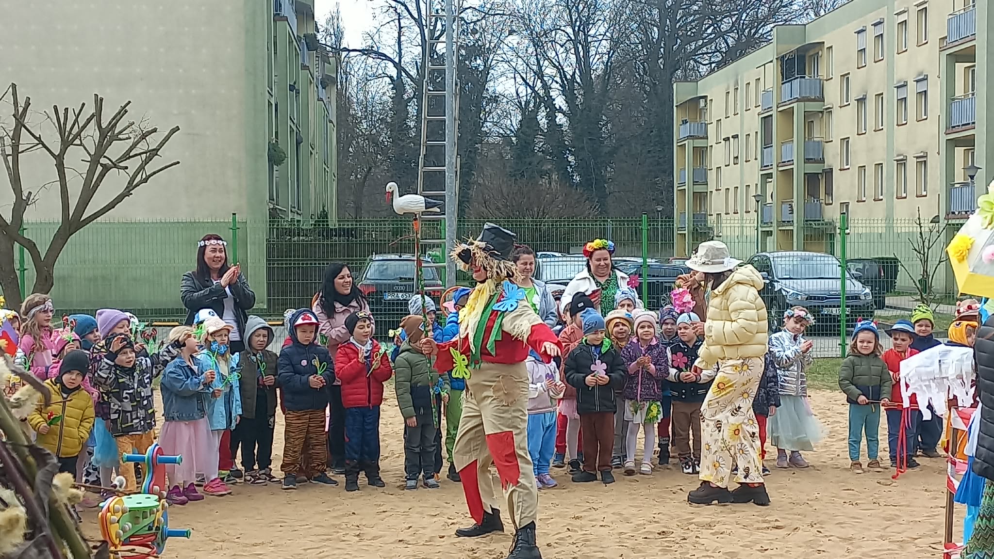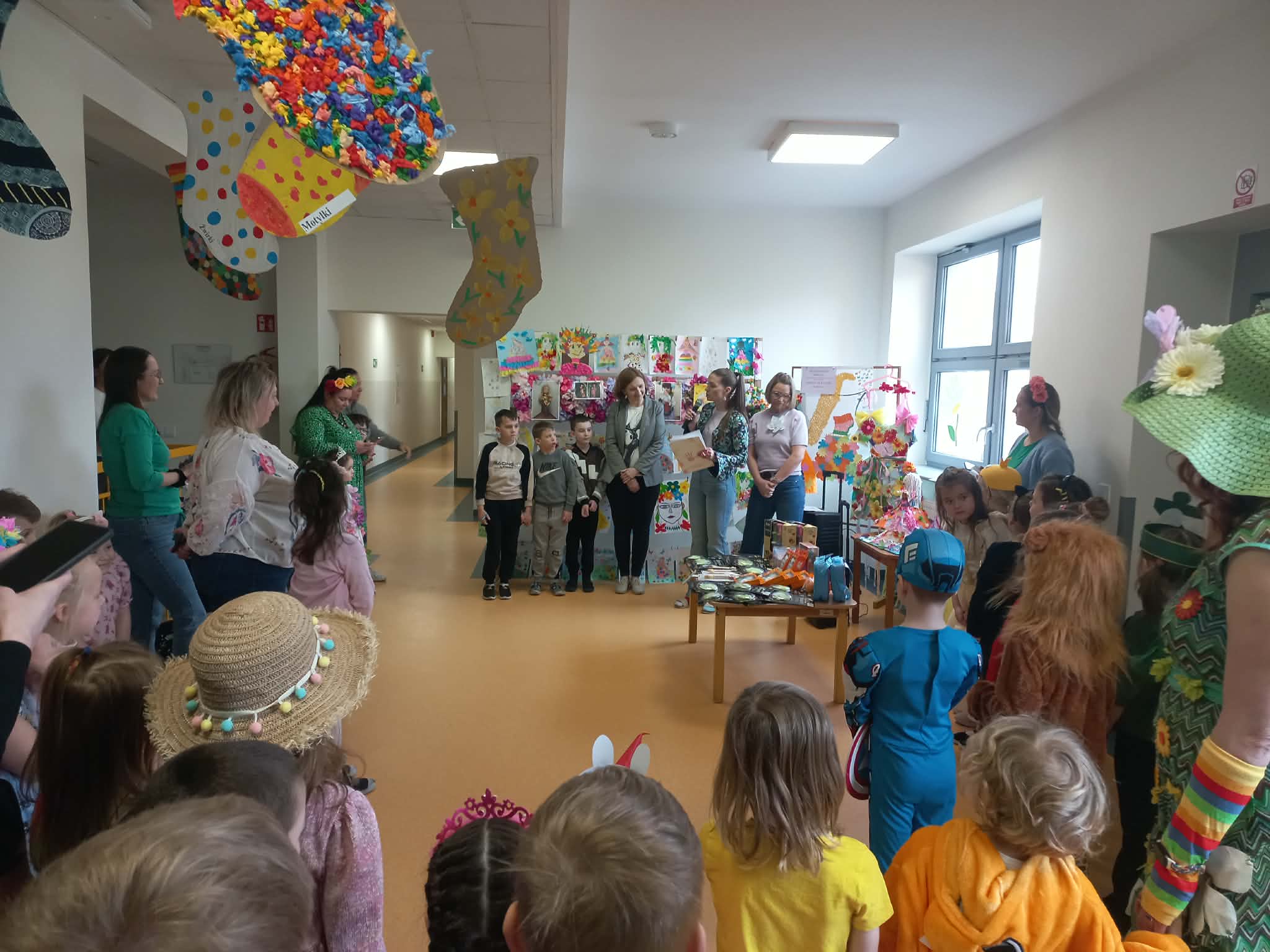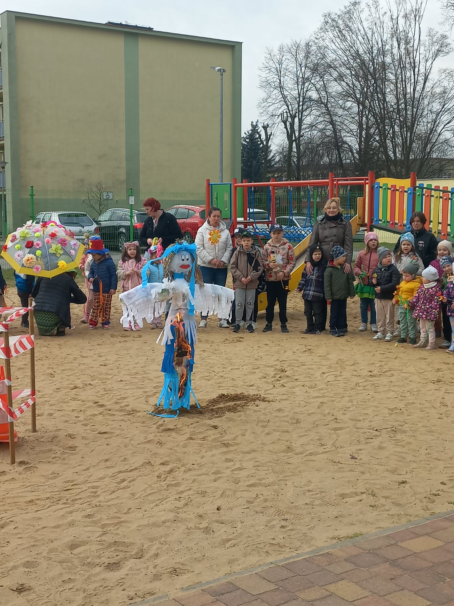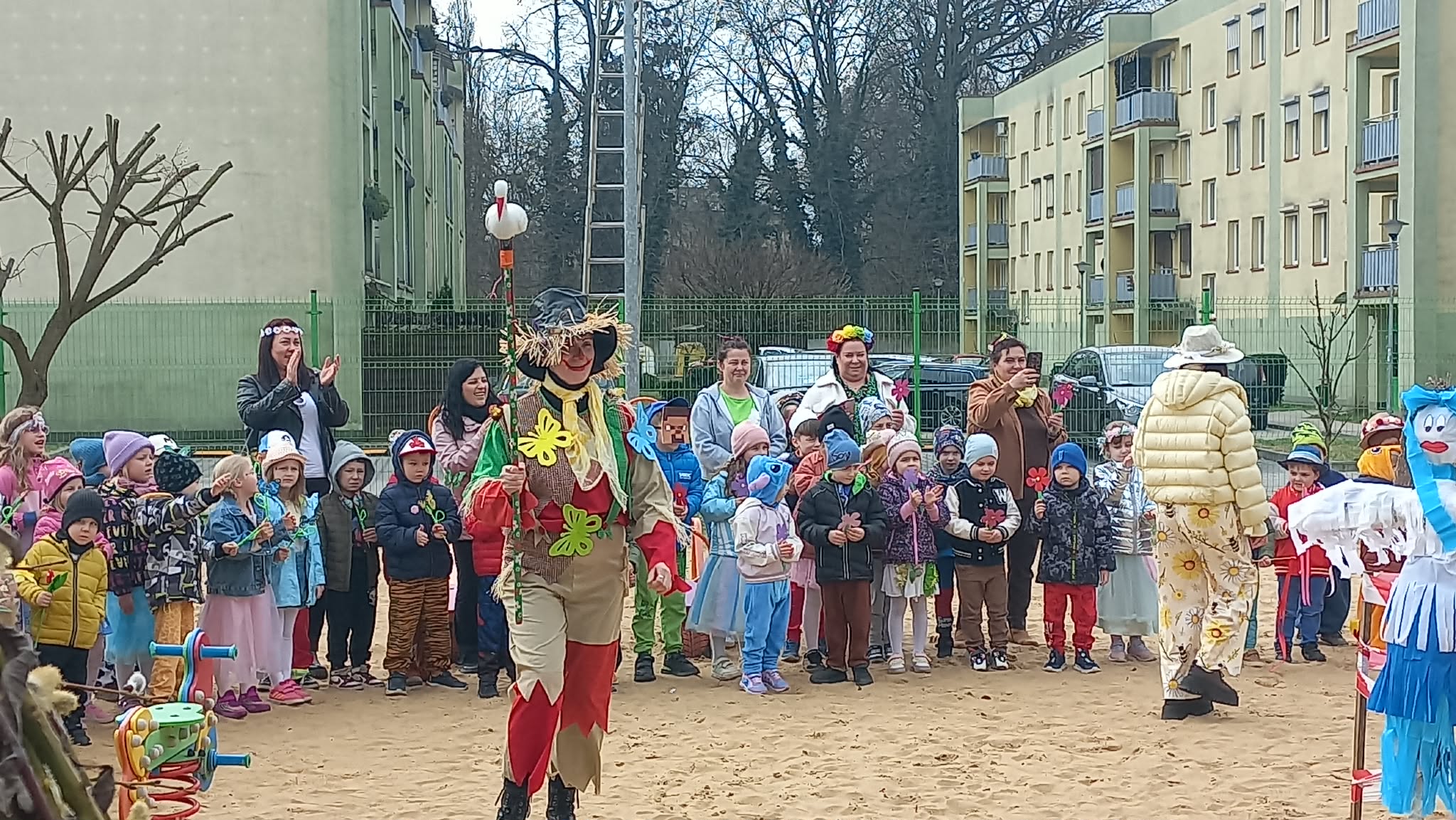 W czwartek i piątek w naszym przedszkolu panowała wyjątkowo radosna i wiosenna atmosfera. Te dni były pełne emocji, atrakcji i wspólnego świętowania nadejścia wiosny.Jednym z najważniejszych wydarzeń był kiermasz babeczek, który cieszył się ogromnym zainteresowaniem. Kolorowe, pachnące wypieki nie tylko zachwycały smakiem, ale także wprowadzały wszystkich w wiosenny nastrój.Nie zabrakło również tradycyjnych elementów powitania wiosny. Wspólnie pożegnaliśmy zimę, paląc Marzannę, a następnie wzięliśmy udział w radosnym przemarszu wiosennym. Dzieci z entuzjazmem nawoływały Panią Wiosnę, śpiewając i maszerując z uśmiechami na twarzach.Ogromnym przeżyciem były także wybory najpiękniejszej Pani Wiosny, podczas których mogliśmy podziwiać kreatywność uczestniczek. Dodatkowo również trzymaliśmy pamiątkowy dyplom za udział w konkursie wiosennym, co było dla nas powodem do dumy.W tych dniach pamiętaliśmy również o ważnym święcie – Światowym Dniu Osób z Zespołem Downa. Na znak solidarności i akceptacji dzieci oraz pracownicy założyli kolorowe, nie do pary skarpetki, pokazując, jak ważna jest różnorodność i wzajemny szacunek.To były dwa niezwykle inspirujące dni, pełne radości, integracji i wspólnego przeżywania pięknych chwil