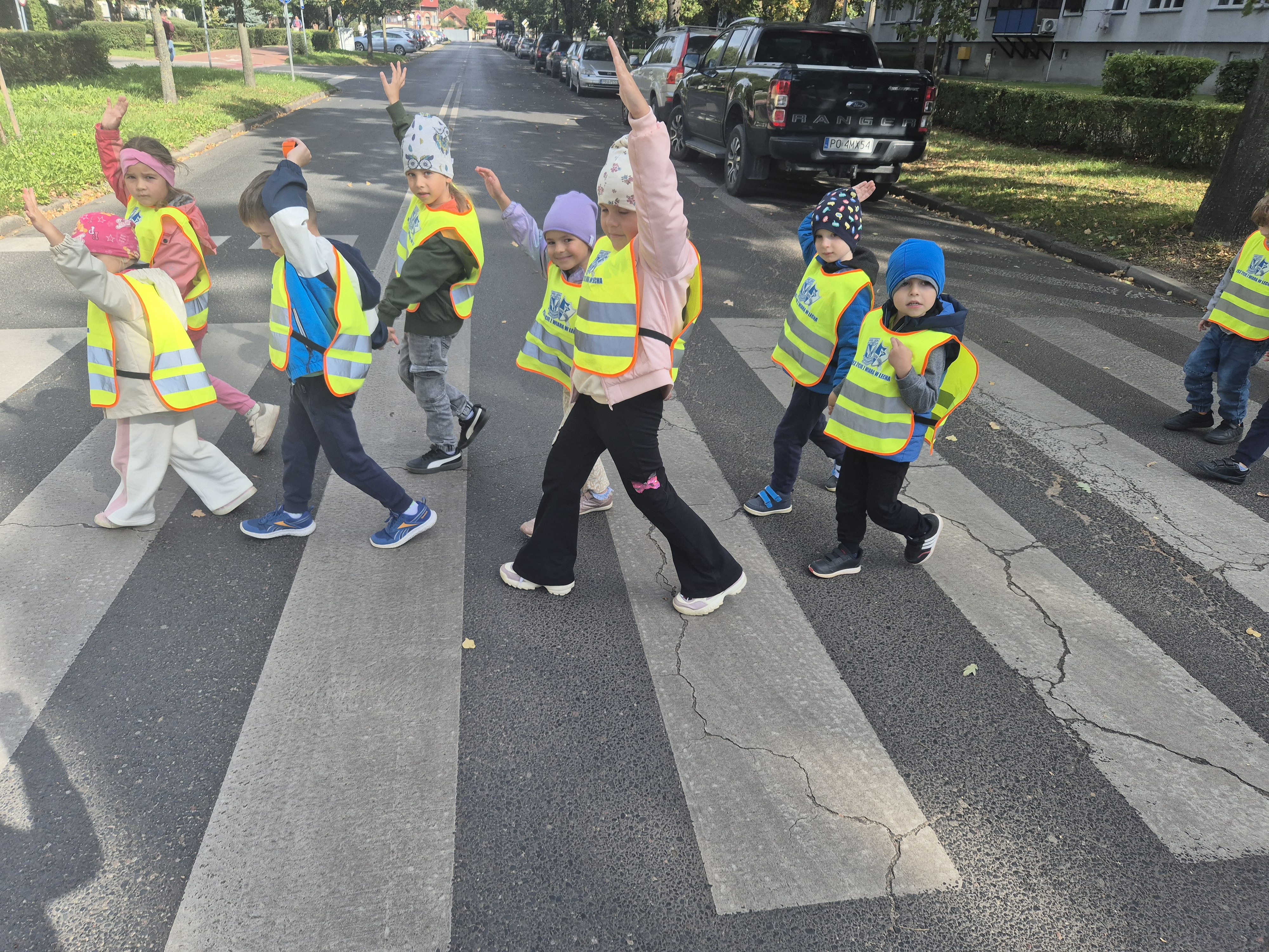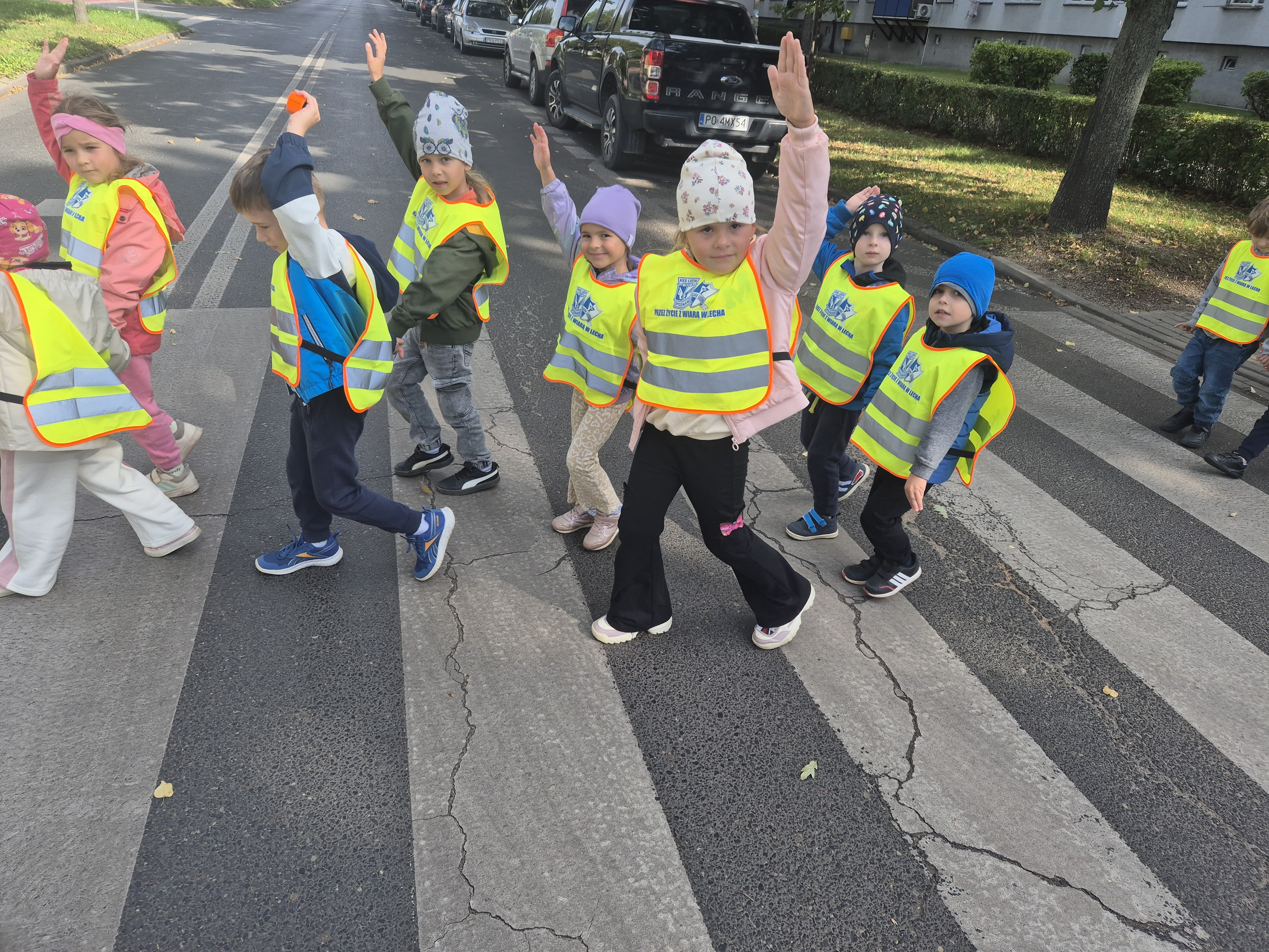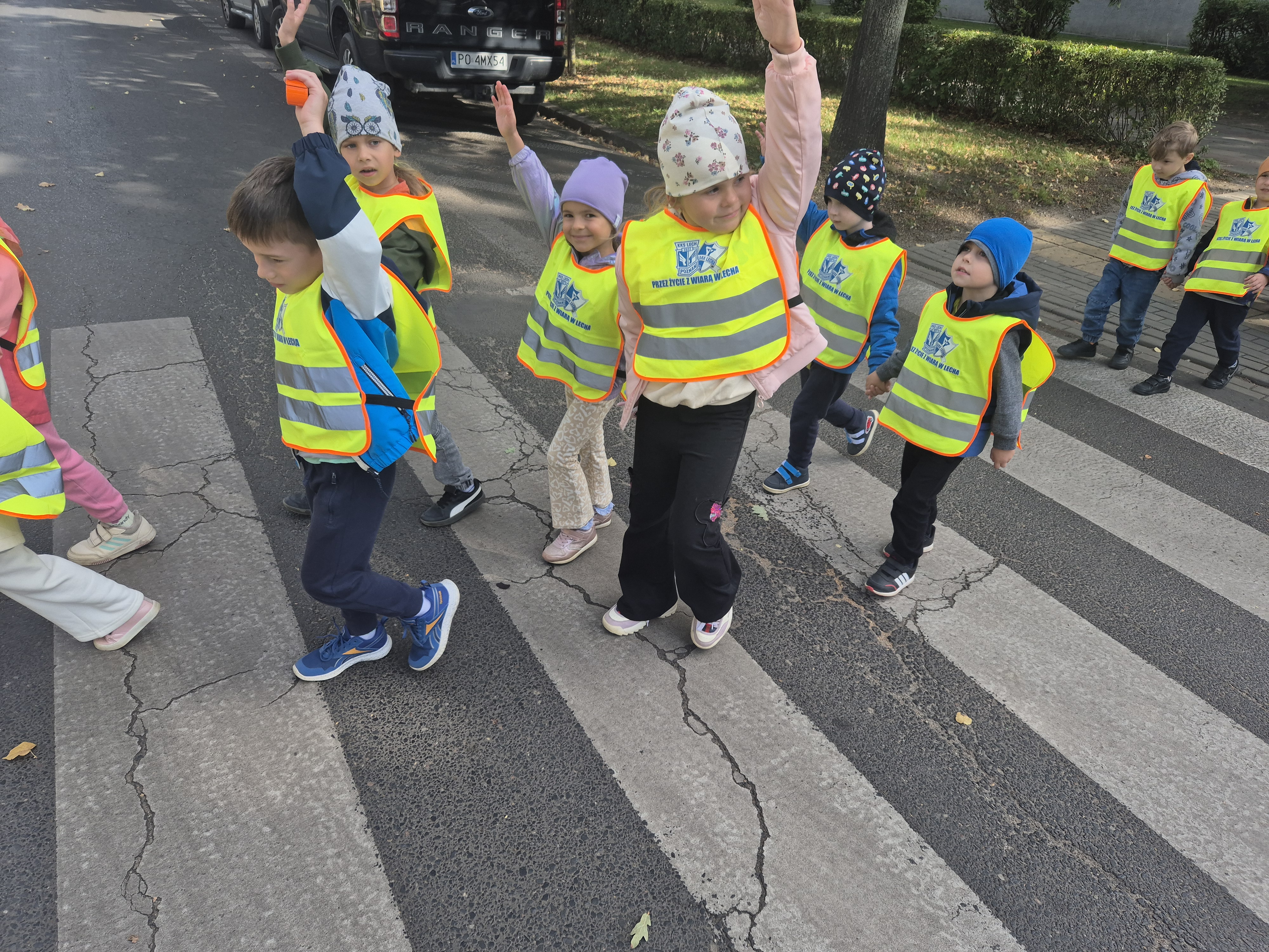 W zeszłym tygodniu dzieci poznały i przypomniały sobie zasady bezpieczeństwa poruszania się po drodze. Braly udział w zajęciach o ruchu drogowym a także wybrały się na spacer w odblaskowych kamizelkach.