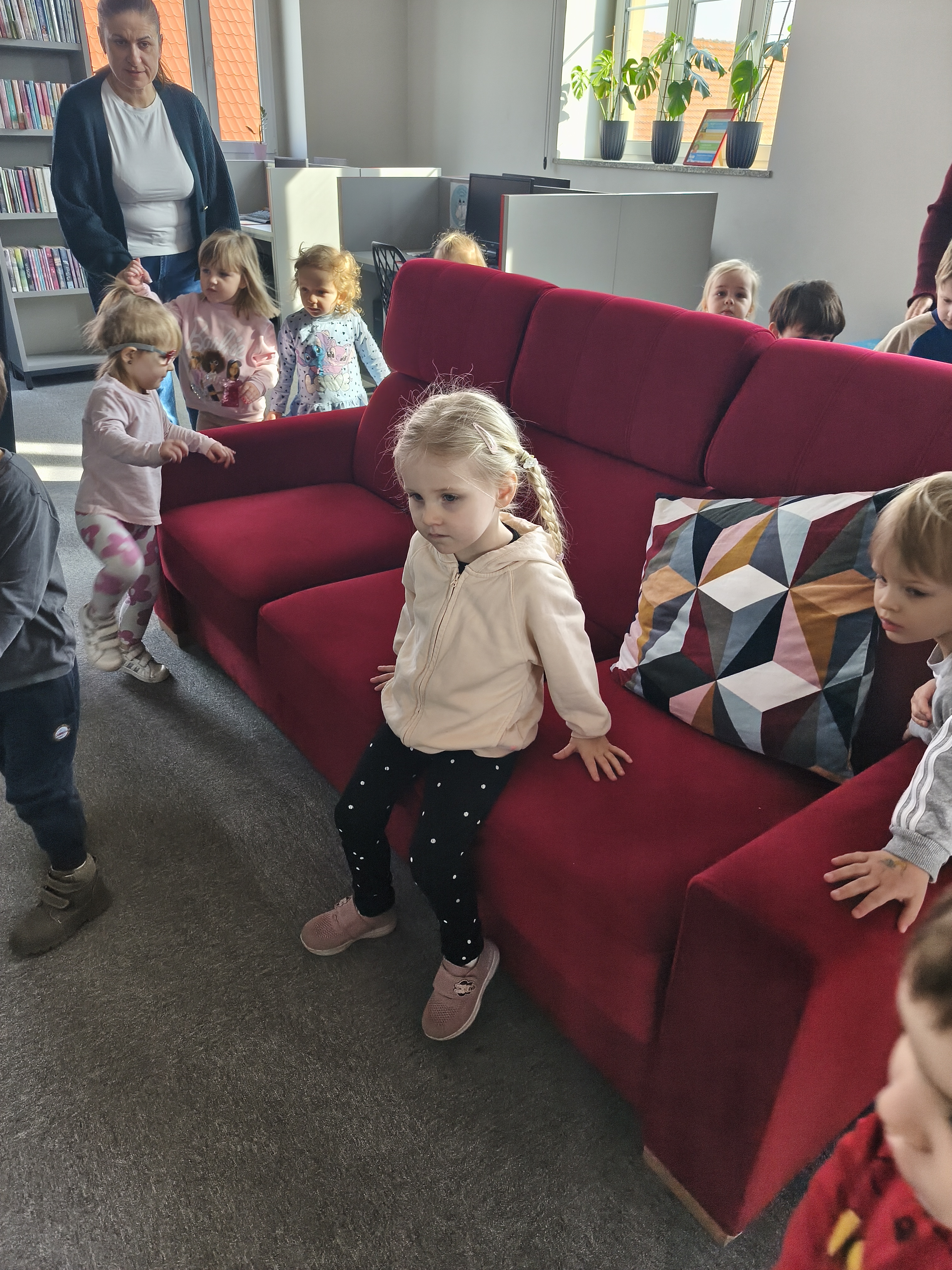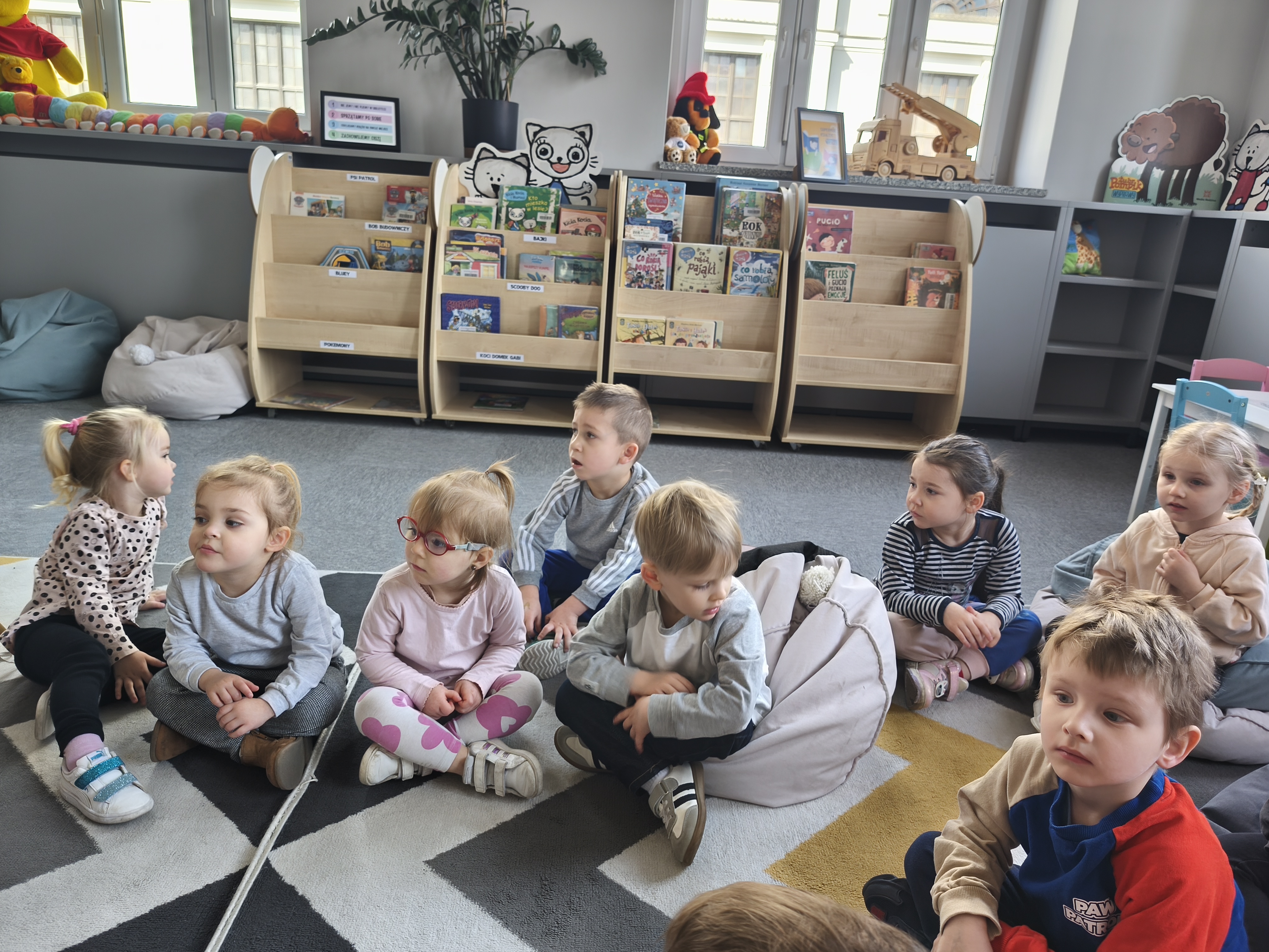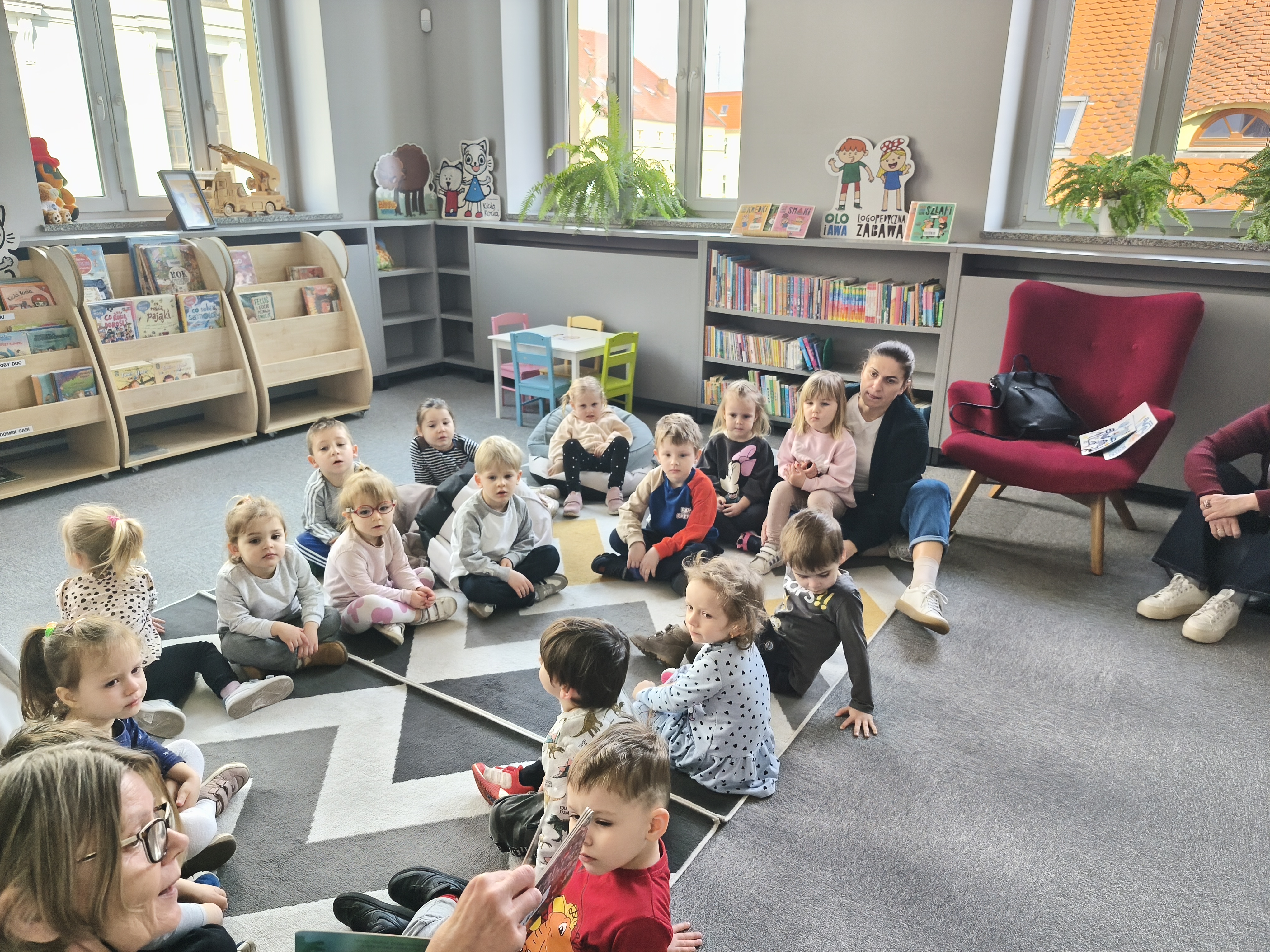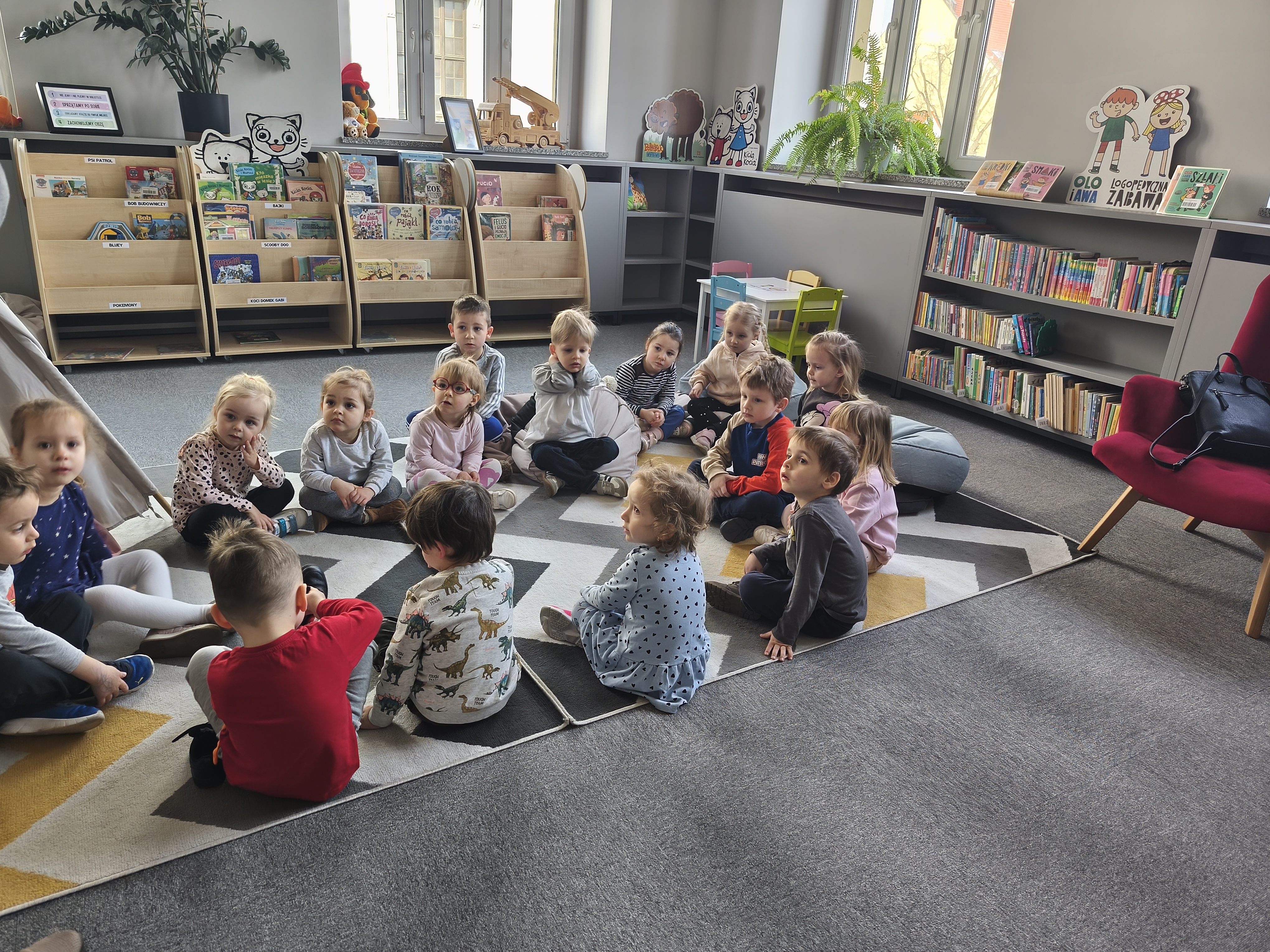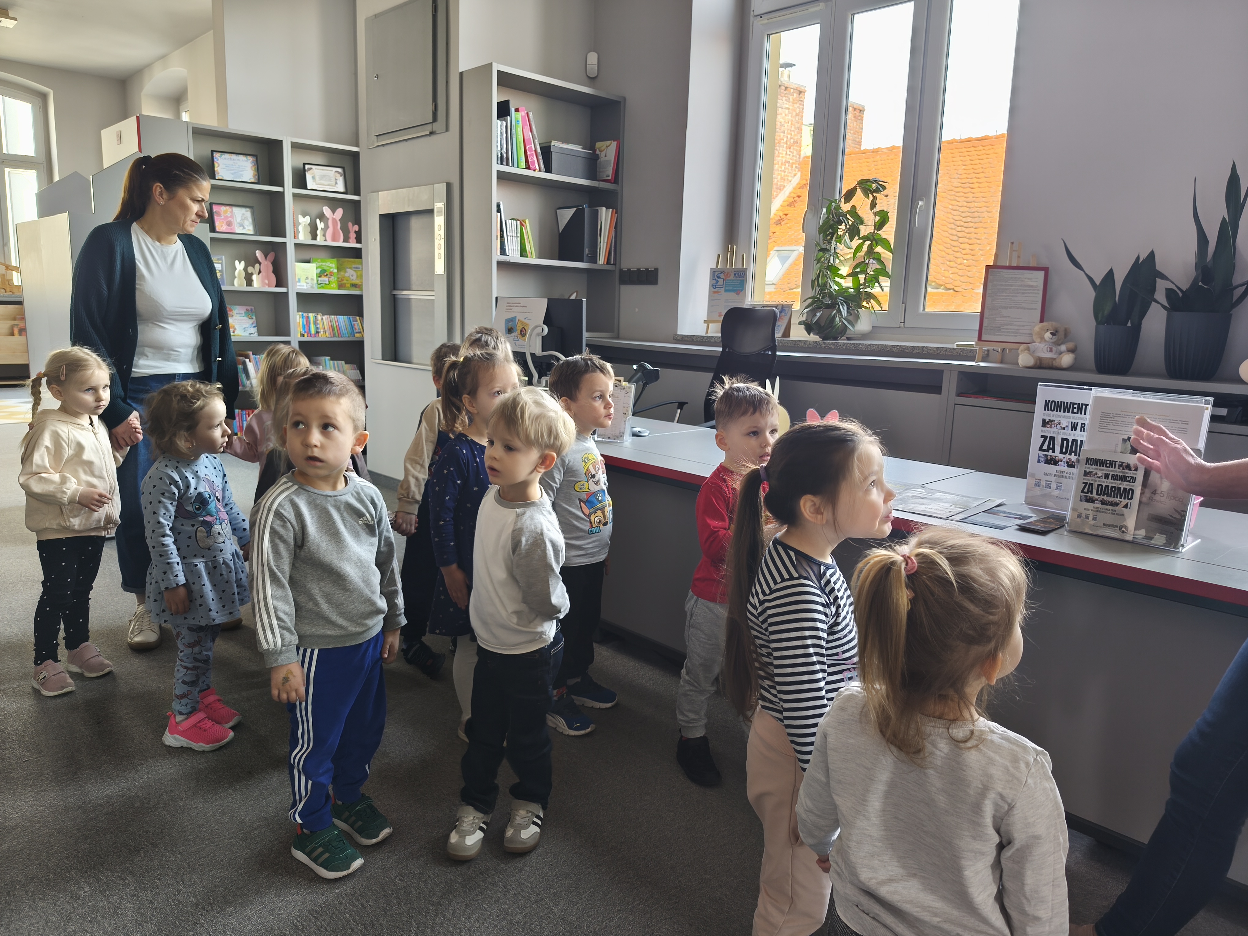 24 marca dzieci z grupy Borowiki odwiedziły bibliotekę multimedialną w Rawiczu. Od samego rana czekała na nas pani, która oprowadziła nas po budynku i opowiadziała o jego funkcjonowaniu. Następnie dzieci z dużym zainteresowaniem wysłuchały bajkę o zwiastunach wiosny. Dowiedzieliśmy się co zrobić, aby zostać małym czytelnikiem i otrzymać nagrodę w programie "Mała książka - wielki człowiek". Następnie wzięliśmy udział w warsztatach, podczas których dzieci wykonały zakładki do książek. Wiele pozytywnych emocji wzbudził także pokój lego - prawdziwy raj dla niejednego dziecka. Na zakończenie wizyty dzieci miały okazję skorzystać z zabaw multimedialnych. Był to dzień pełen wrażen, radości i nowych doświadczeń. Mamy nadzieję, że grupa Borowiki będzie często wracać do biblioteki.