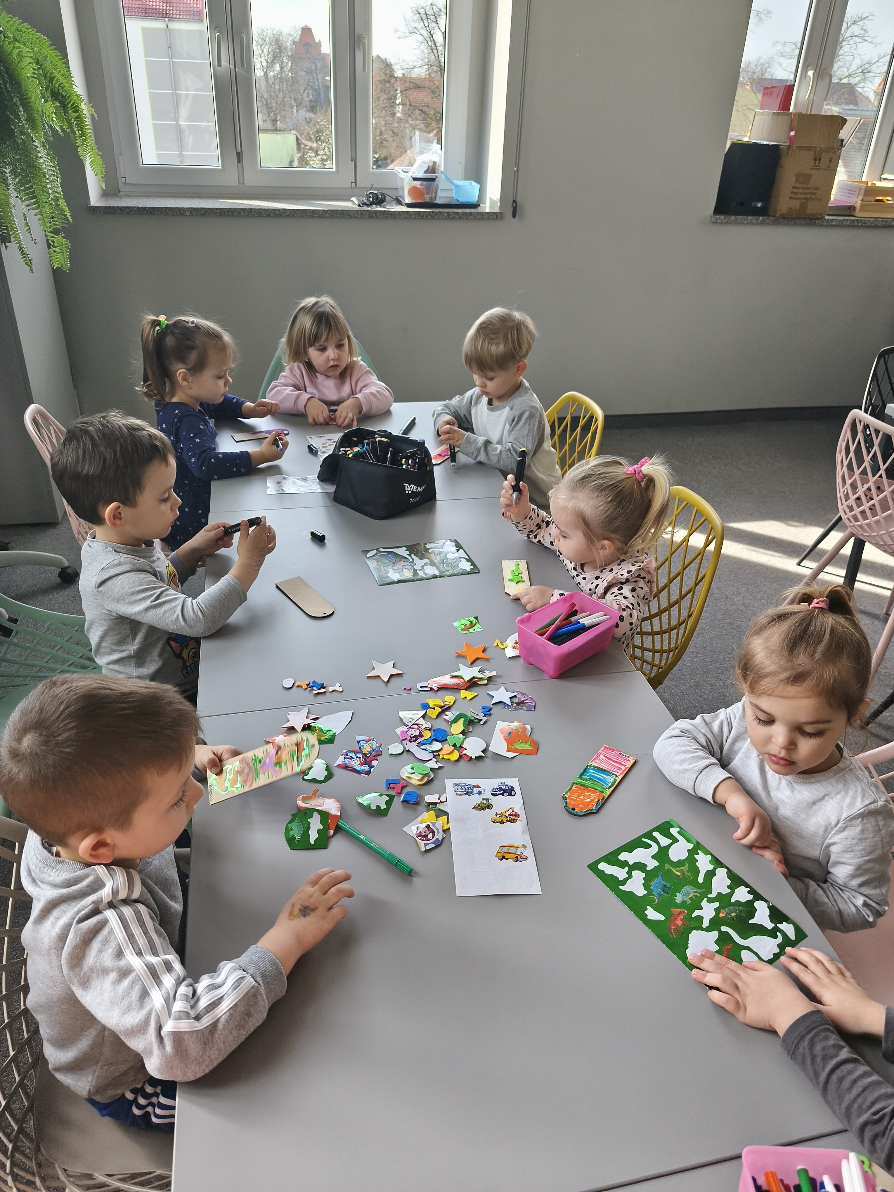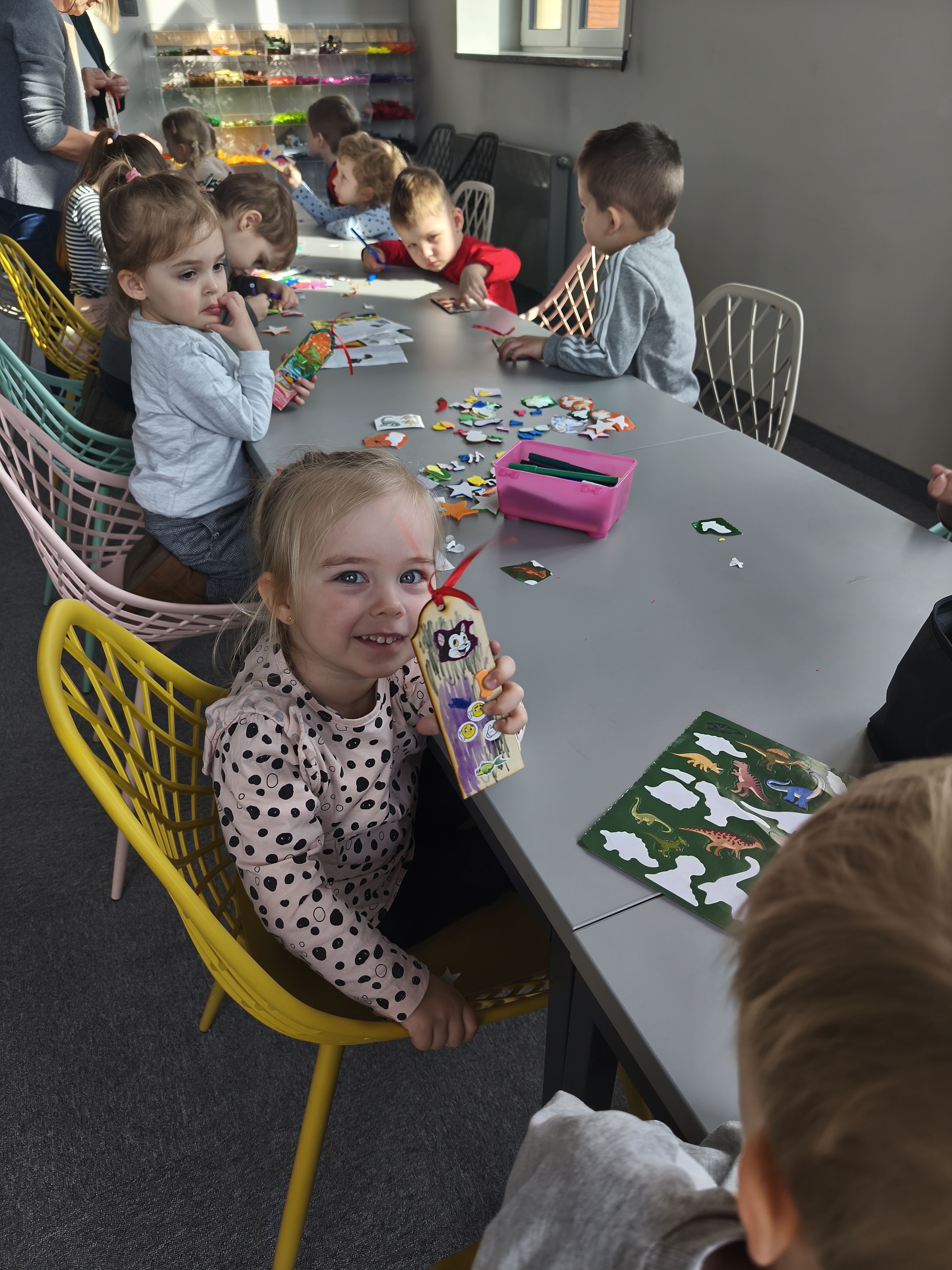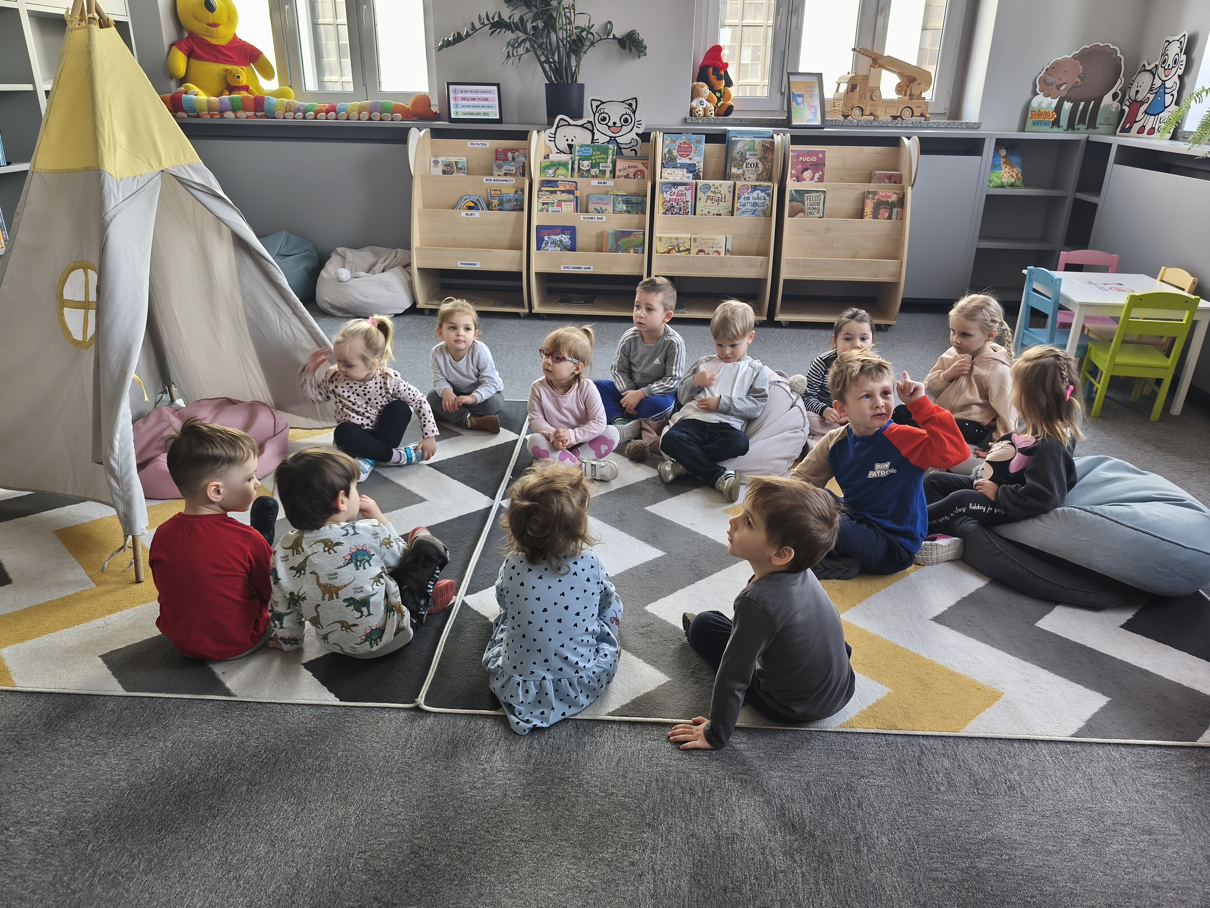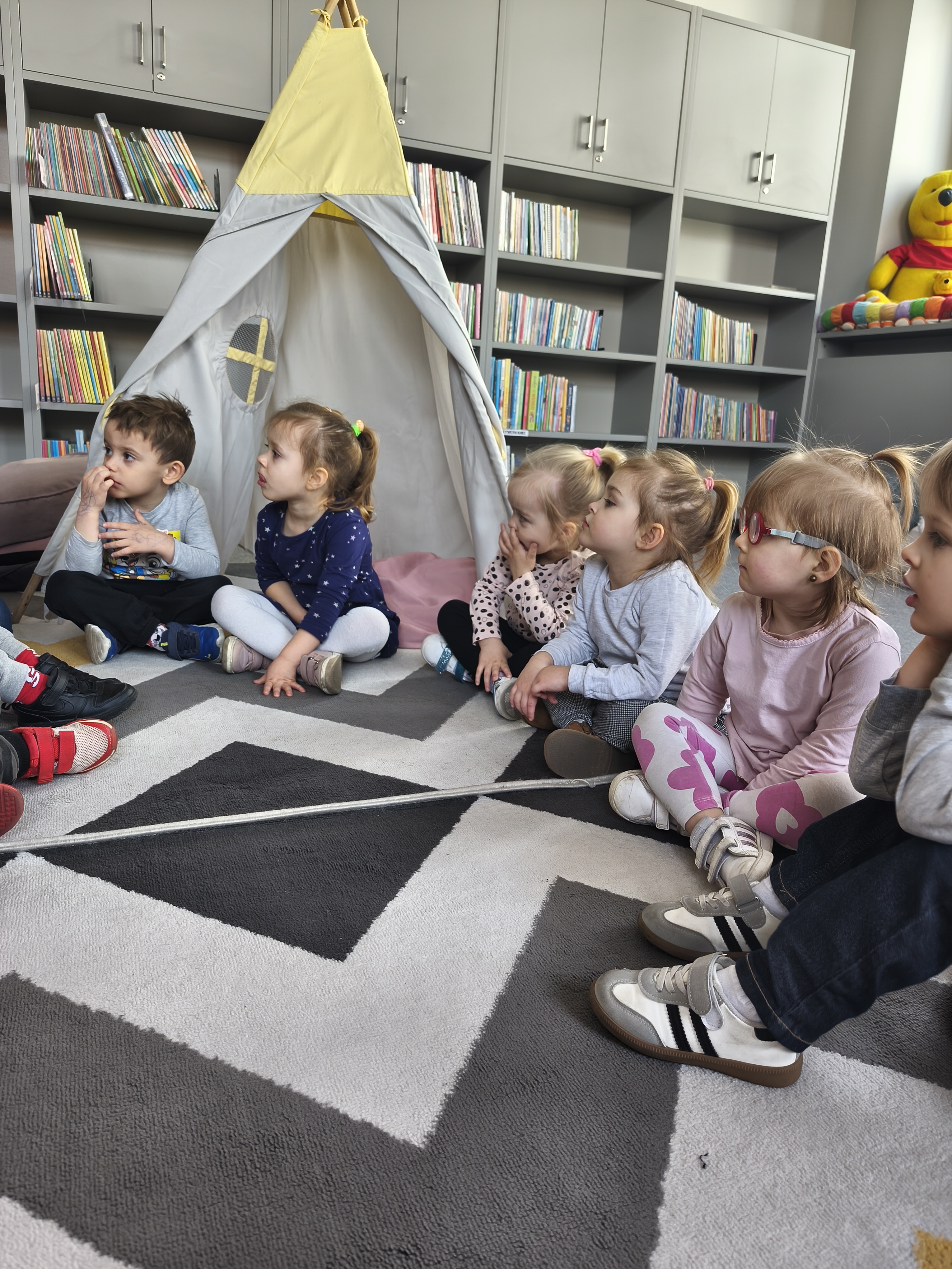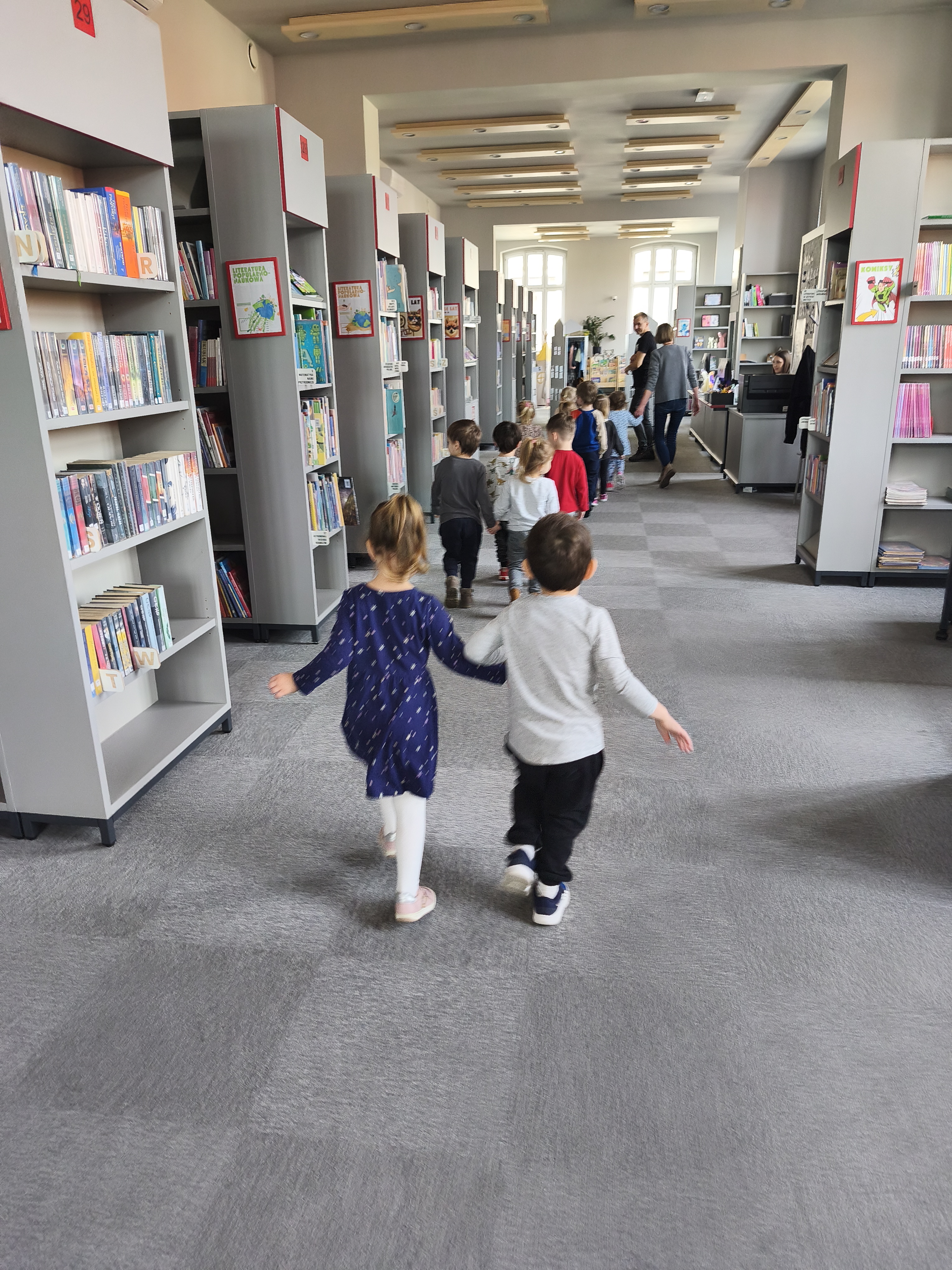 24 marca dzieci z grupy Borowiki odwiedziły bibliotekę multimedialną w Rawiczu. Od samego rana czekała na nas pani, która oprowadziła nas po budynku i opowiadziała o jego funkcjonowaniu. Następnie dzieci z dużym zainteresowaniem wysłuchały bajkę o zwiastunach wiosny. Dowiedzieliśmy się co zrobić, aby zostać małym czytelnikiem i otrzymać nagrodę w programie "Mała książka - wielki człowiek". Następnie wzięliśmy udział w warsztatach, podczas których dzieci wykonały zakładki do książek. Wiele pozytywnych emocji wzbudził także pokój lego - prawdziwy raj dla niejednego dziecka. Na zakończenie wizyty dzieci miały okazję skorzystać z zabaw multimedialnych. Był to dzień pełen wrażen, radości i nowych doświadczeń. Mamy nadzieję, że grupa Borowiki będzie często wracać do biblioteki.