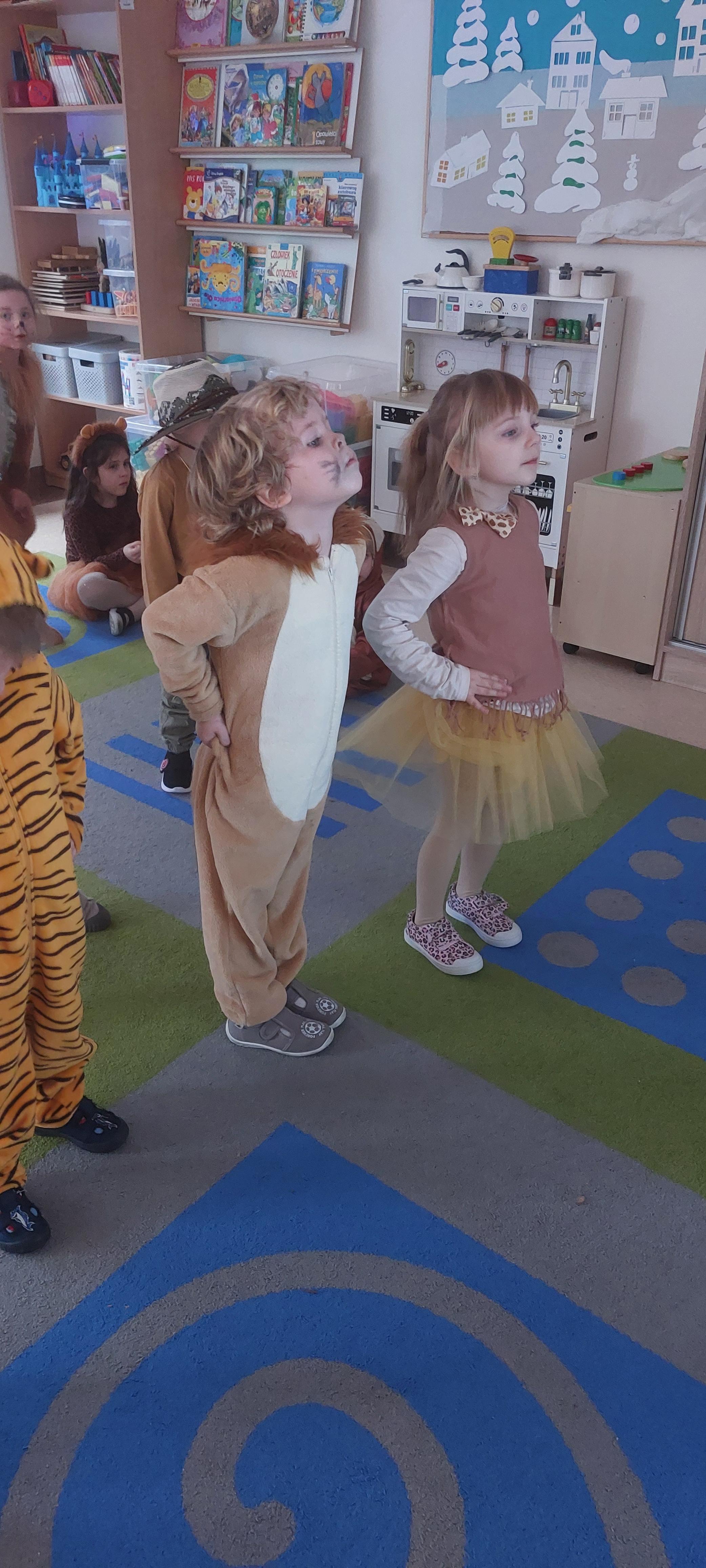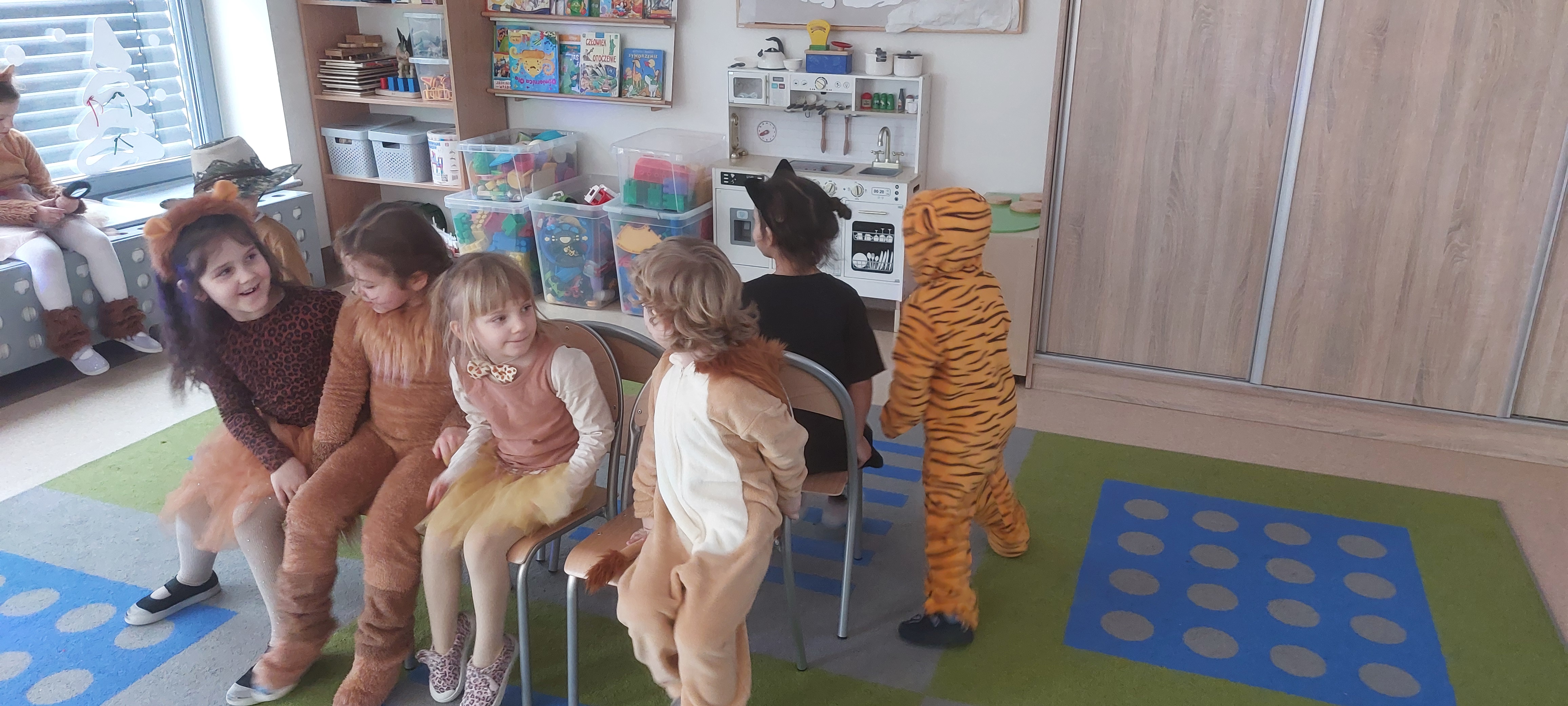 4 lutego w Naszym przedszkolu odbył się balik karnawałowy, którego motywem przewodnim była tajemnicza i pełna niespodzianek dżungla. Dzieci przebrały się za różne zwierzęta. Były małpy,lwy, żyrafy, zebry. Nie zabrakło również prawdziwych odkrywców. Dzieci bawiły się przy rytmach tropikalnych piosenek, tańczyły w kółko, a także brały udział w różnych zabawach rytmiczno-naśladowczych. Na twarzach przedszkolaków było widać ogromną radość i satysfakcję z udanej zabawy.
