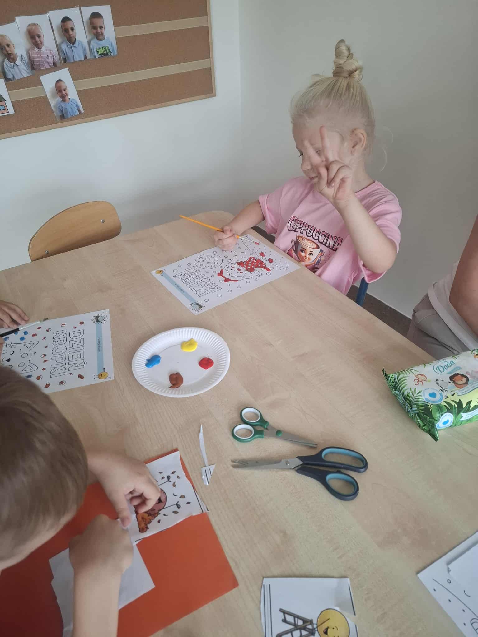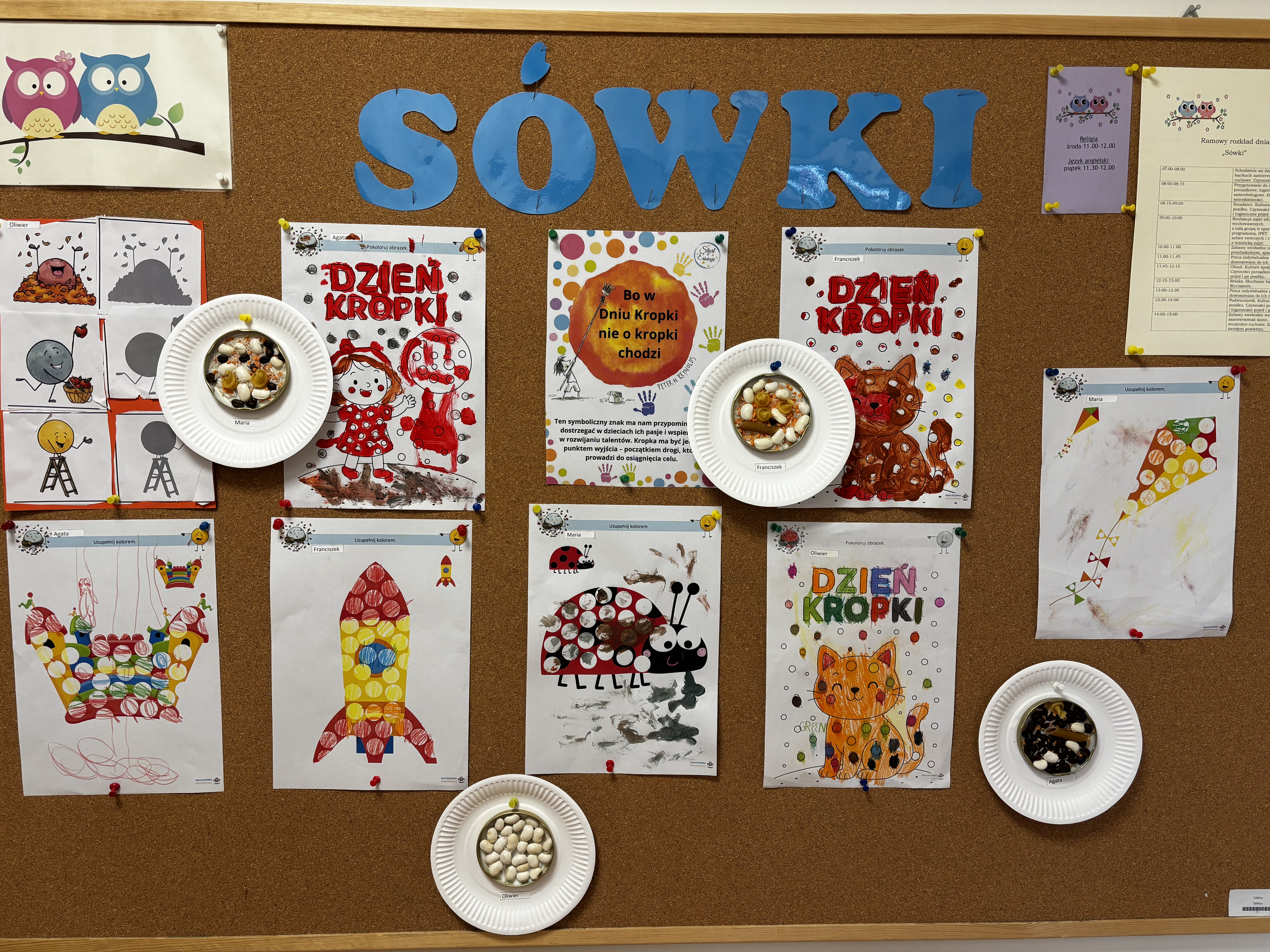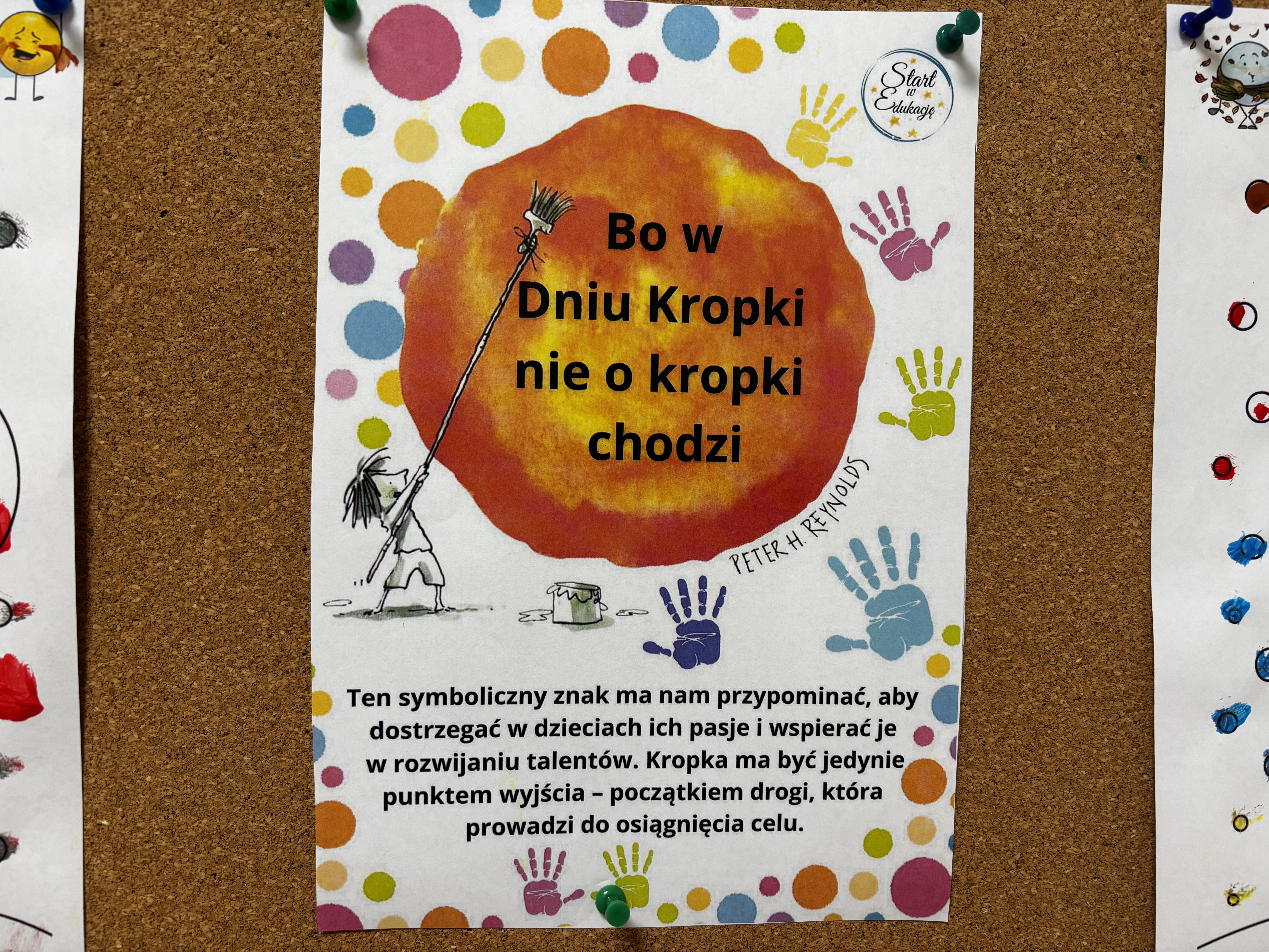 15 września obchodziliśmy w naszym przedszkolu Międzynarodowy Dzień Kropki – święto kreatywności, odwagi i zabawy. Tego dnia na dzieci czekało wiele ciekawych aktywności. Wykonywaliśmy prace plastyczne z kropką w roli głównej, które pozwoliły przedszkolakom puścić wodze fantazji i stworzyć niepowtarzalne dzieła.Nie zabrakło również zabaw z wykorzystaniem pomocy sensorycznych, które wspierały rozwój zmysłów, motoryki i wyobraźni dzieci. Kropki pojawiały się w różnych formach – kolorowe, duże, małe, namalowane, naklejone czy dotykowe.Dzień Kropki był doskonałą okazją, aby każdy przedszkolak mógł poczuć się wyjątkowy, odkryć swoje talenty i świetnie się bawić