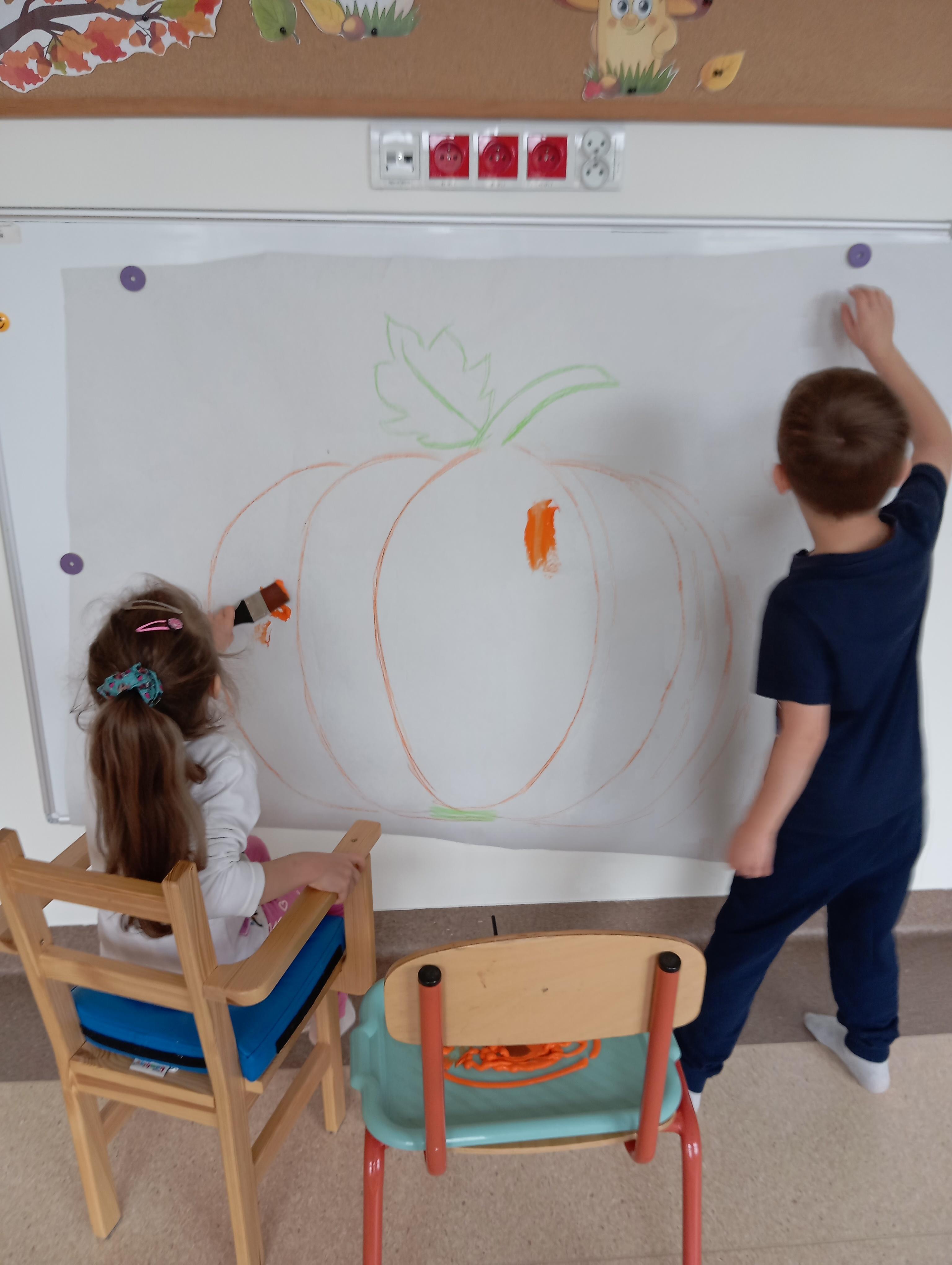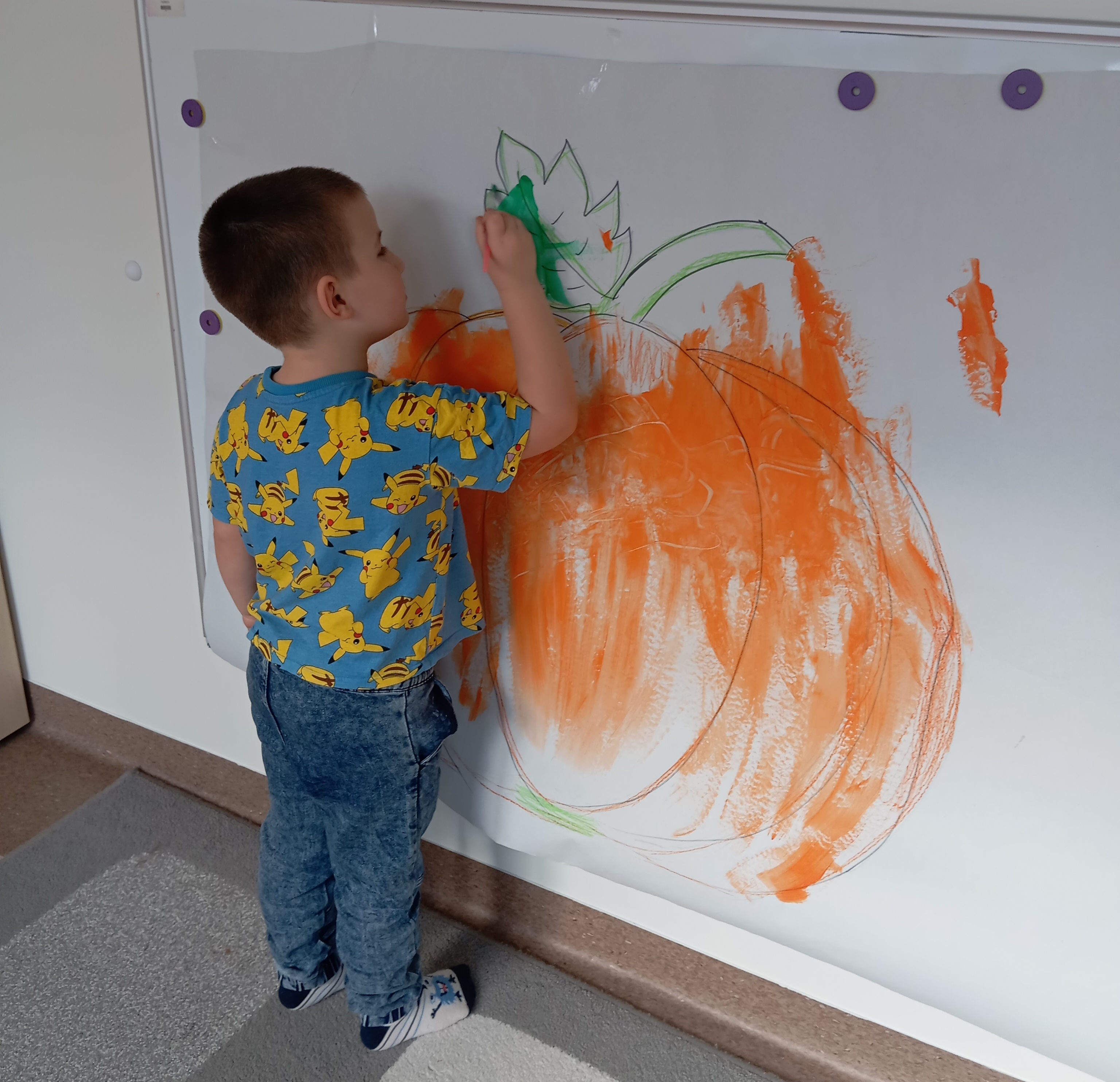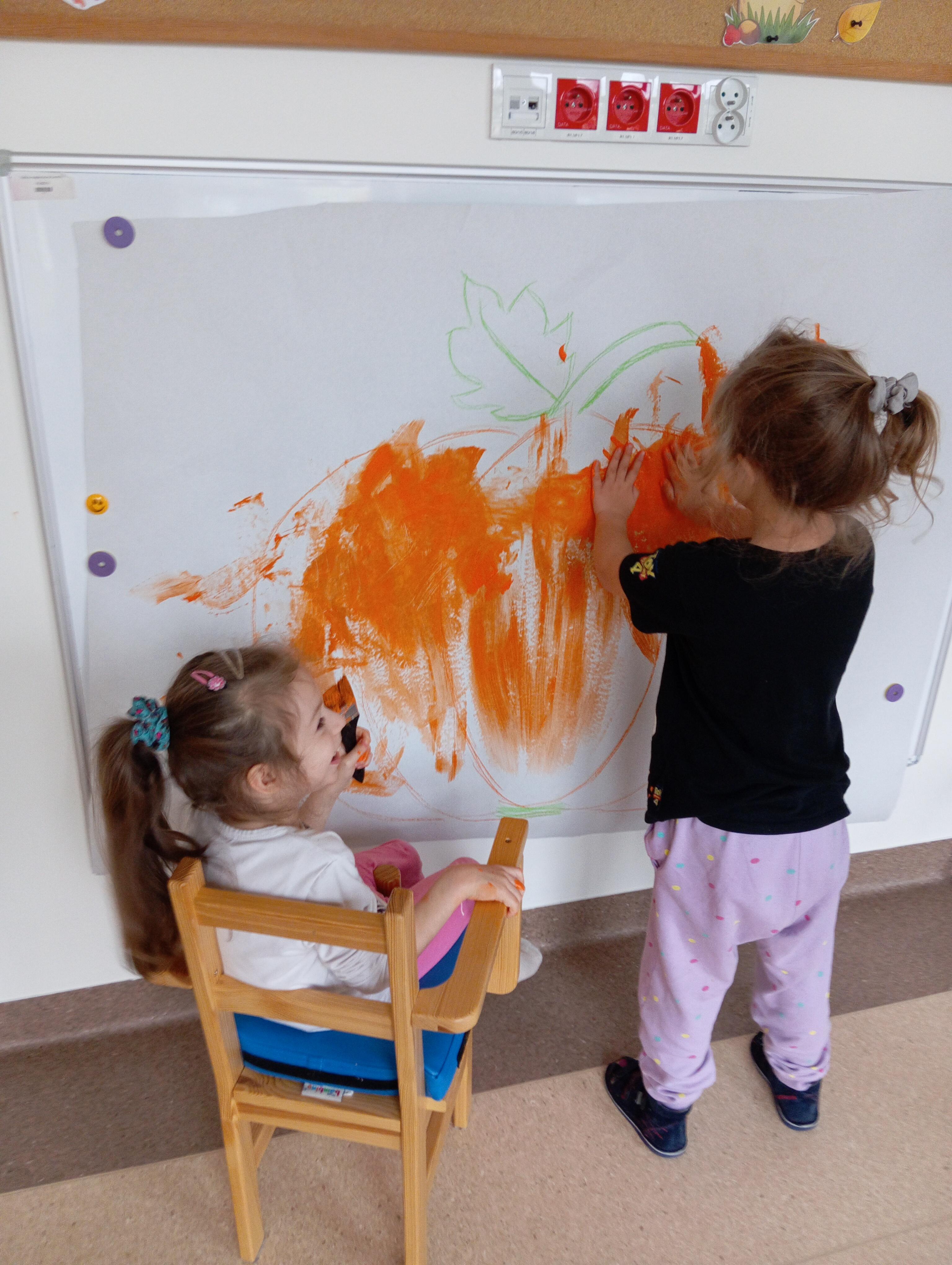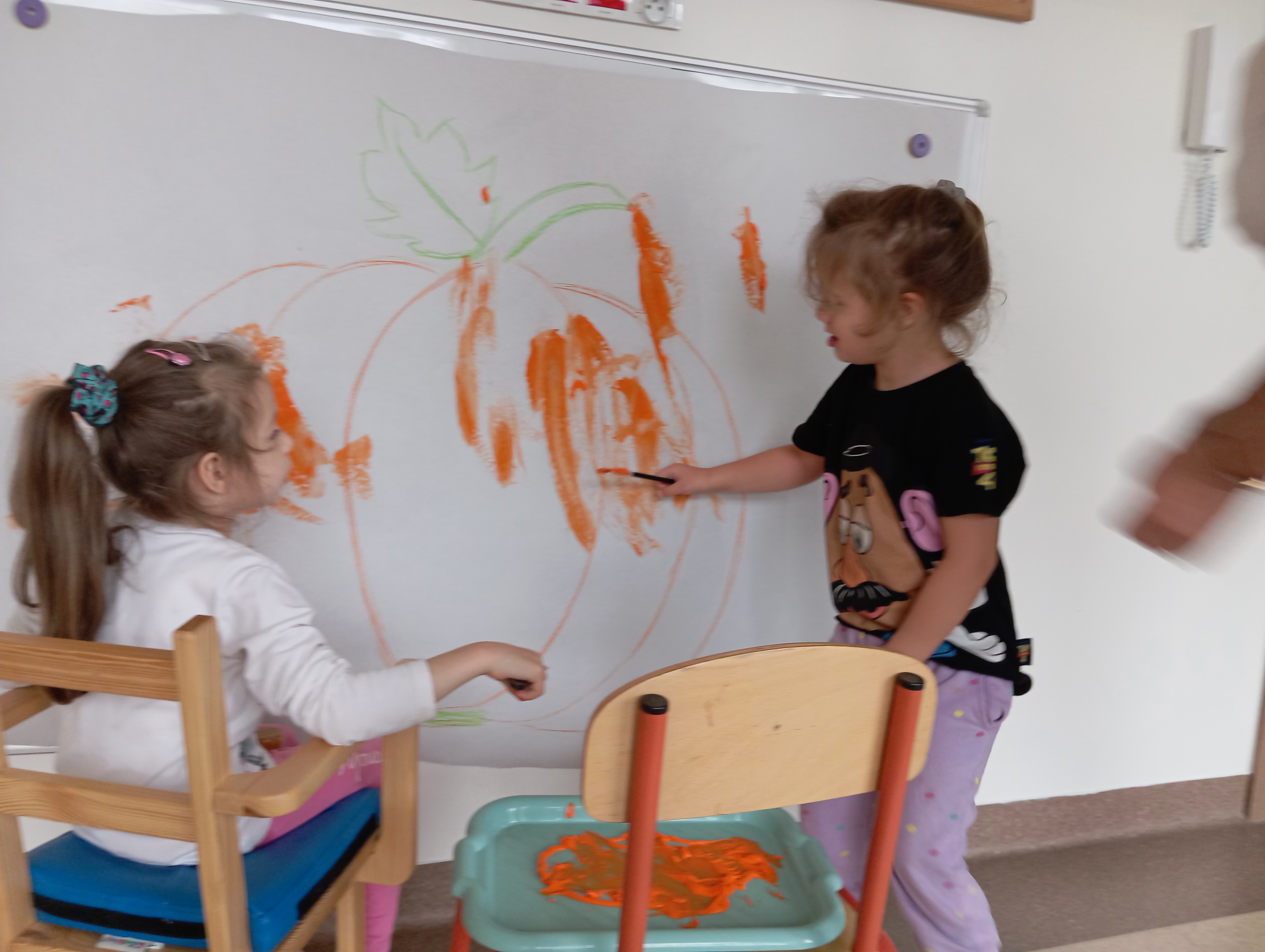 To był dzień zdominowany przez kolor pomarańczowy, a to za sprawą Dnia Dyni, obchodzonego w całym naszym przedszkolu:) "Dyniowa głowa", "Wędrująca dynia", "Portret dyni", to tylko niektóre z zabaw, w których braliśmy udział w dyniowym dniu:)