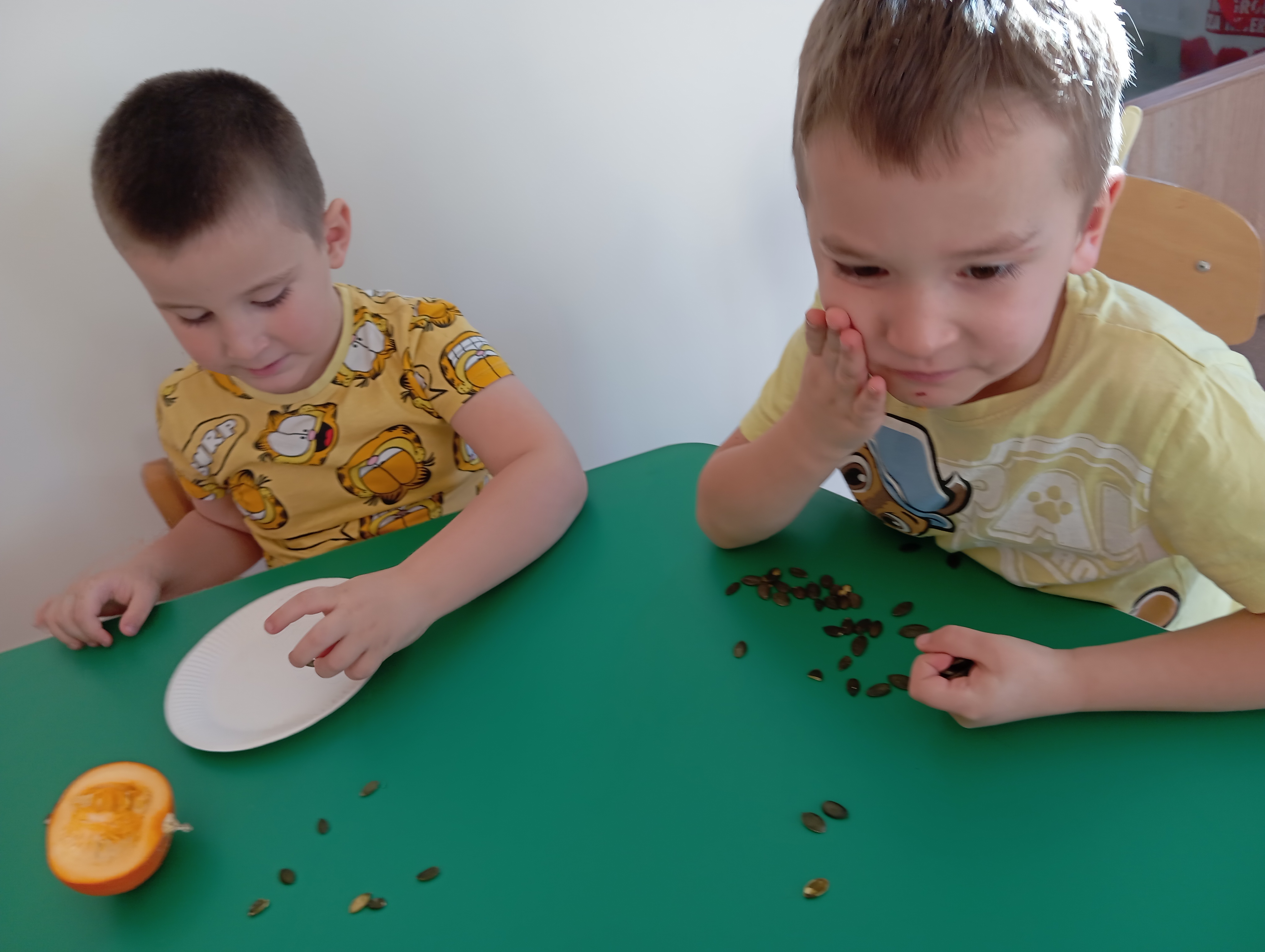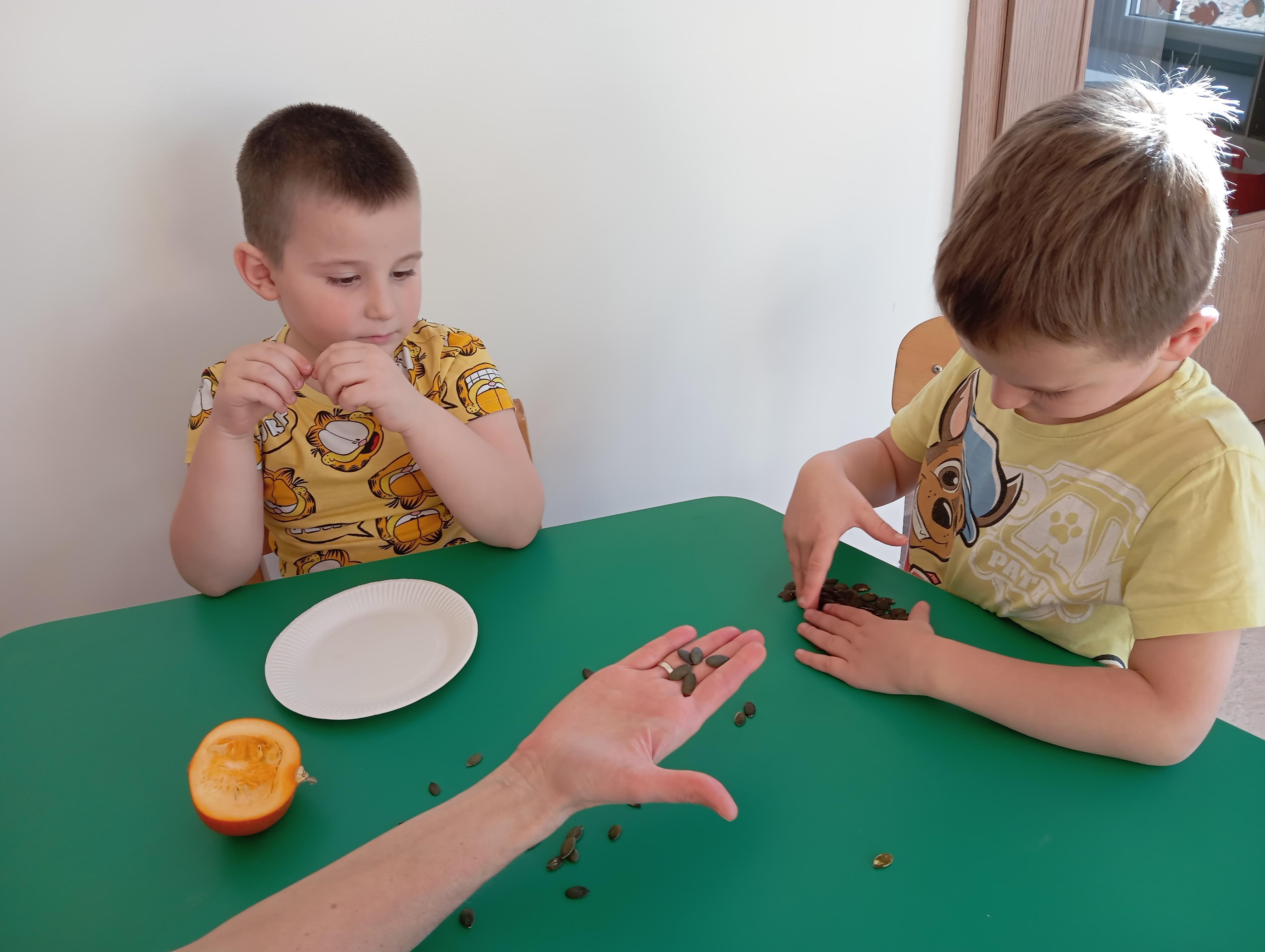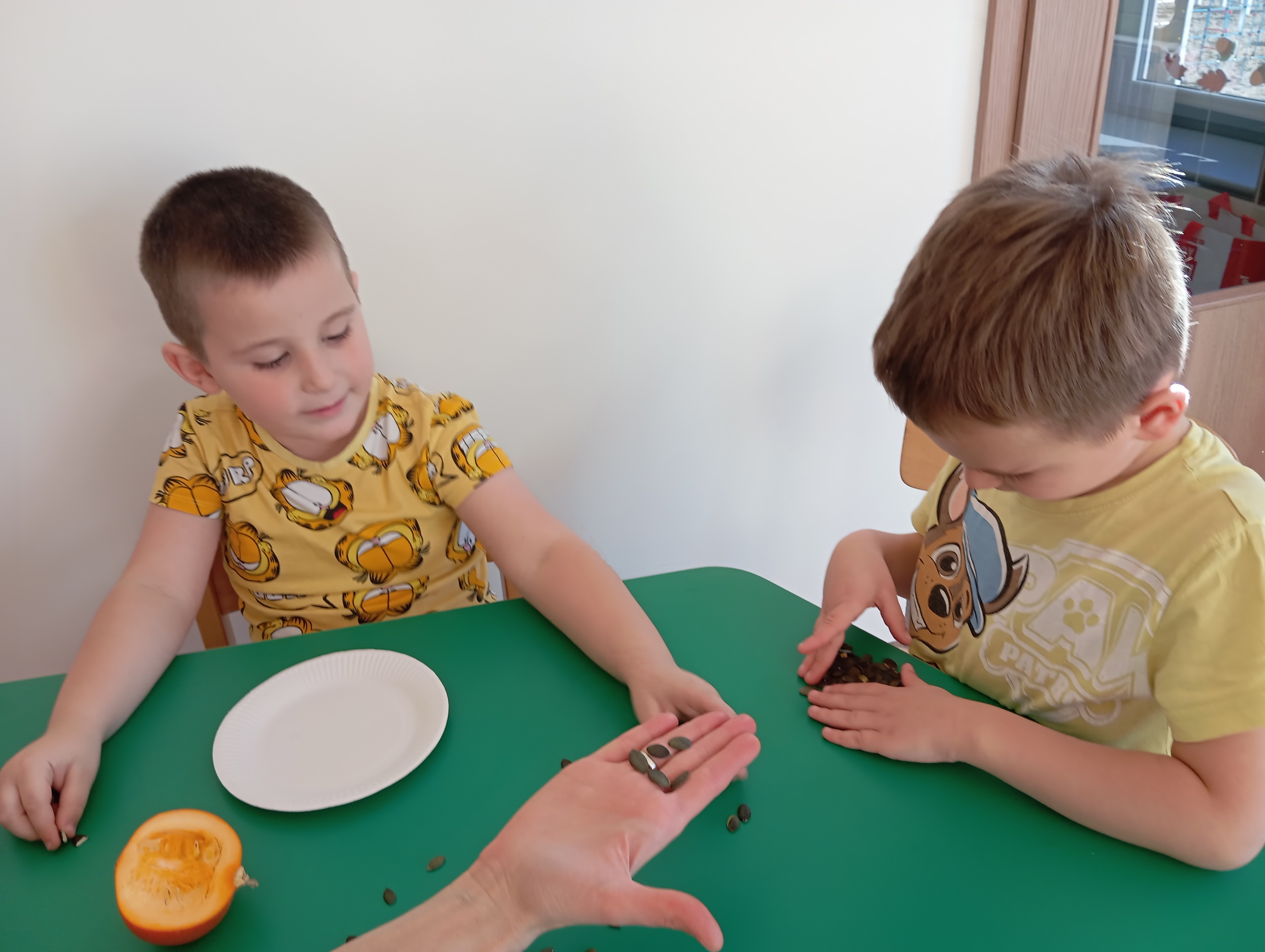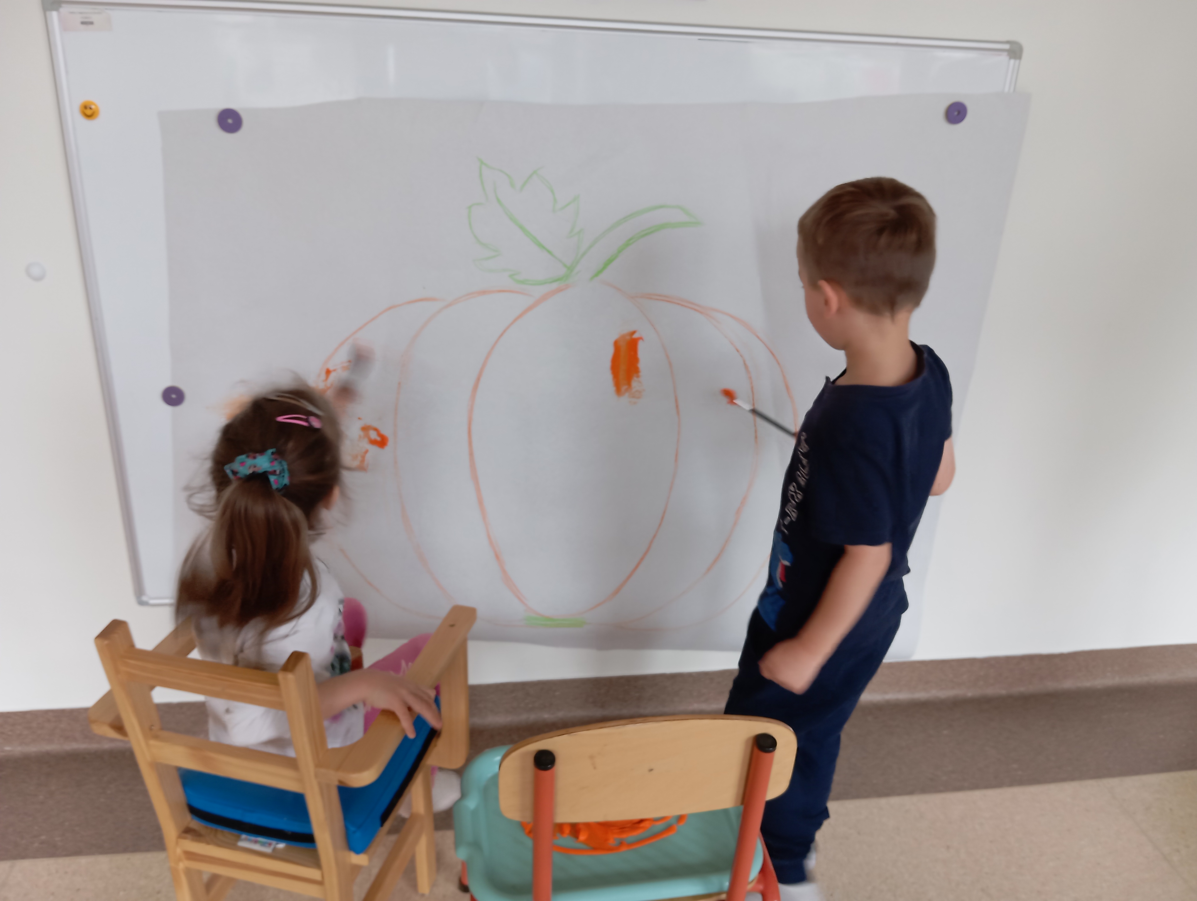 To był dzień zdominowany przez kolor pomarańczowy, a to za sprawą Dnia Dyni, obchodzonego w całym naszym przedszkolu:) "Dyniowa głowa", "Wędrująca dynia", "Portret dyni", to tylko niektóre z zabaw, w których braliśmy udział w dyniowym dniu:)