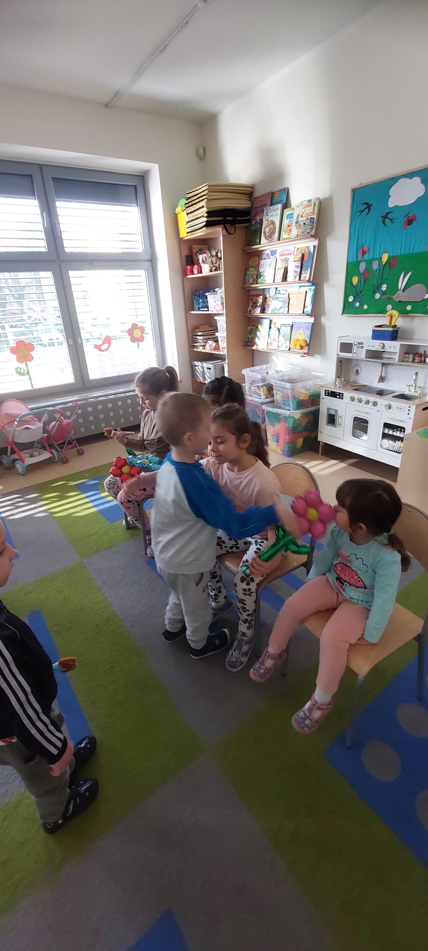 8 marca to wyjątkowy dzień w roku. Wtedy swoje święto obchodzą wszystkie kobiety, zarówno te duże, jak i te małe. W poniedziałek wszyscy chłopcy z grupy składali życzenia, wręczali kwiatki oraz drobne upominki kole zankom z grupy.