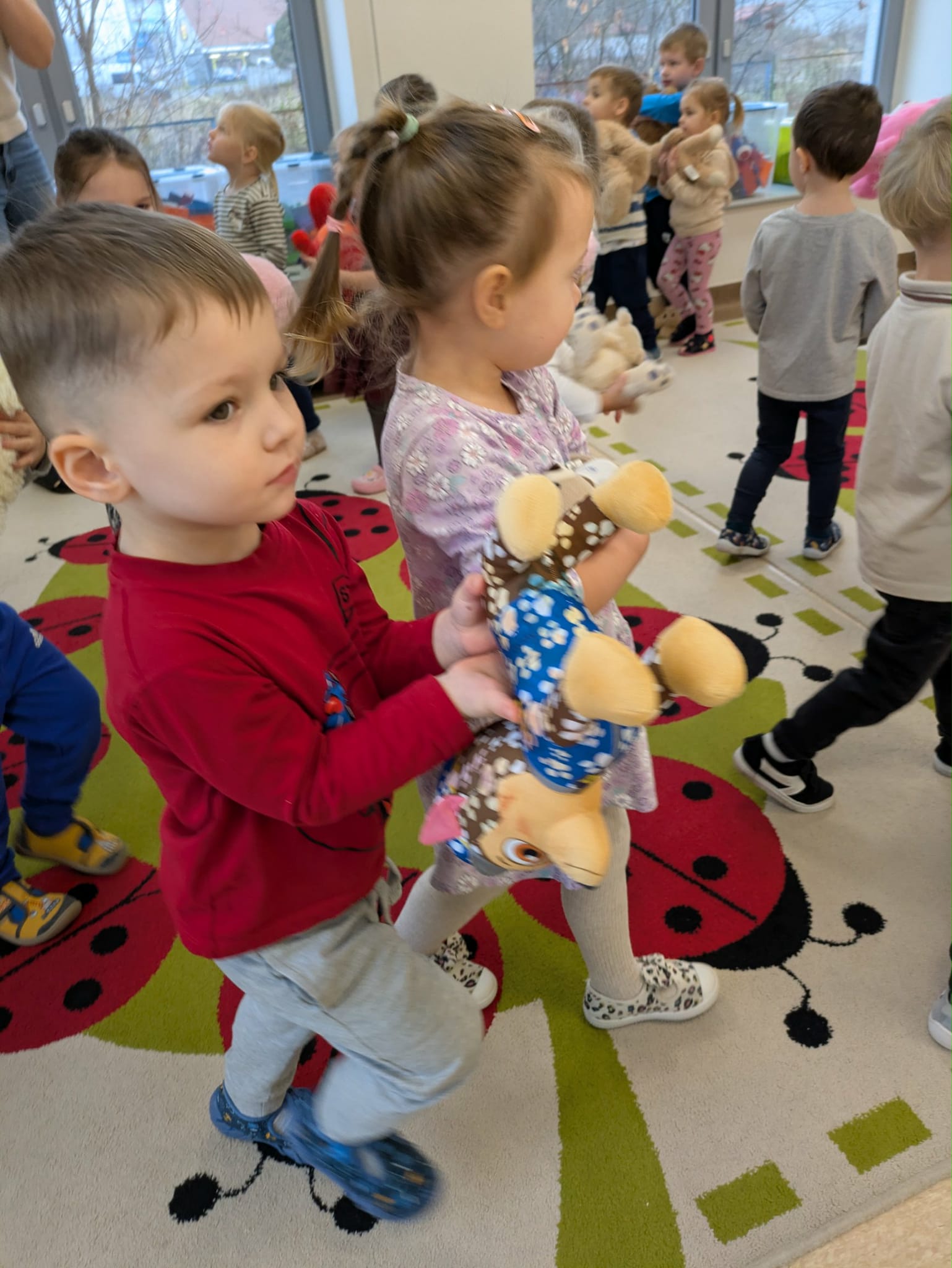 25 listopada w naszym przedszkolu świętowaliśmy Dzień Pluszowego Misia. Dzieci przyniosły swoje ulubione pluszaki, które towarzyszyły im przez cały dzień. Przedszkolaki brały udział w wesołych zabawach ruchowych, zagadkach, teatrzyku kamishibai. Wykonały też prace plastyczną związaną z misiami. Odwiedziła nas mama Bartusia, która przeczytała bajki o misiach oraz przygotowała tematyczną niespodzianke. Nie zabrakło wspólnych zdjęć i radosnej atmosfery. To był wyjątkowy dzień, pełen uśmiechu, przytulania i dobre zabawy.