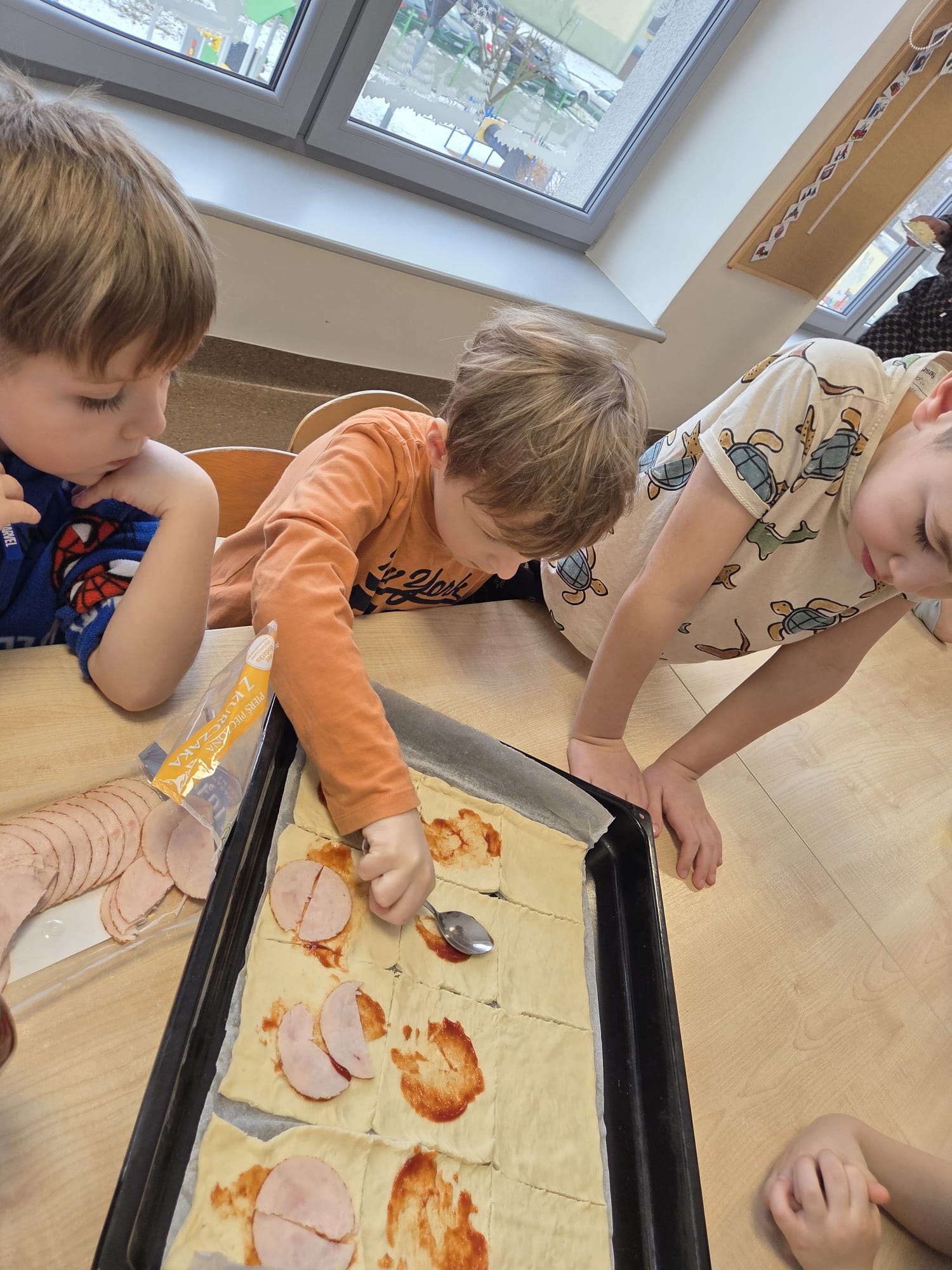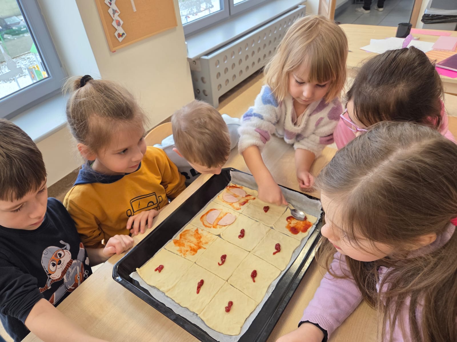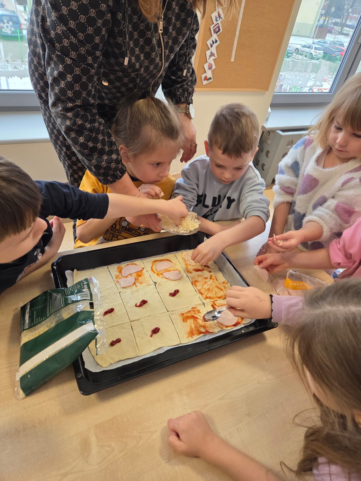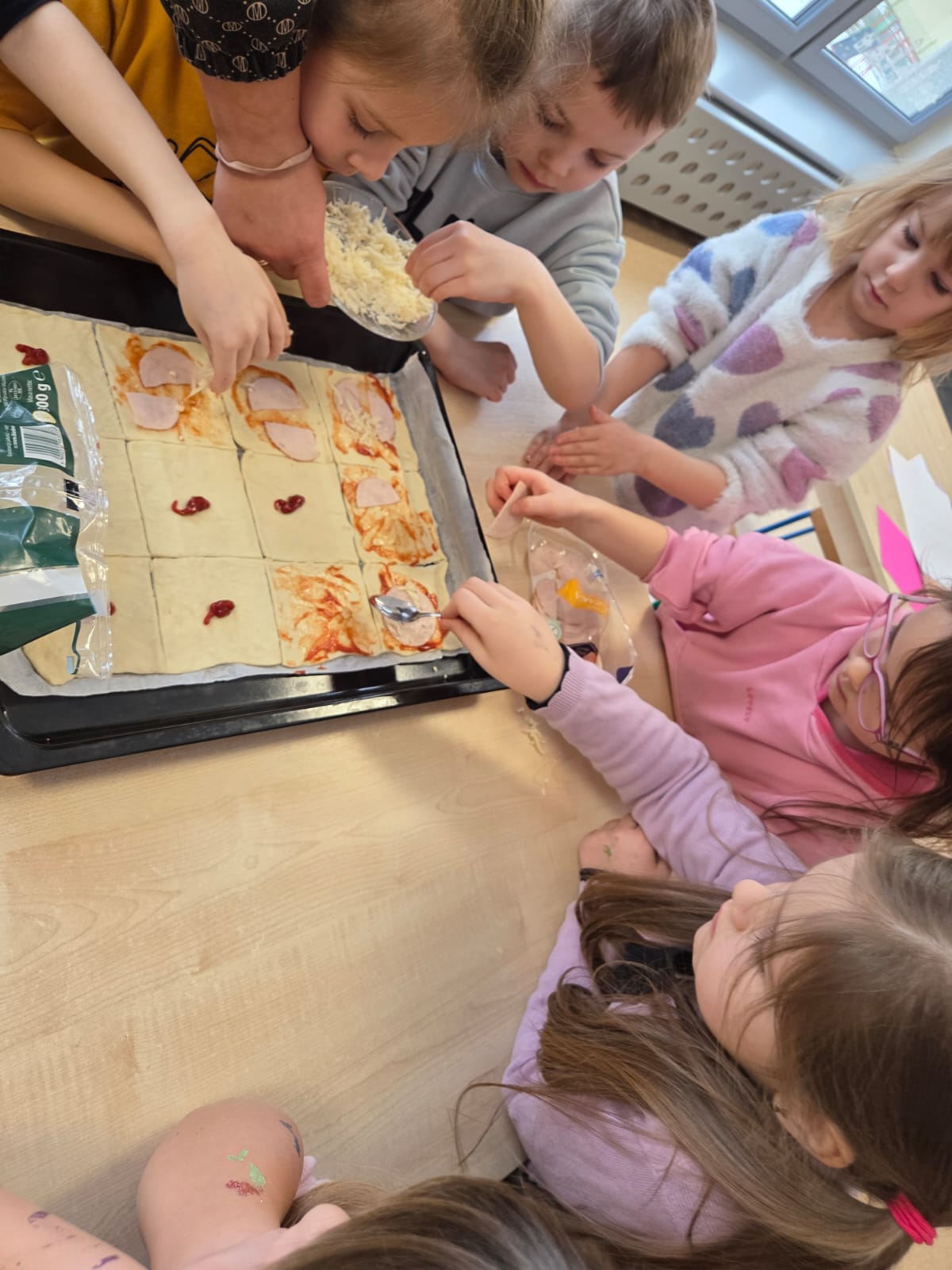 Napsza grupa postanowiła wspólnie uczcić dzień Pizzy. Najpierw ją przygotowaliśmy, a później wspólnie zjedliśmy. Była pyszna i chrupiąca.