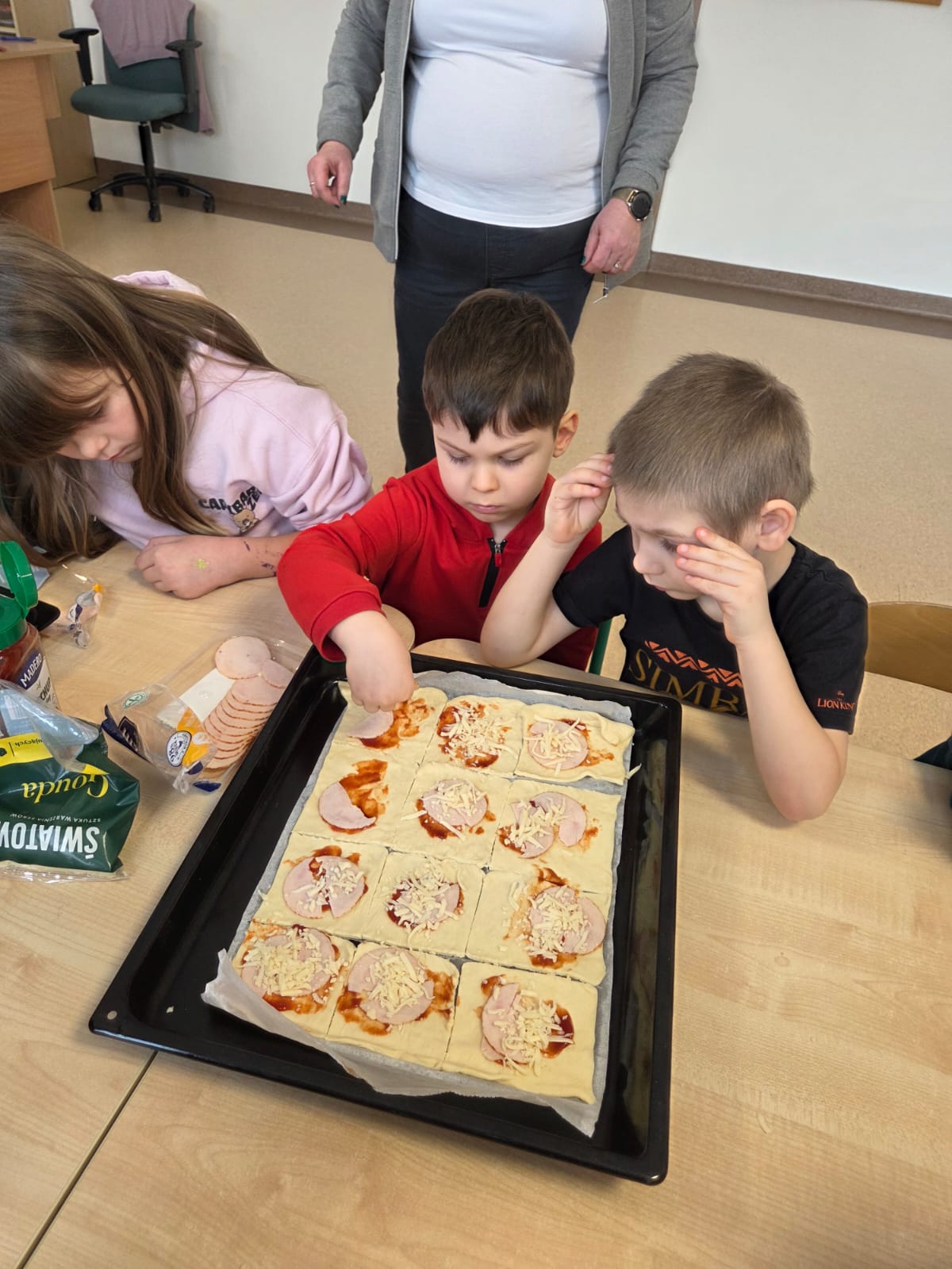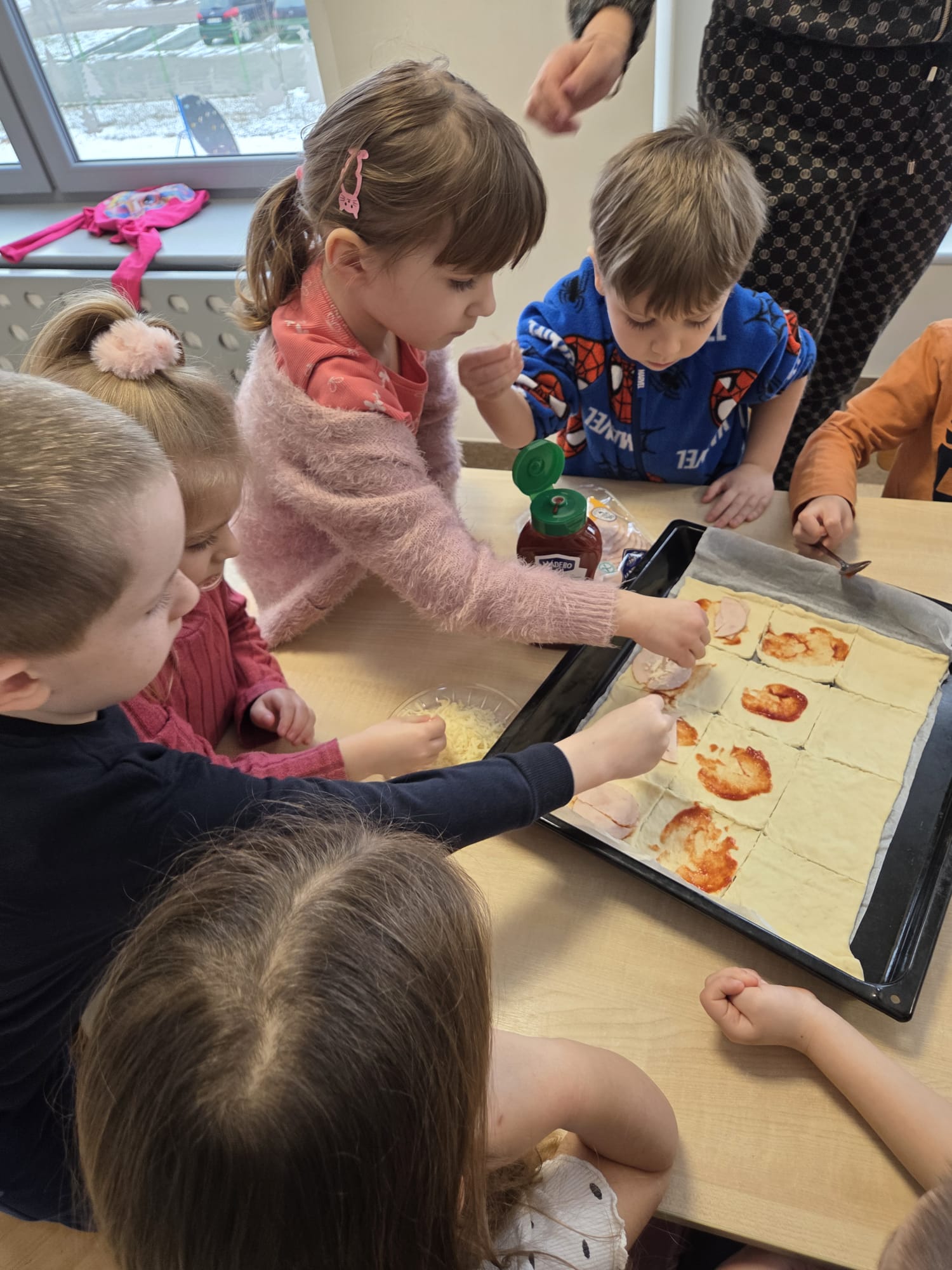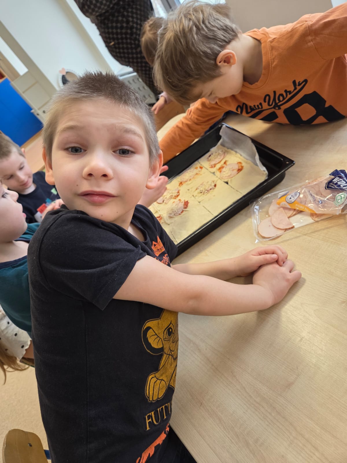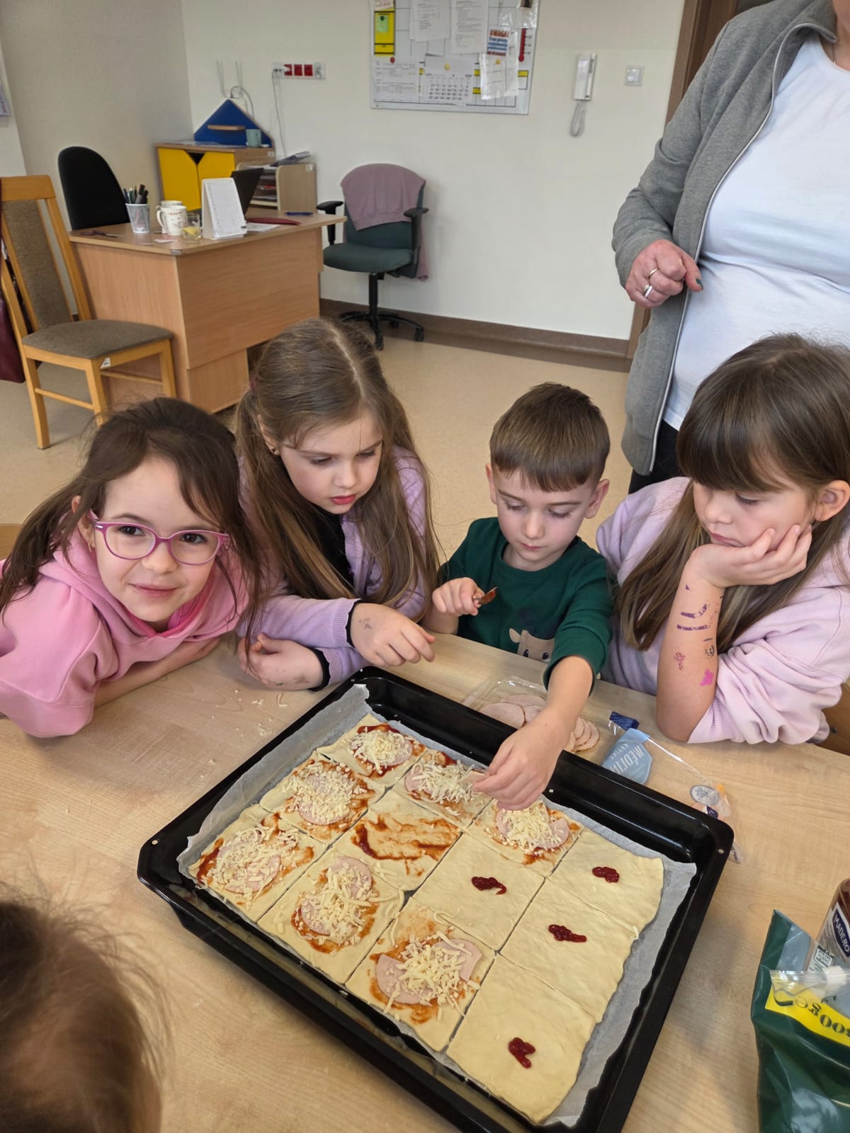 Napsza grupa postanowiła wspólnie uczcić dzień Pizzy. Najpierw ją przygotowaliśmy, a później wspólnie zjedliśmy. Była pyszna i chrupiąca.