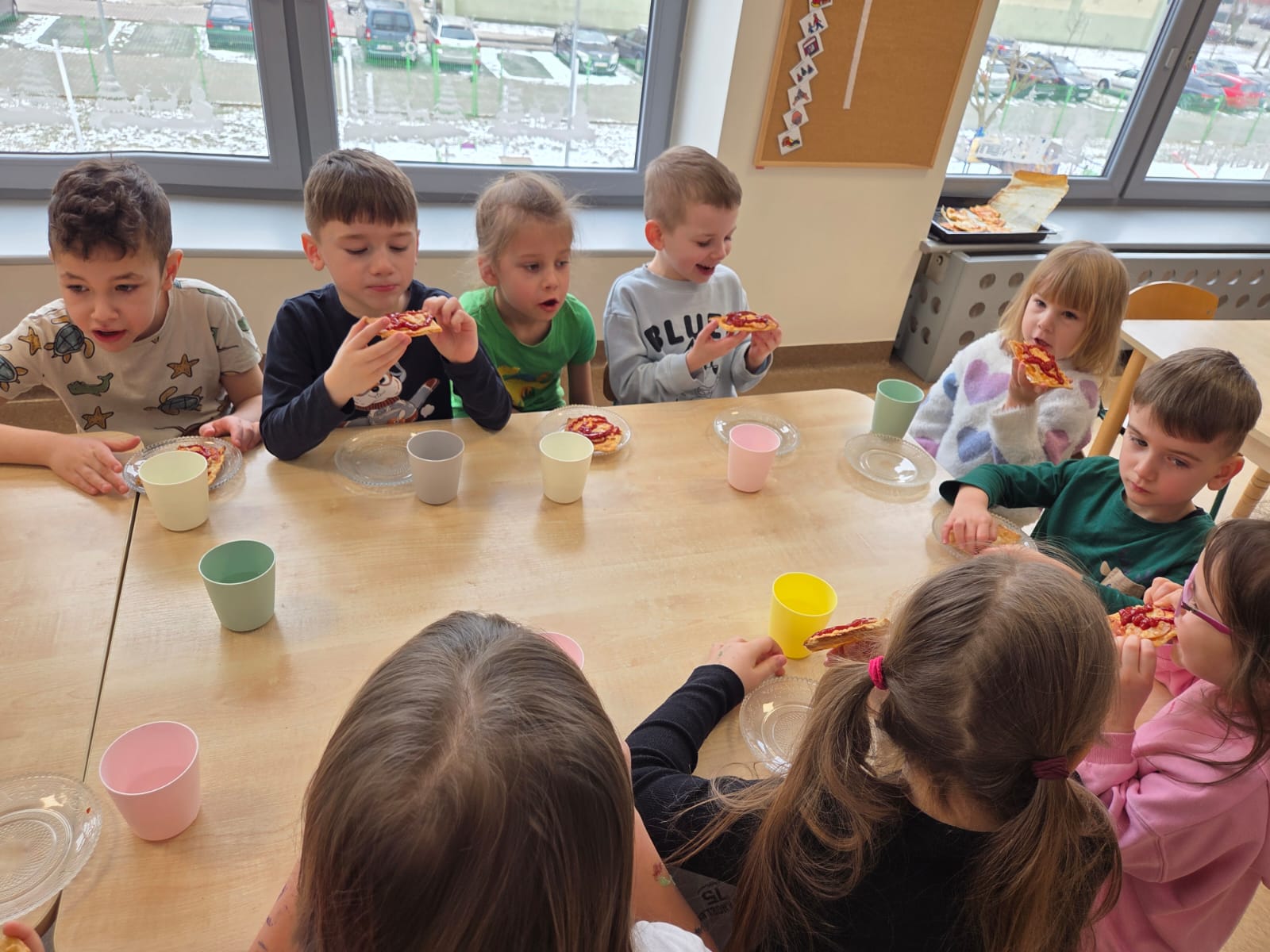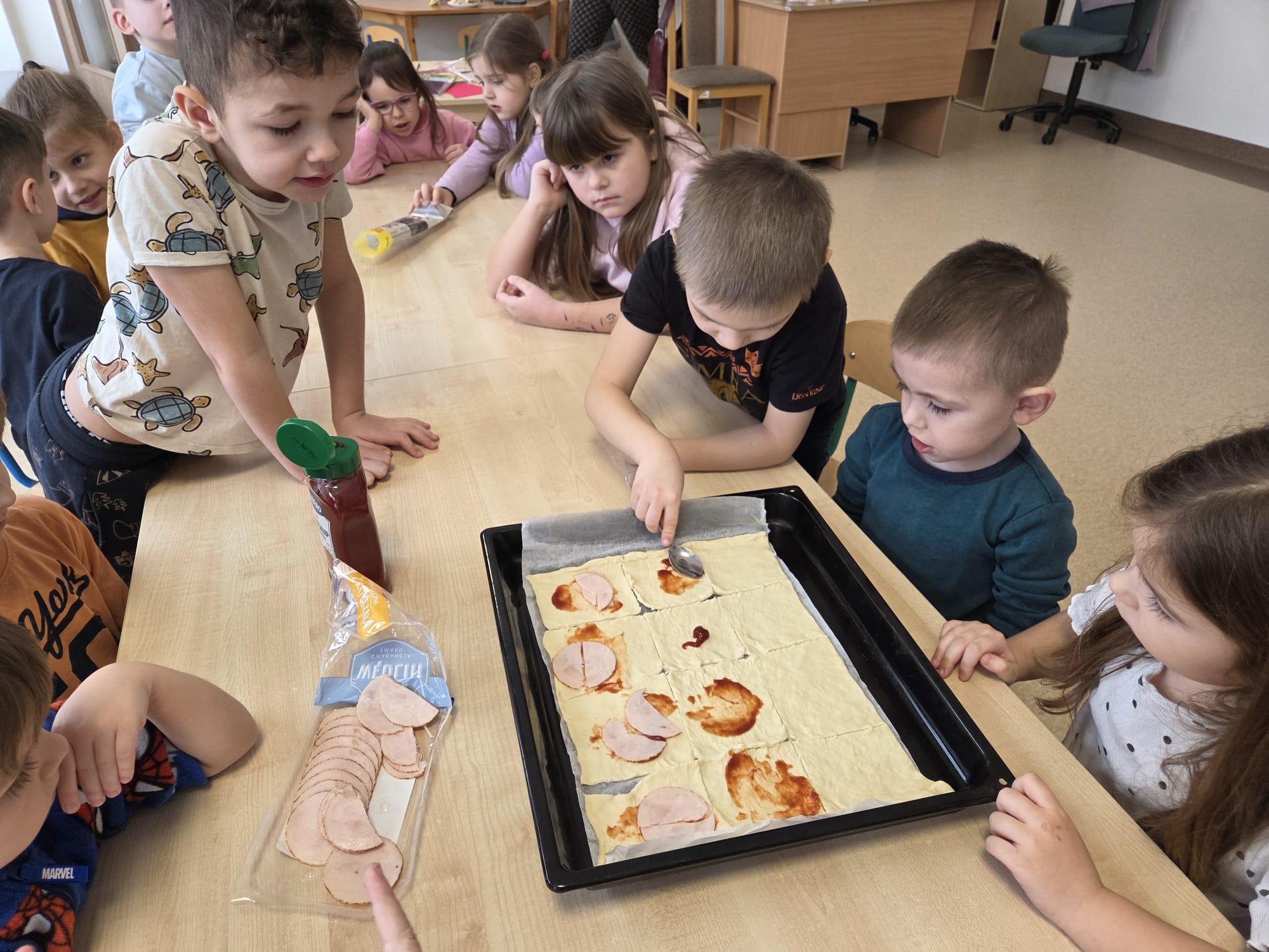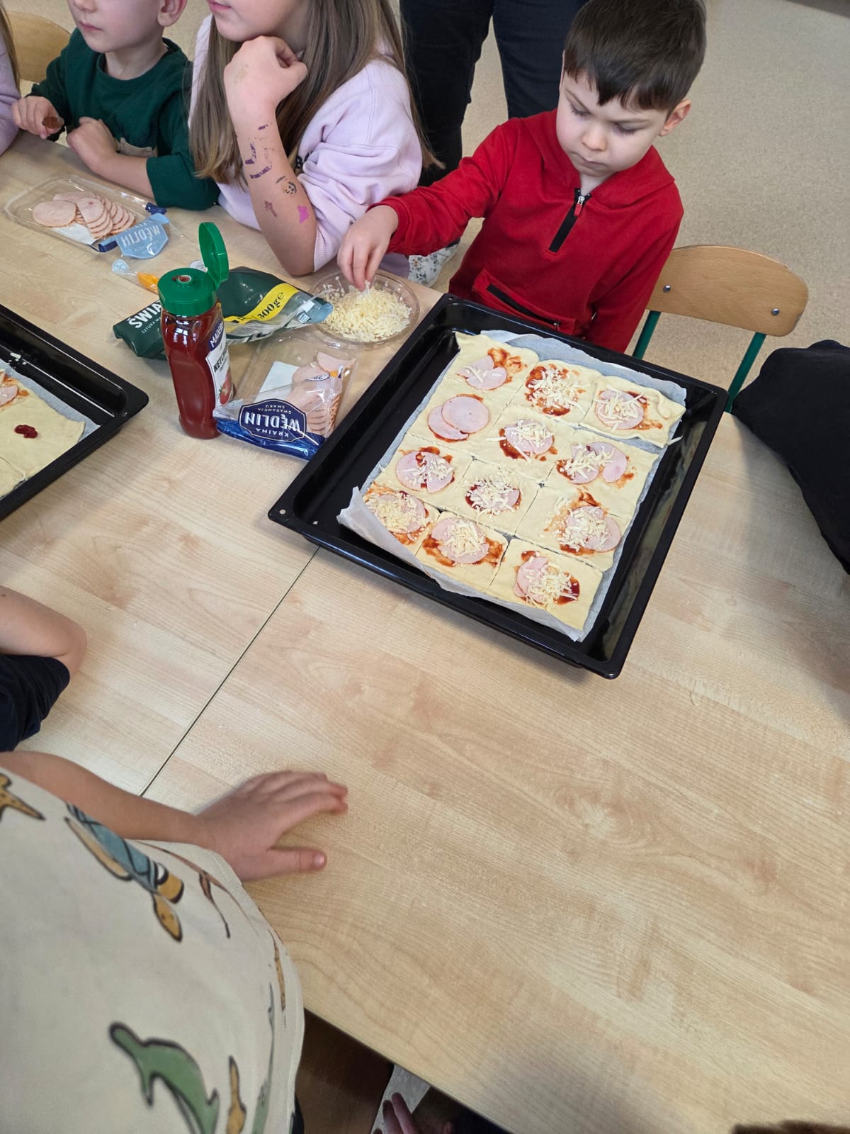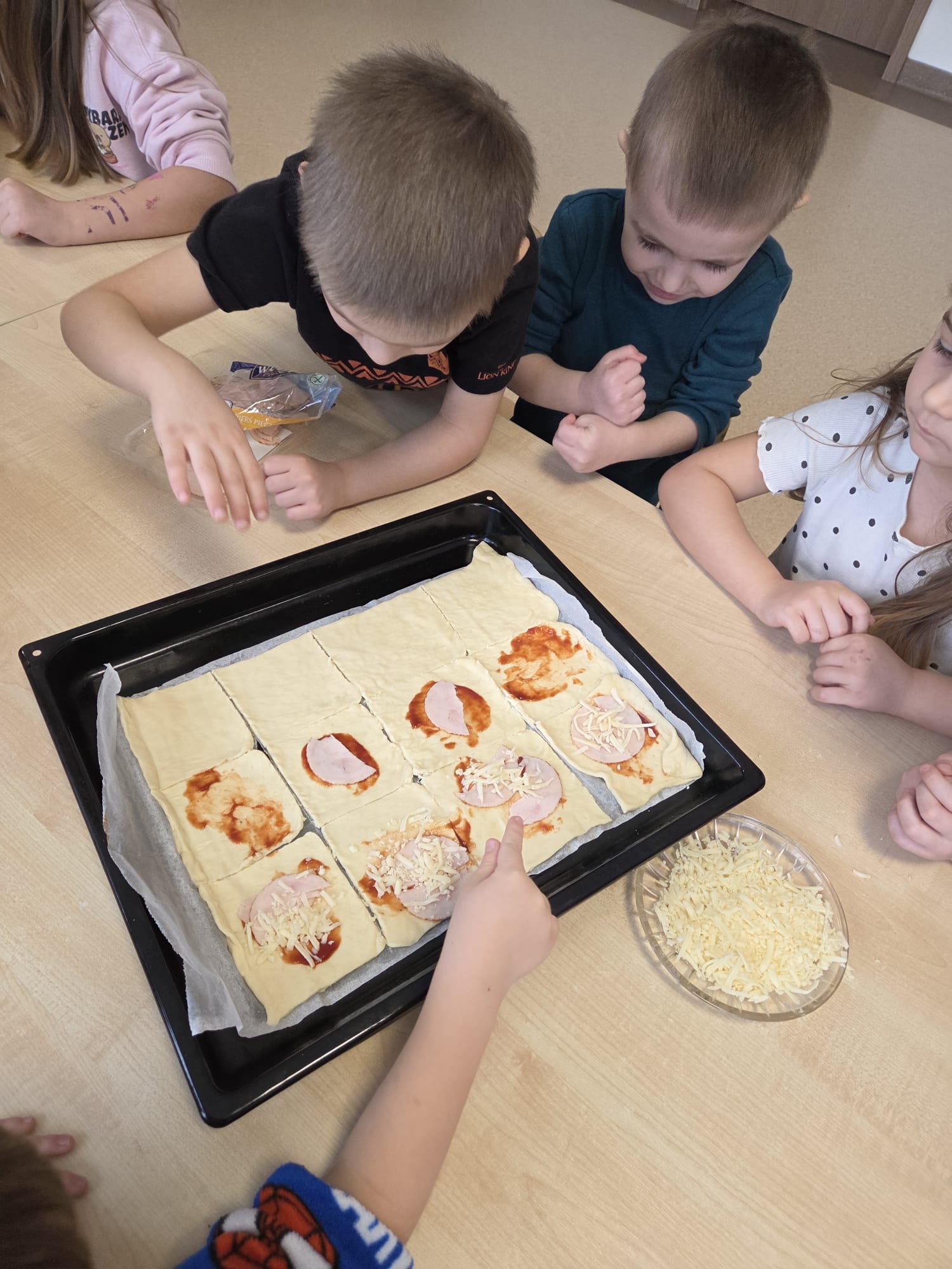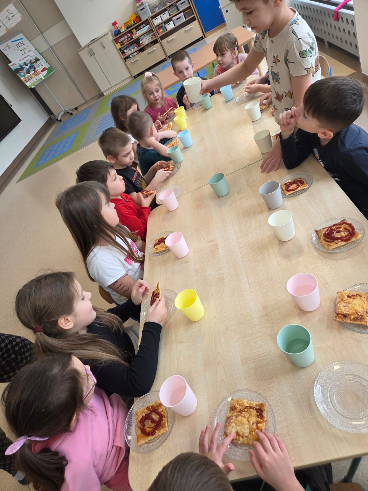 Napsza grupa postanowiła wspólnie uczcić dzień Pizzy. Najpierw ją przygotowaliśmy, a później wspólnie zjedliśmy. Była pyszna i chrupiąca.