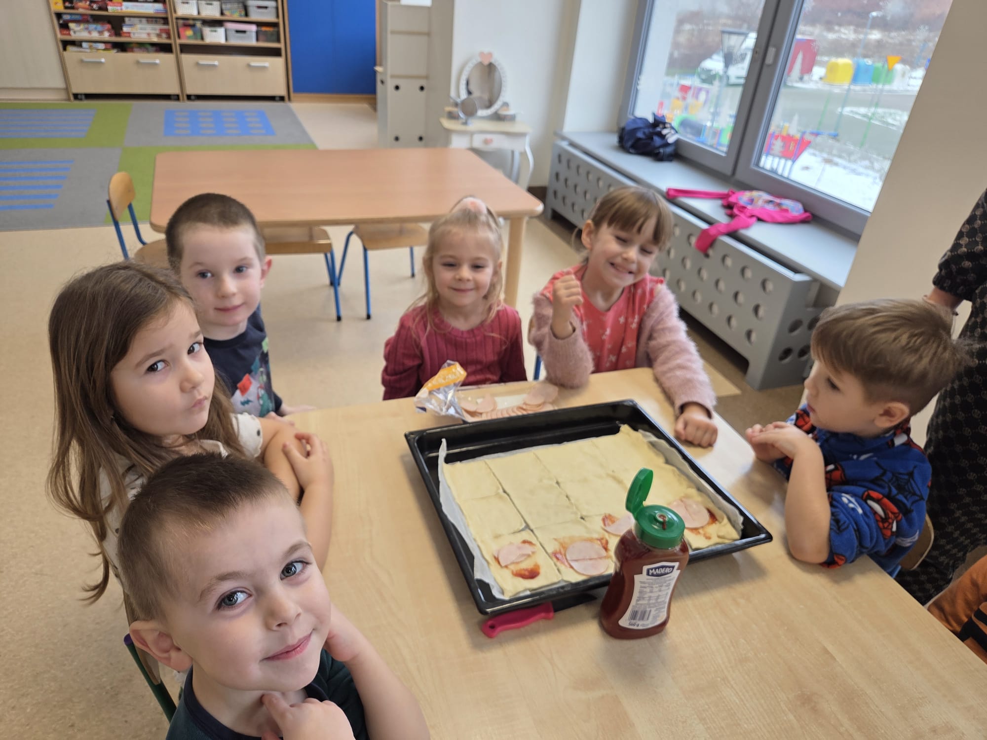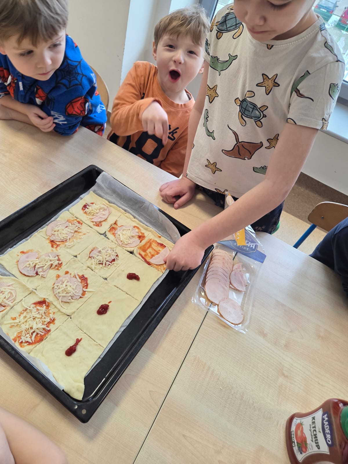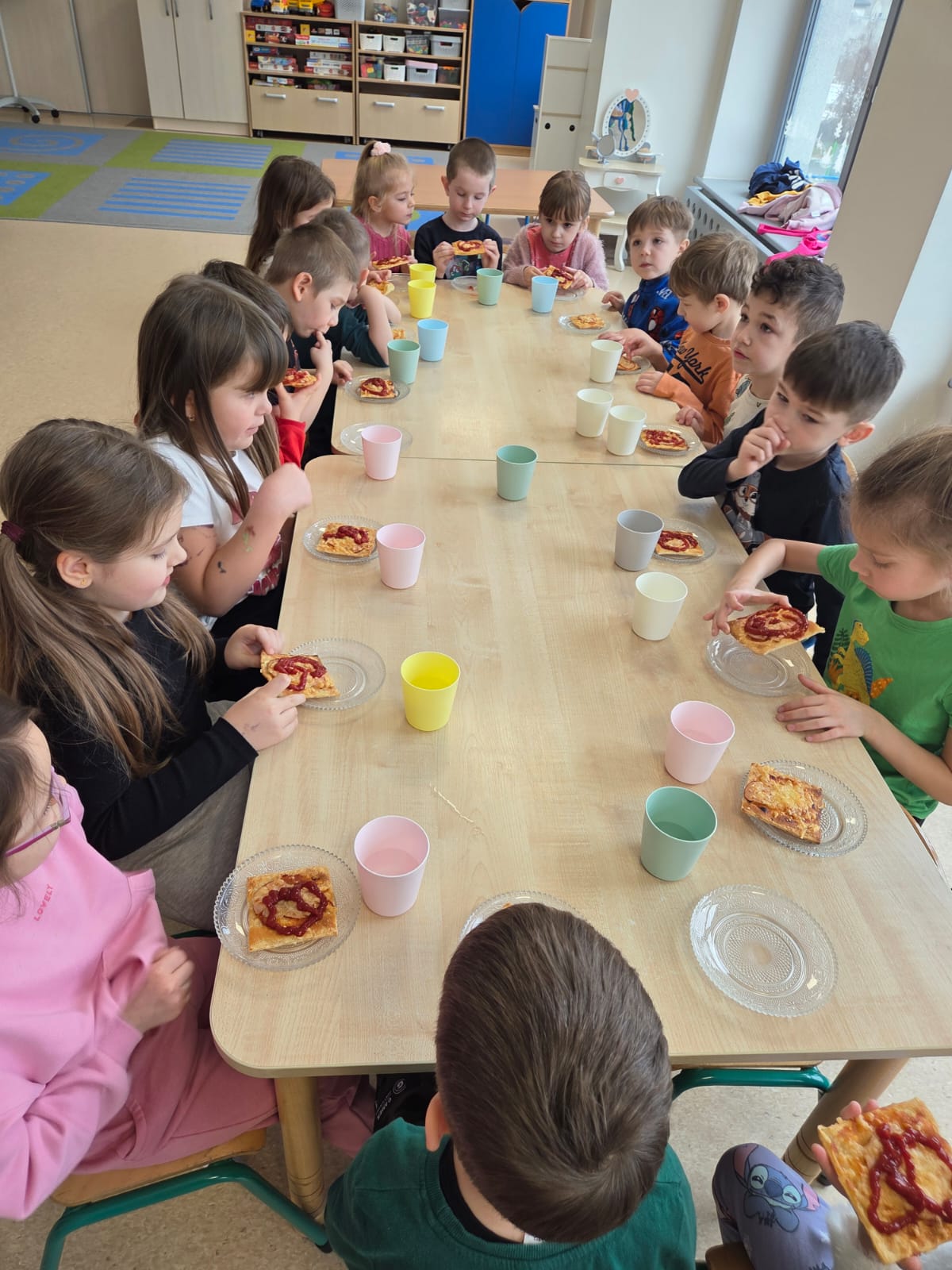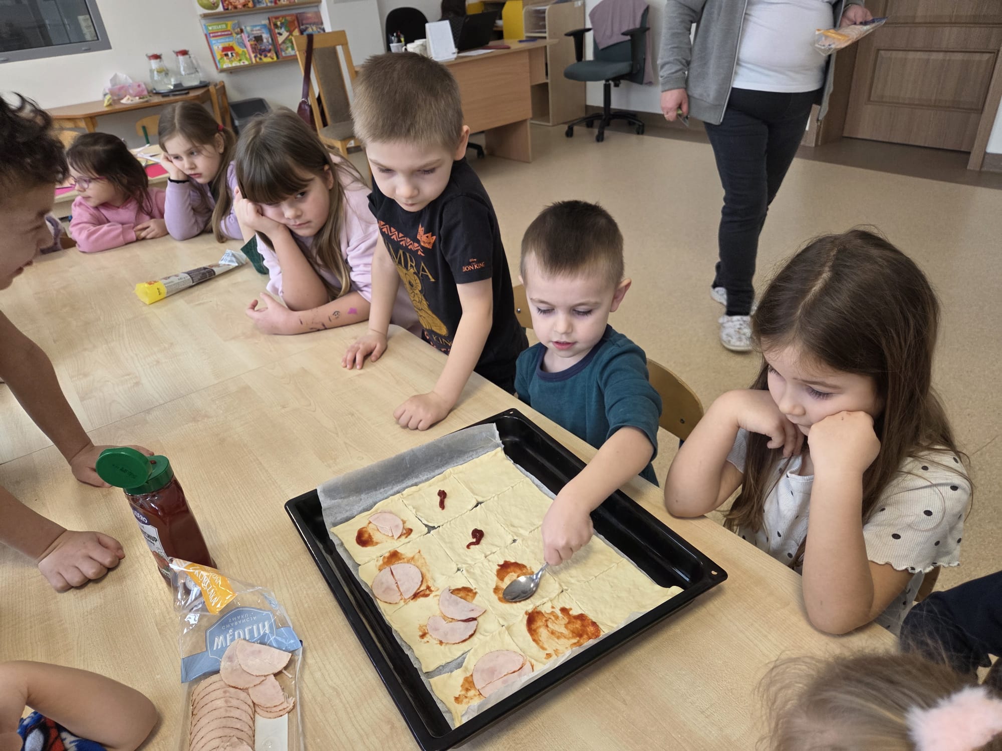 Napsza grupa postanowiła wspólnie uczcić dzień Pizzy. Najpierw ją przygotowaliśmy, a później wspólnie zjedliśmy. Była pyszna i chrupiąca.