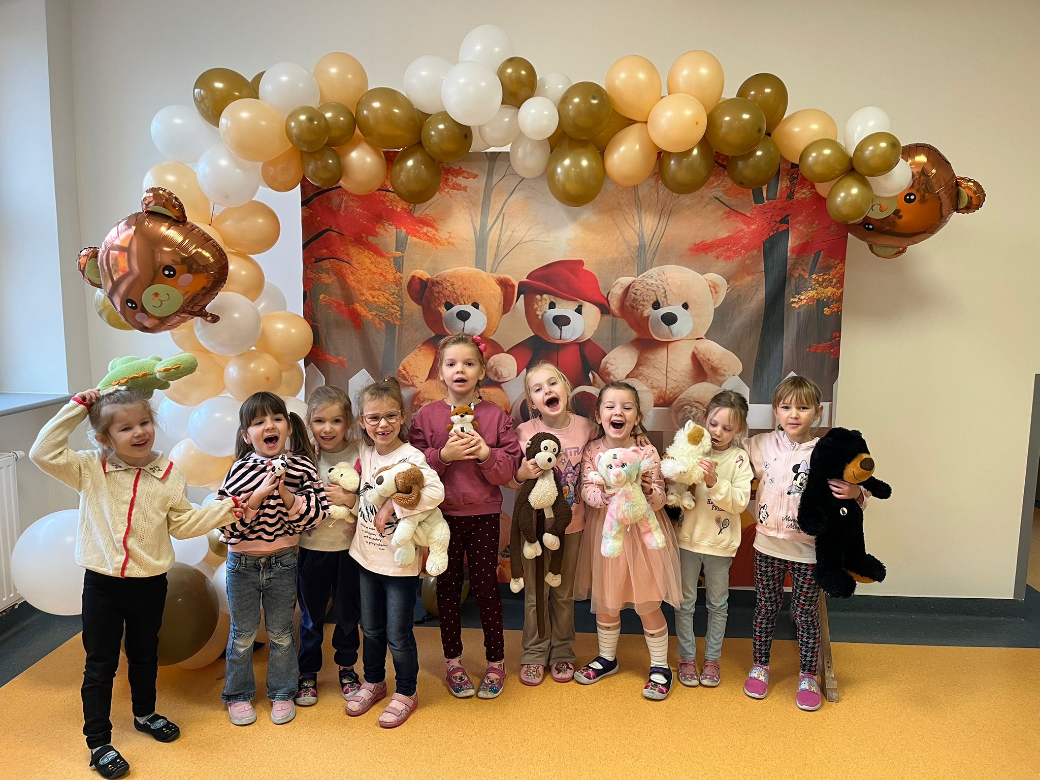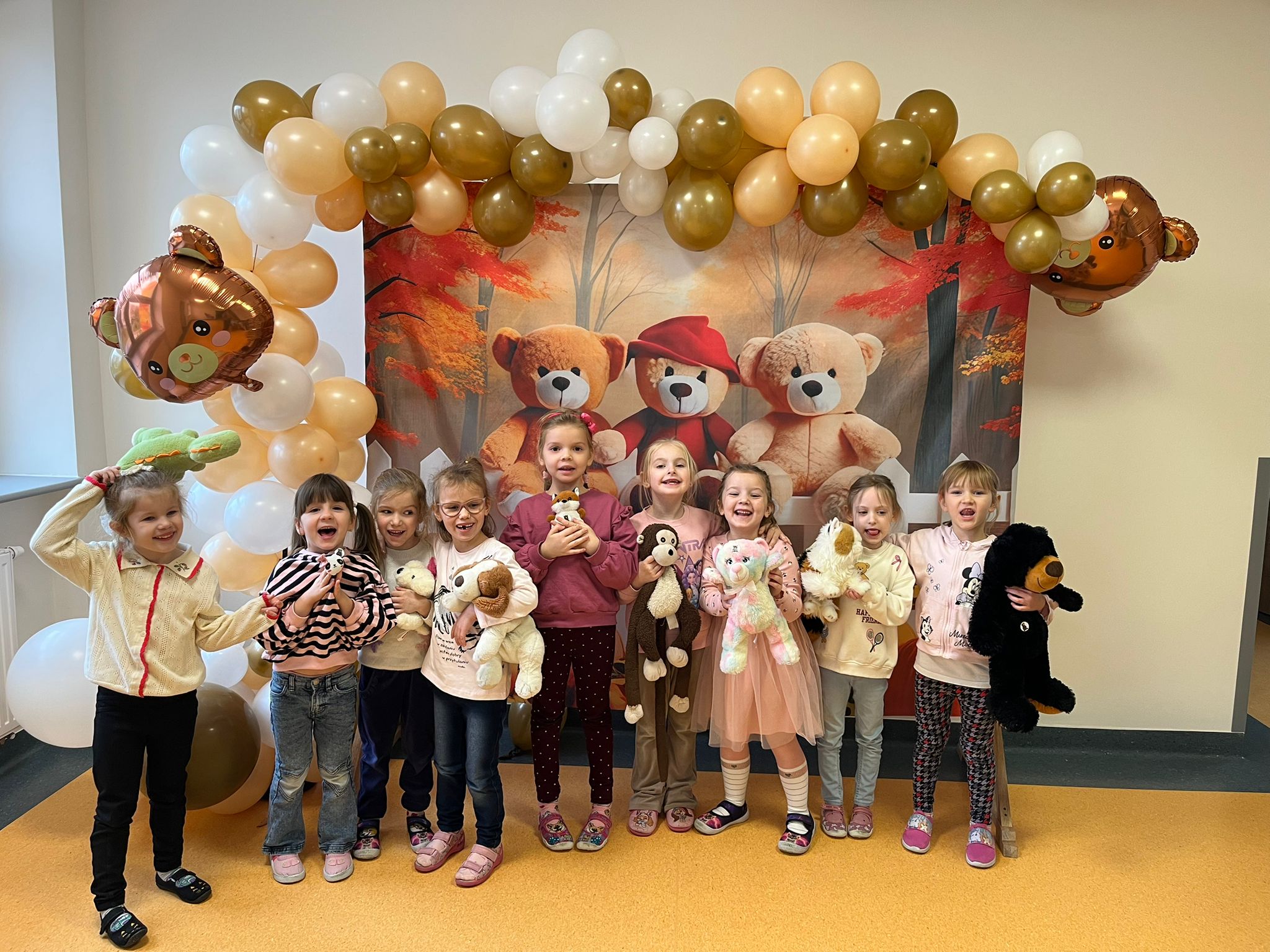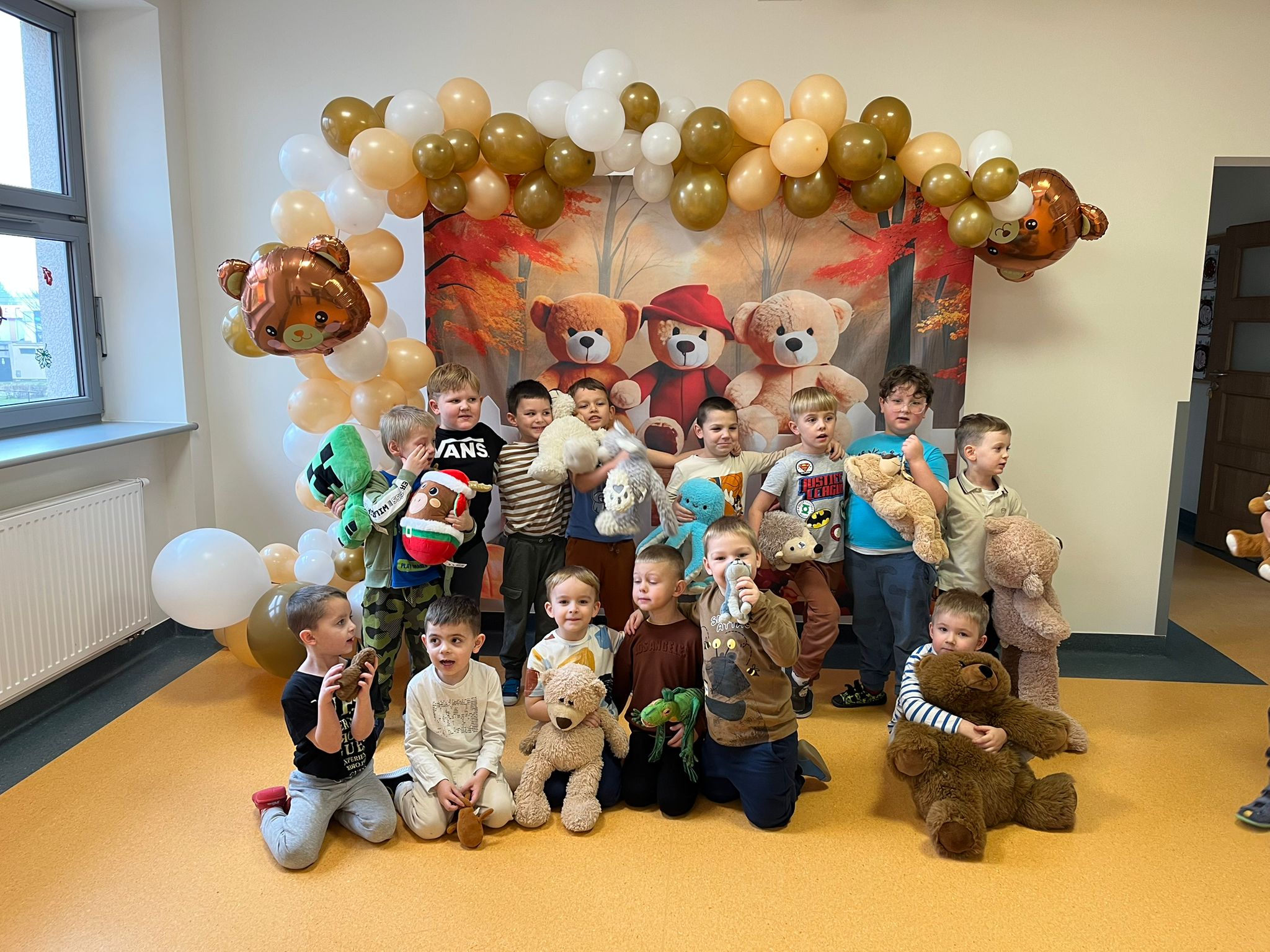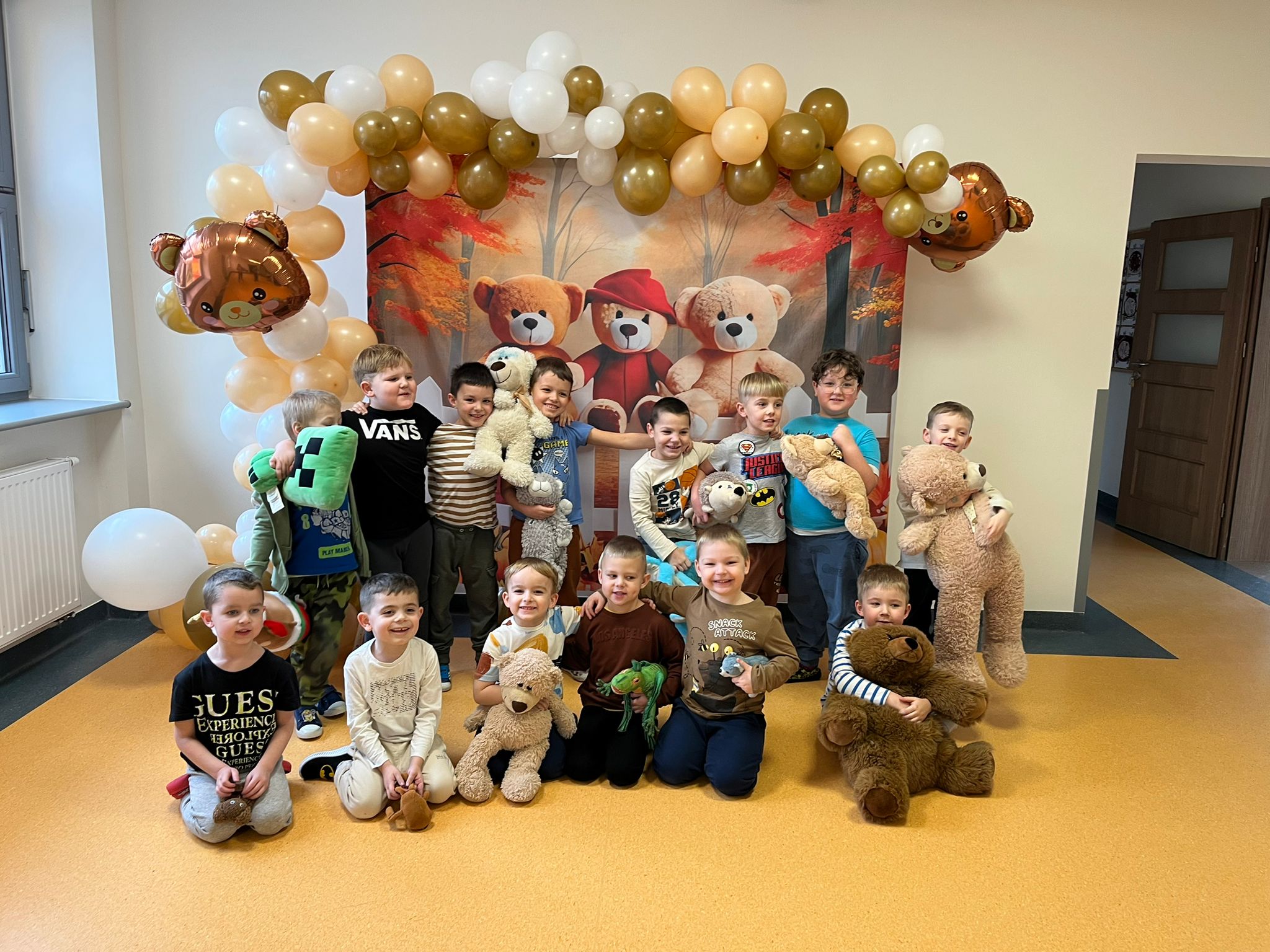 Dnia 25 listopada w naszym przedszkolu obchodziliśmy Dzień pluszowego misia. Był to dzień pełen przytulania, ponieważ każdy przyniósł swojego ulubionego pluszaka. Dzieci brały udział w teatrzyku Kamishibai, rozwiązywaliśmy zagadki związane z misiami oraz wykonaliśmy pracę plastyczną z misiem.
