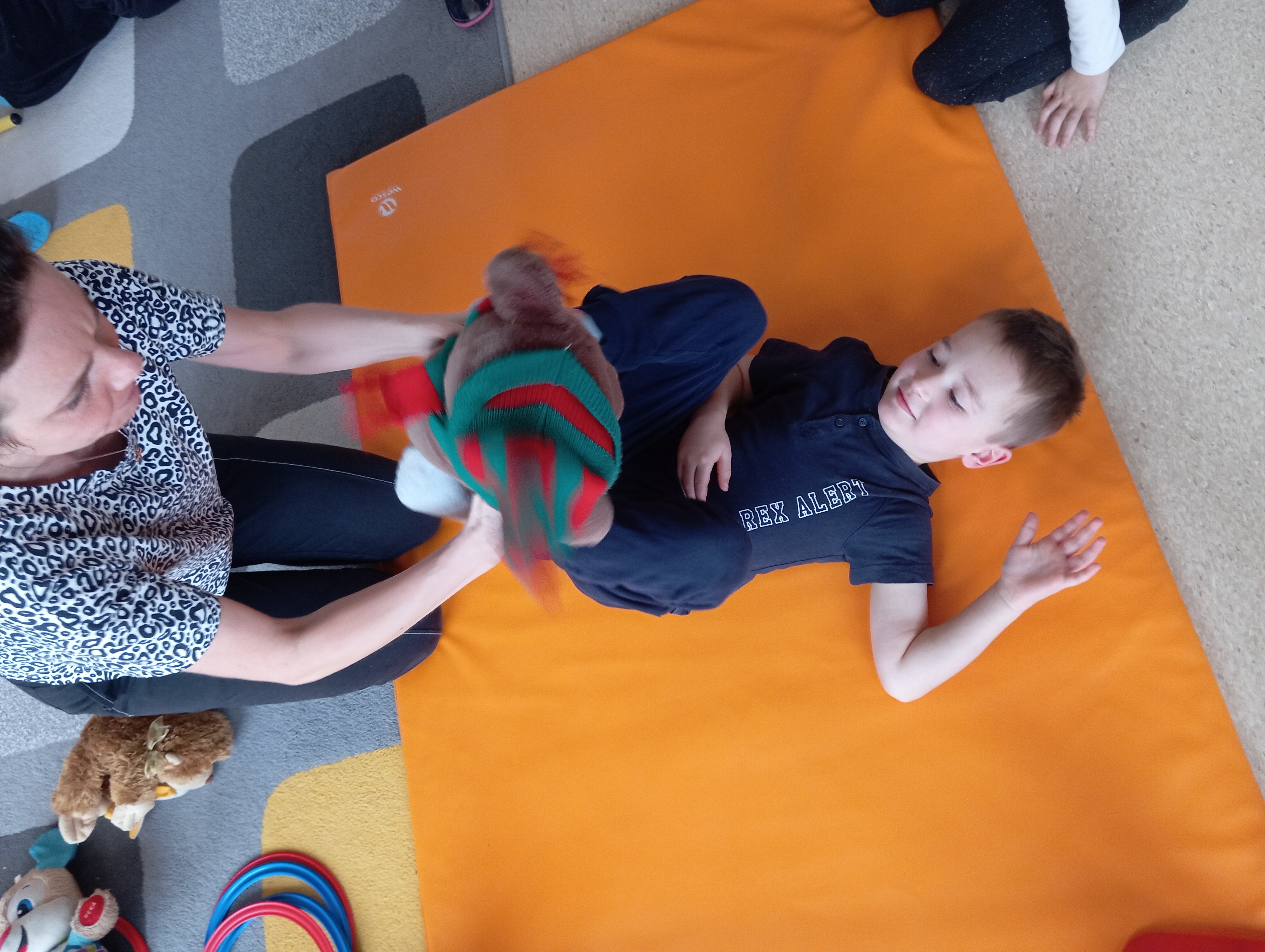 Z okazji Dnia Pluszowego Misia podczas zajęć towarzyszyły nam nasze ulubione maskotki. Wesoło było wraz z pluszakami zabawić się w "Misiową rodzinkę" czy "Obiadek dla misia"