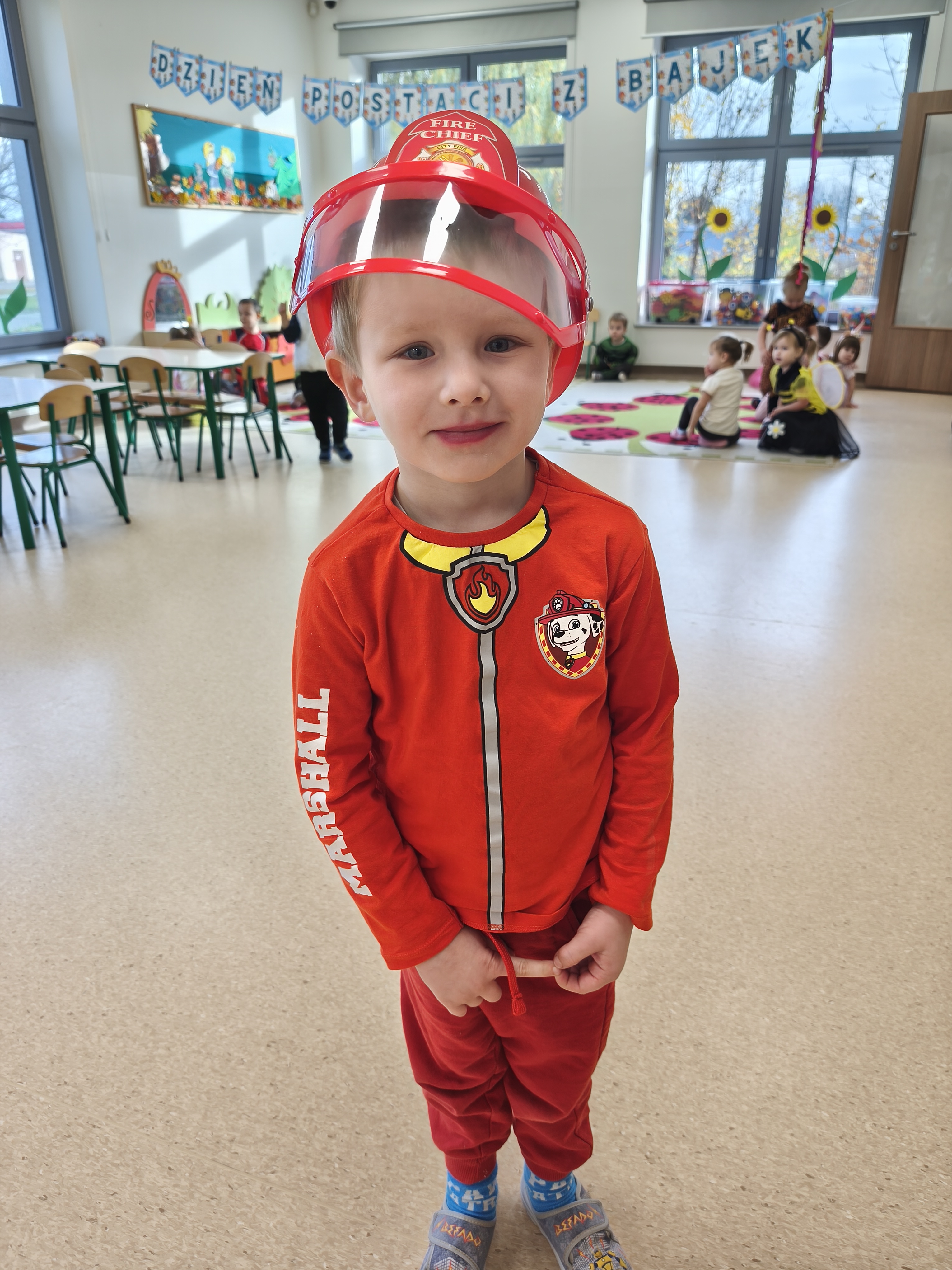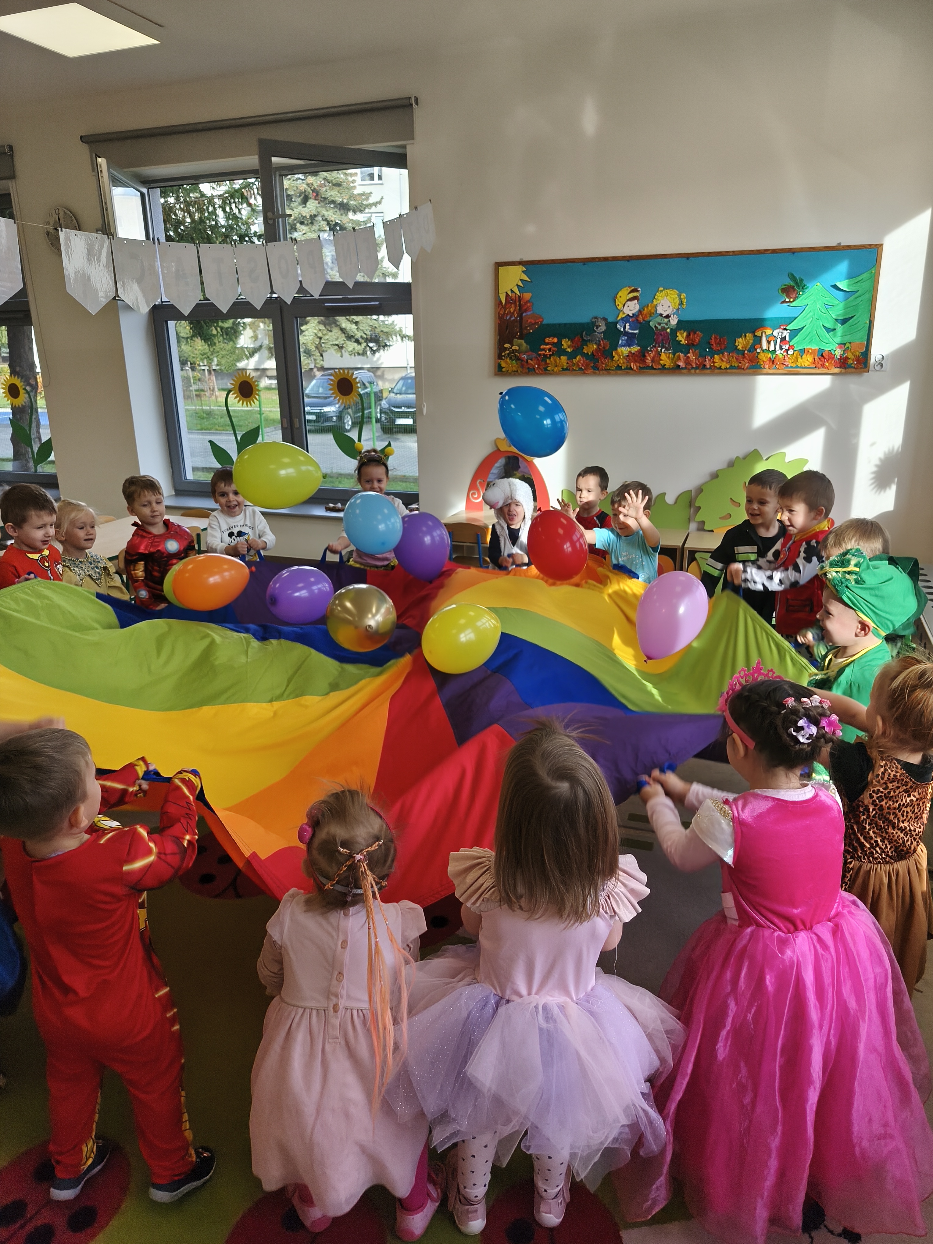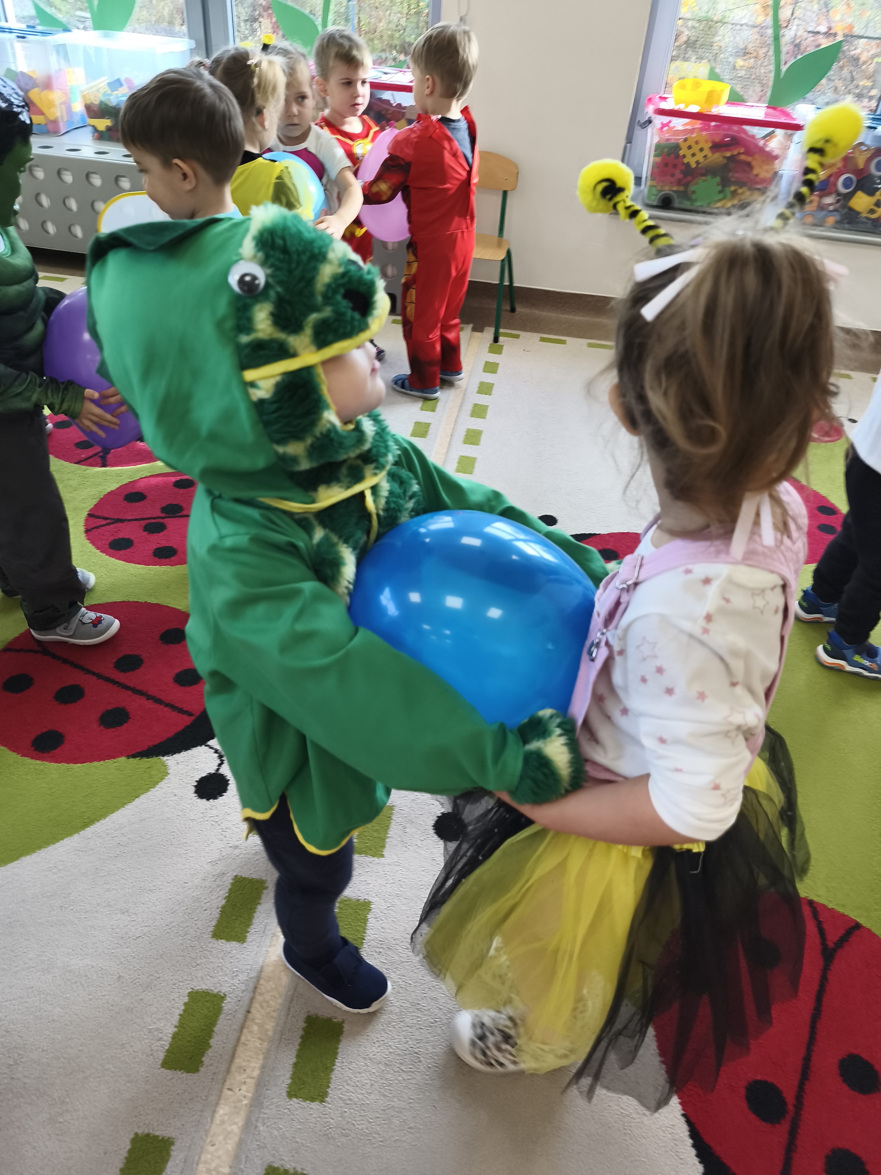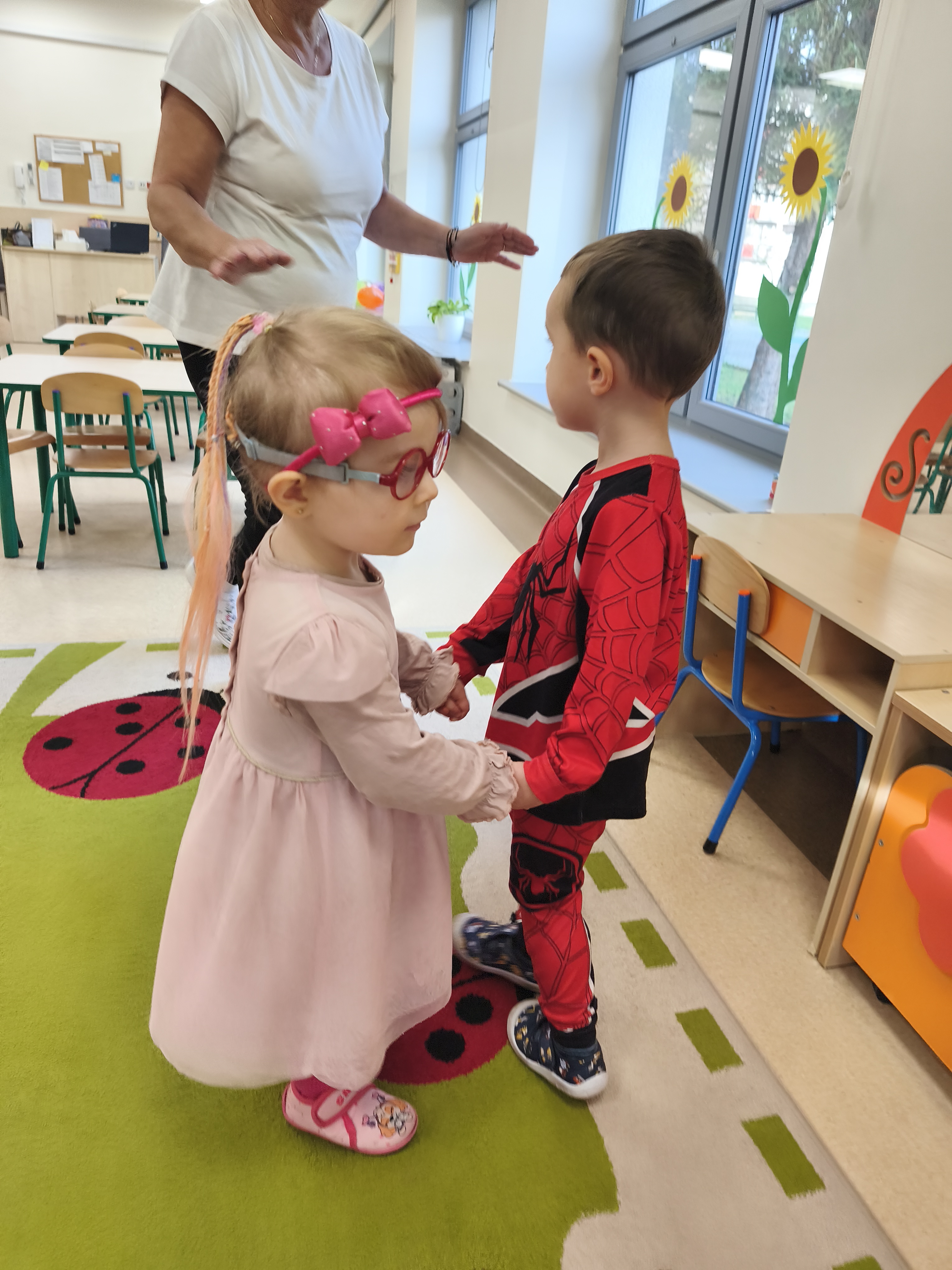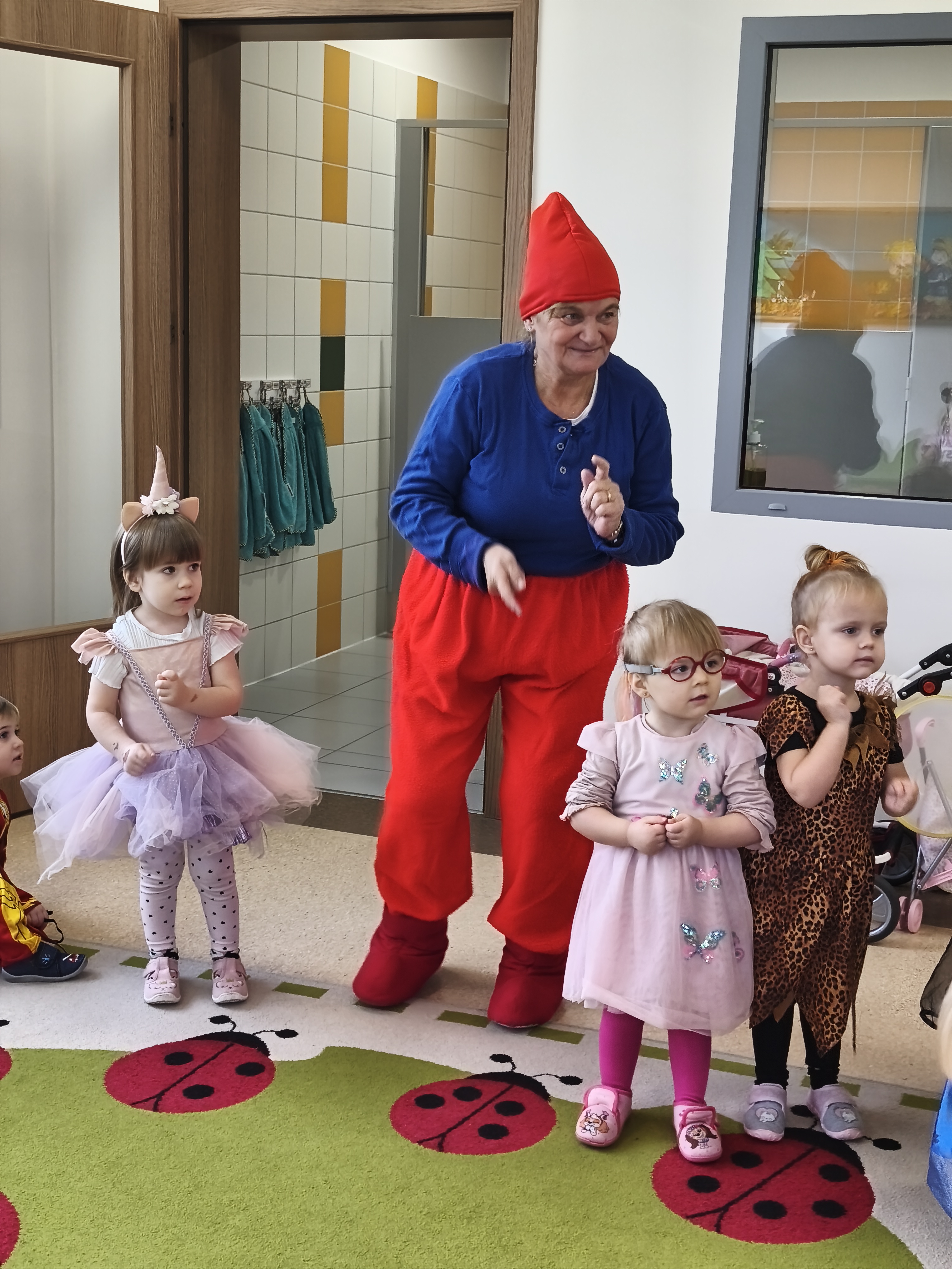 5 listopada obchodzimy Dzień Postaci z Bajek - jedno z najbardziej kolorowych i radosnych świąt. Tego dnia przedszkolaki przyszły przebrane za swoich ulubionych bohaterów. Można było spotkać księżniczki, pszczółki, superbohaterów, zwierzątka i wiele innych bajkowych postaci. Podczas wspólnej zabawy dzieci rozwiązywały zagadki, odgadywały bajkowe tytuły, tańczyły, Z przerażeniem i w ciszy jak nigdy dotąd wysłuchaliśmy bajki o Czerwonym Kapturku. Wilk był nieznajomym a my już wiemy ( choć nie wszyscy ), że jeśli kogoś nie znamy to na spacer z nim się nie wybieramy!
