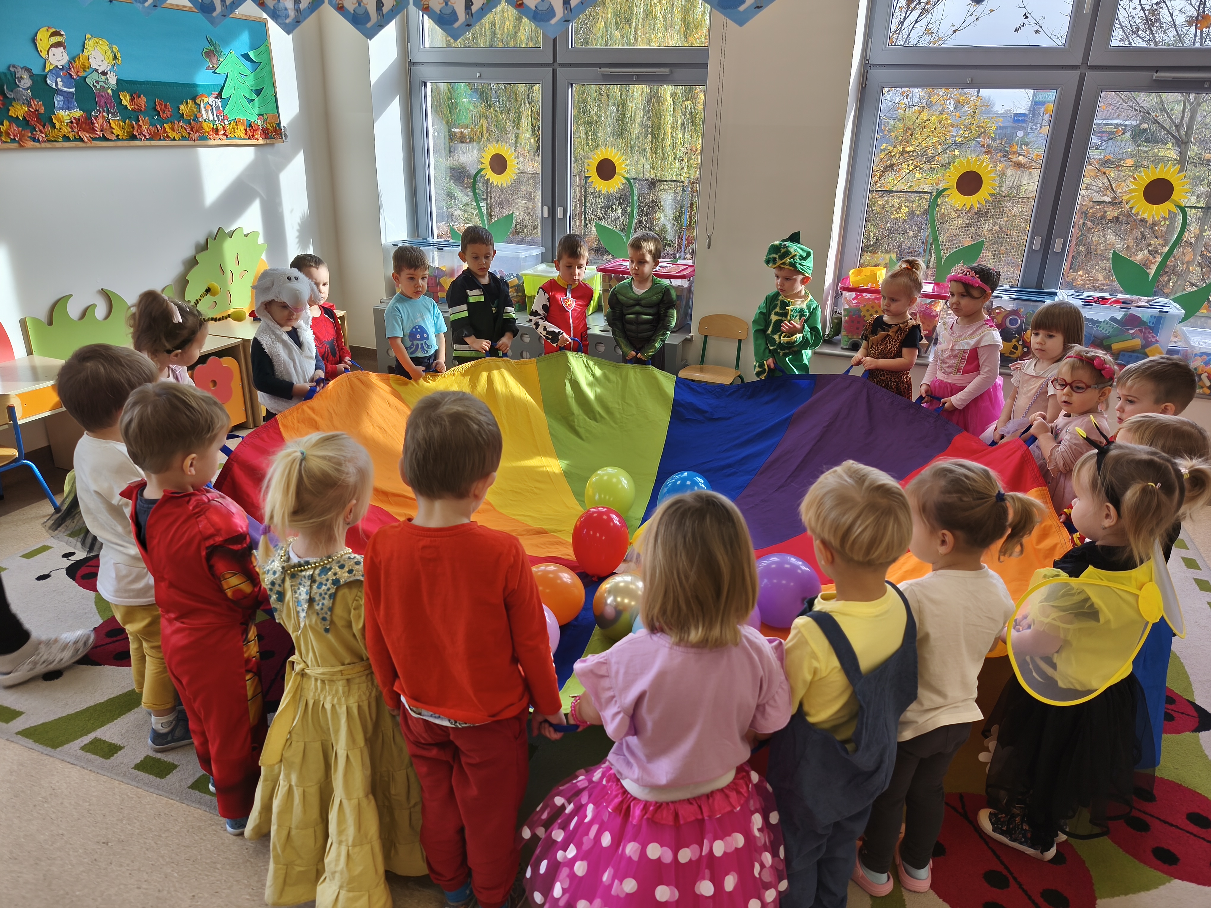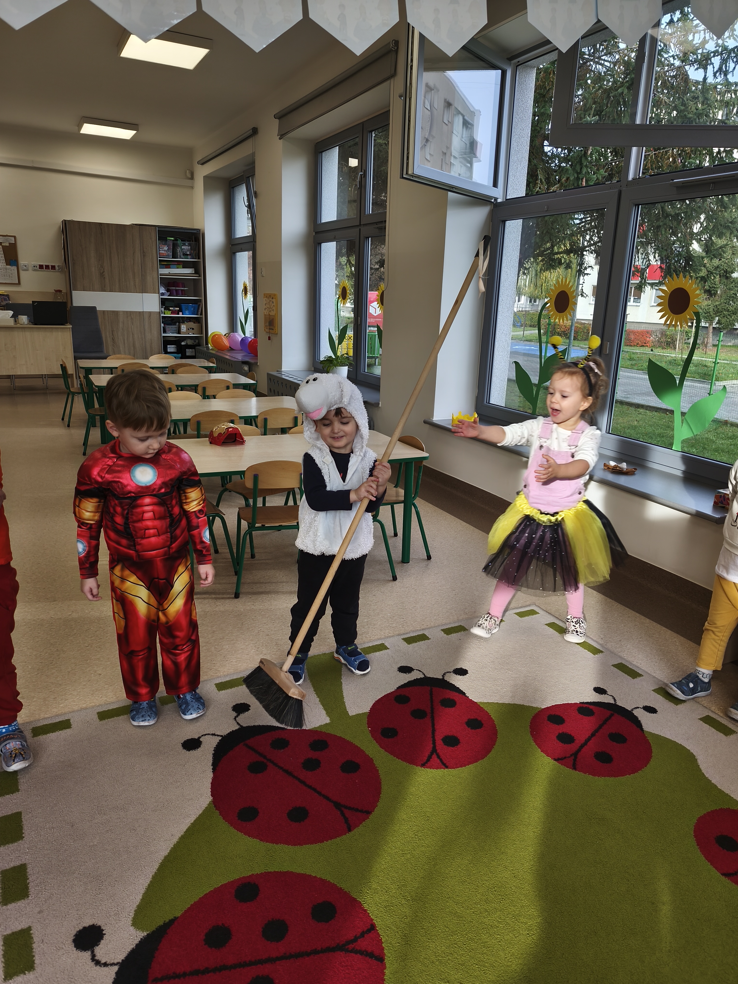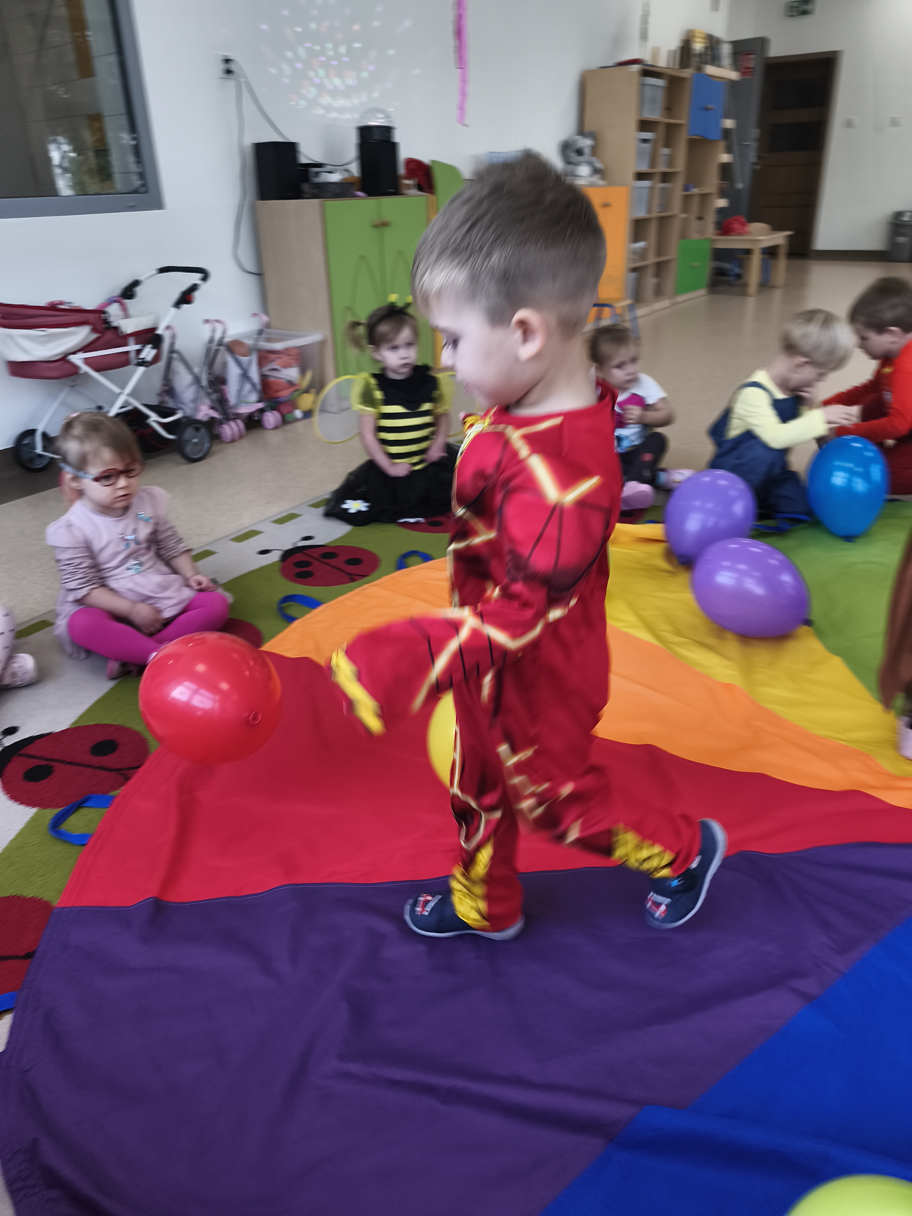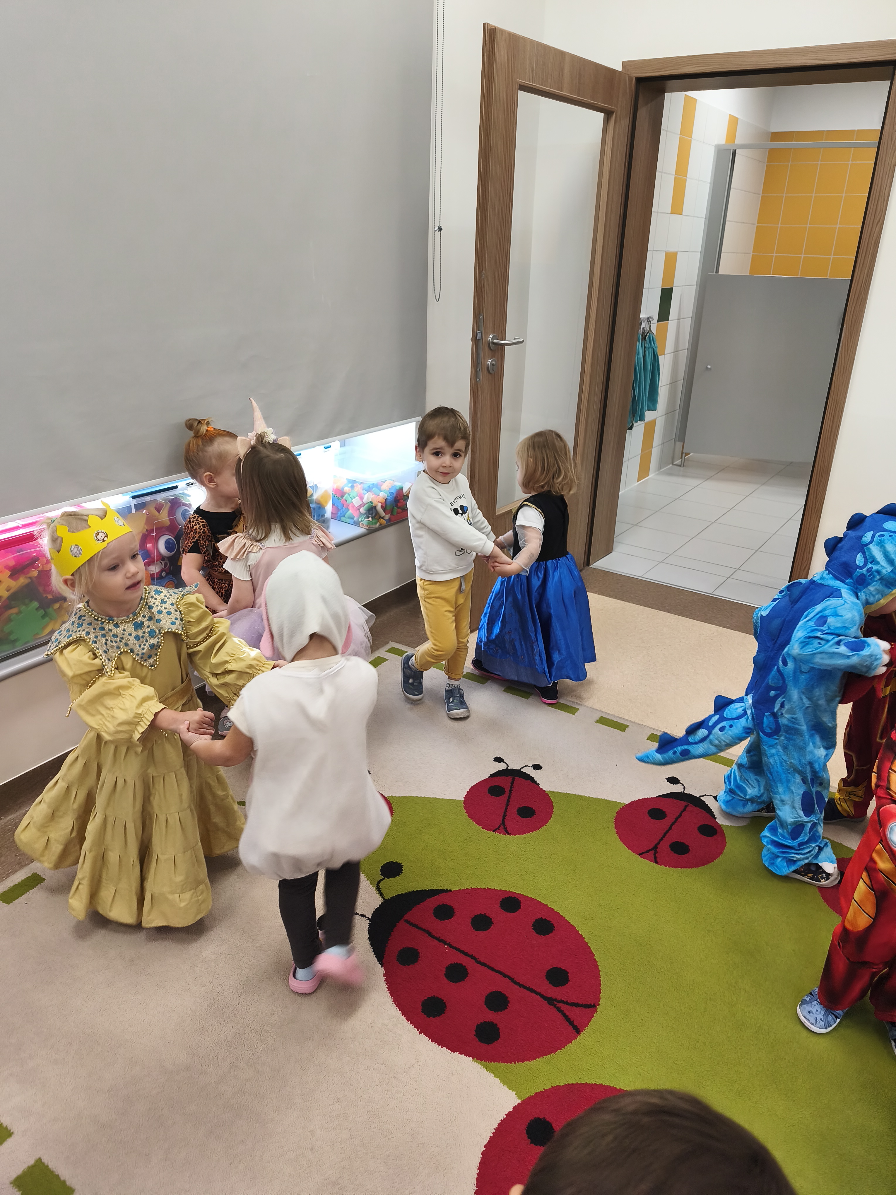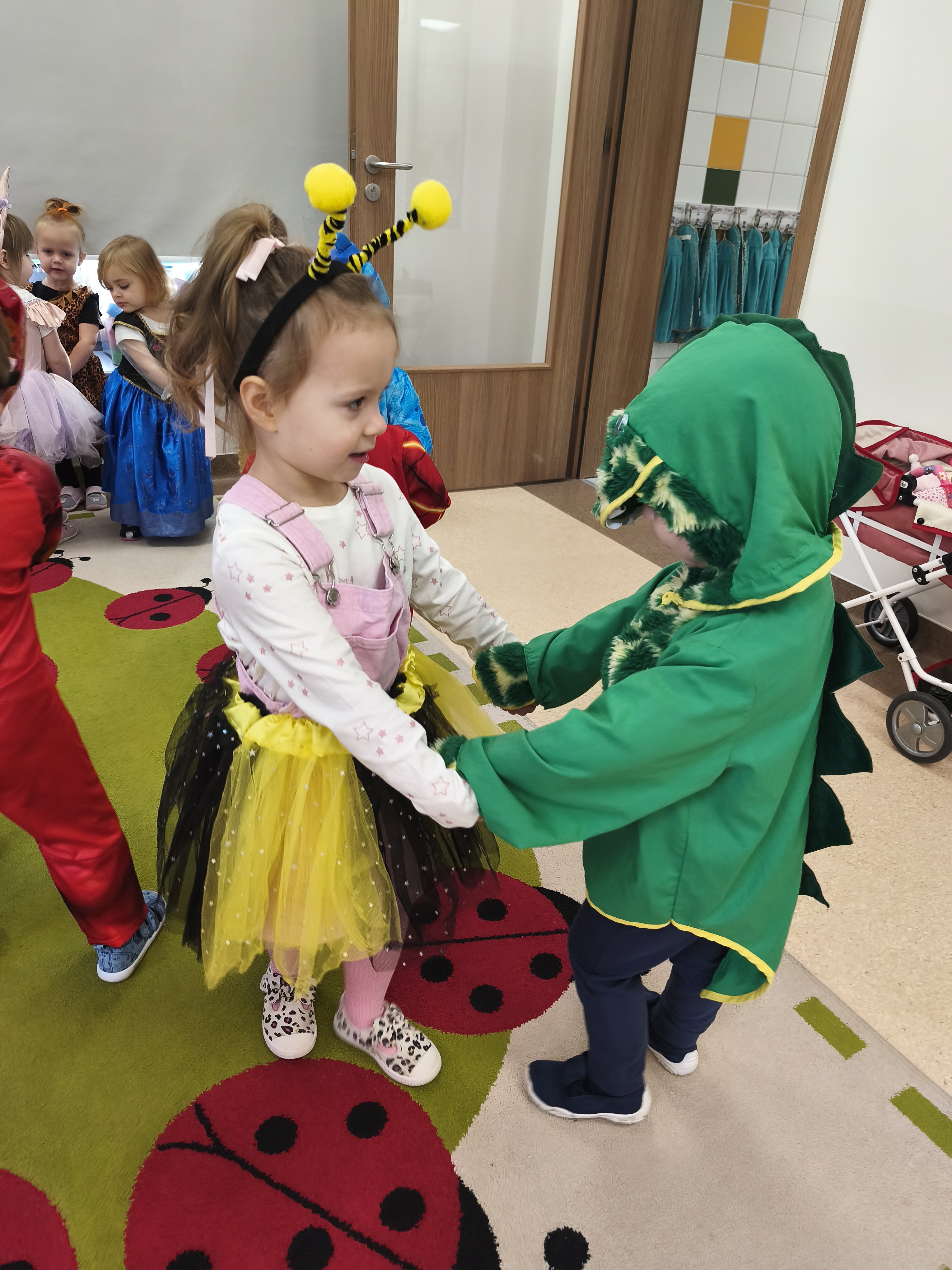 5 listopada obchodzimy Dzień Postaci z Bajek - jedno z najbardziej kolorowych i radosnych świąt. Tego dnia przedszkolaki przyszły przebrane za swoich ulubionych bohaterów. Można było spotkać księżniczki, pszczółki, superbohaterów, zwierzątka i wiele innych bajkowych postaci. Podczas wspólnej zabawy dzieci rozwiązywały zagadki, odgadywały bajkowe tytuły, tańczyły, Z przerażeniem i w ciszy jak nigdy dotąd wysłuchaliśmy bajki o Czerwonym Kapturku. Wilk był nieznajomym a my już wiemy ( choć nie wszyscy ), że jeśli kogoś nie znamy to na spacer z nim się nie wybieramy!