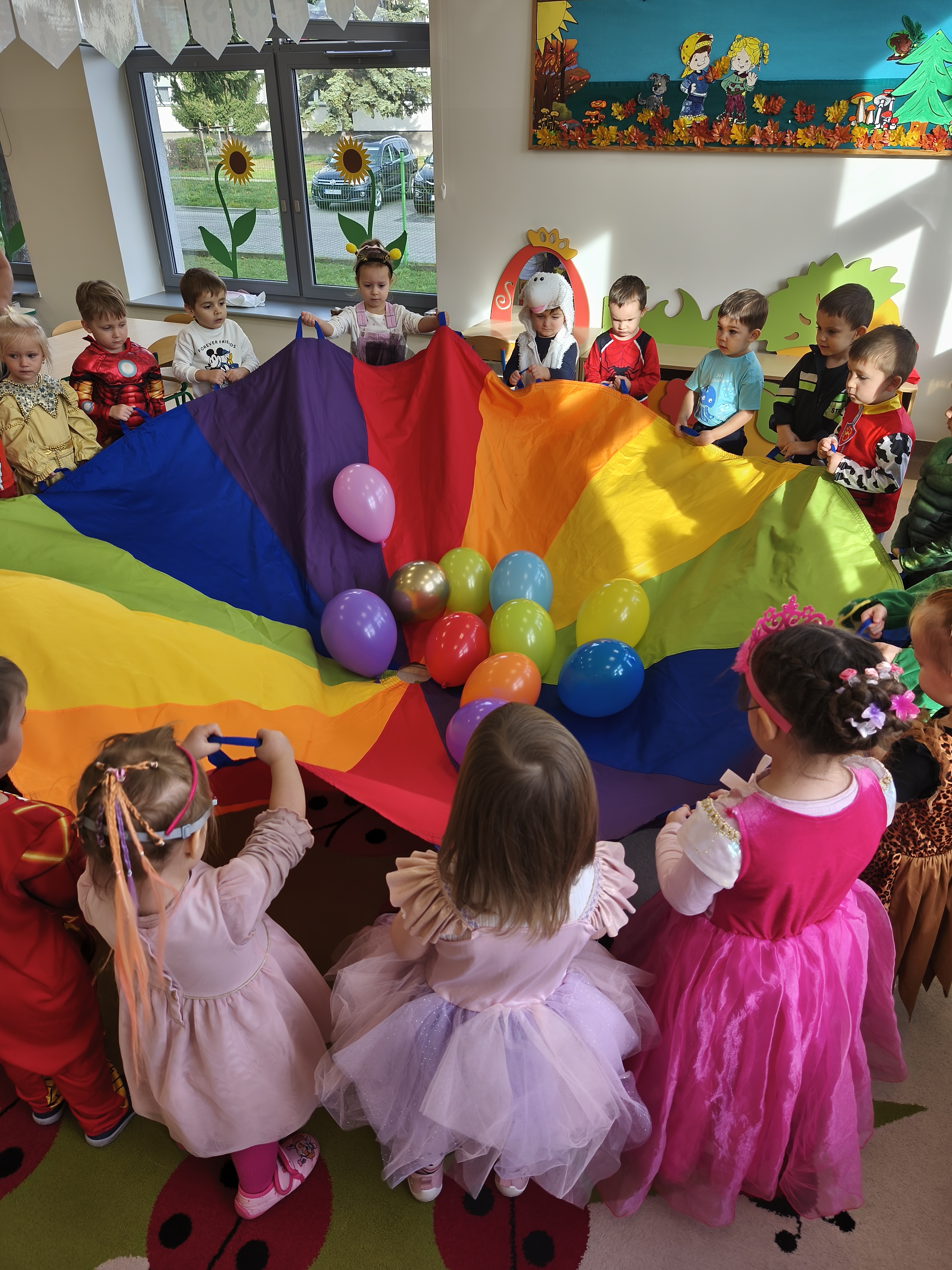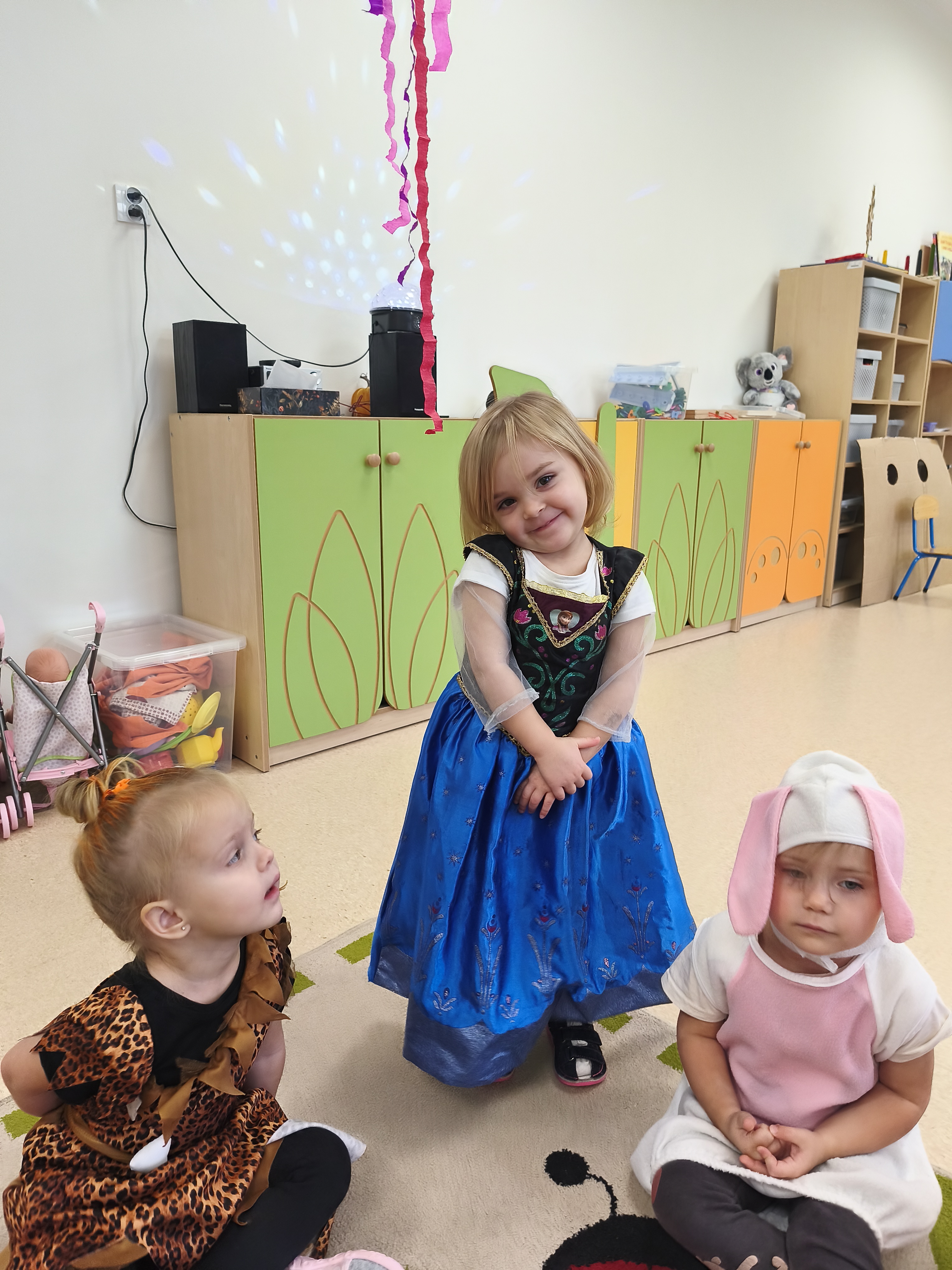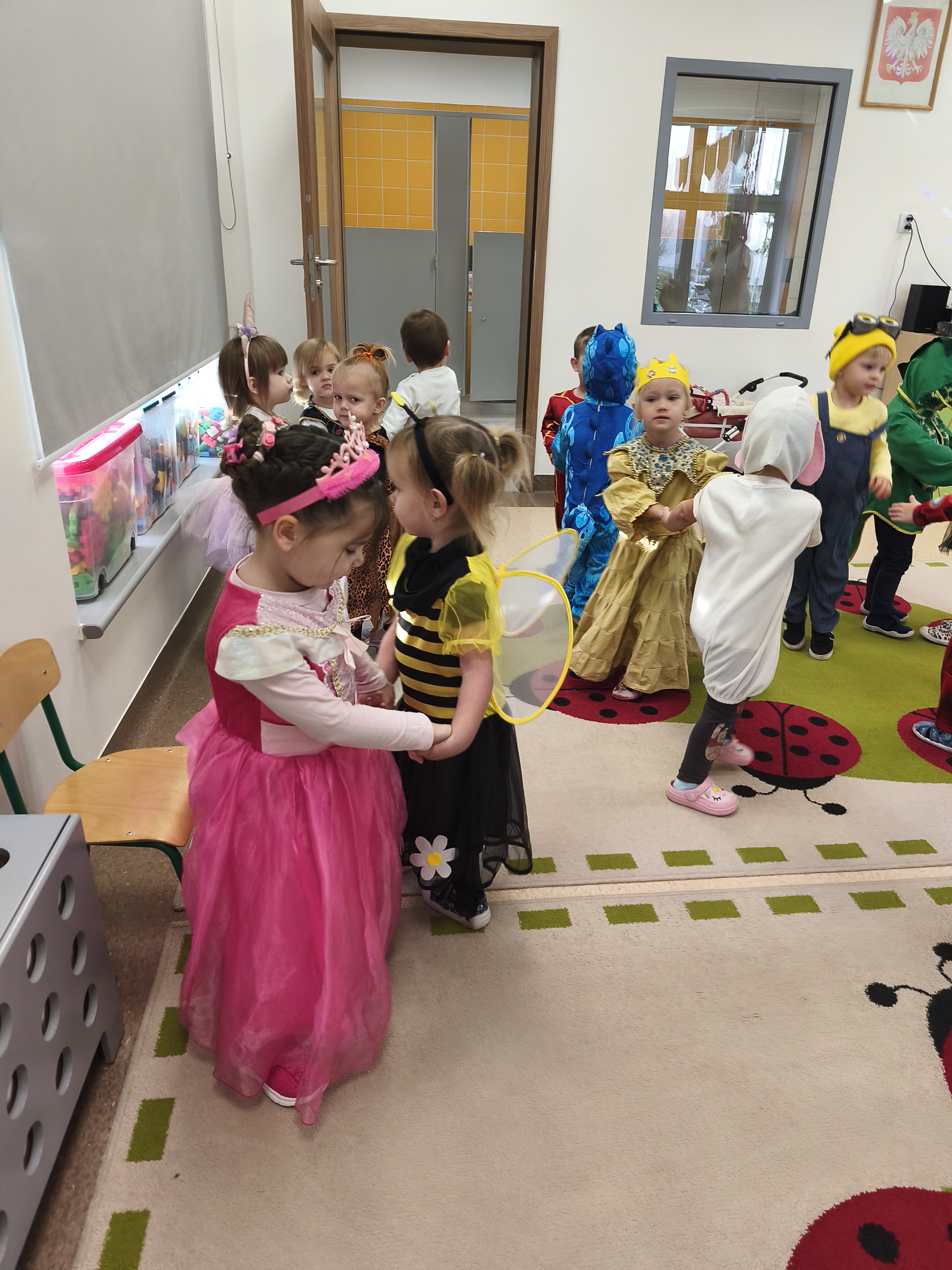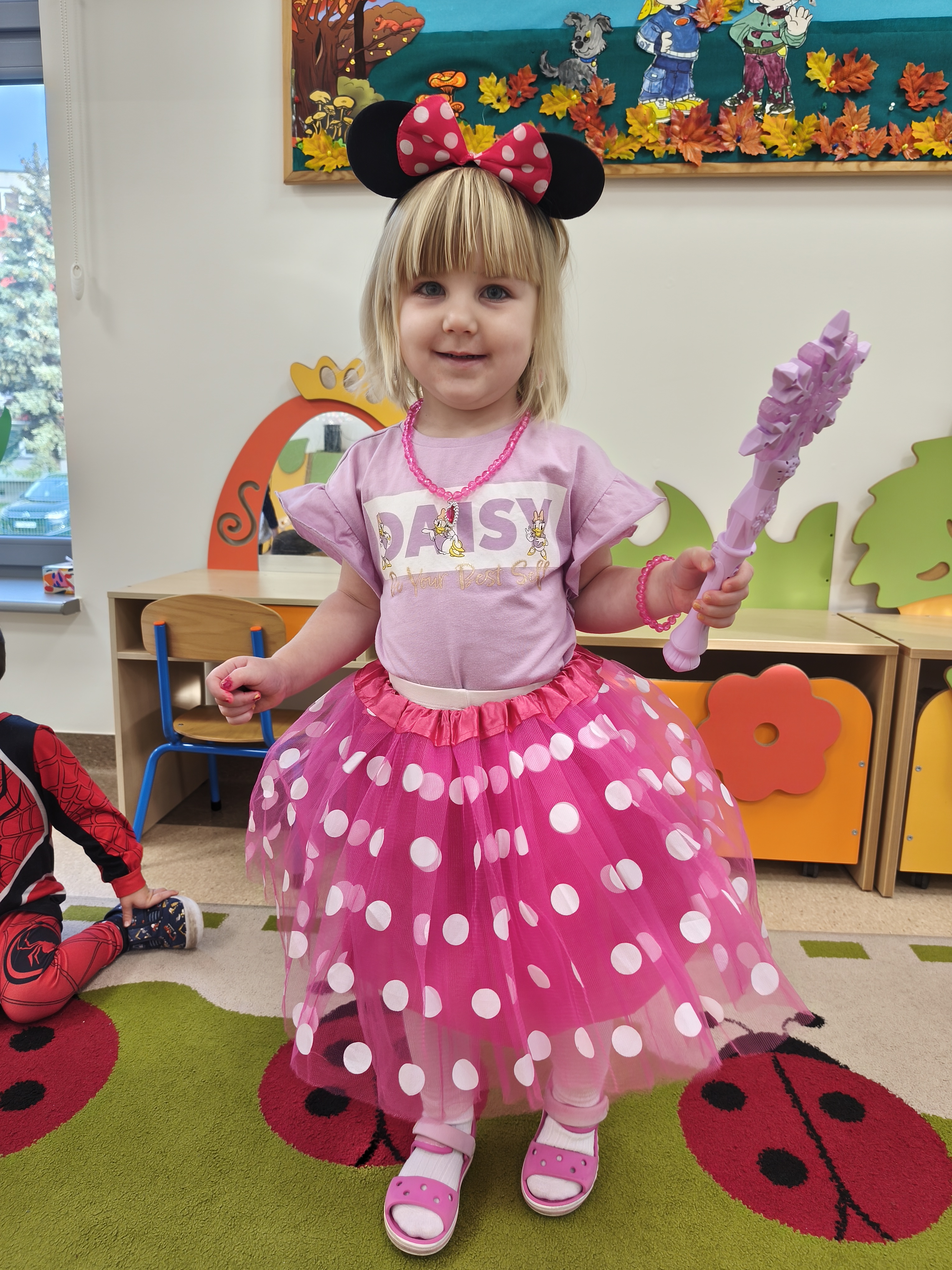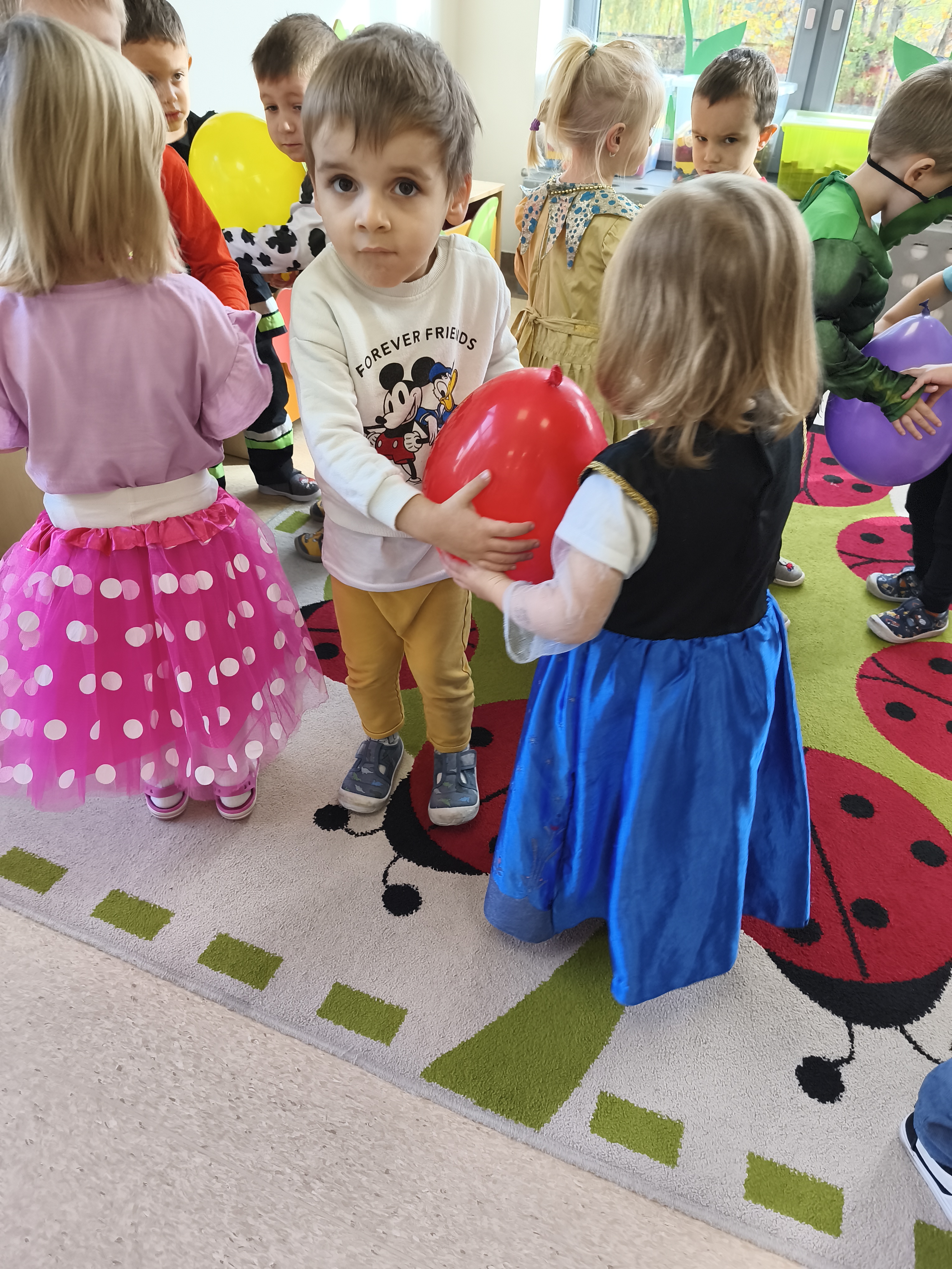 5 listopada obchodzimy Dzień Postaci z Bajek - jedno z najbardziej kolorowych i radosnych świąt. Tego dnia przedszkolaki przyszły przebrane za swoich ulubionych bohaterów. Można było spotkać księżniczki, pszczółki, superbohaterów, zwierzątka i wiele innych bajkowych postaci. Podczas wspólnej zabawy dzieci rozwiązywały zagadki, odgadywały bajkowe tytuły, tańczyły, Z przerażeniem i w ciszy jak nigdy dotąd wysłuchaliśmy bajki o Czerwonym Kapturku. Wilk był nieznajomym a my już wiemy ( choć nie wszyscy ), że jeśli kogoś nie znamy to na spacer z nim się nie wybieramy!