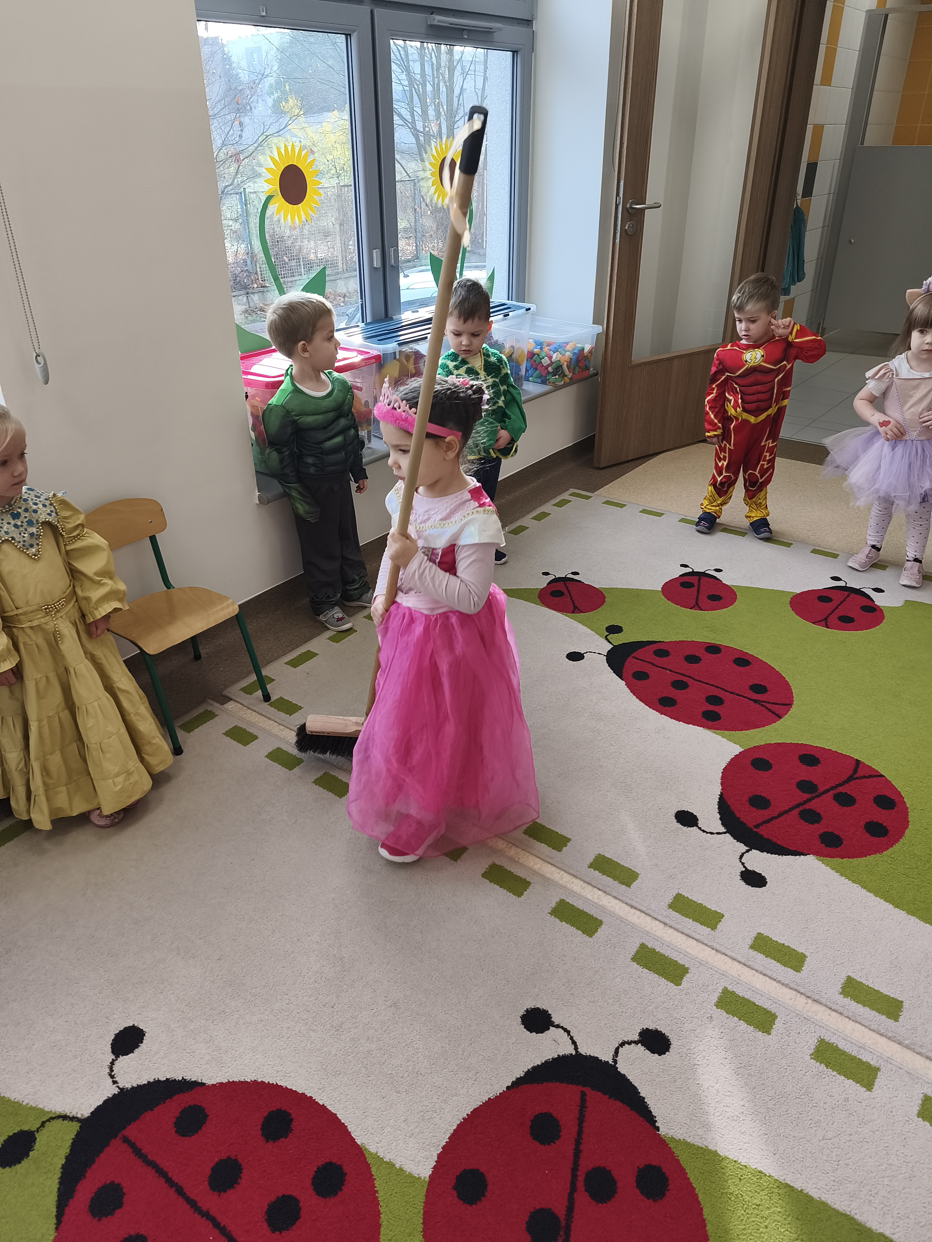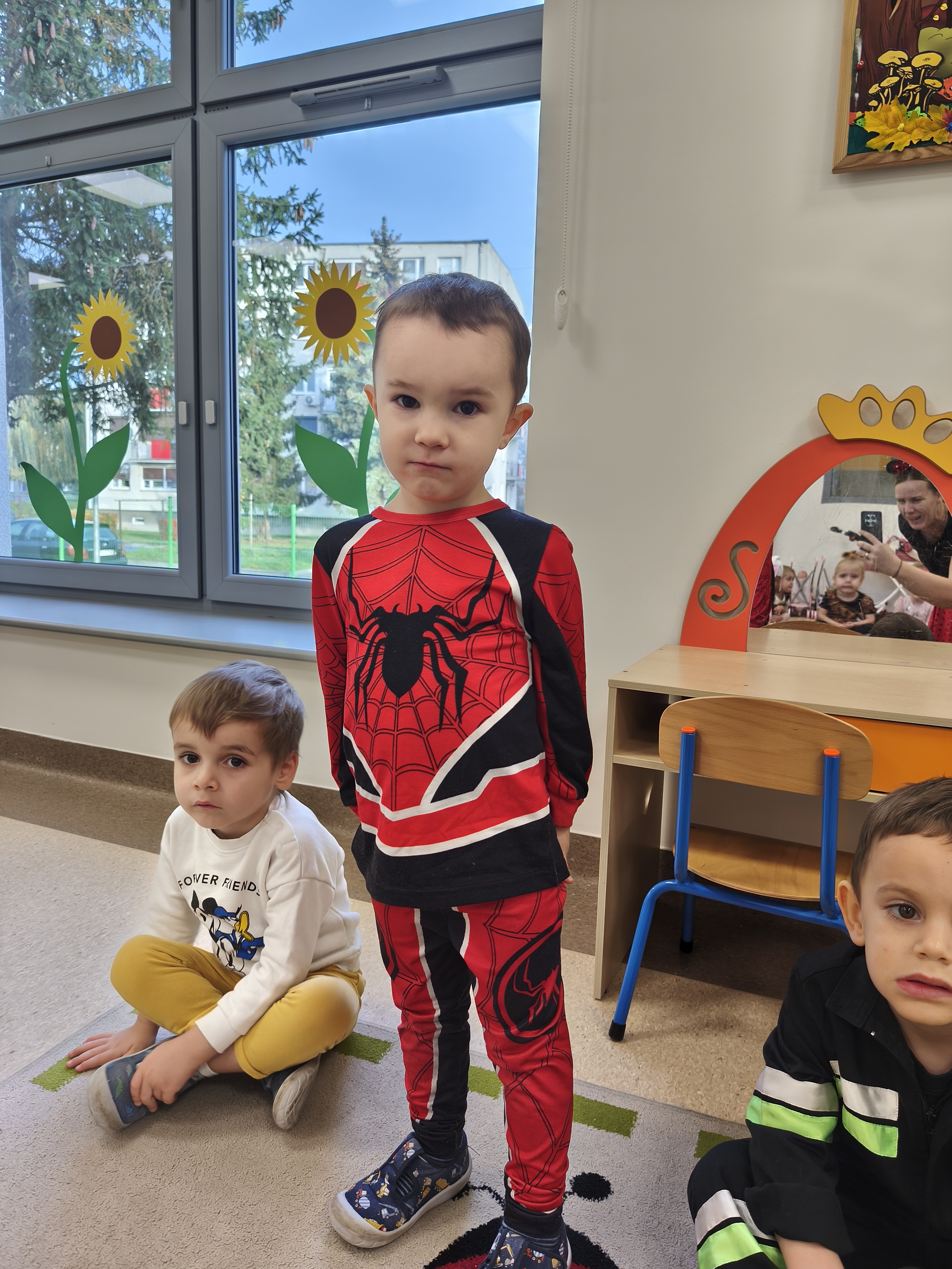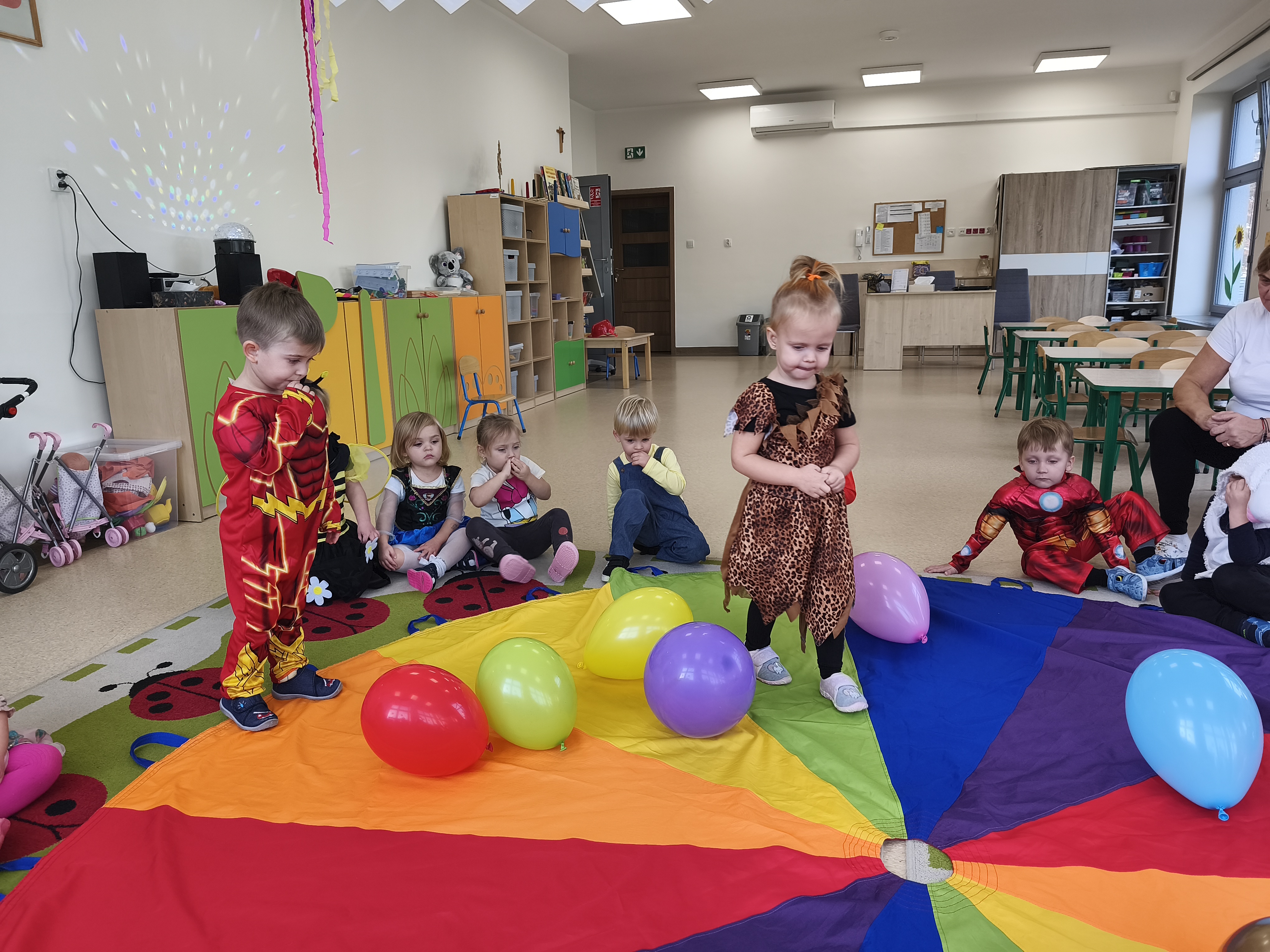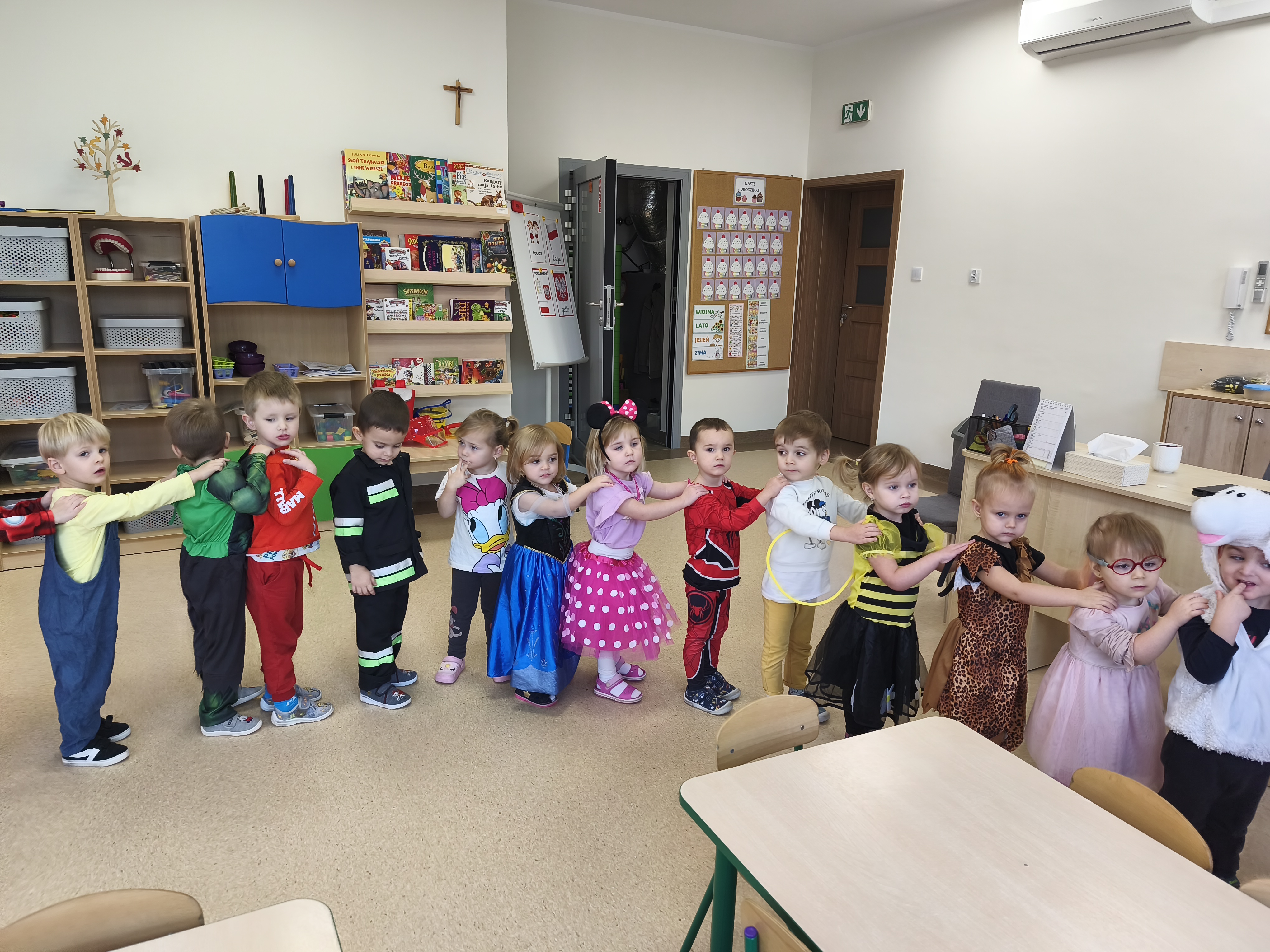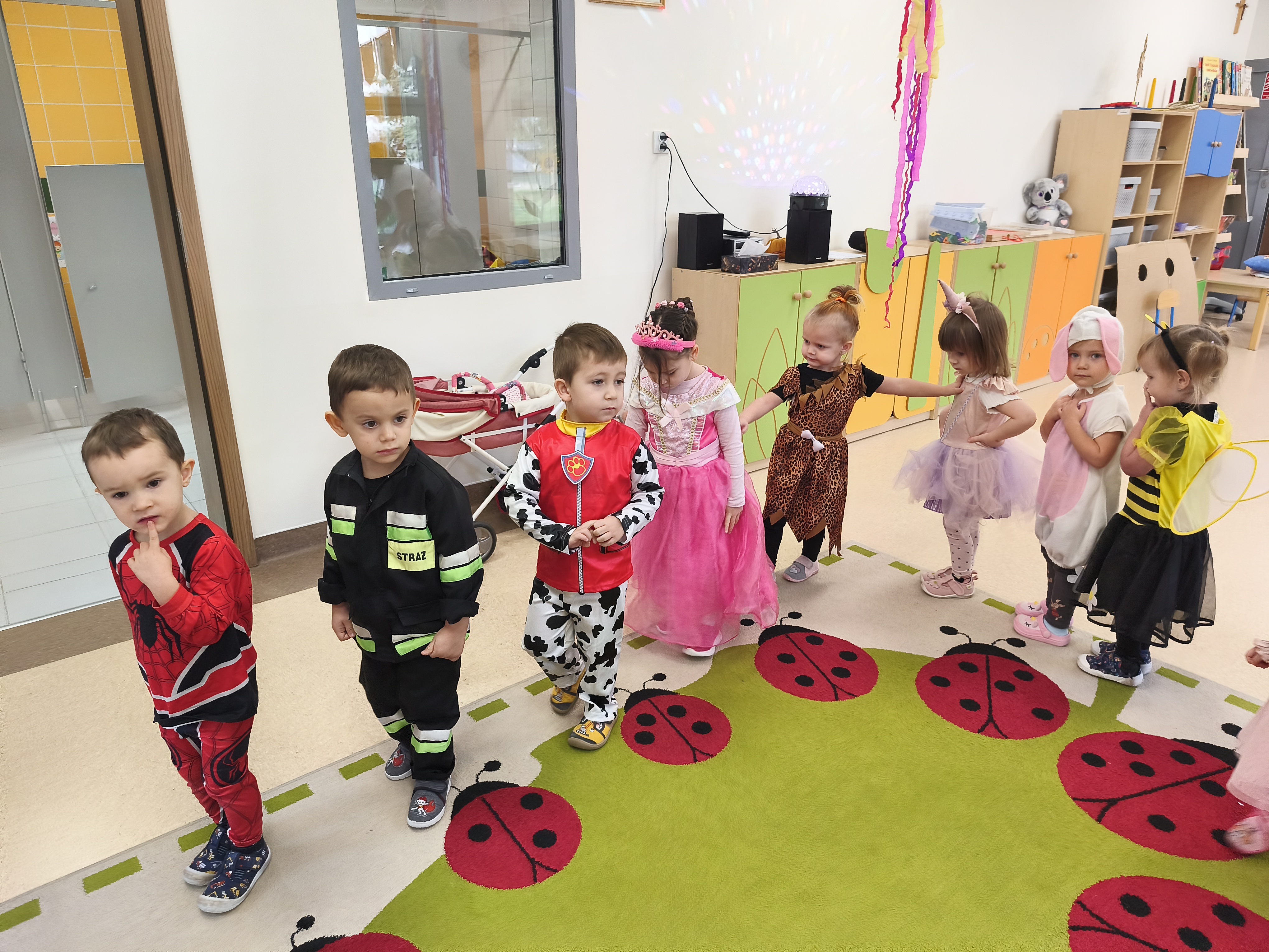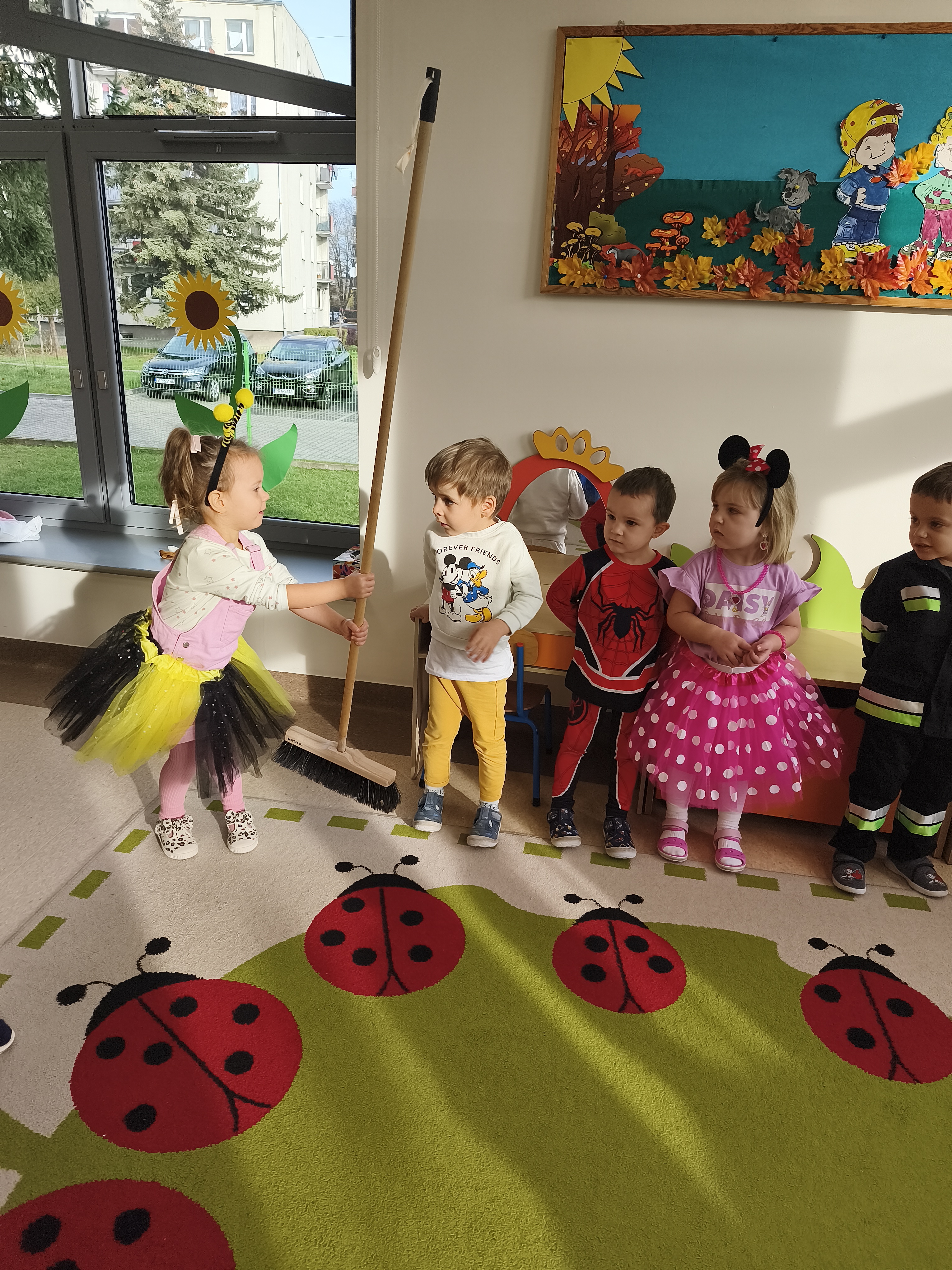 5 listopada obchodzimy Dzień Postaci z Bajek - jedno z najbardziej kolorowych i radosnych świąt. Tego dnia przedszkolaki przyszły przebrane za swoich ulubionych bohaterów. Można było spotkać księżniczki, pszczółki, superbohaterów, zwierzątka i wiele innych bajkowych postaci. Podczas wspólnej zabawy dzieci rozwiązywały zagadki, odgadywały bajkowe tytuły, tańczyły, Z przerażeniem i w ciszy jak nigdy dotąd wysłuchaliśmy bajki o Czerwonym Kapturku. Wilk był nieznajomym a my już wiemy ( choć nie wszyscy ), że jeśli kogoś nie znamy to na spacer z nim się nie wybieramy!