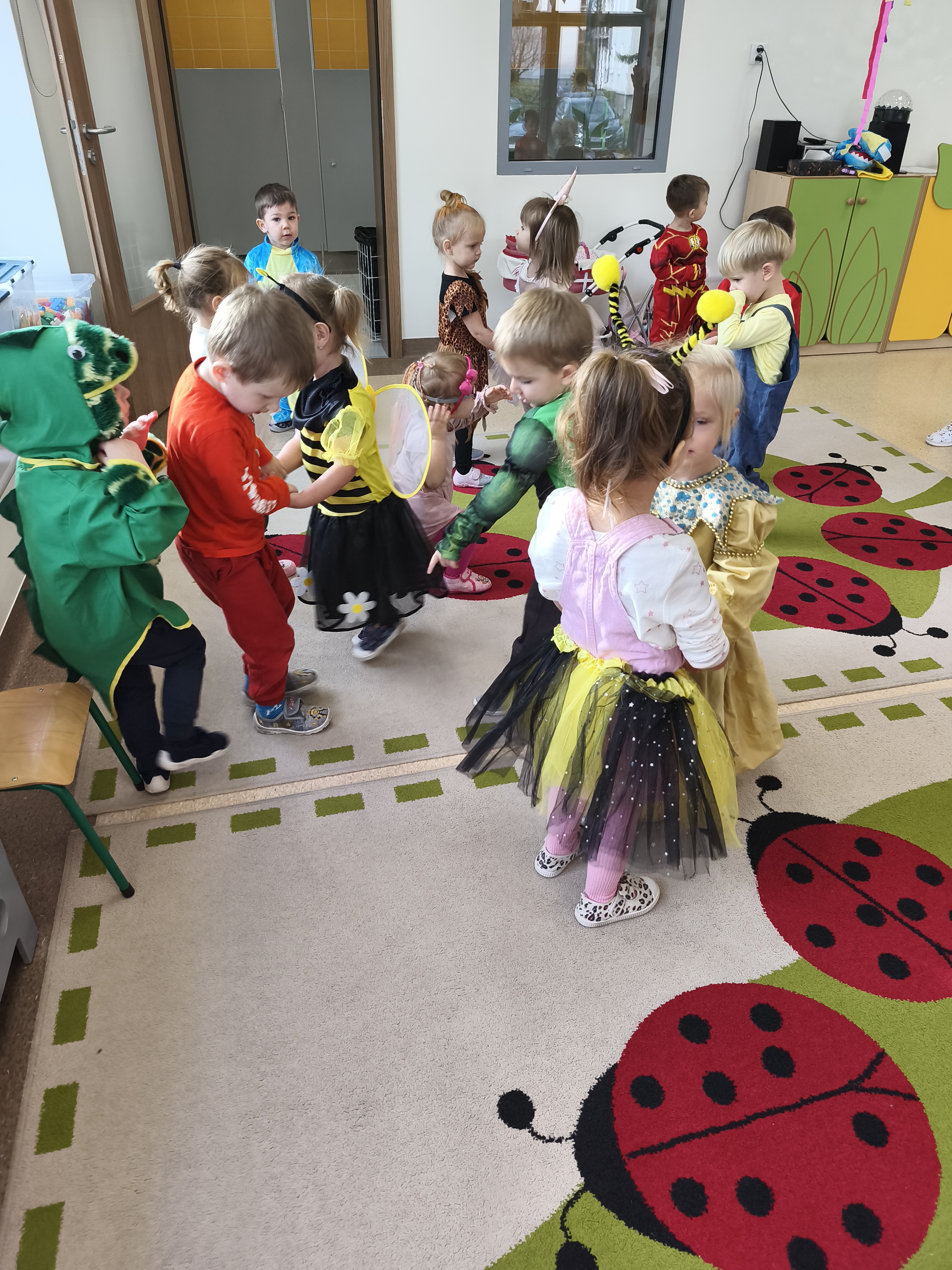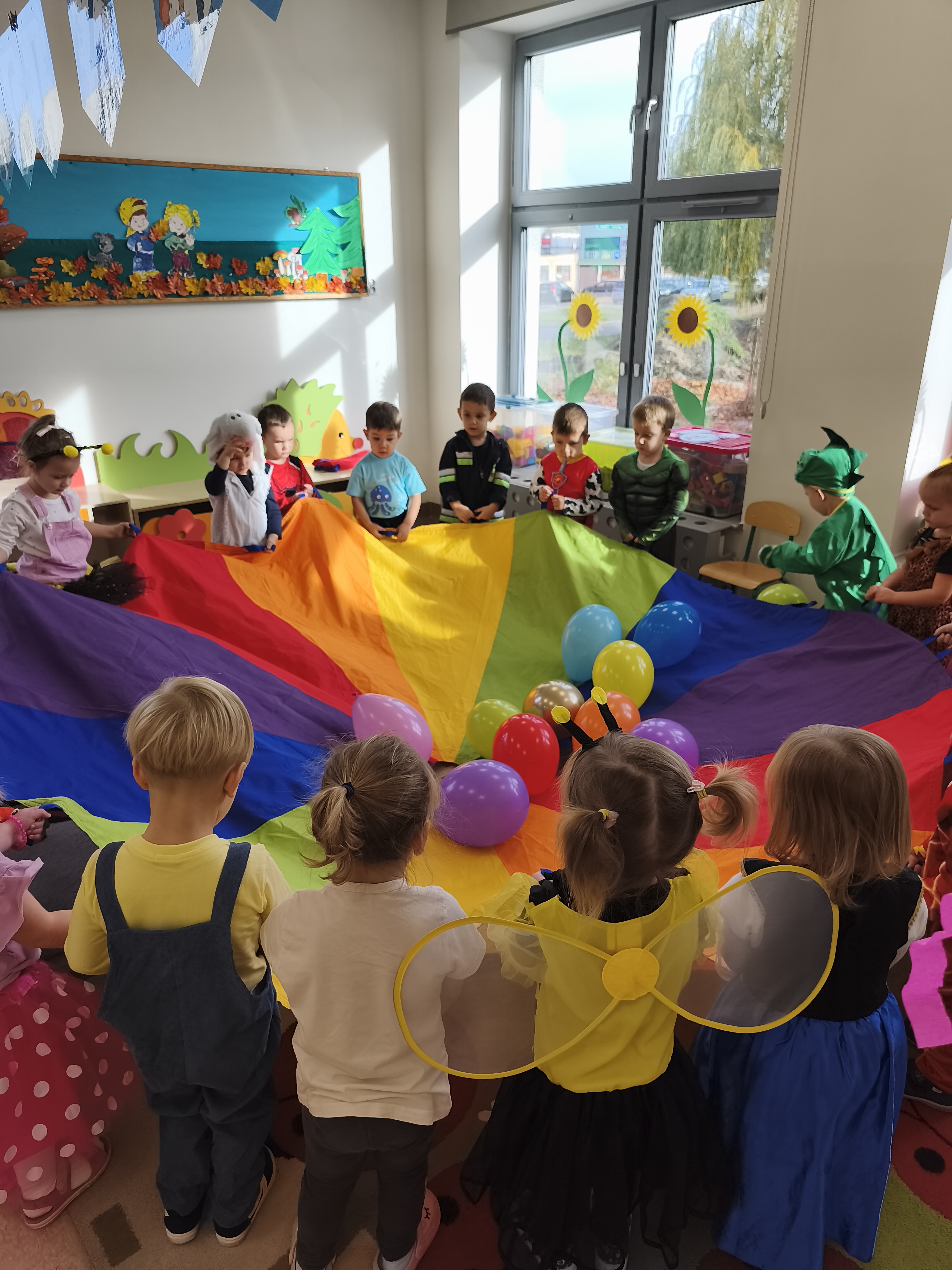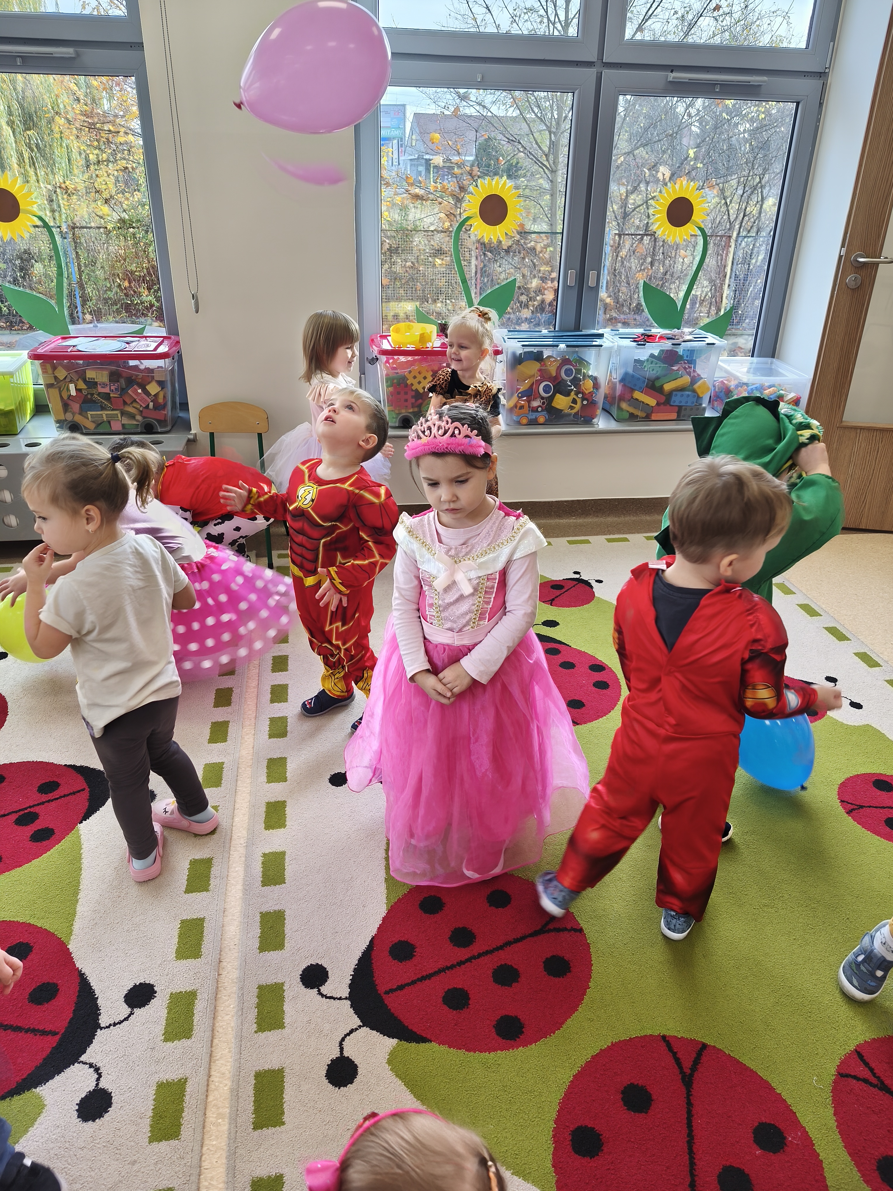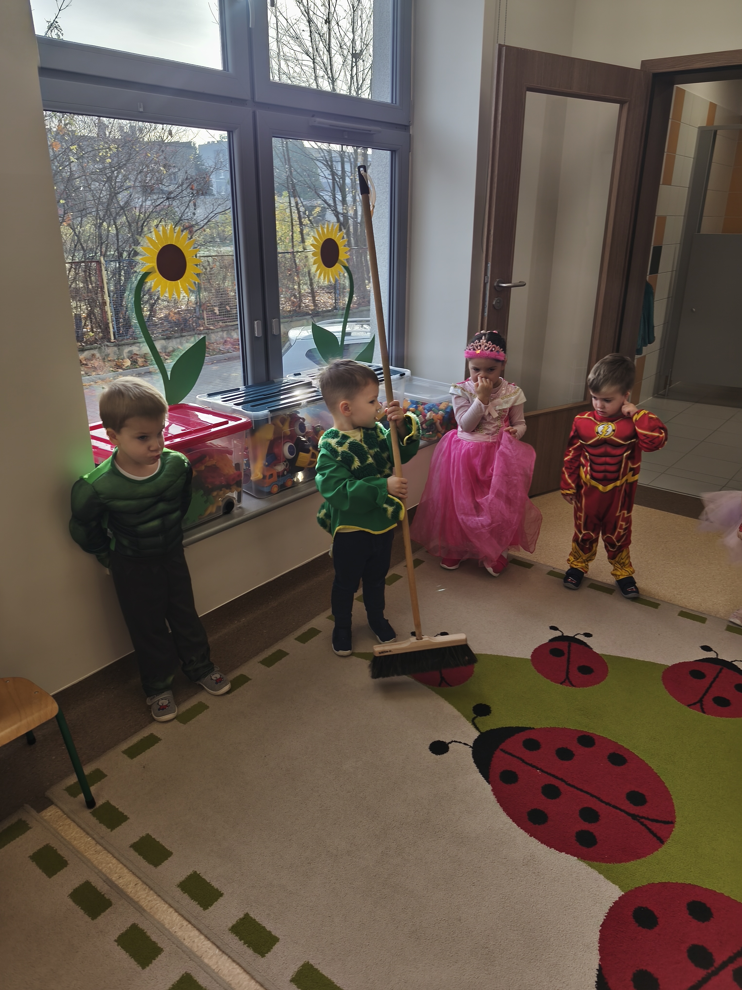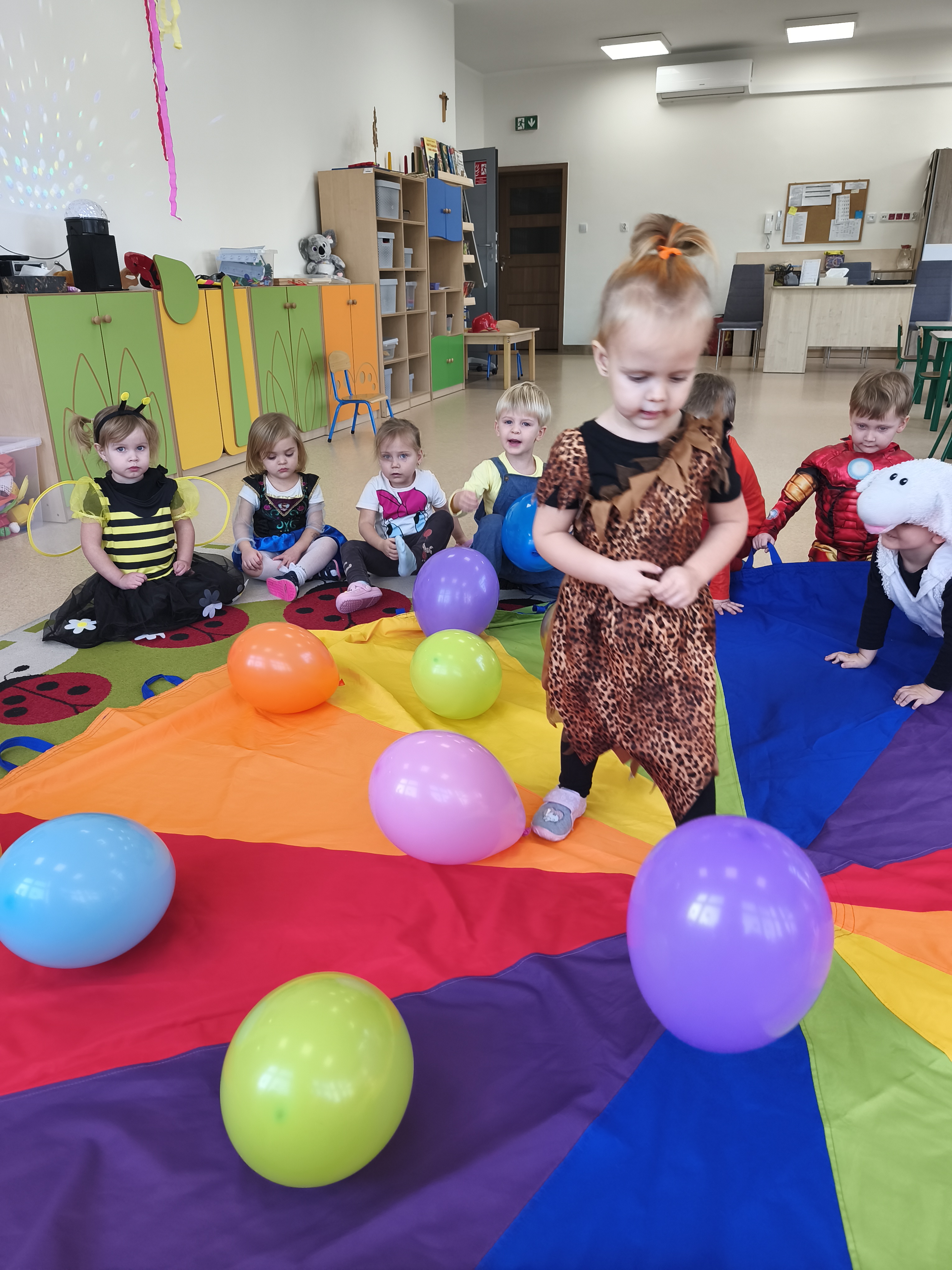 5 listopada obchodzimy Dzień Postaci z Bajek - jedno z najbardziej kolorowych i radosnych świąt. Tego dnia przedszkolaki przyszły przebrane za swoich ulubionych bohaterów. Można było spotkać księżniczki, pszczółki, superbohaterów, zwierzątka i wiele innych bajkowych postaci. Podczas wspólnej zabawy dzieci rozwiązywały zagadki, odgadywały bajkowe tytuły, tańczyły, Z przerażeniem i w ciszy jak nigdy dotąd wysłuchaliśmy bajki o Czerwonym Kapturku. Wilk był nieznajomym a my już wiemy ( choć nie wszyscy ), że jeśli kogoś nie znamy to na spacer z nim się nie wybieramy!