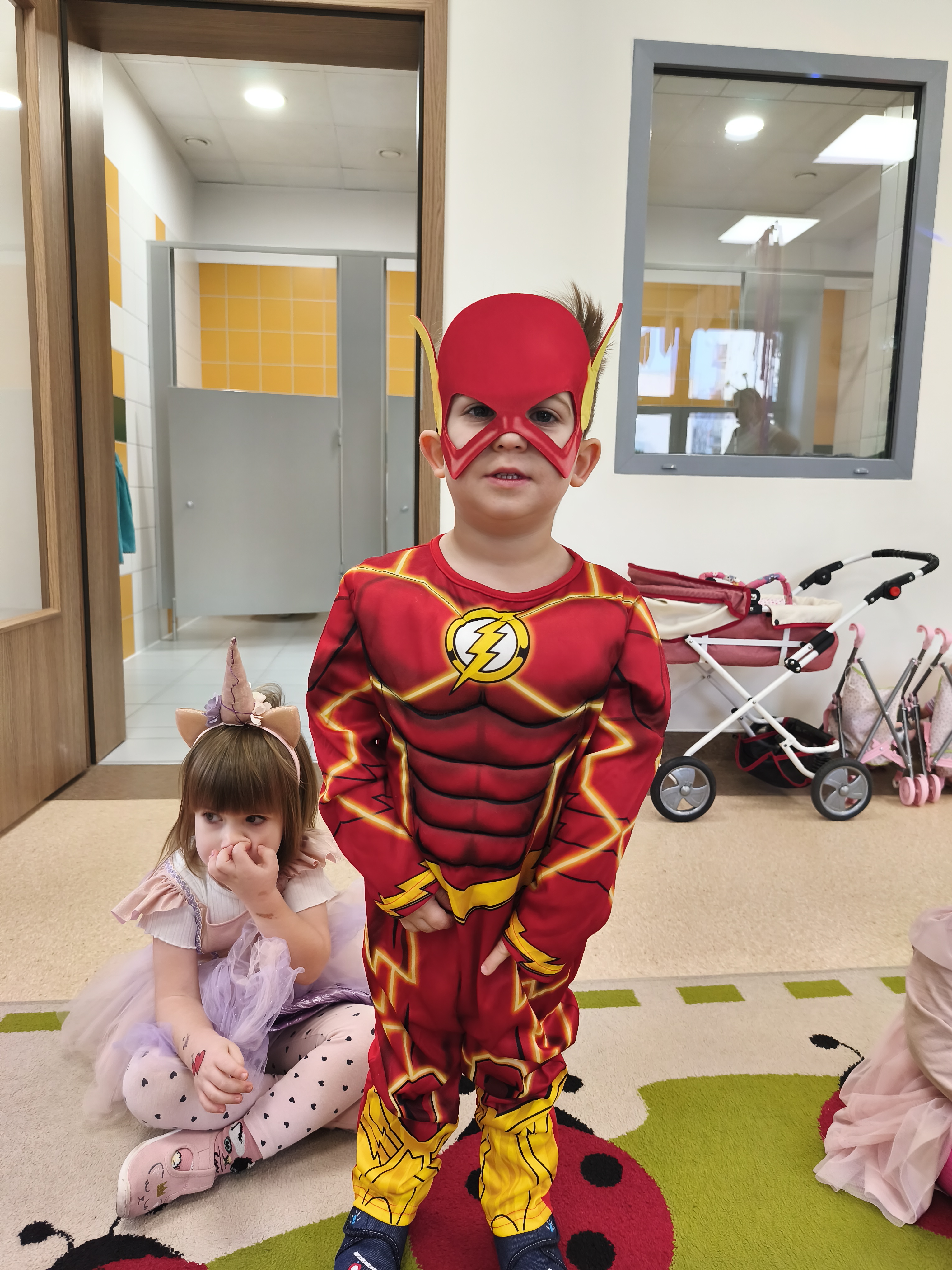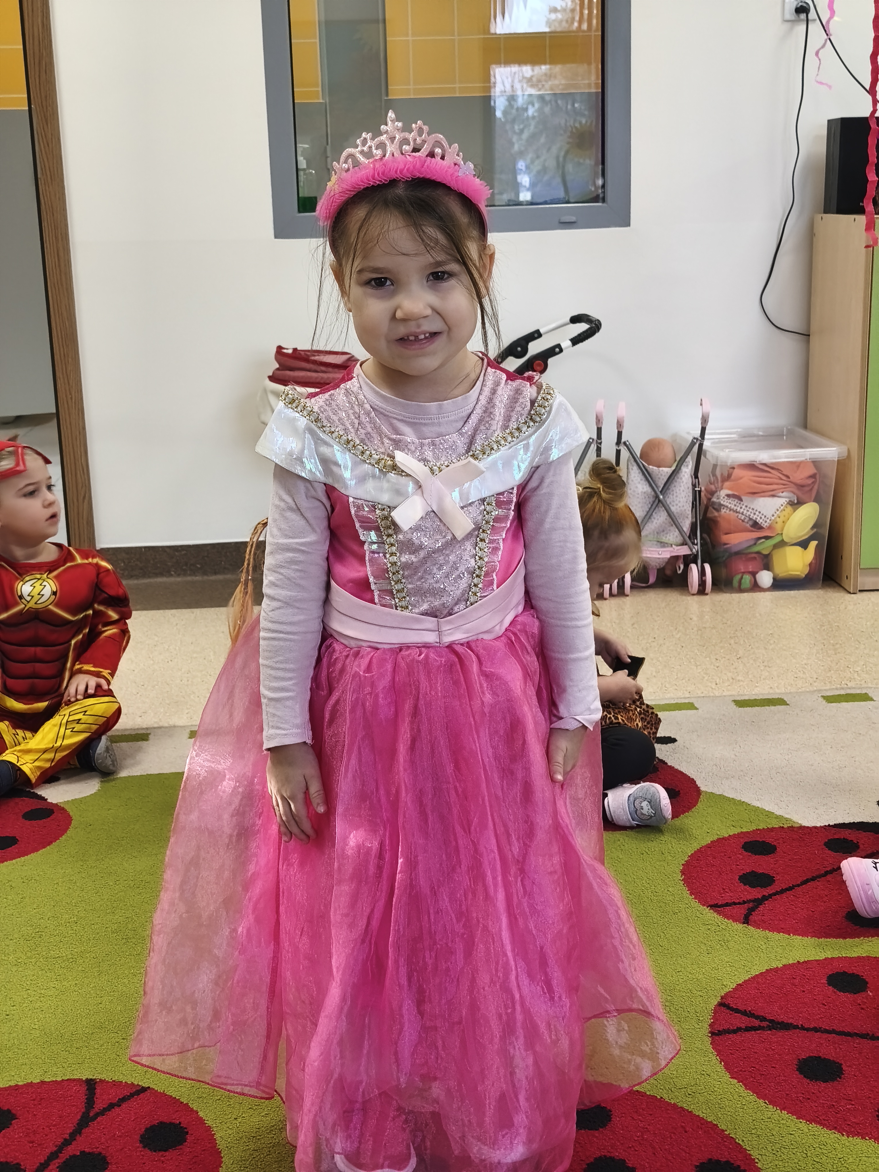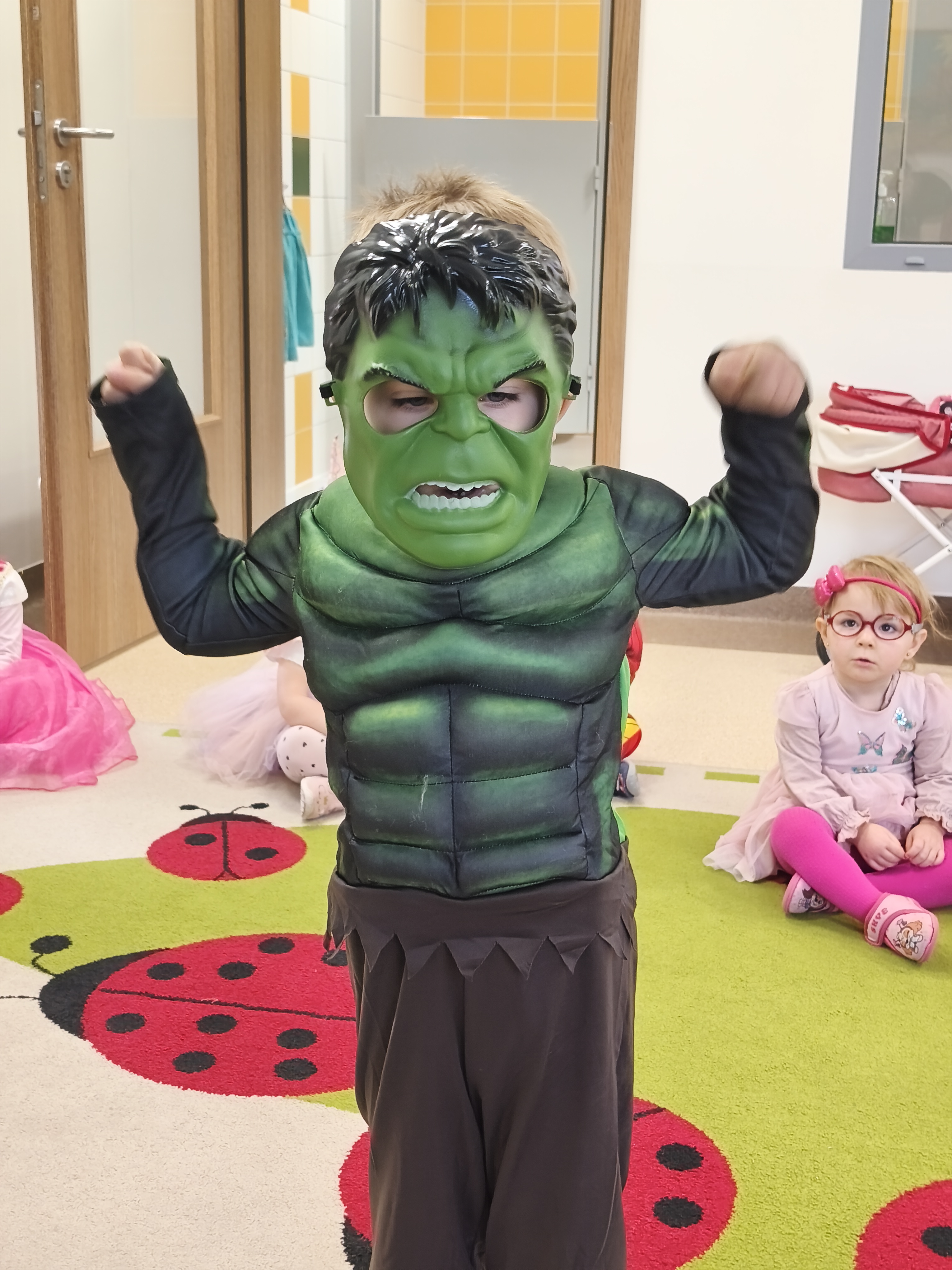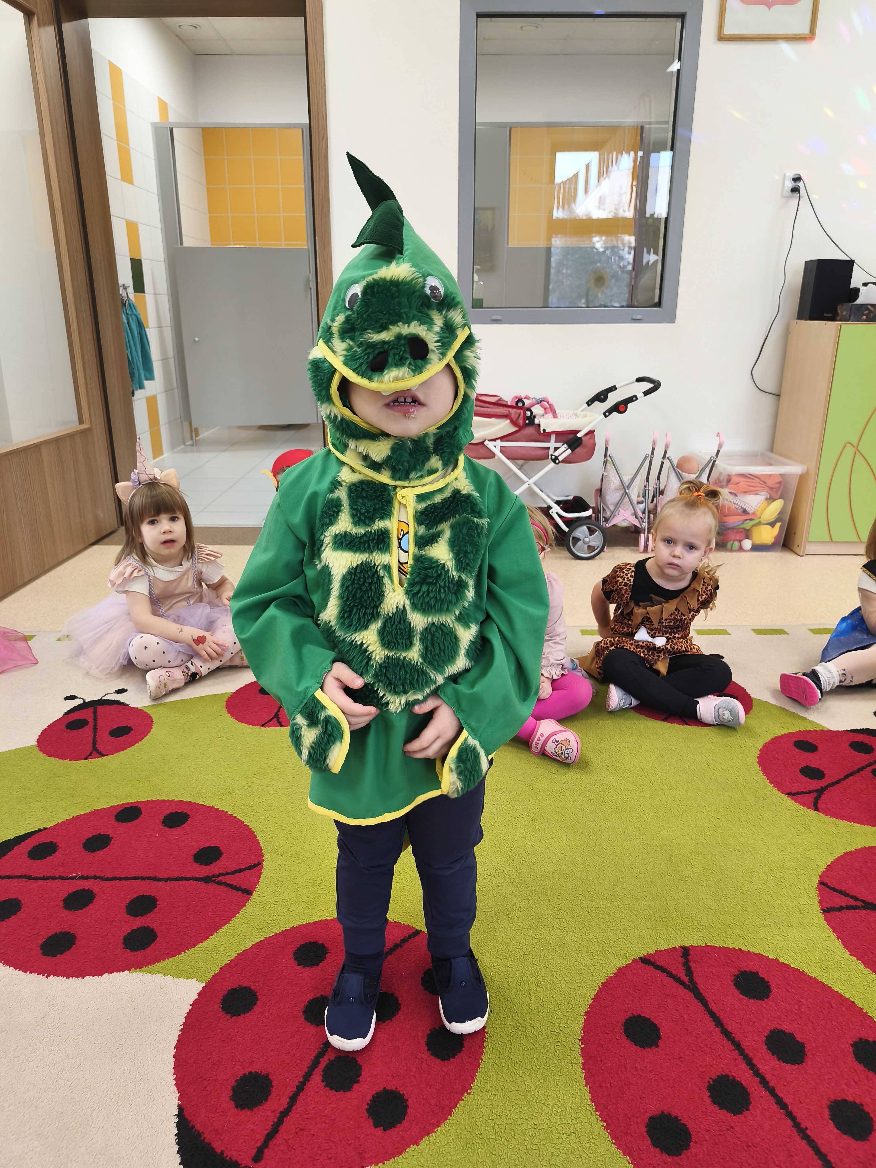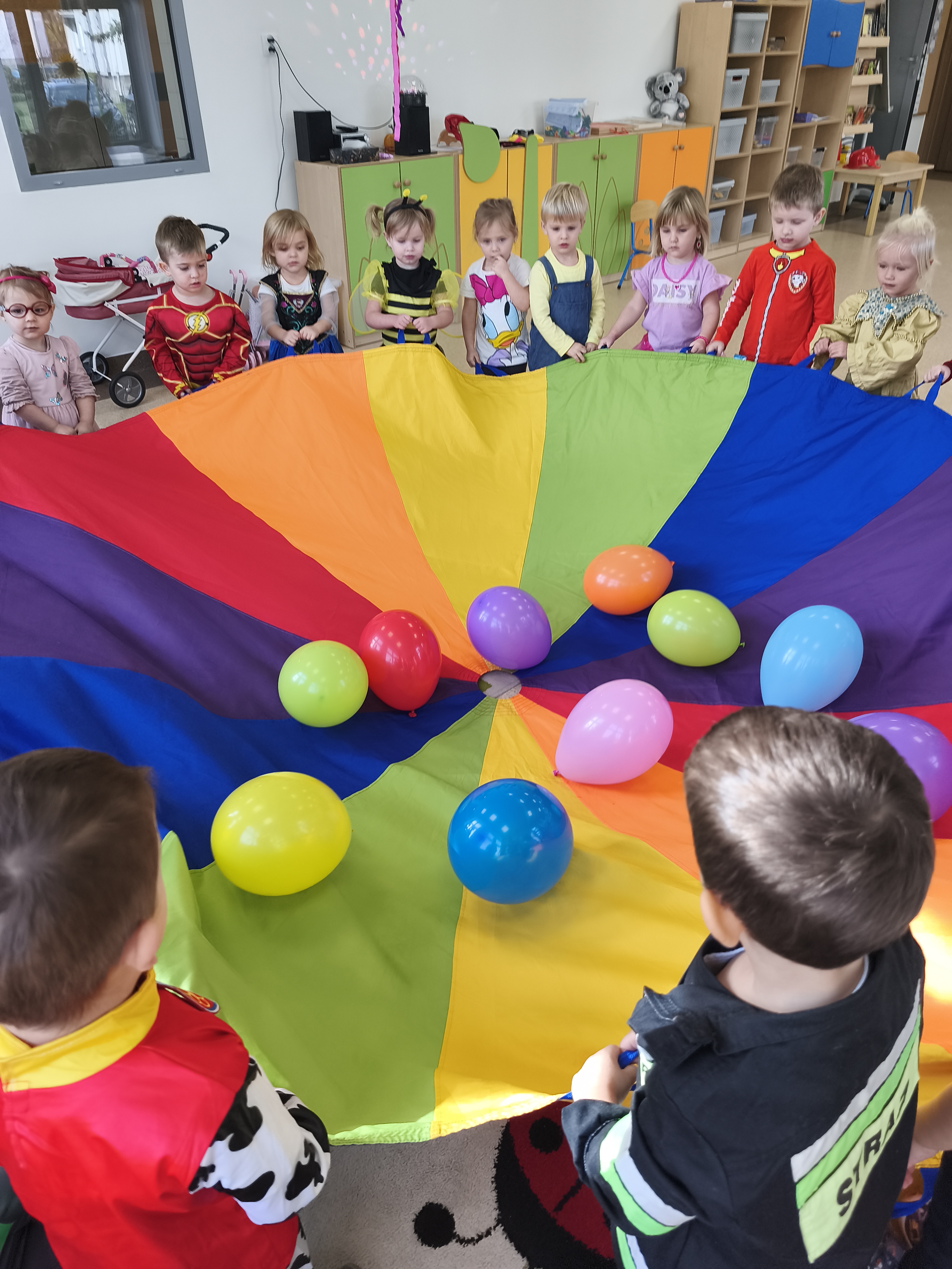 5 listopada obchodzimy Dzień Postaci z Bajek - jedno z najbardziej kolorowych i radosnych świąt. Tego dnia przedszkolaki przyszły przebrane za swoich ulubionych bohaterów. Można było spotkać księżniczki, pszczółki, superbohaterów, zwierzątka i wiele innych bajkowych postaci. Podczas wspólnej zabawy dzieci rozwiązywały zagadki, odgadywały bajkowe tytuły, tańczyły, Z przerażeniem i w ciszy jak nigdy dotąd wysłuchaliśmy bajki o Czerwonym Kapturku. Wilk był nieznajomym a my już wiemy ( choć nie wszyscy ), że jeśli kogoś nie znamy to na spacer z nim się nie wybieramy!