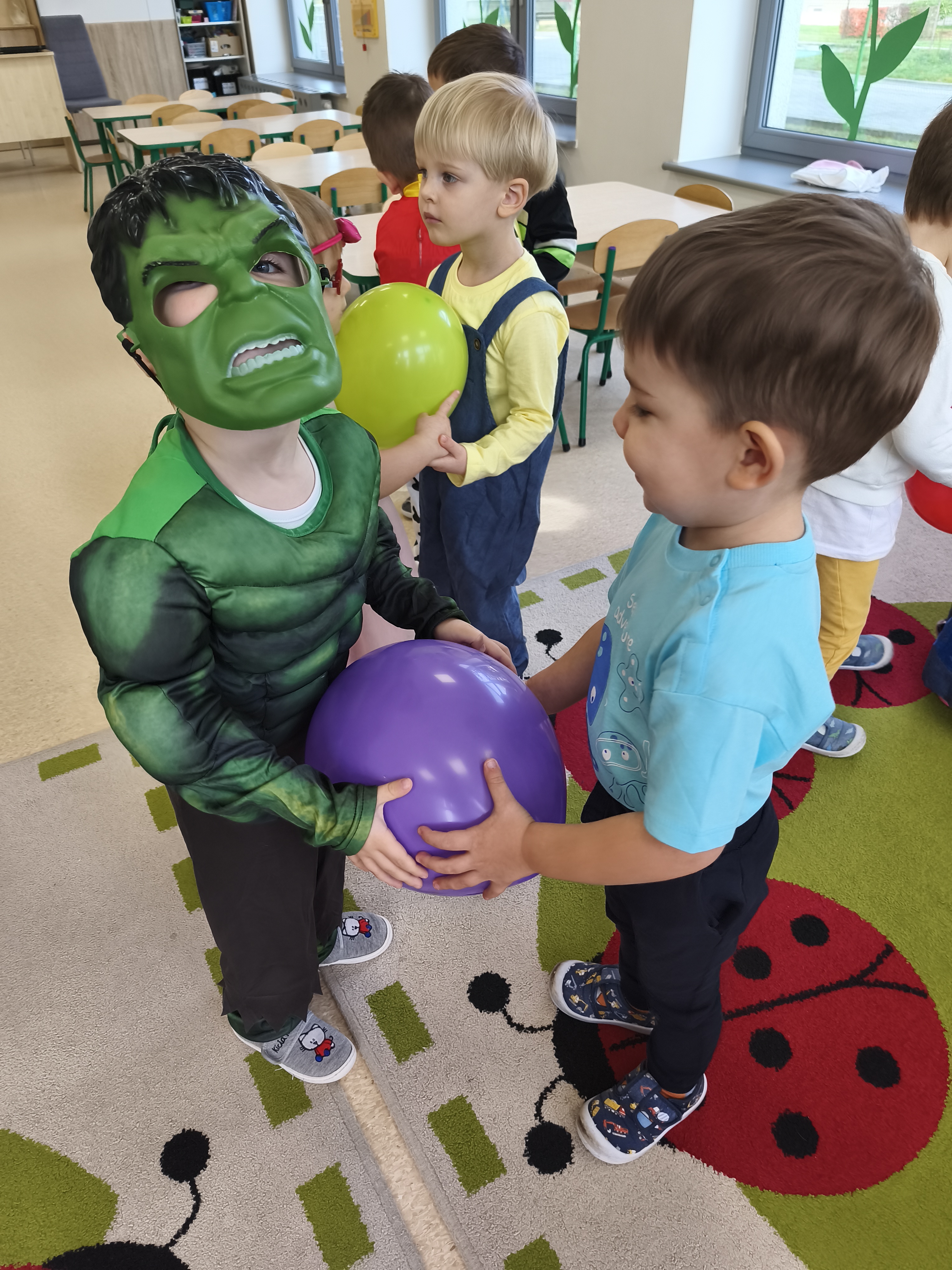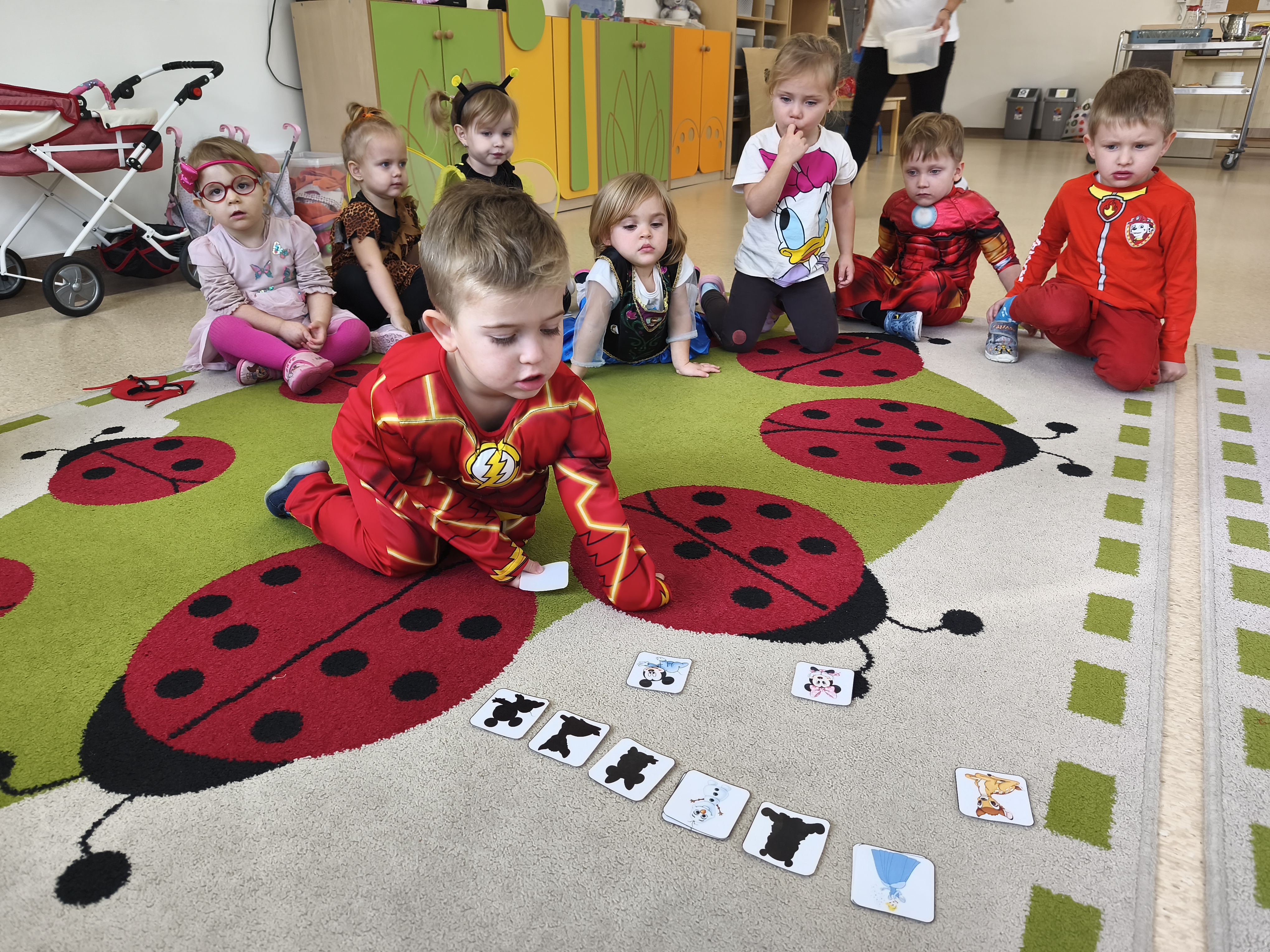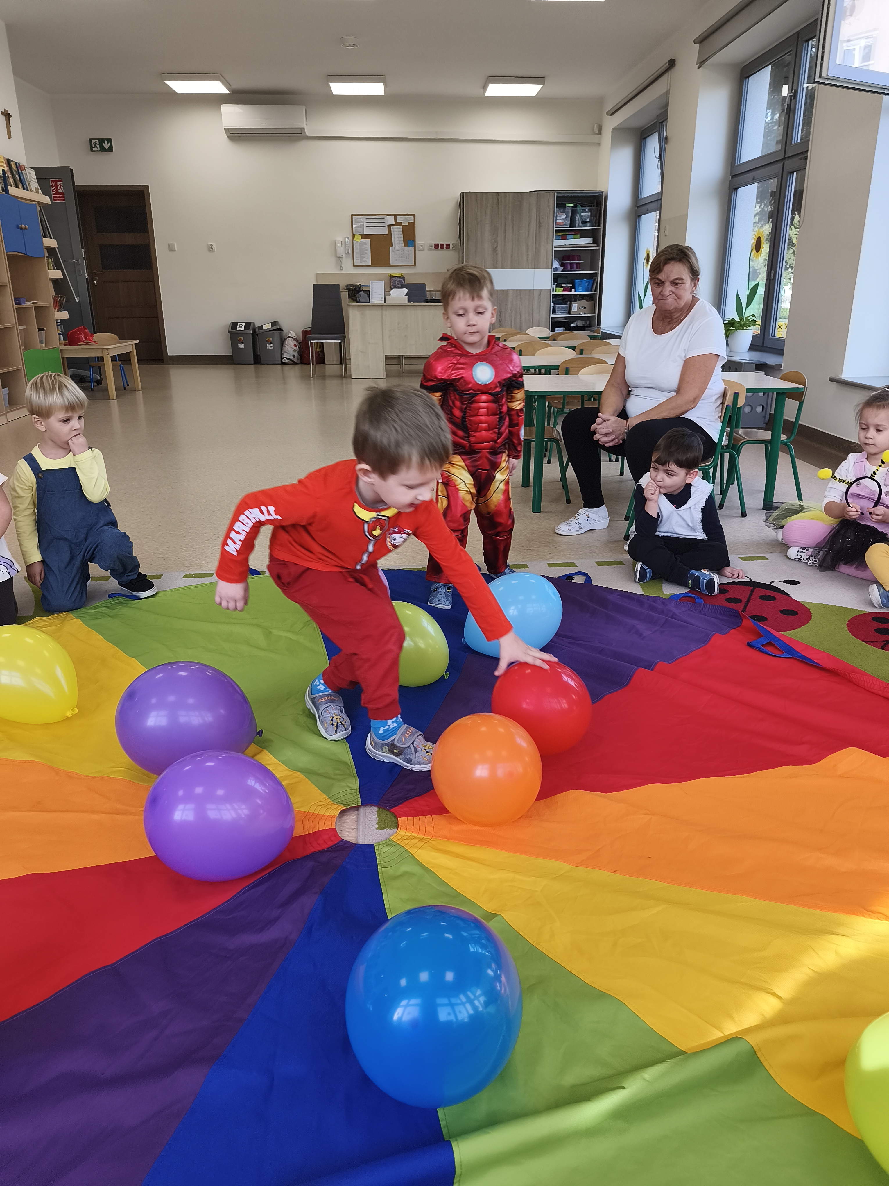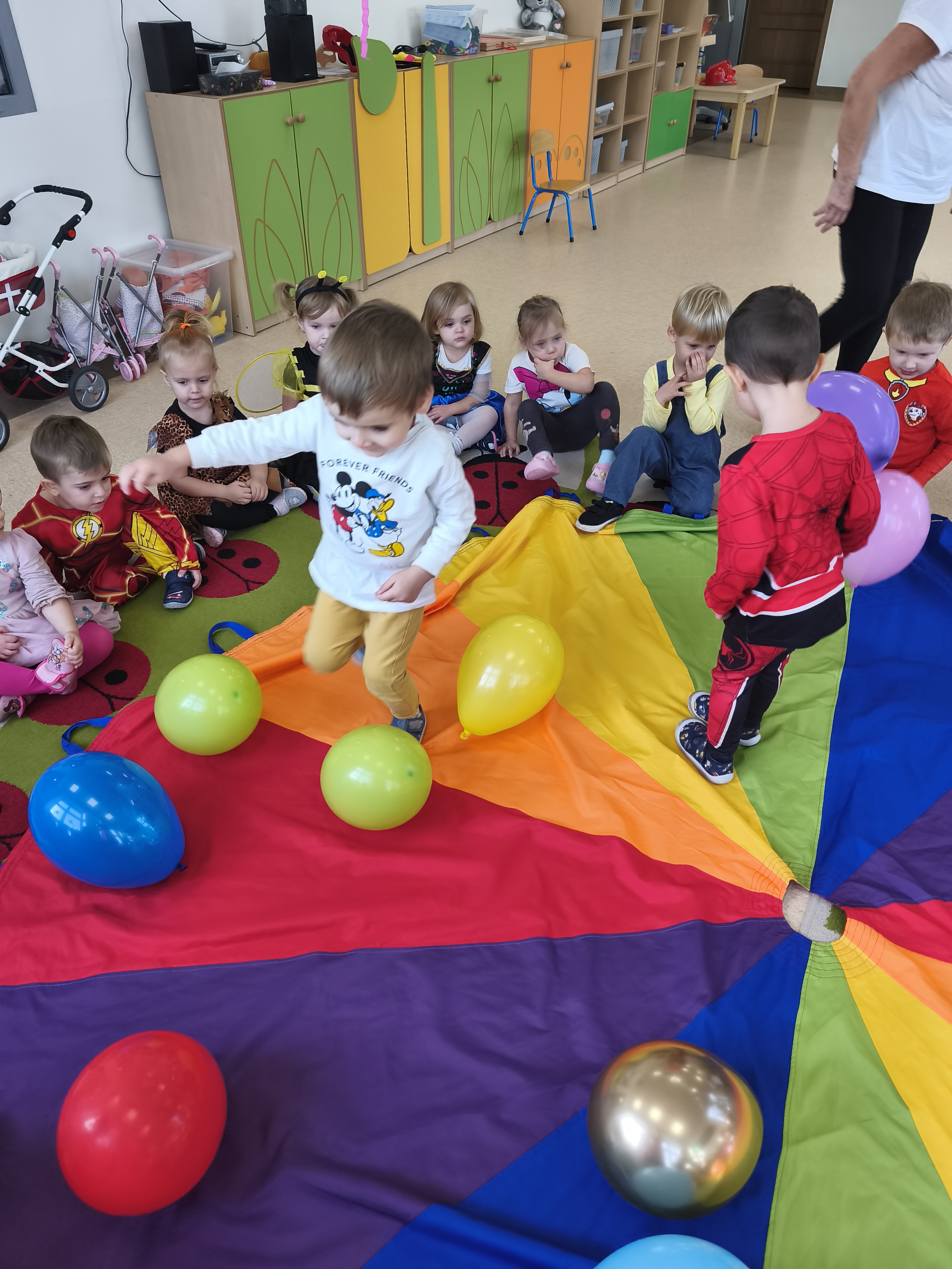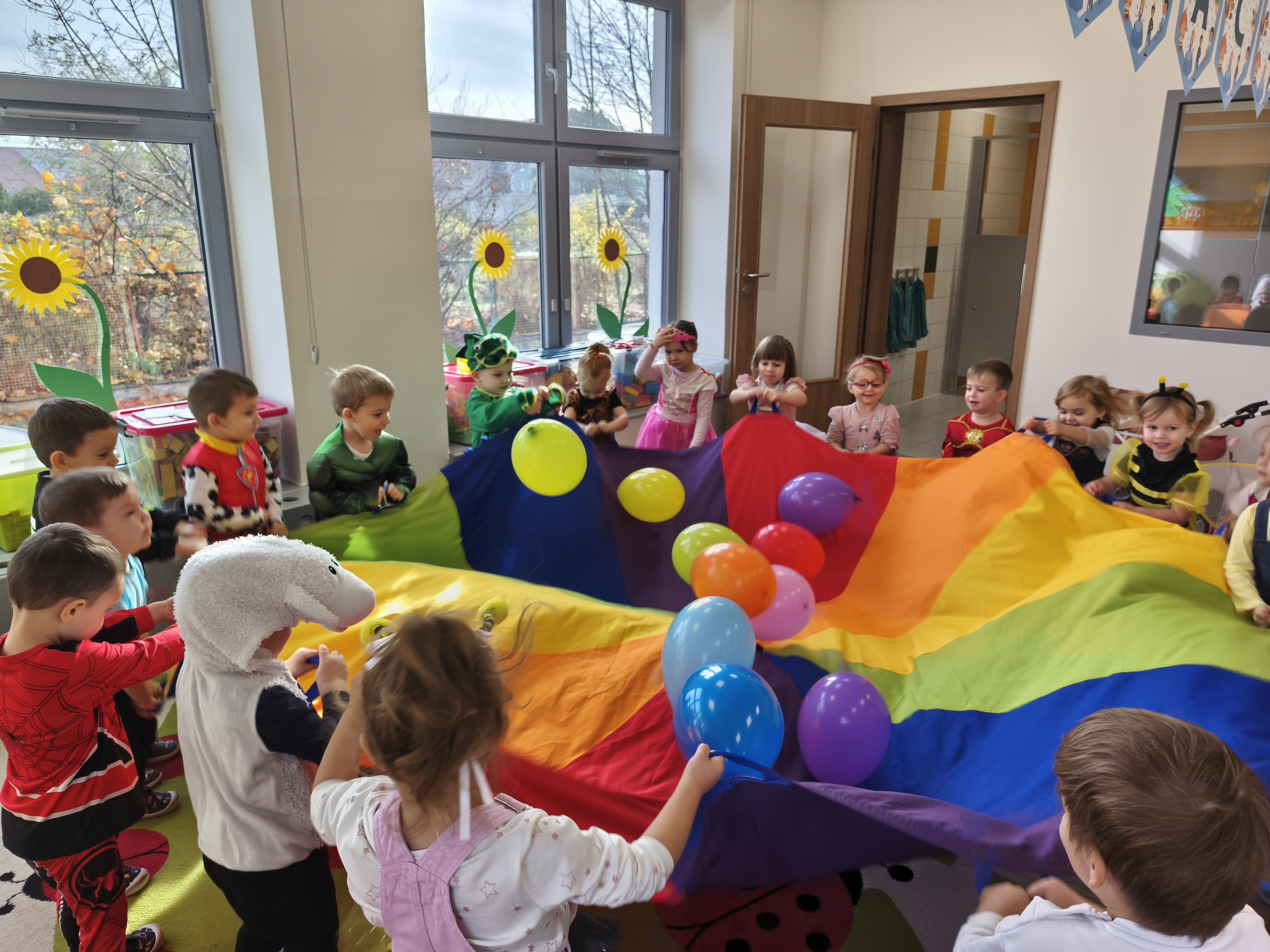 5 listopada obchodzimy Dzień Postaci z Bajek - jedno z najbardziej kolorowych i radosnych świąt. Tego dnia przedszkolaki przyszły przebrane za swoich ulubionych bohaterów. Można było spotkać księżniczki, pszczółki, superbohaterów, zwierzątka i wiele innych bajkowych postaci. Podczas wspólnej zabawy dzieci rozwiązywały zagadki, odgadywały bajkowe tytuły, tańczyły, Z przerażeniem i w ciszy jak nigdy dotąd wysłuchaliśmy bajki o Czerwonym Kapturku. Wilk był nieznajomym a my już wiemy ( choć nie wszyscy ), że jeśli kogoś nie znamy to na spacer z nim się nie wybieramy!
