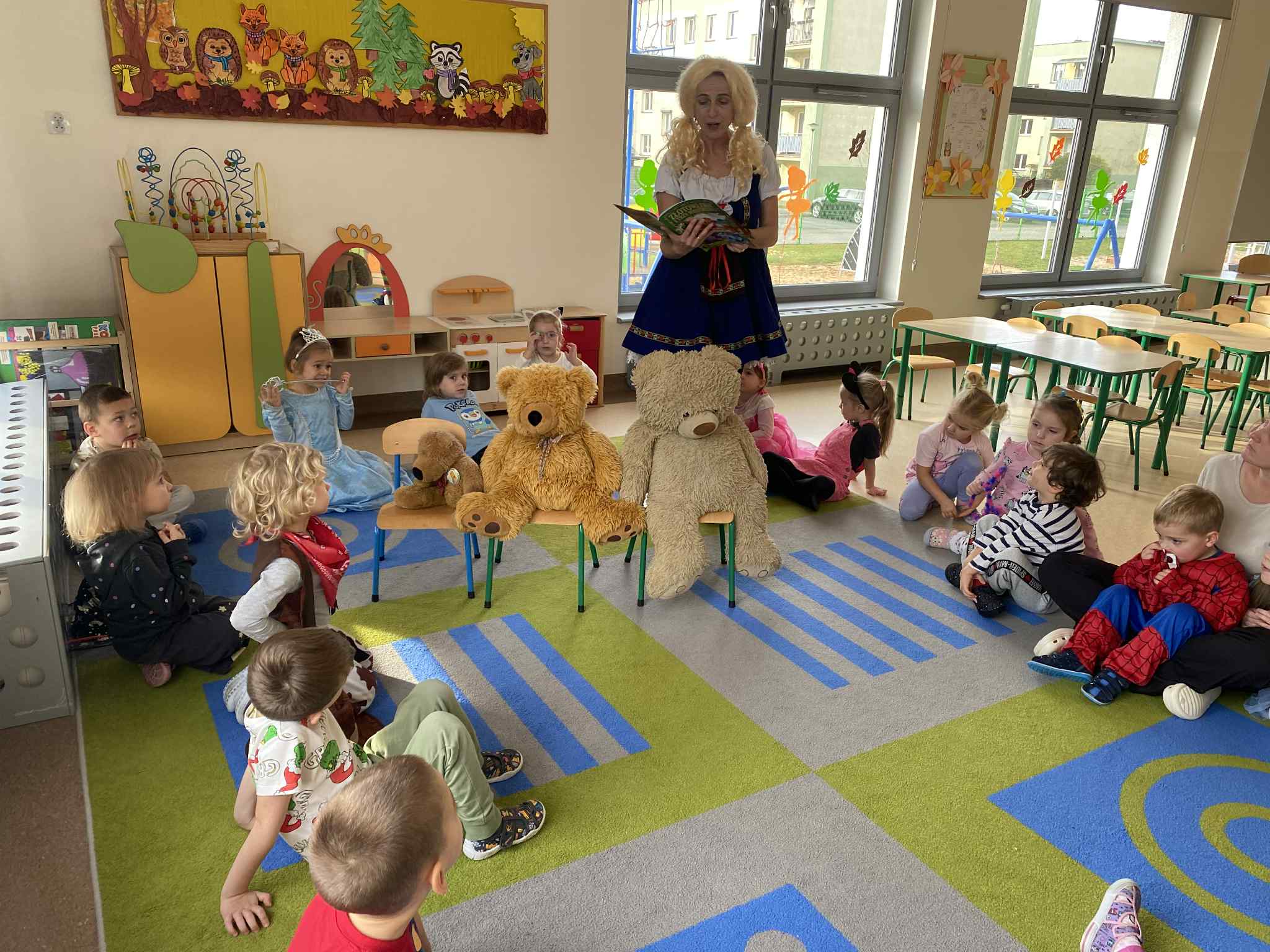 5 listopada obchodzimy Dzień Postać z Bajek. Wspaniałe przebrania, kolorowe koszulki pozwoliły nam cieszyć się z tego dnia. Dodatkowo odwiedziły nas Trzy Niedźwiadki i niesforna Złotowłosa. Była też Alicja, ciągle spóźniony Królik i zła Królowa Kier. Niech moc bajek będzie z nami!