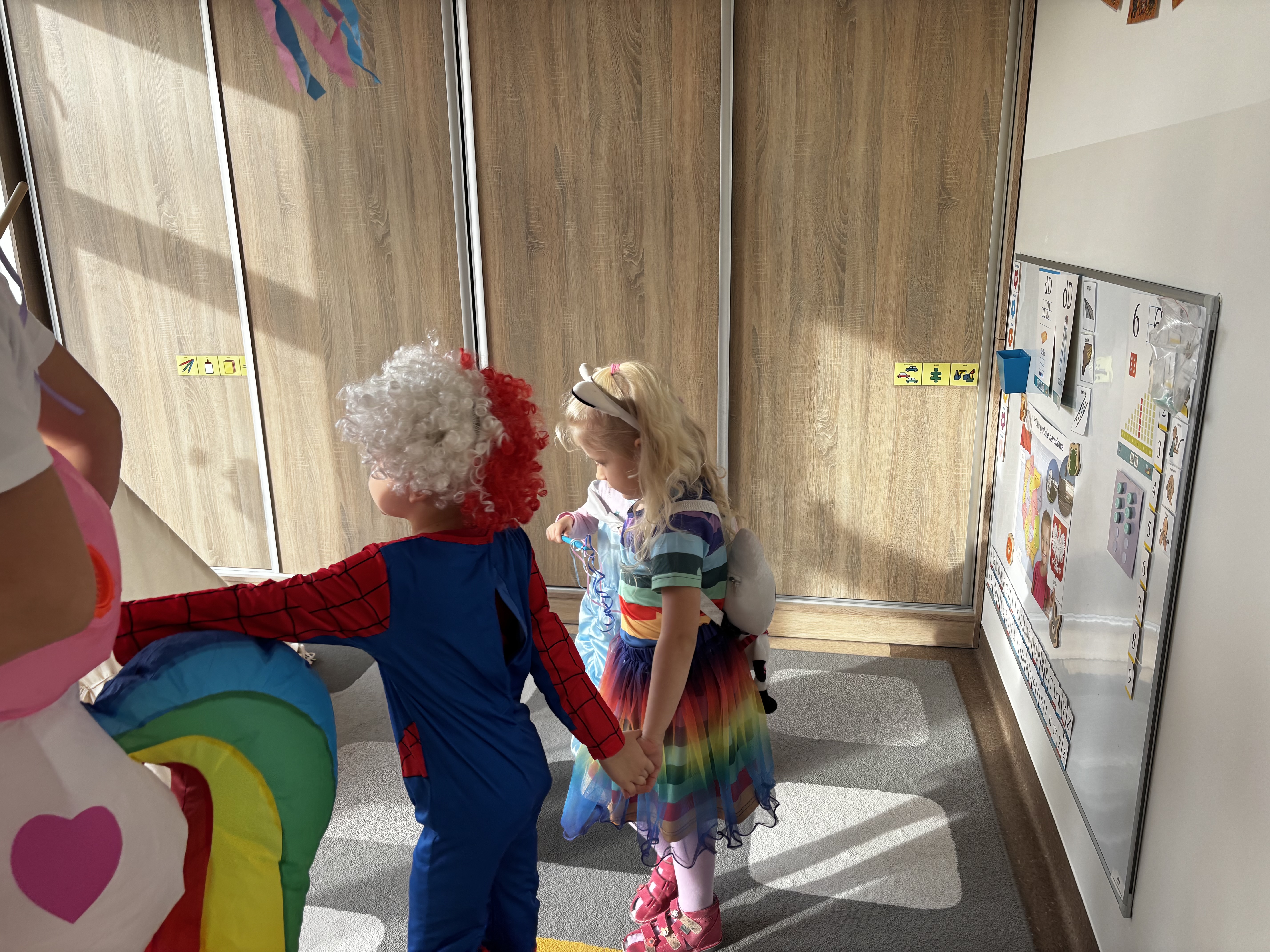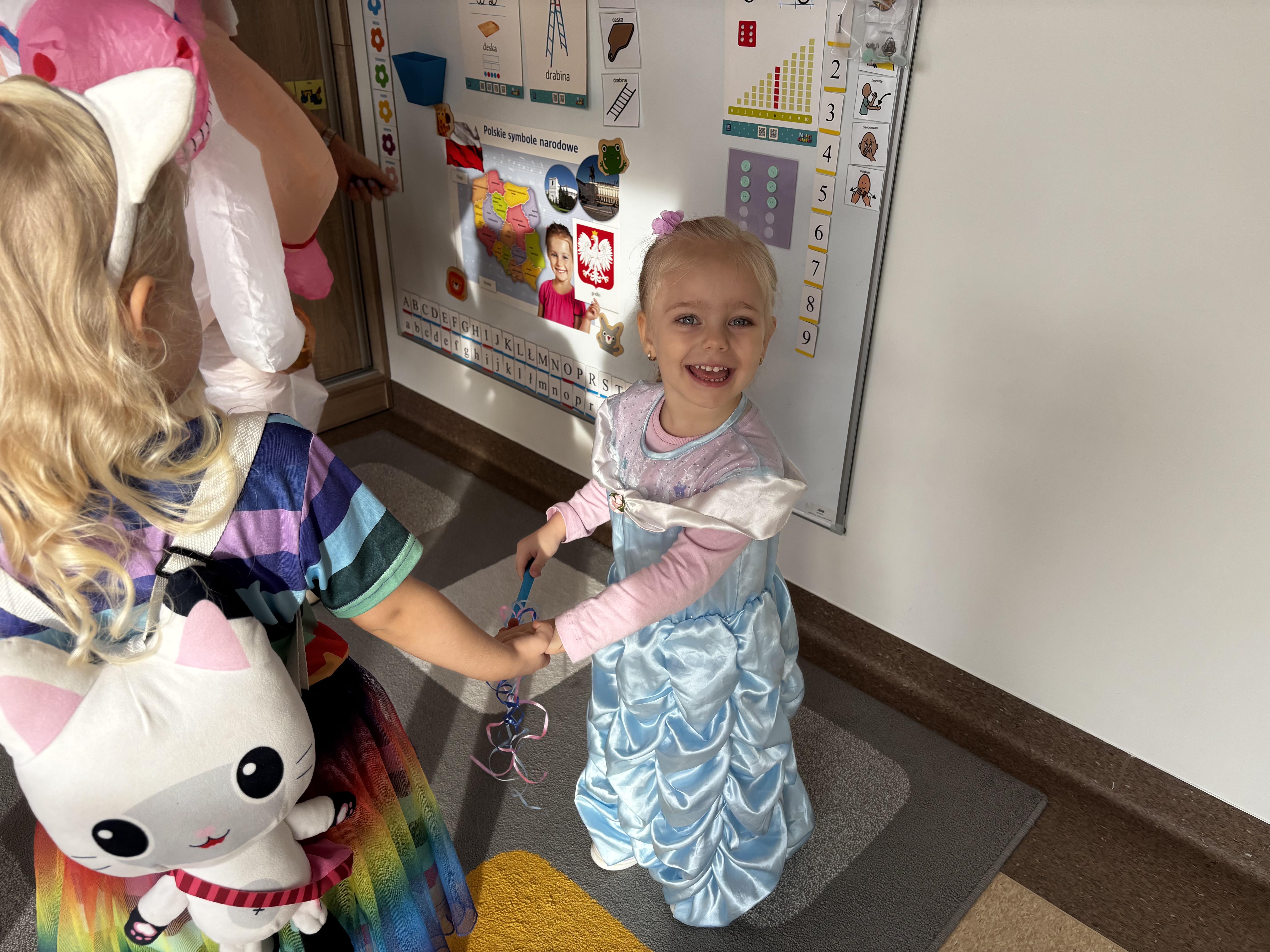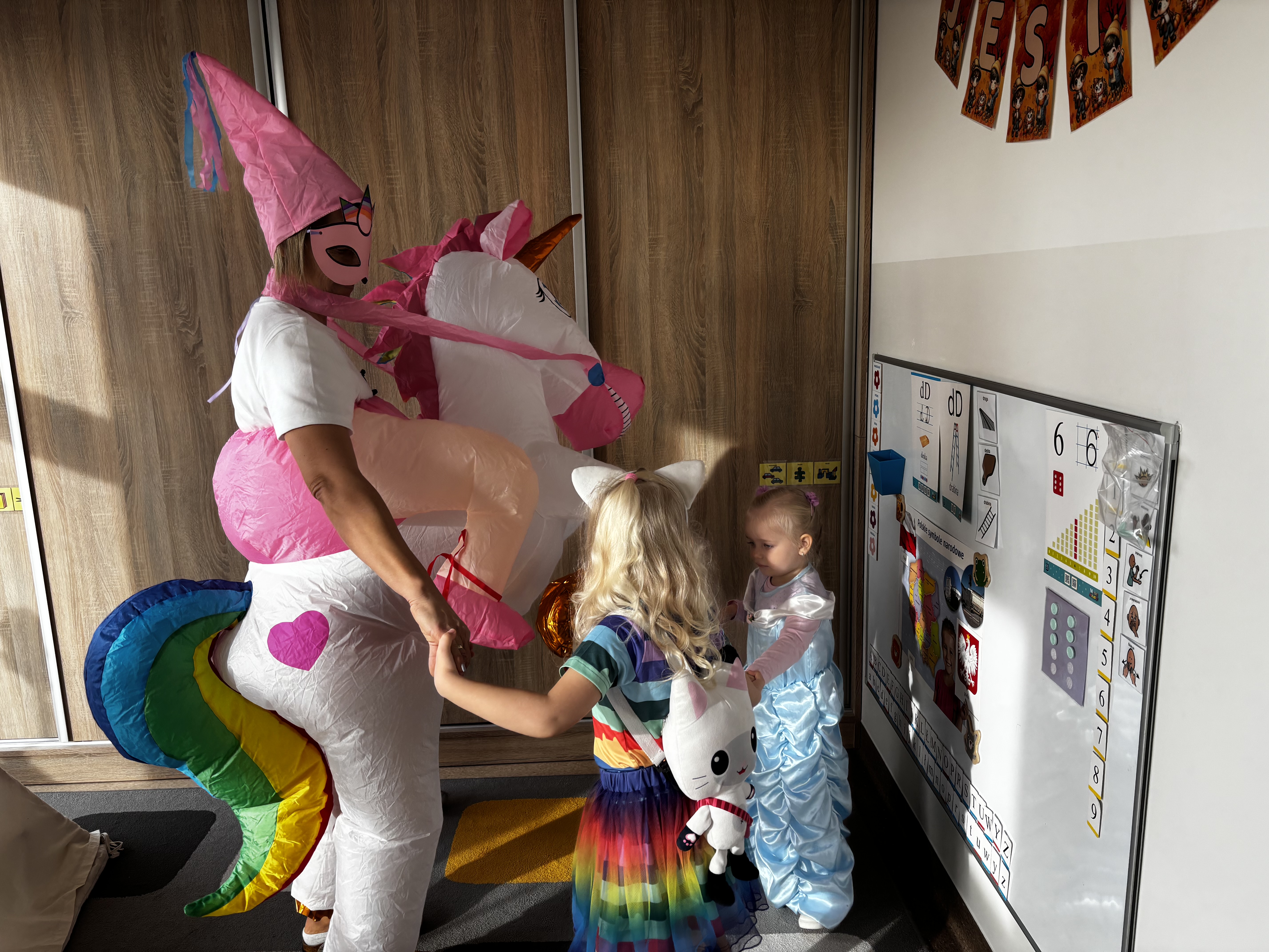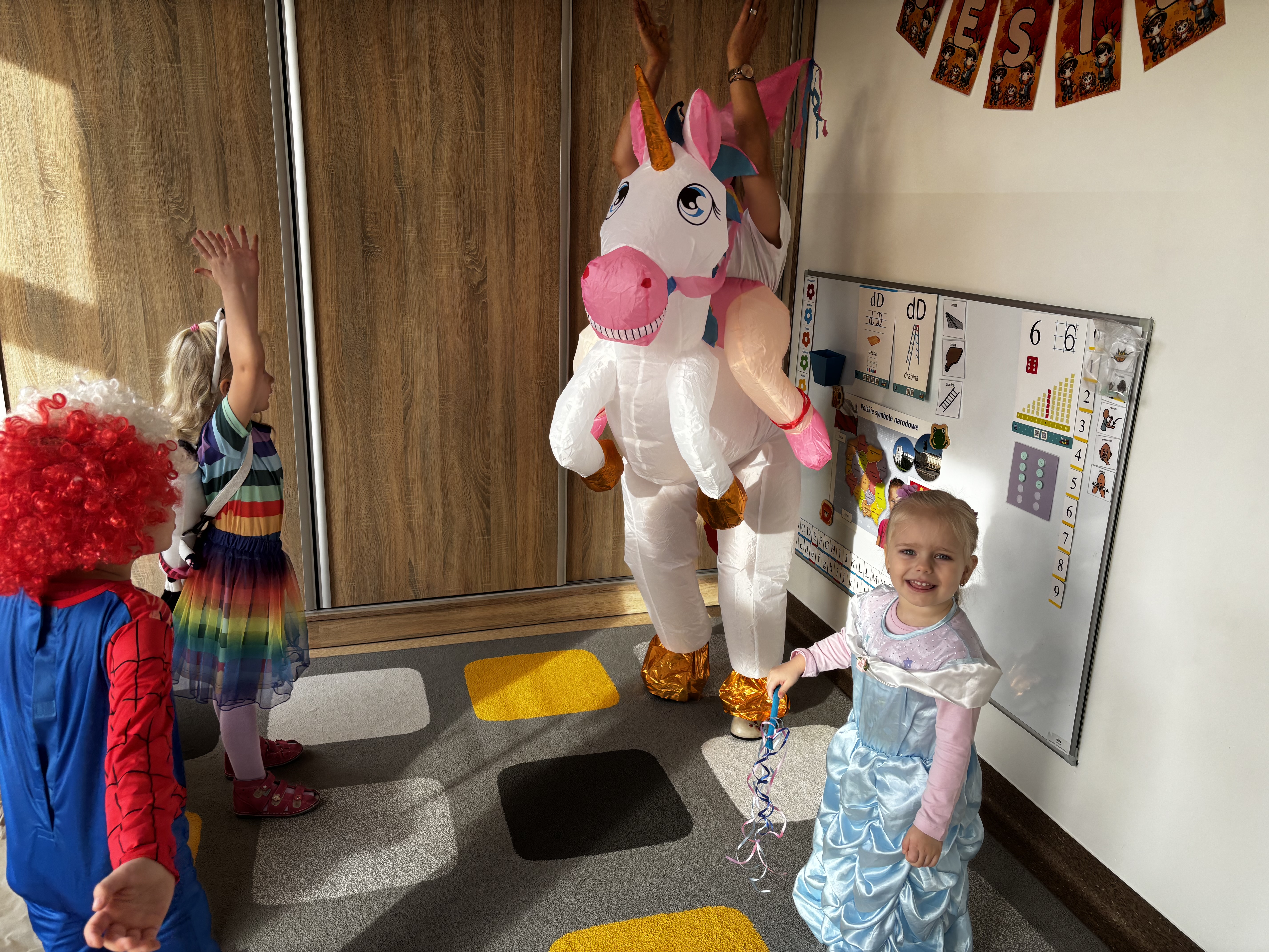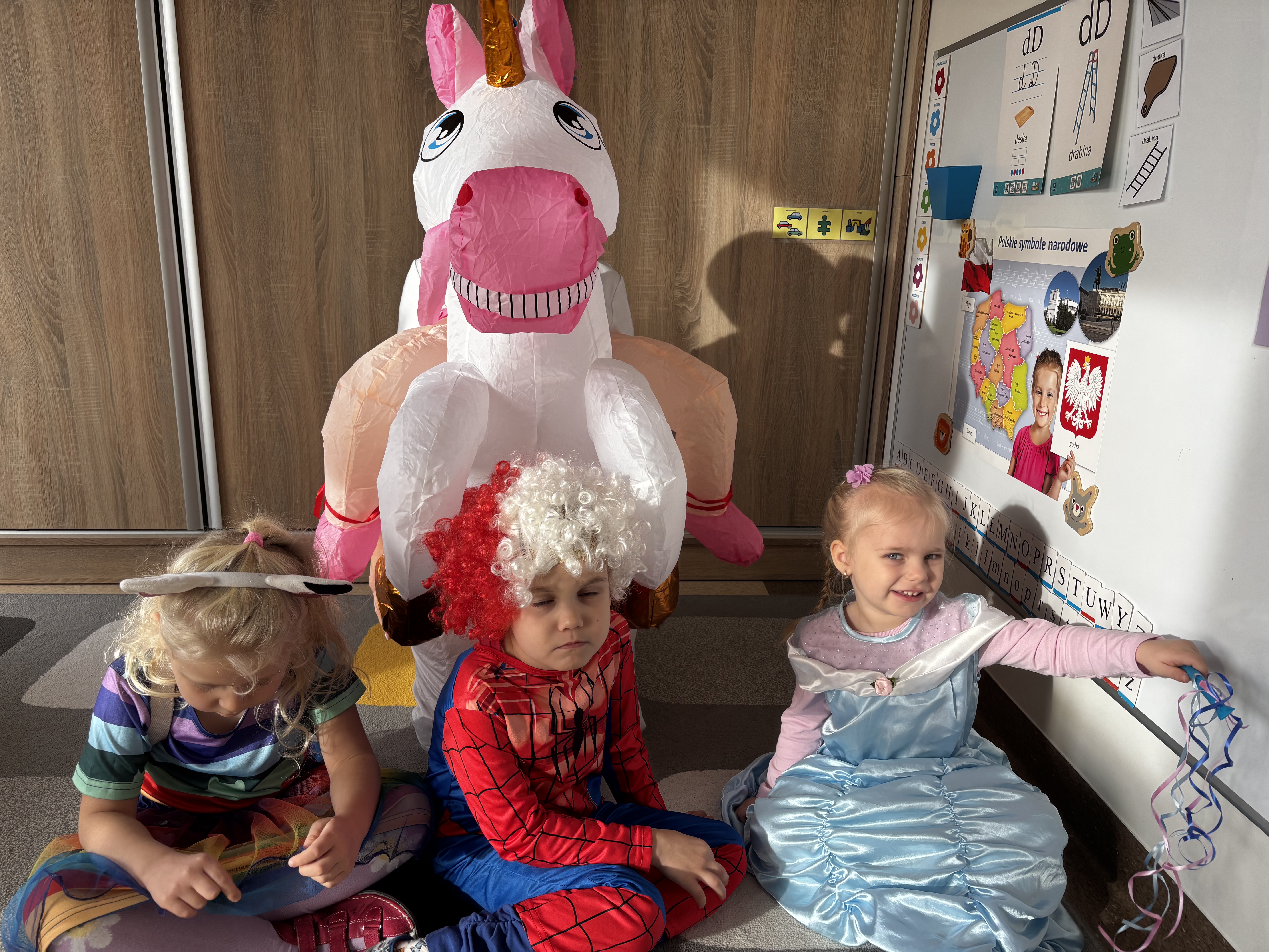 W naszej grupie obchodziliśmy Dzień Postaci z Bajki w radosnej i pełnej uśmiechów atmosferze. Tańce, muzyka i wspólna zabawa sprawiły, że każdy poczuł się jak w zaczarowanej krainie. Jednorożec roztańczył naszą trójeczkę Sówek i zaprosił do wspólnego pląsania. Spotkaliśmy również Królową Kier, z którą zrobiliśmy sobie pamiątkowe zdjęcia. A po wszystkich bajkowych przeżyciach wybraliśmy się na wspaniały, jesienny spacer:)