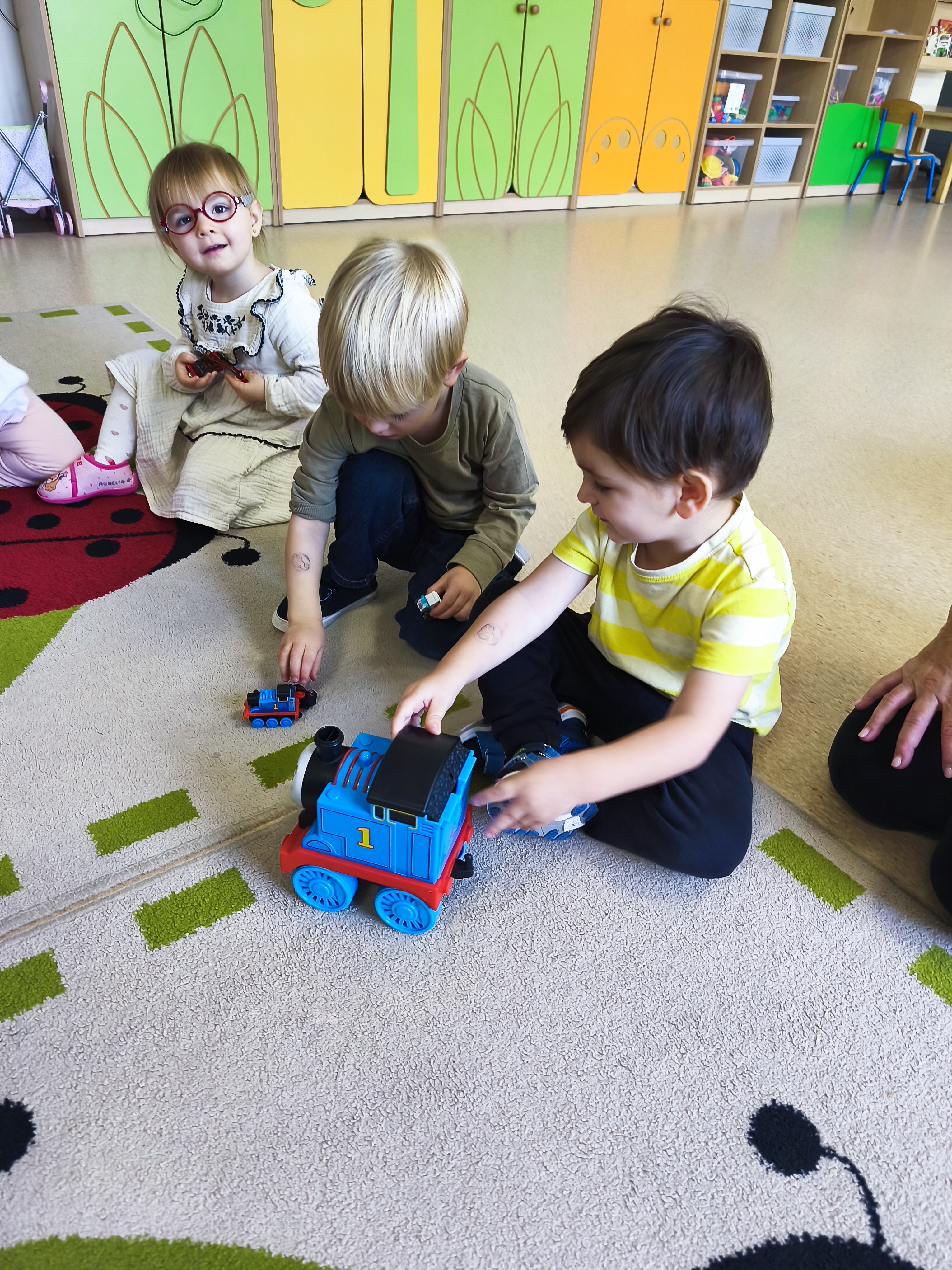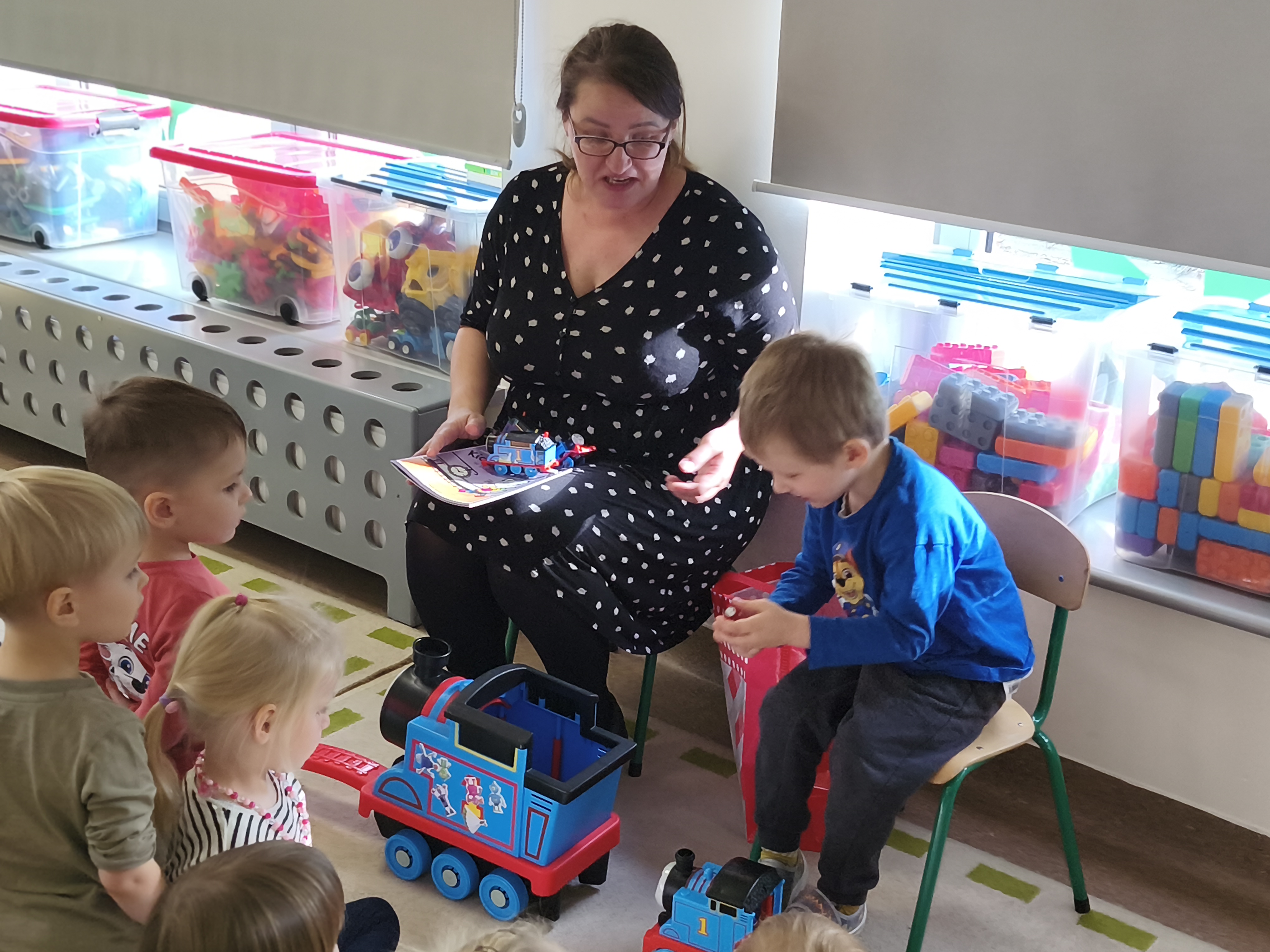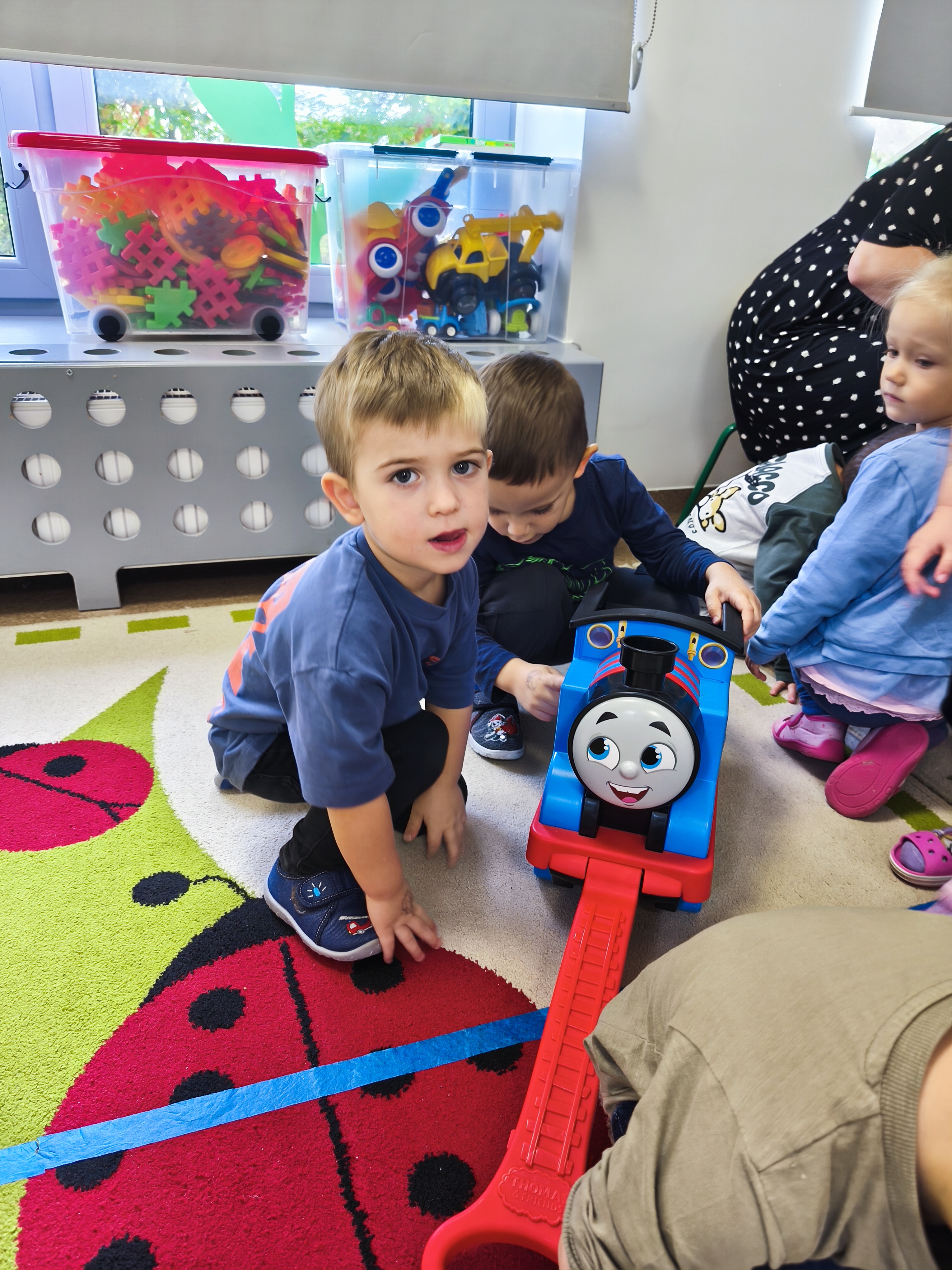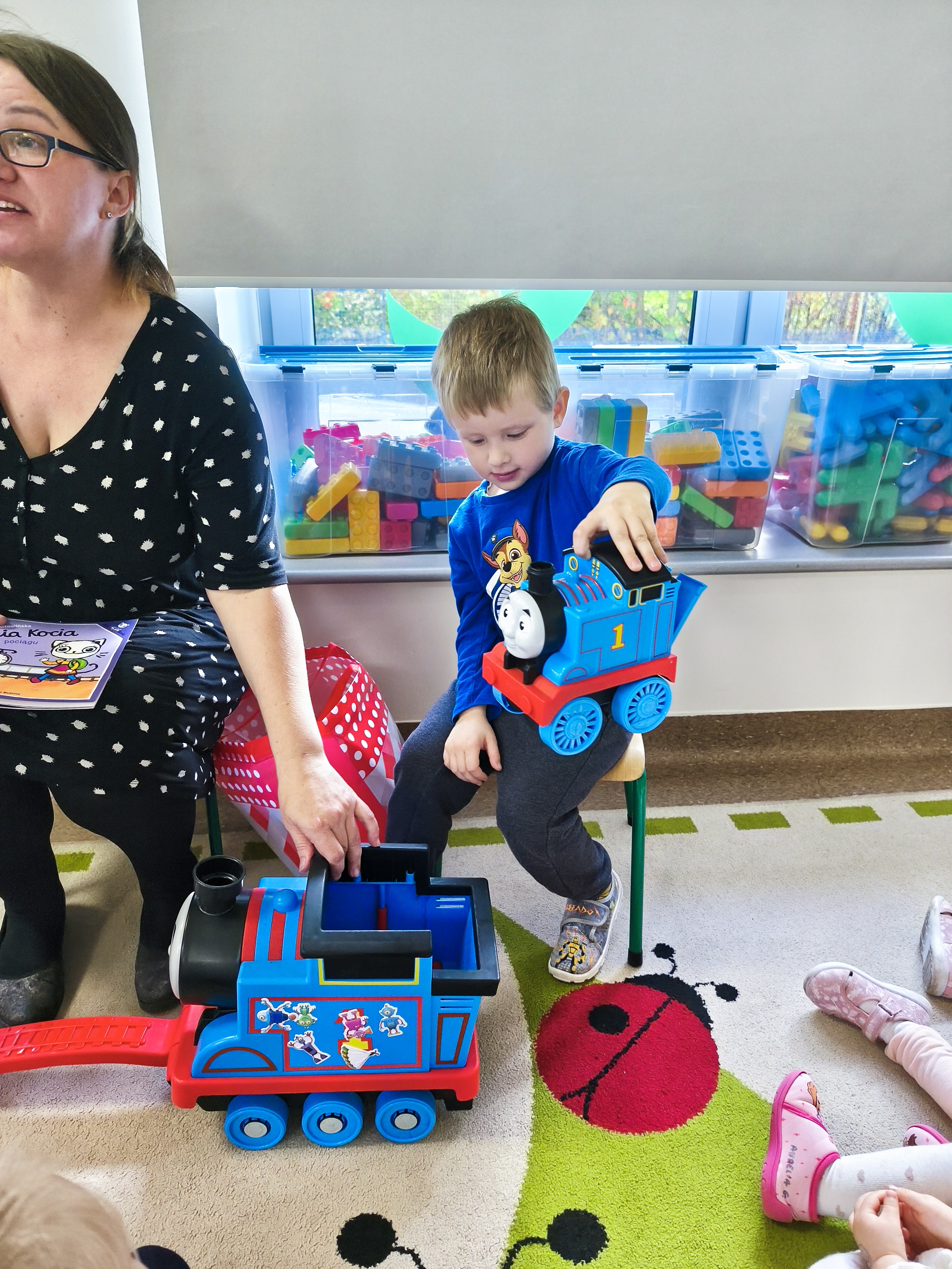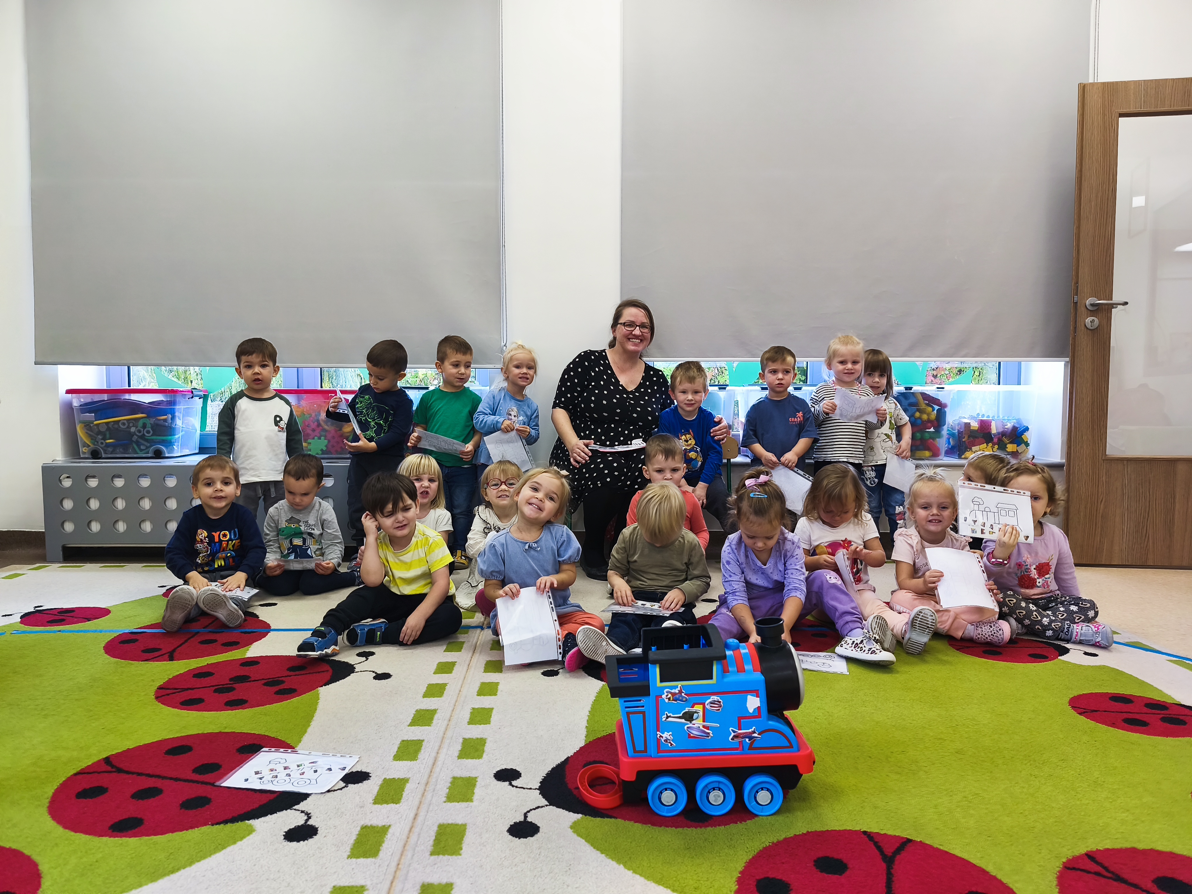 W piątek odwiedziła nas mama Bartka. Pani Mirka przeczytała dzieciom bajkę " Kicia Kocia i pociąg". Następnie Bartuś opowiedział swoim kolegom i koleżankom czym się interesuje. Mogliśmy usłyszeć o podróżach pociągiem. Na zakończenie każdy Borowik otrzymał kolorowankę i naklejki związane z pasją Bartosza.