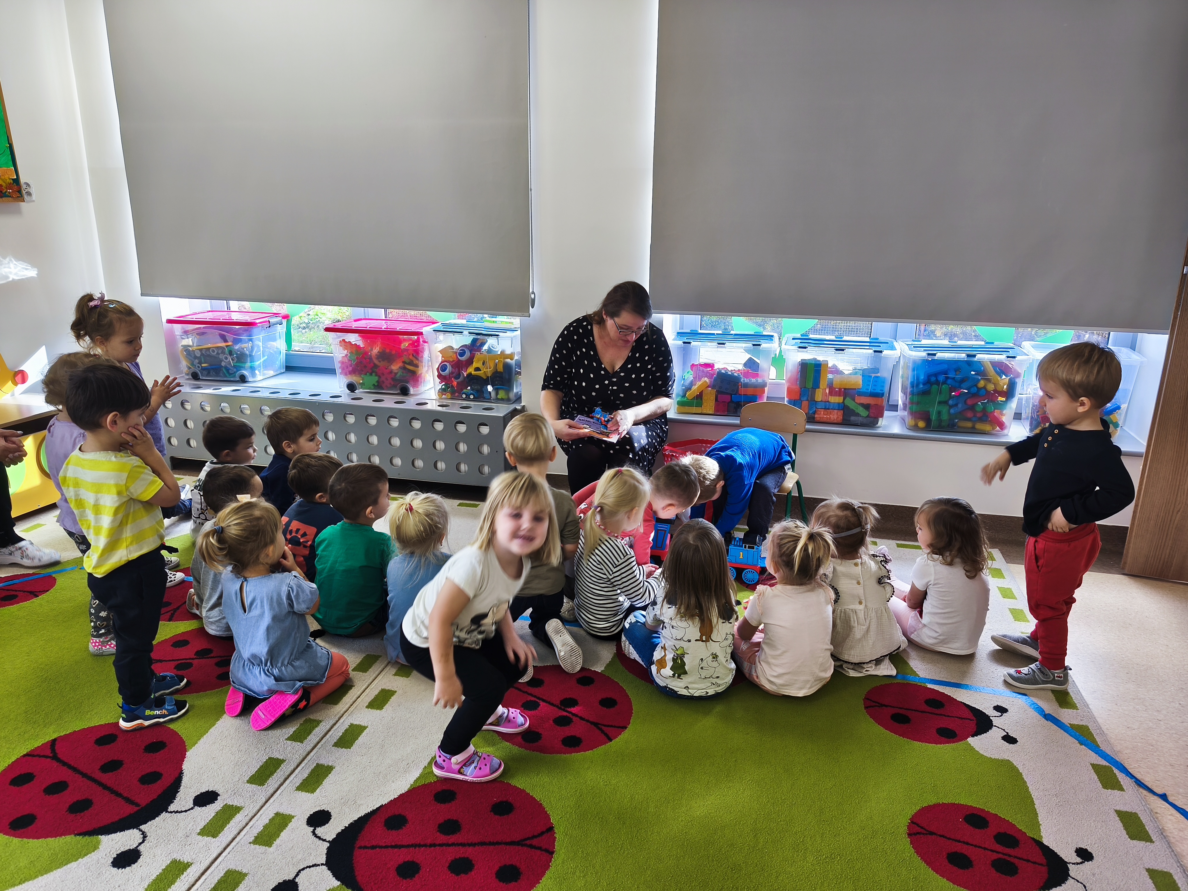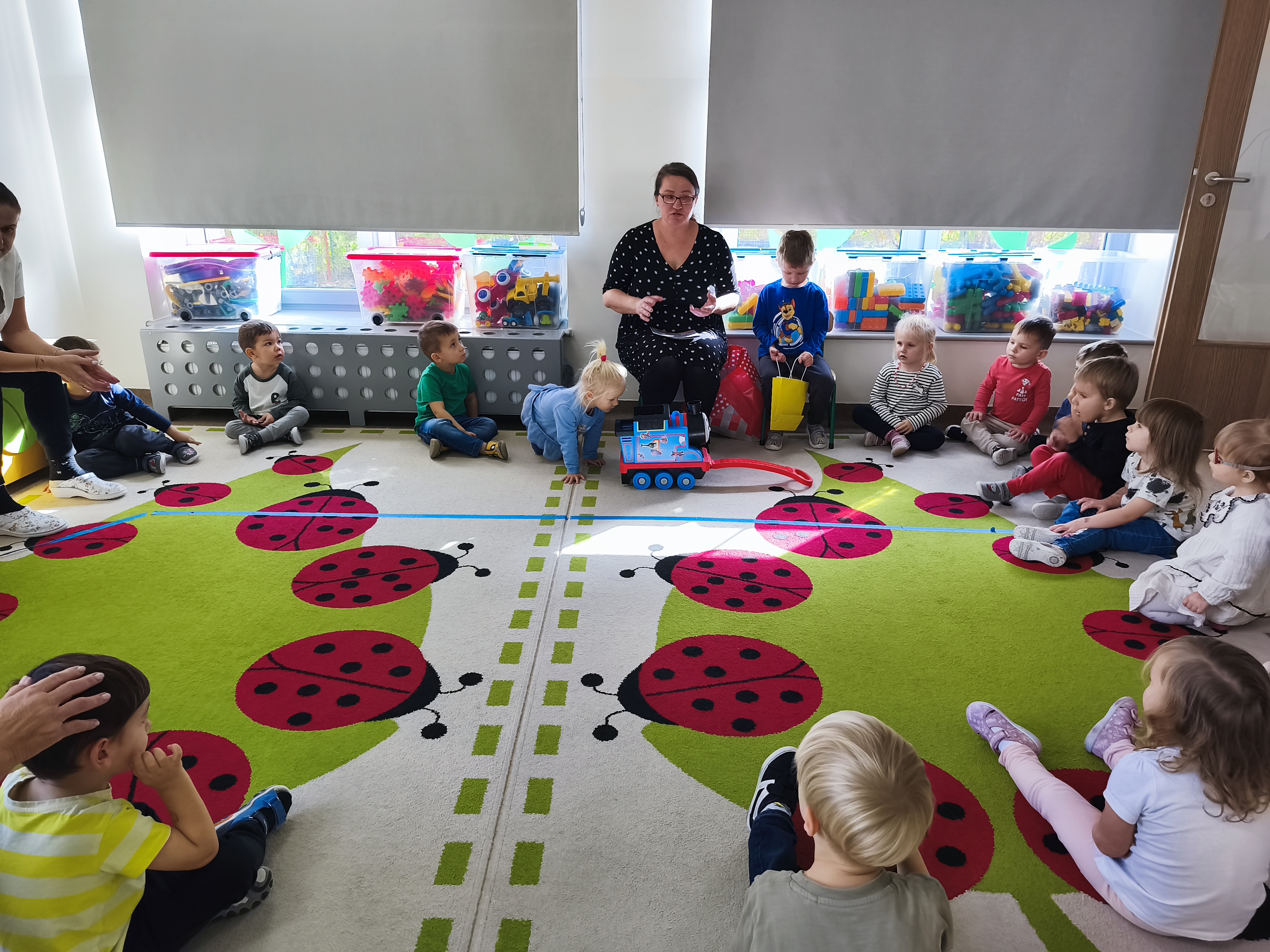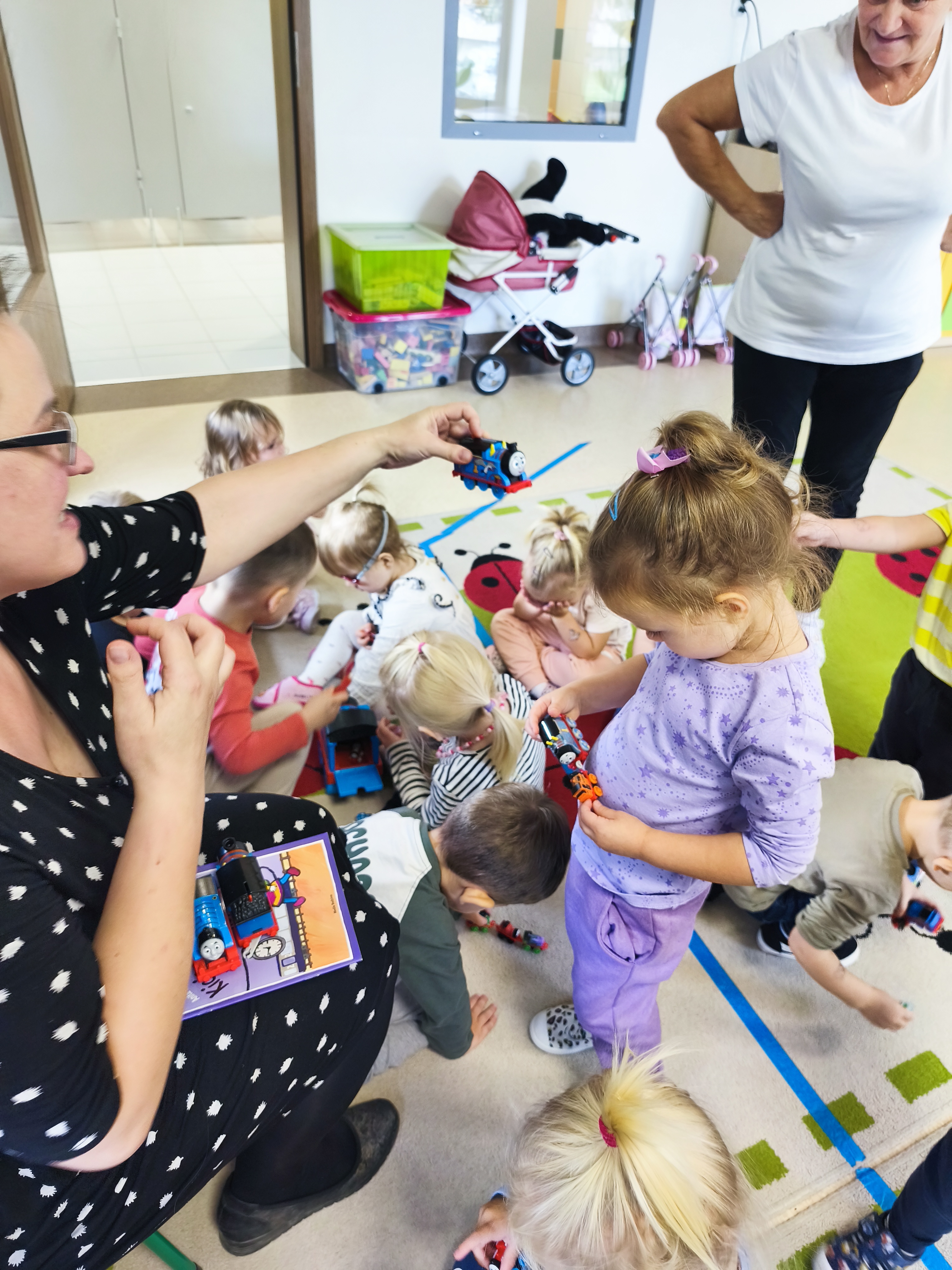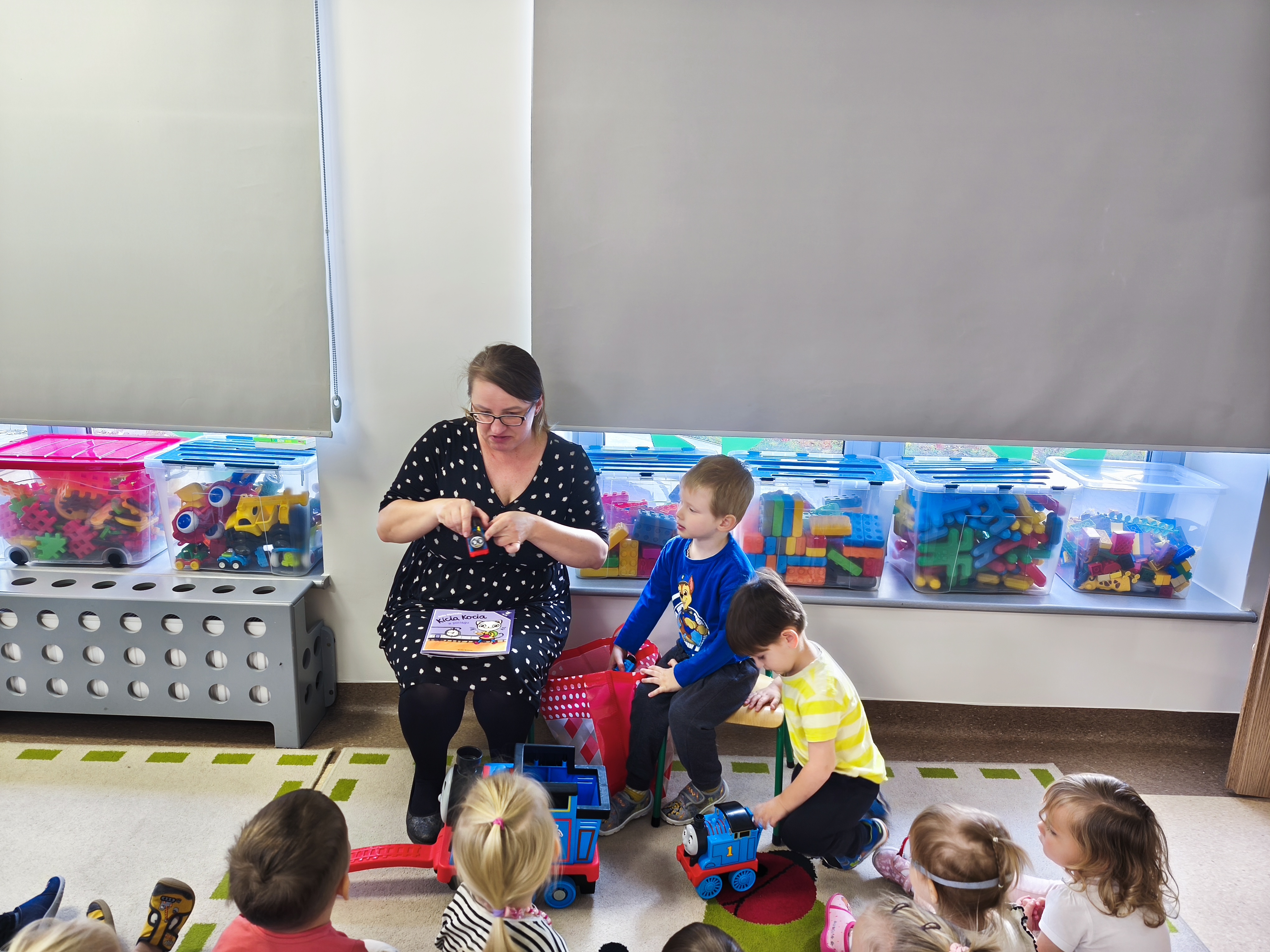 W piątek odwiedziła nas mama Bartka. Pani Mirka przeczytała dzieciom bajkę " Kicia Kocia i pociąg". Następnie Bartuś opowiedział swoim kolegom i koleżankom czym się interesuje. Mogliśmy usłyszeć o podróżach pociągiem. Na zakończenie każdy Borowik otrzymał kolorowankę i naklejki związane z pasją Bartosza.