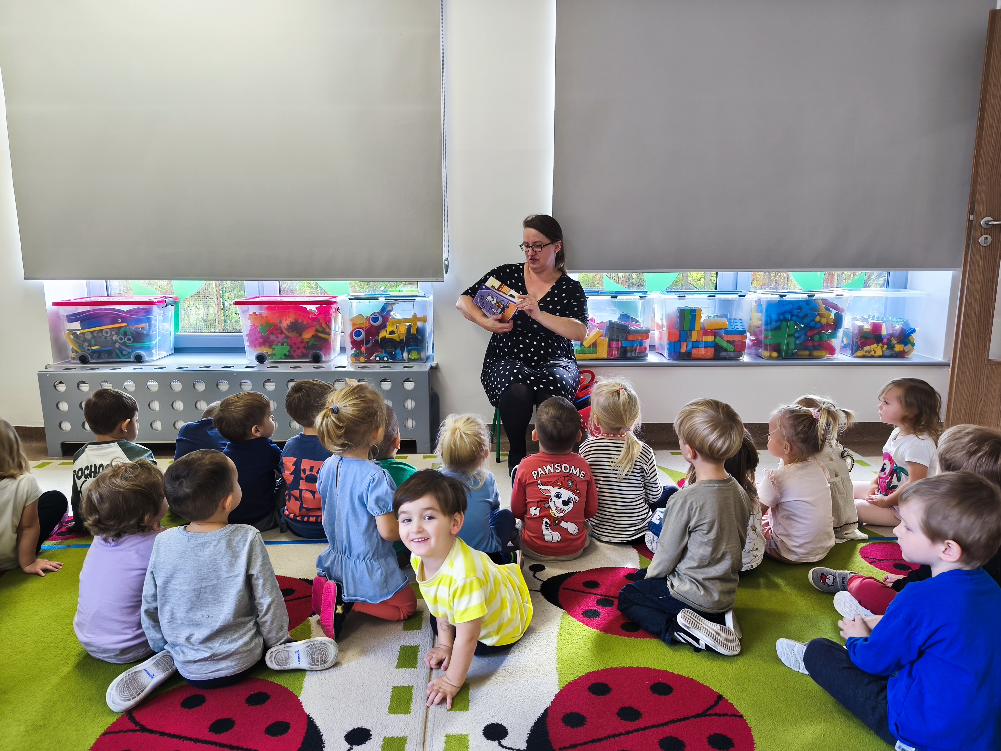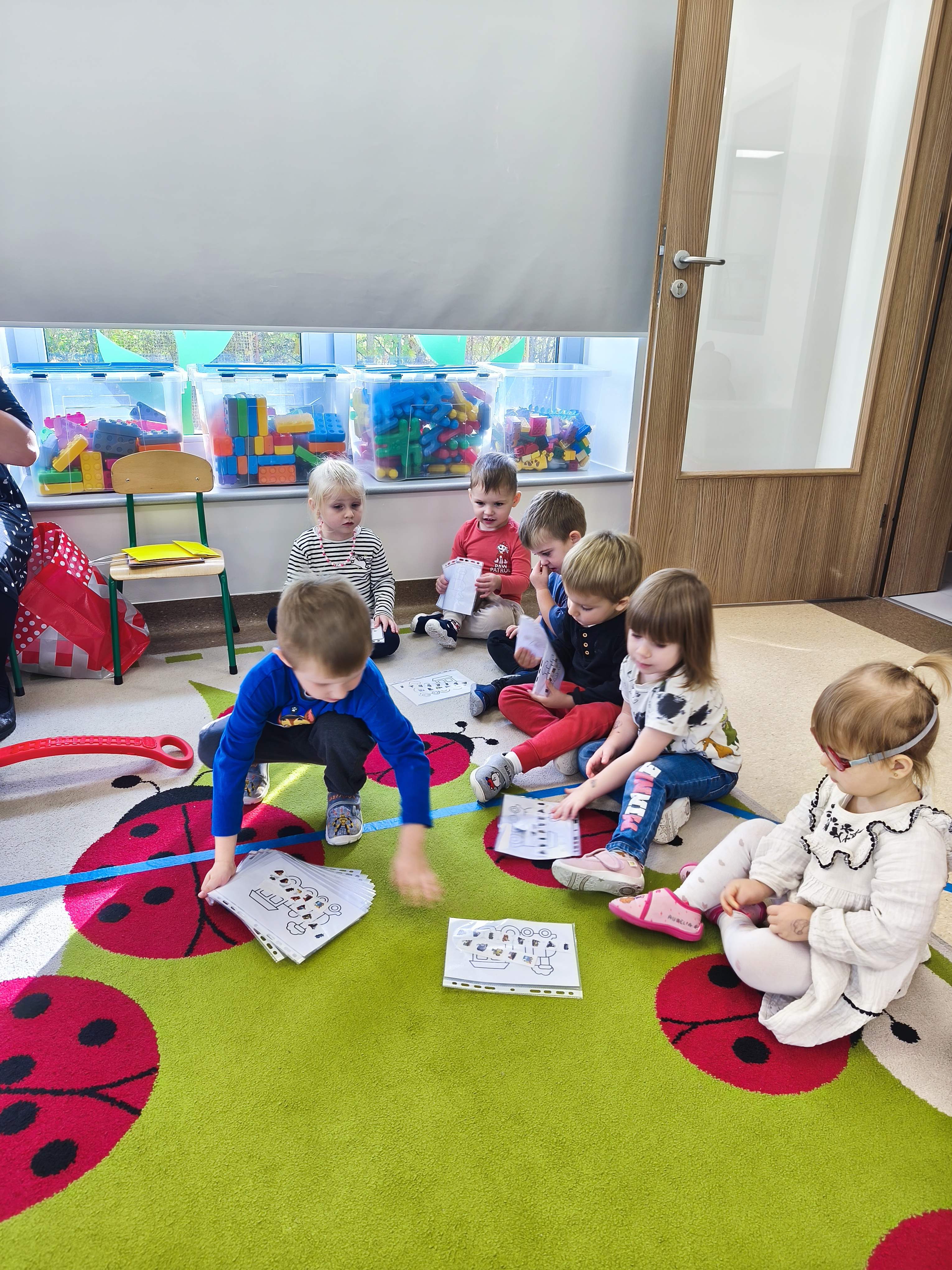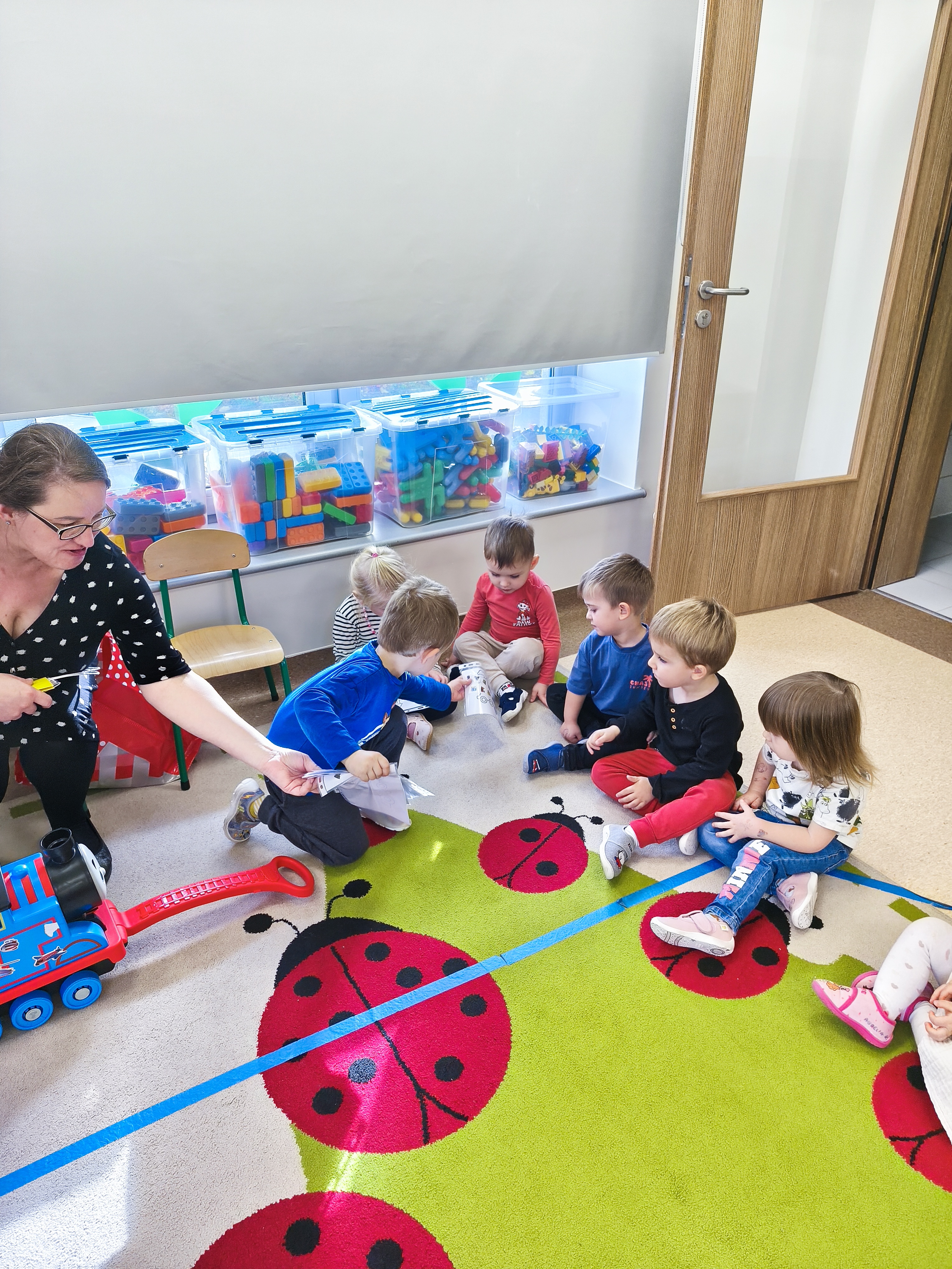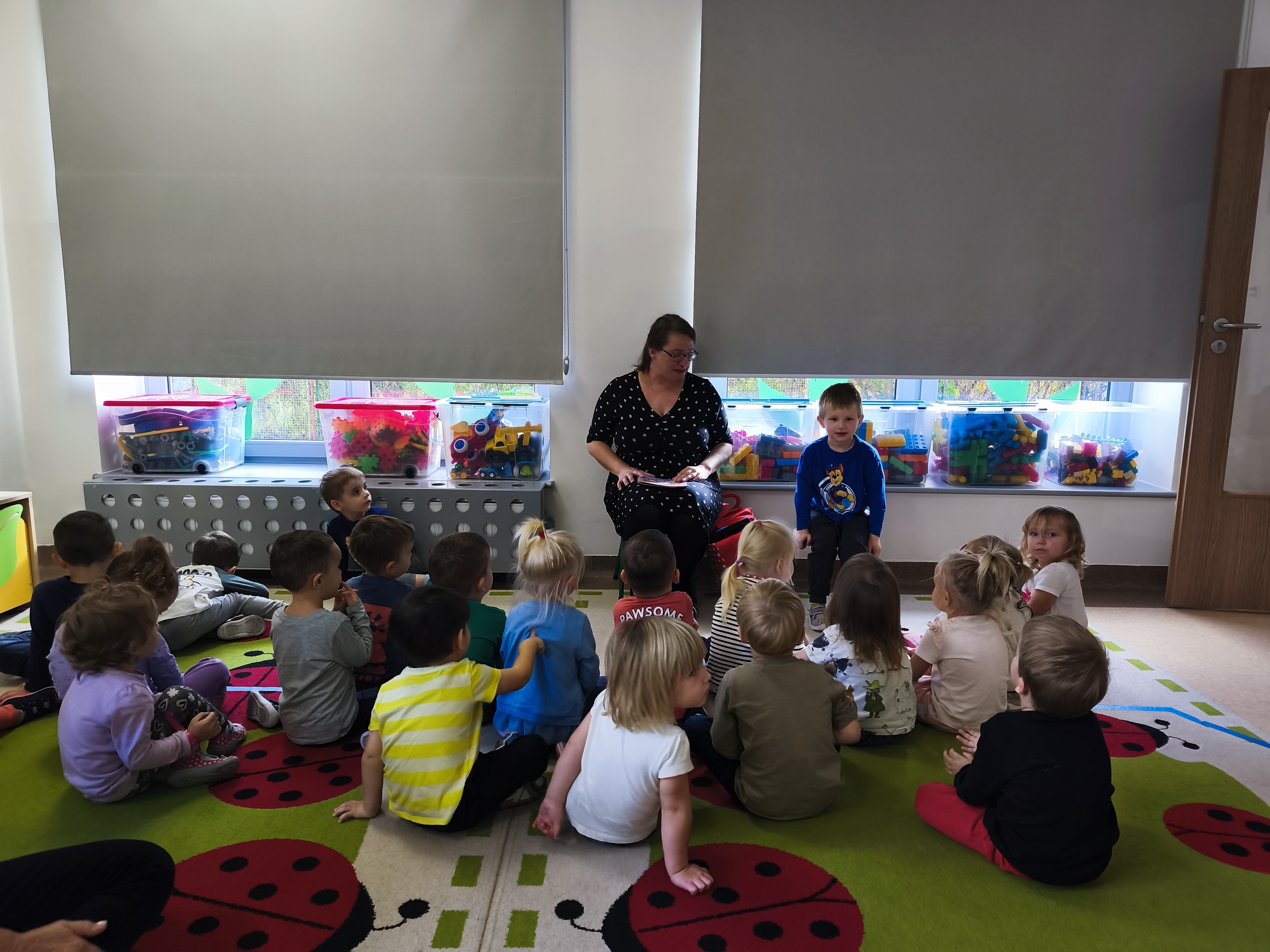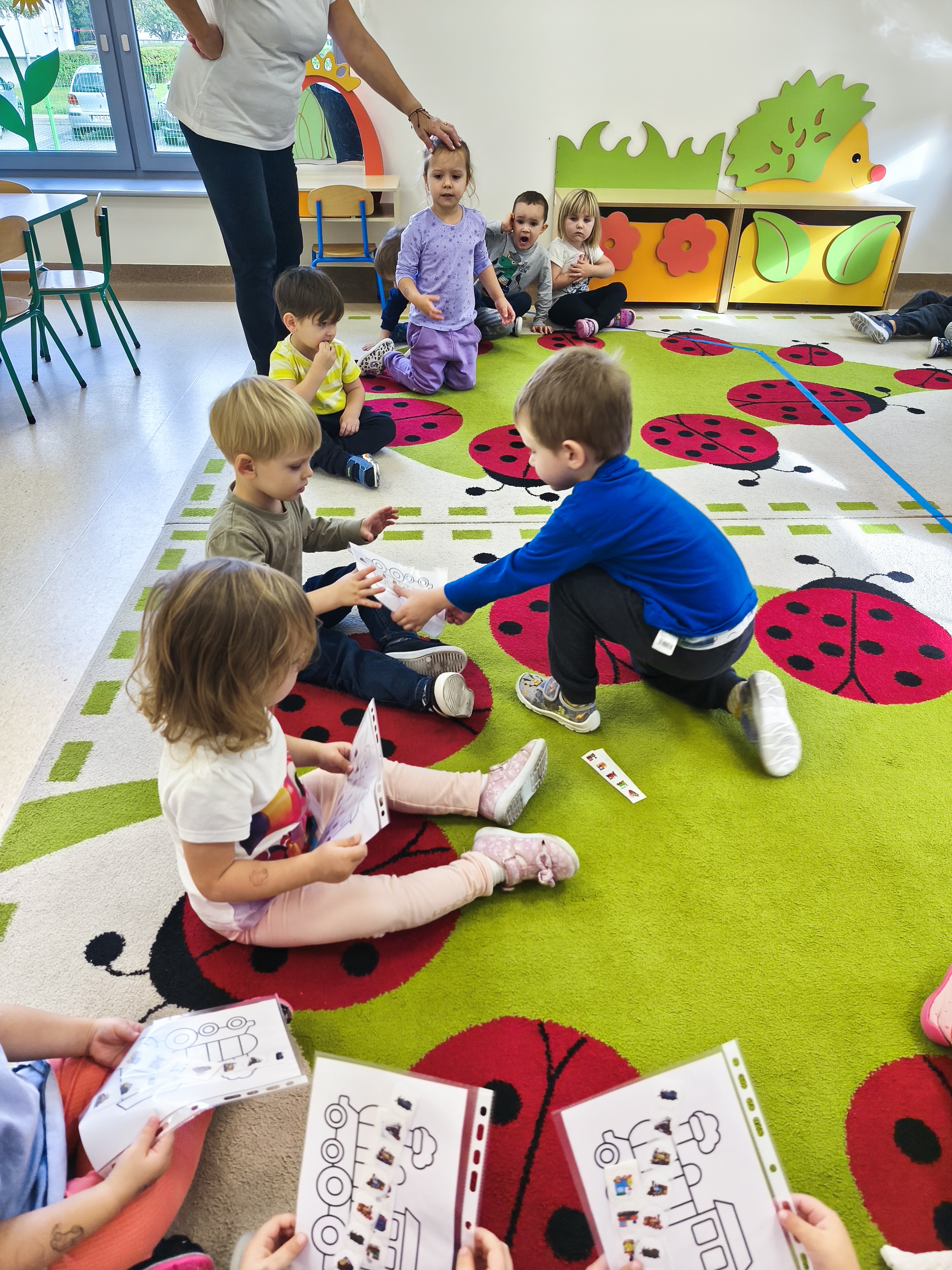W piątek odwiedziła nas mama Bartka. Pani Mirka przeczytała dzieciom bajkę " Kicia Kocia i pociąg". Następnie Bartuś opowiedział swoim kolegom i koleżankom czym się interesuje. Mogliśmy usłyszeć o podróżach pociągiem. Na zakończenie każdy Borowik otrzymał kolorowankę i naklejki związane z pasją Bartosza.