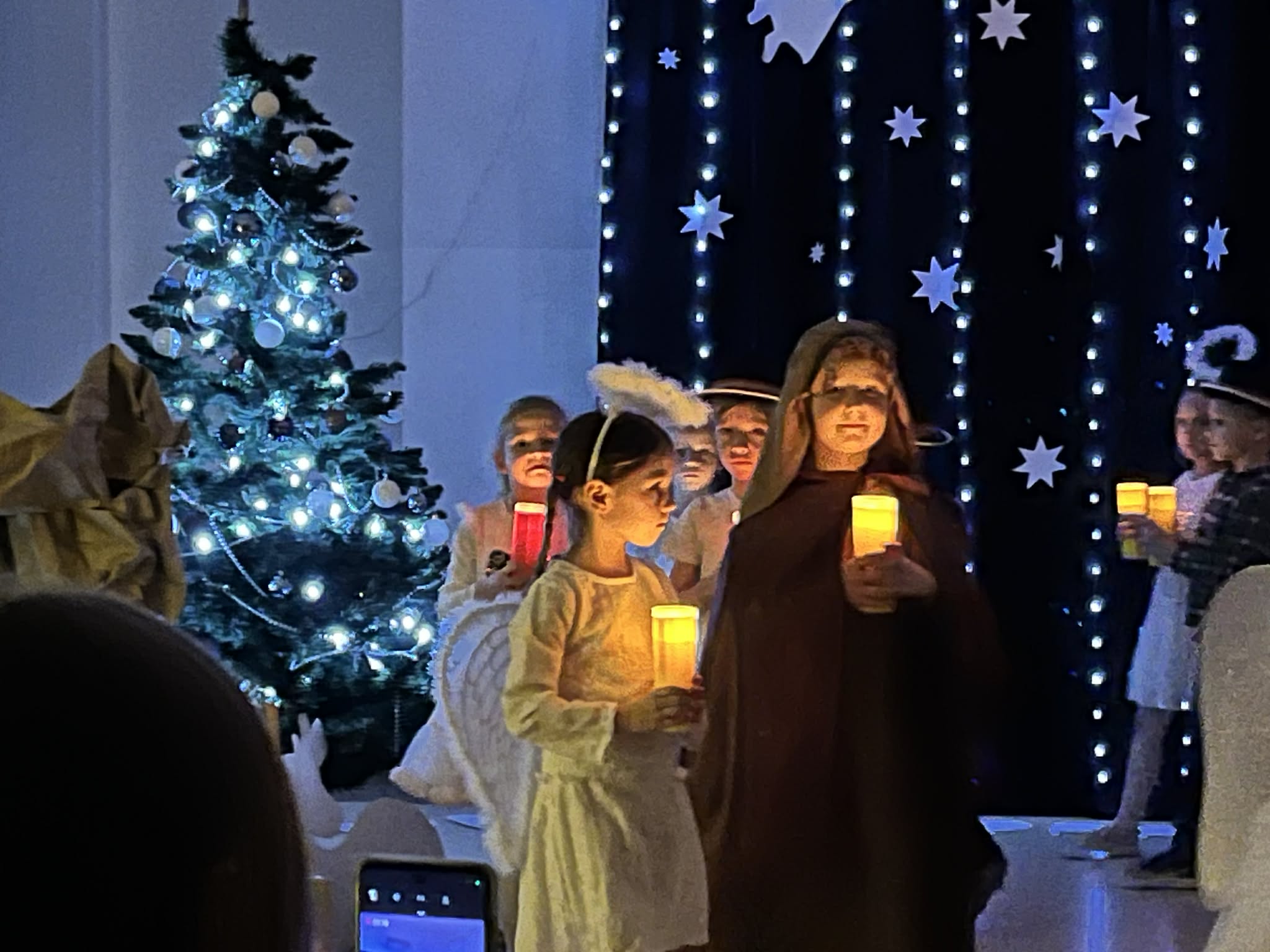 Już da się czuć piękną atmosferę i ten magiczny czas przedświąteczny. Dzieci ku radości swoich rodziców przedstawiły historię narodzin Dzieciątka Jezus uświetnioną nowoczesnymi pastorałkami i kolędami. Mali aktorzy zaprezentowali swoje talenty, które na koniec nagrodzone zostały gromkimi brawami. Było radośnie i też wzruszająco.