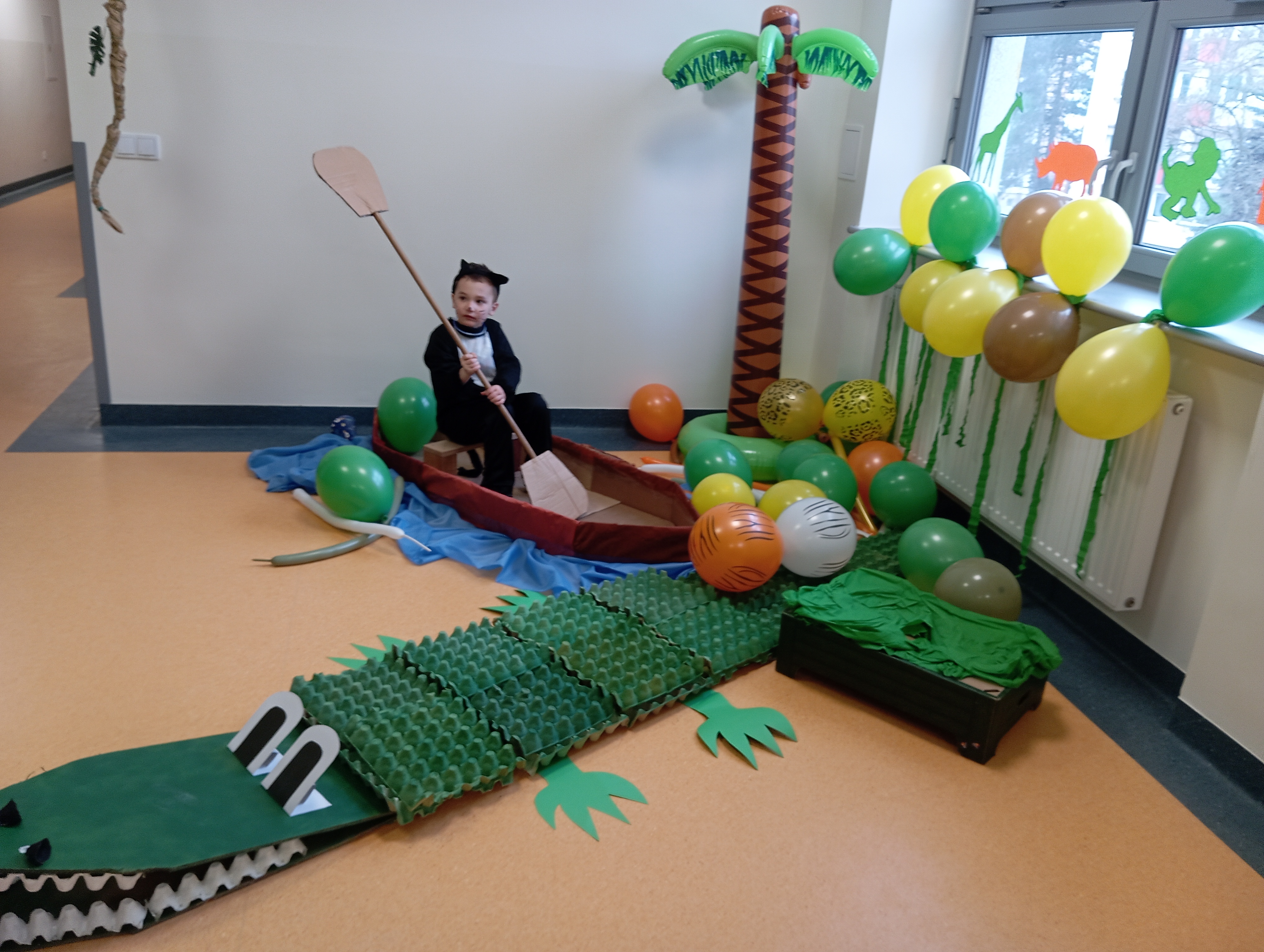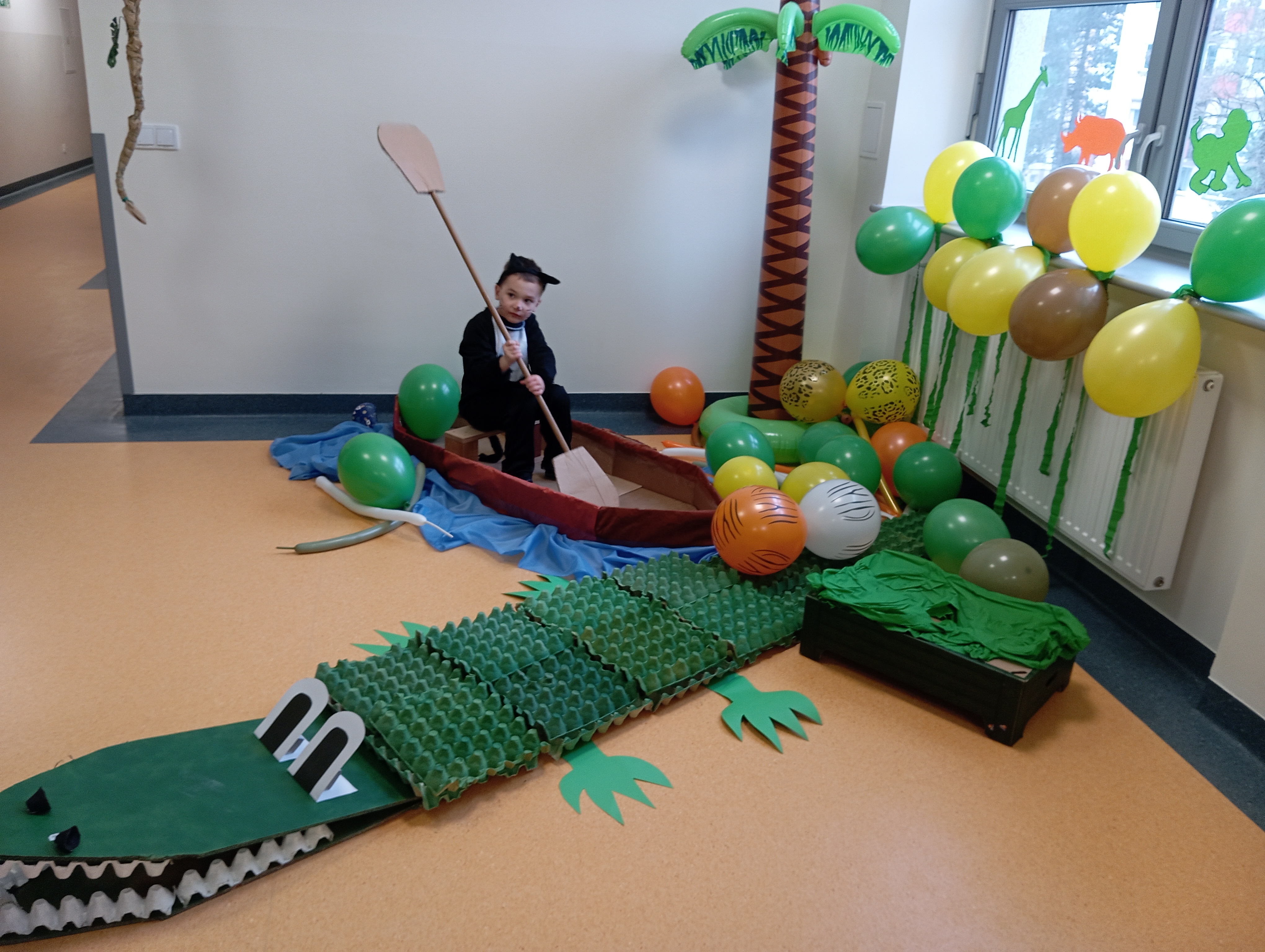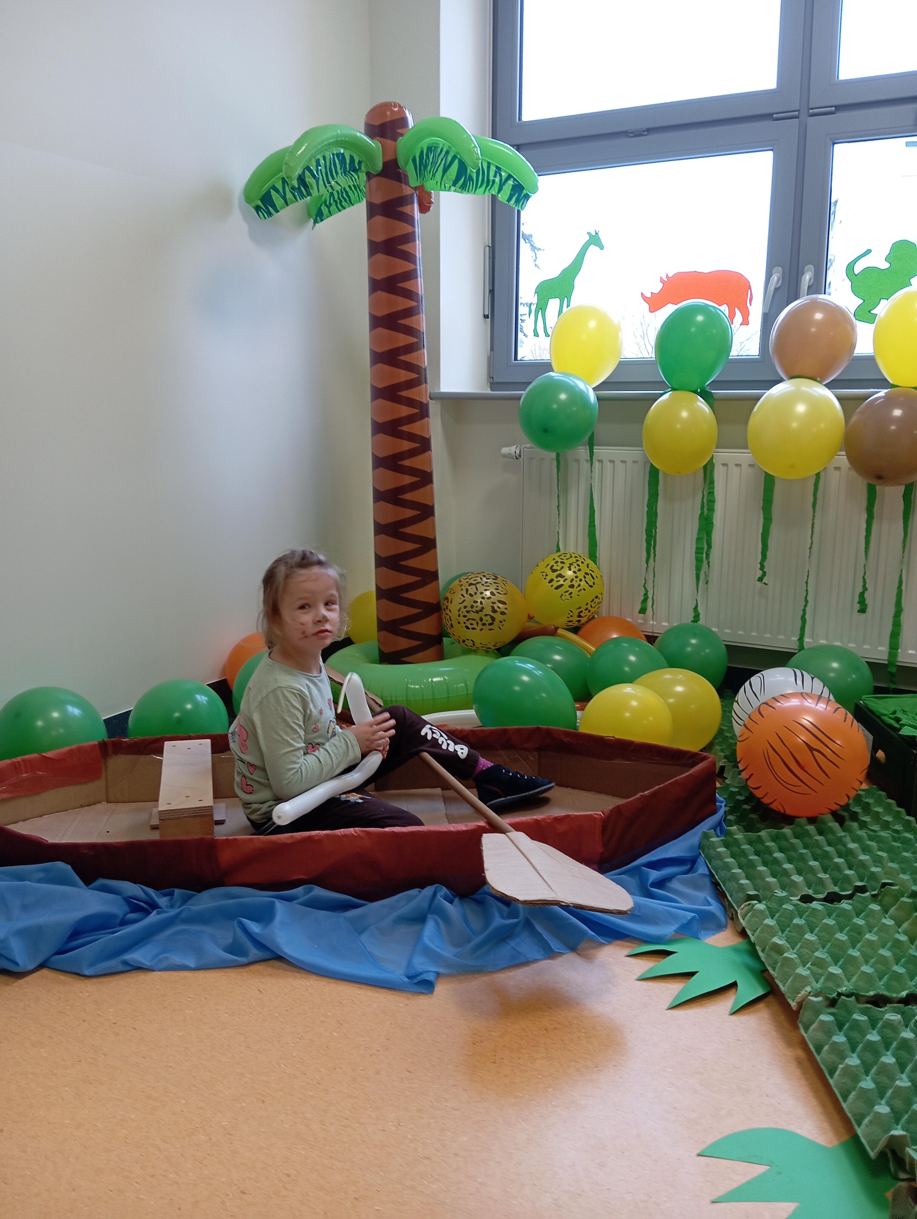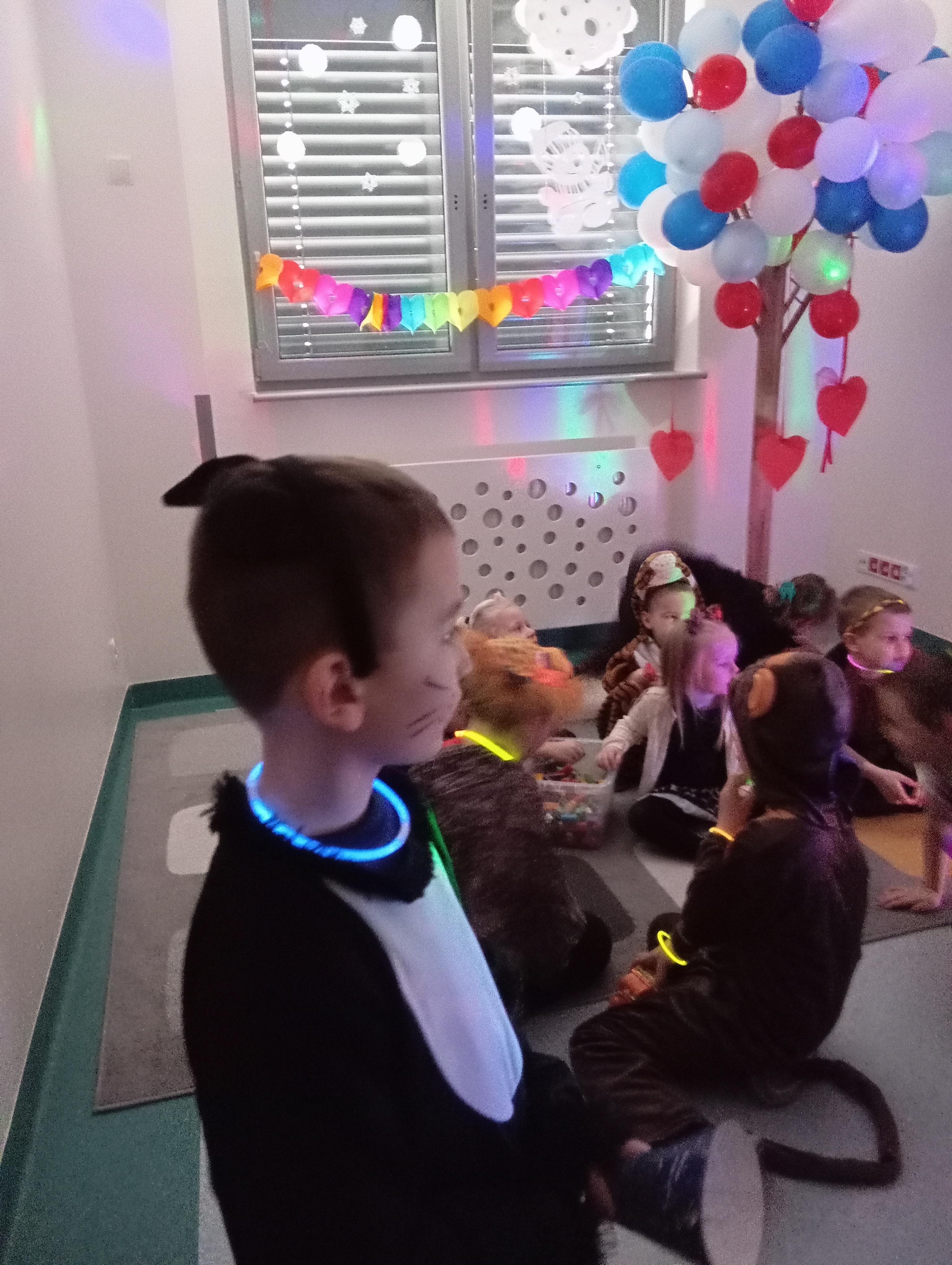 W tym roku naszym tematem przewodnim w karnawale była dżungla:) Dzień w bajkowym, egzotycznym klimacie rozpoczęliśmy od zabaw ruchowych. Po rozgrzewce wybraliśmy się na wspólne zabawy taneczne. Po drodze czuliśmy się jak podróżnicy, ponieważ korytarze naszego przedszkola zamieniły się w prawdziwą, tropikalną dżunglę:)