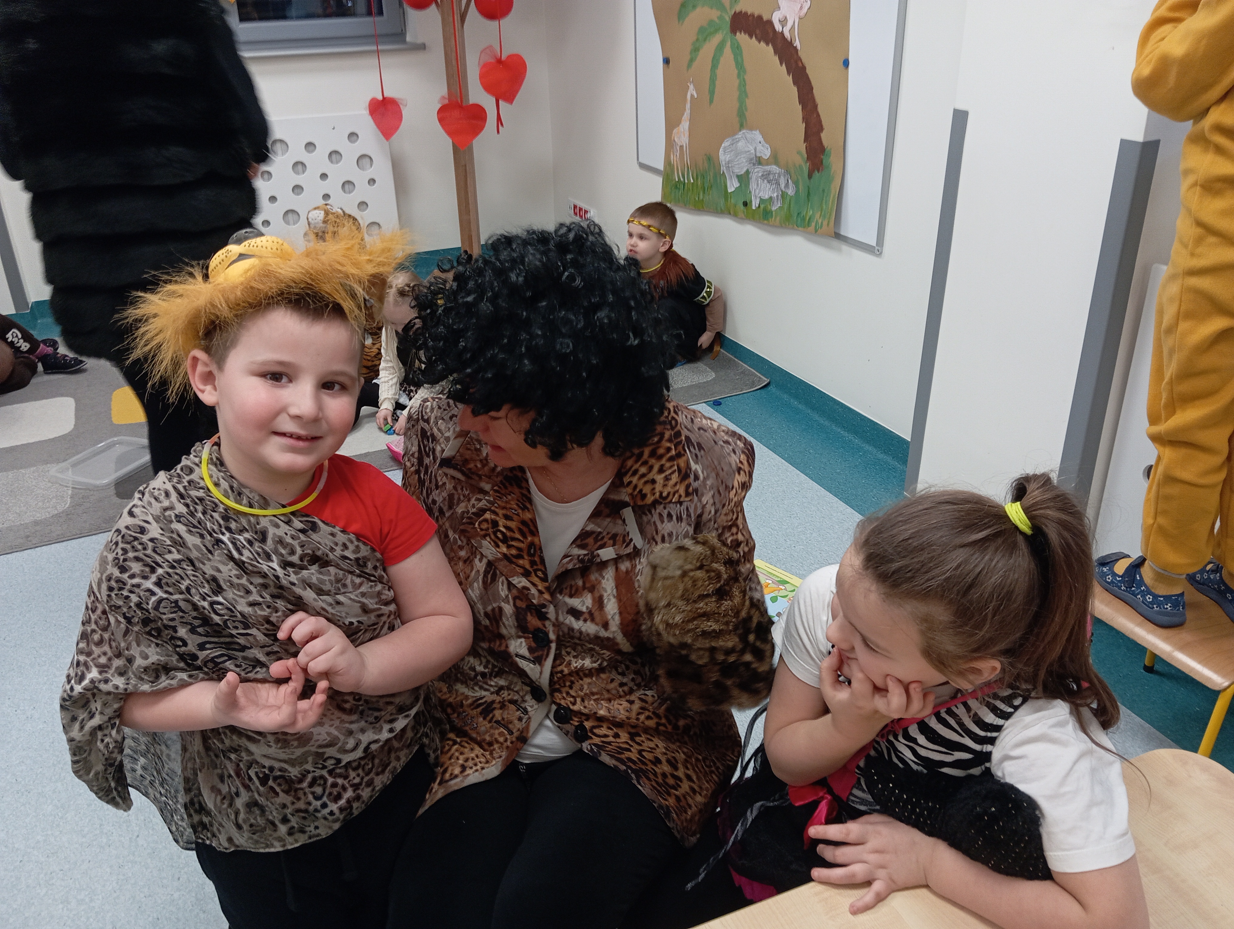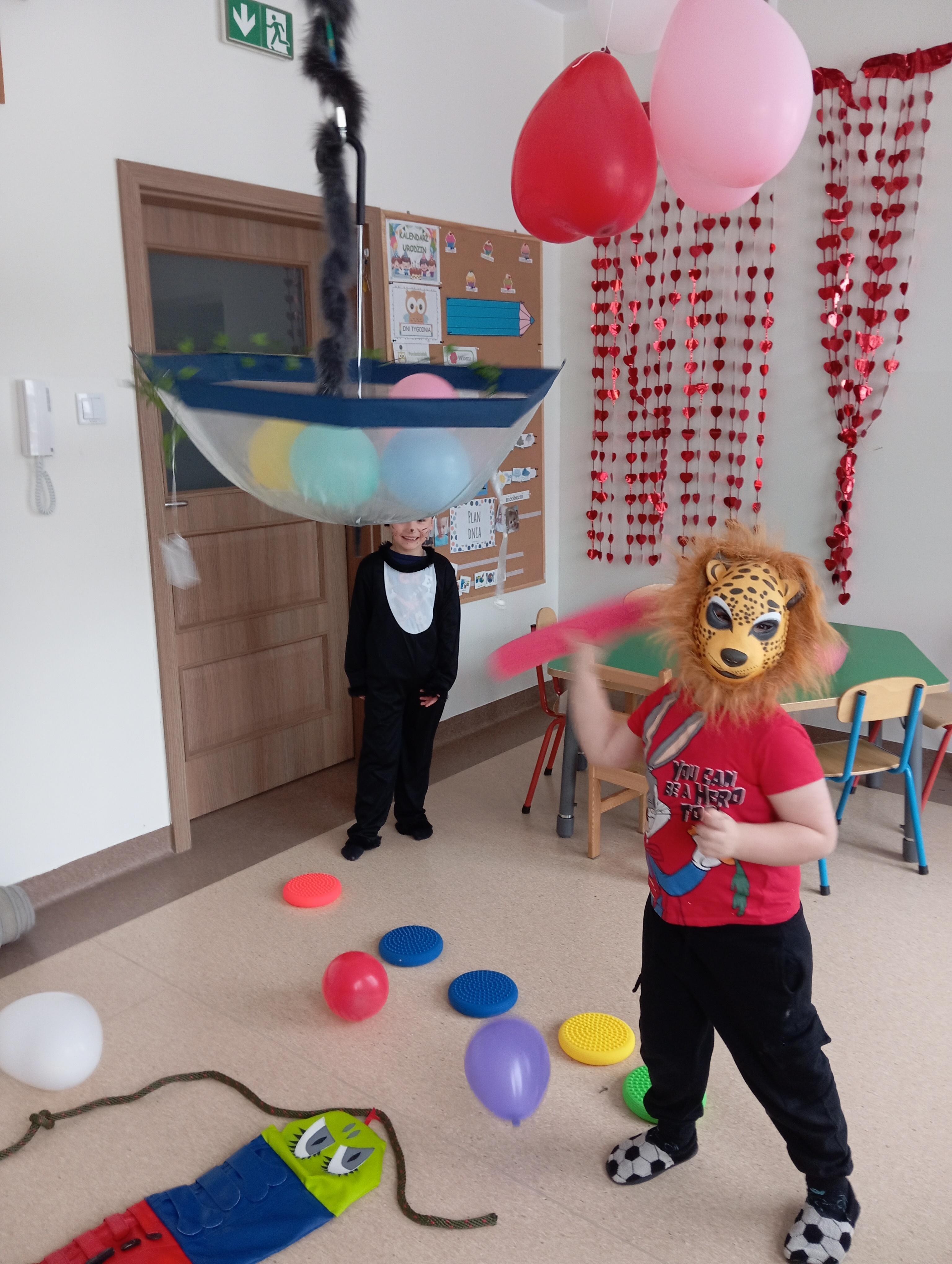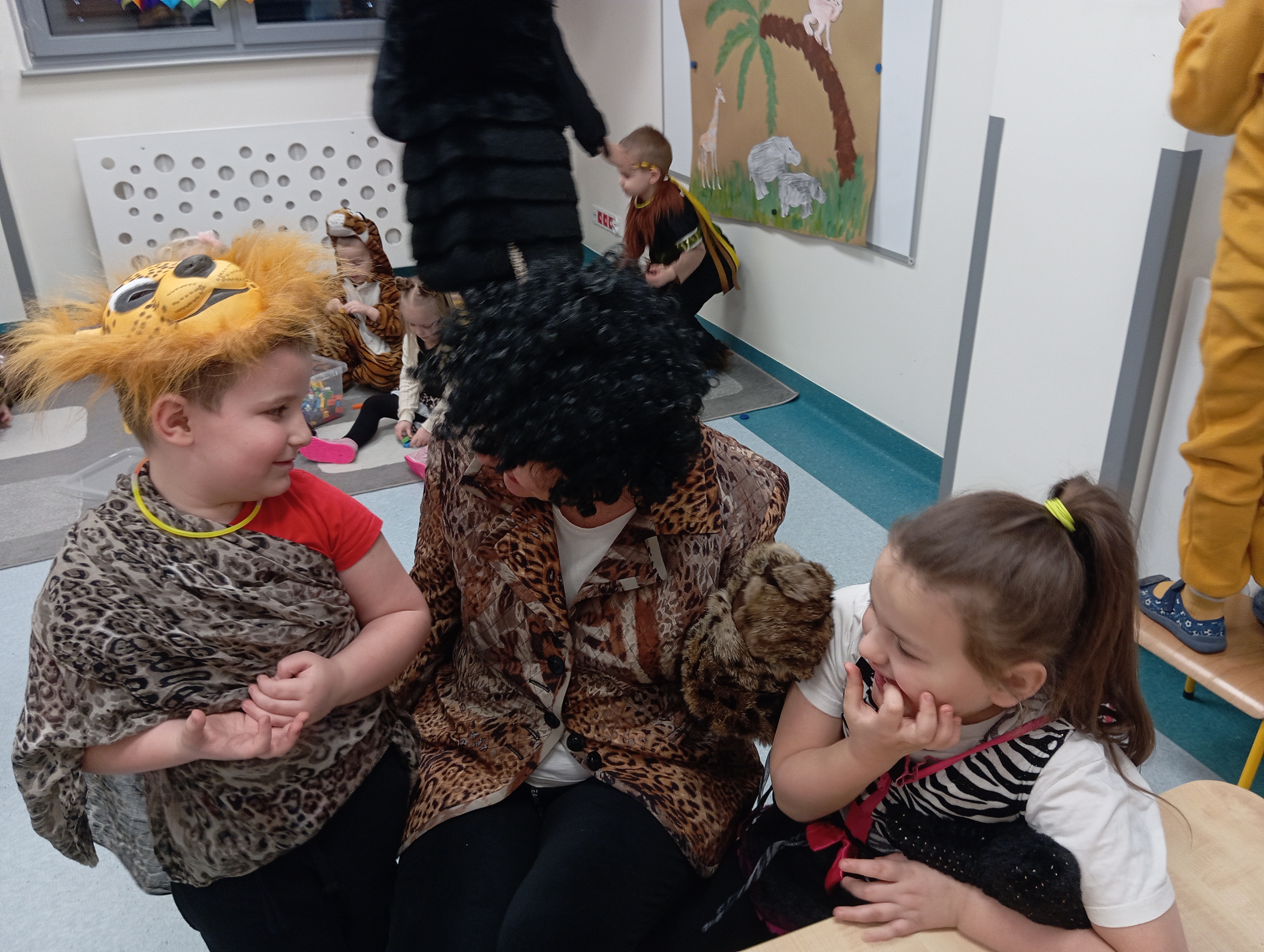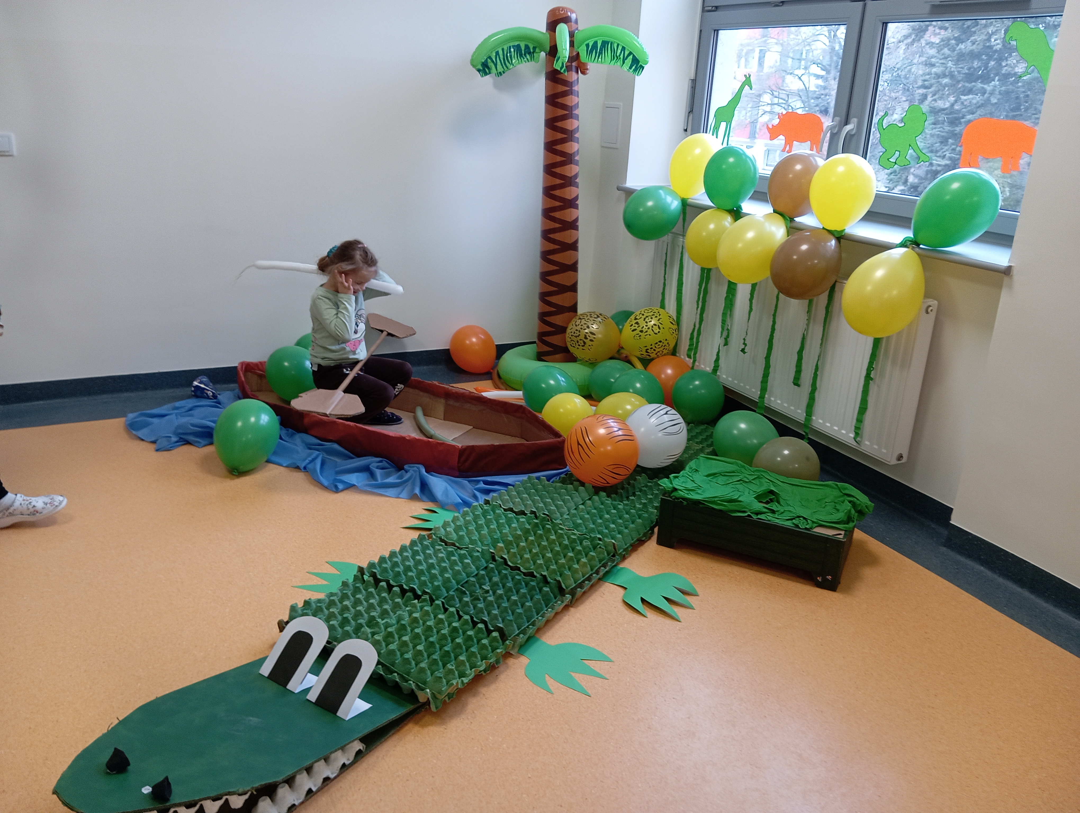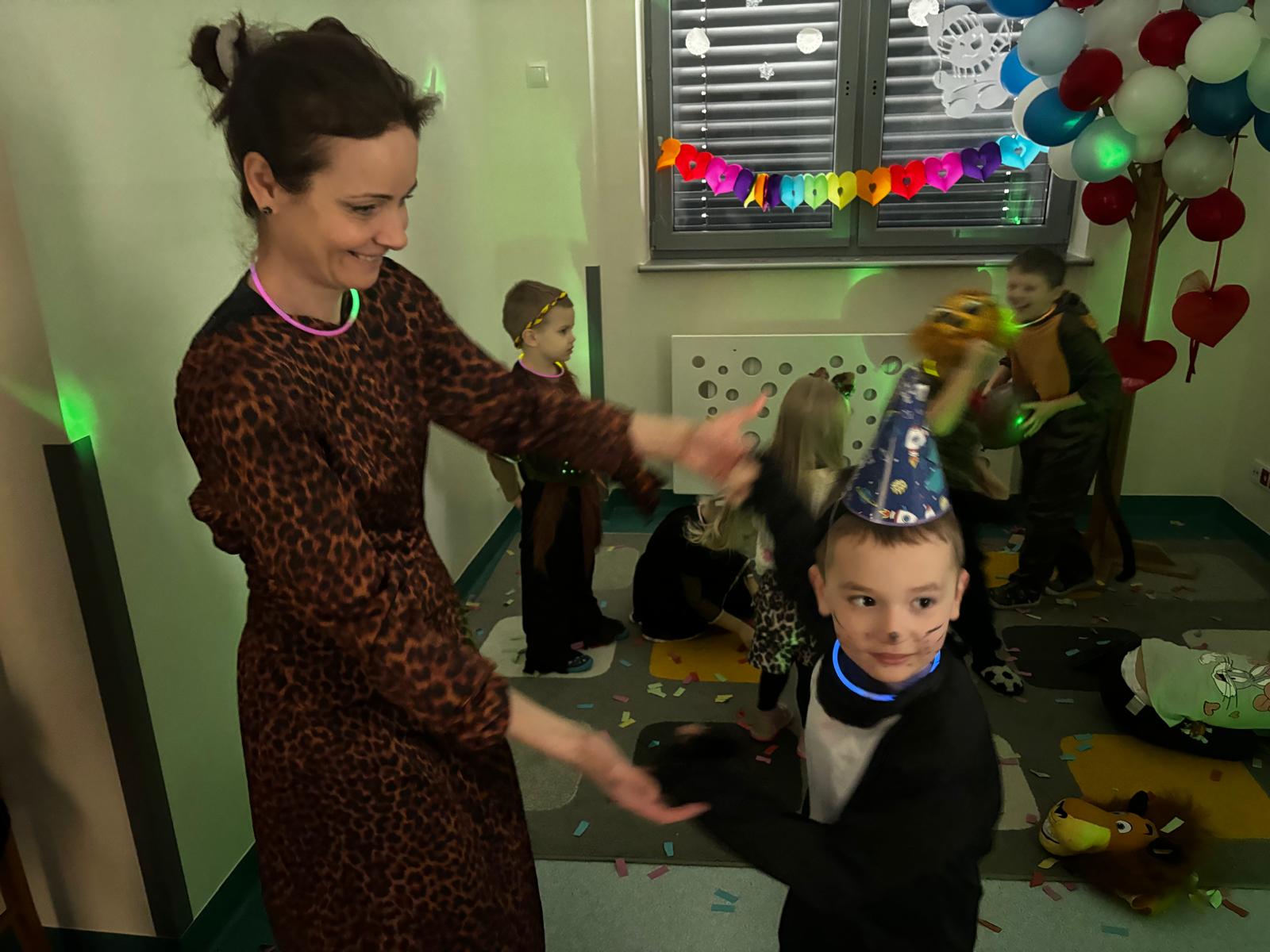 W tym roku naszym tematem przewodnim w karnawale była dżungla:) Dzień w bajkowym, egzotycznym klimacie rozpoczęliśmy od zabaw ruchowych. Po rozgrzewce wybraliśmy się na wspólne zabawy taneczne. Po drodze czuliśmy się jak podróżnicy, ponieważ korytarze naszego przedszkola zamieniły się w prawdziwą, tropikalną dżunglę:)