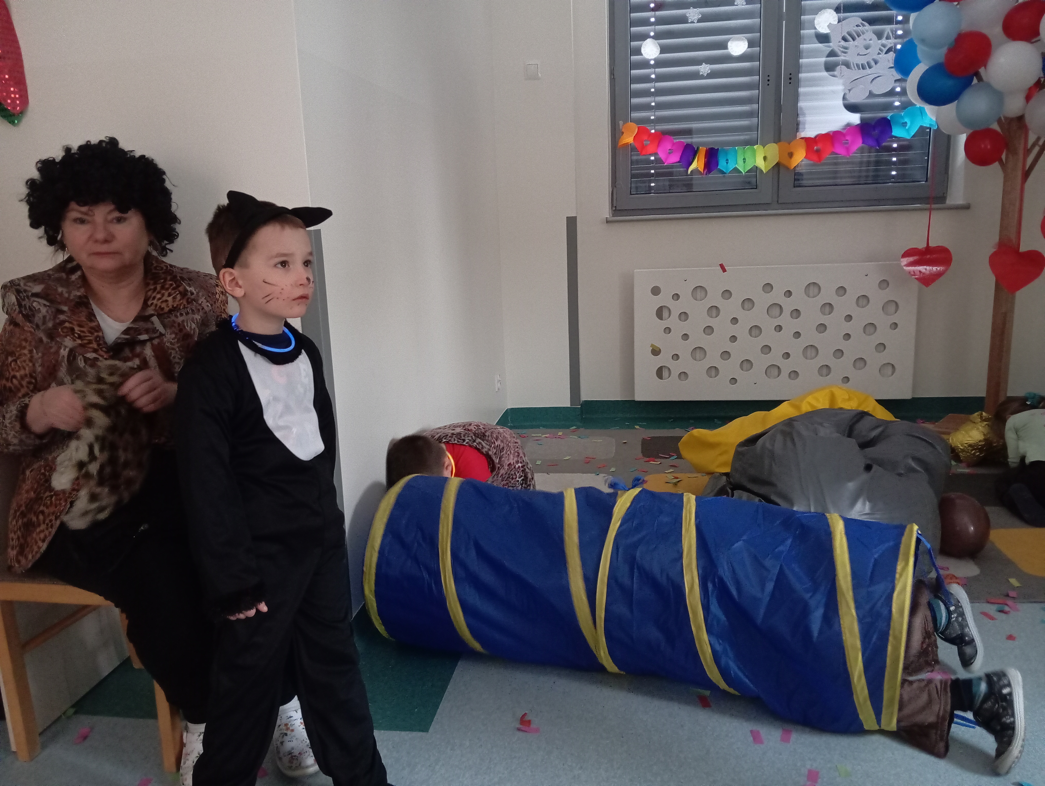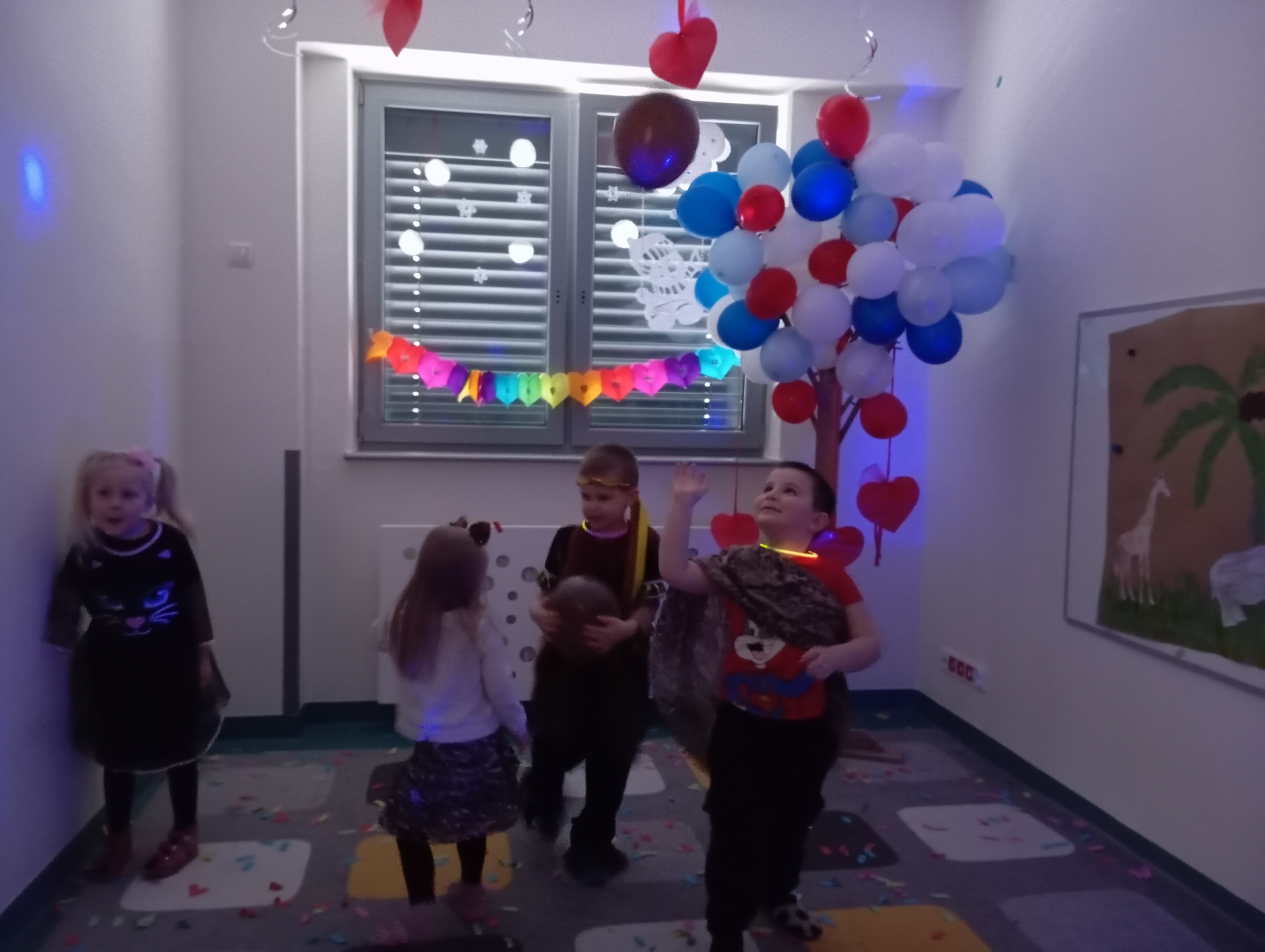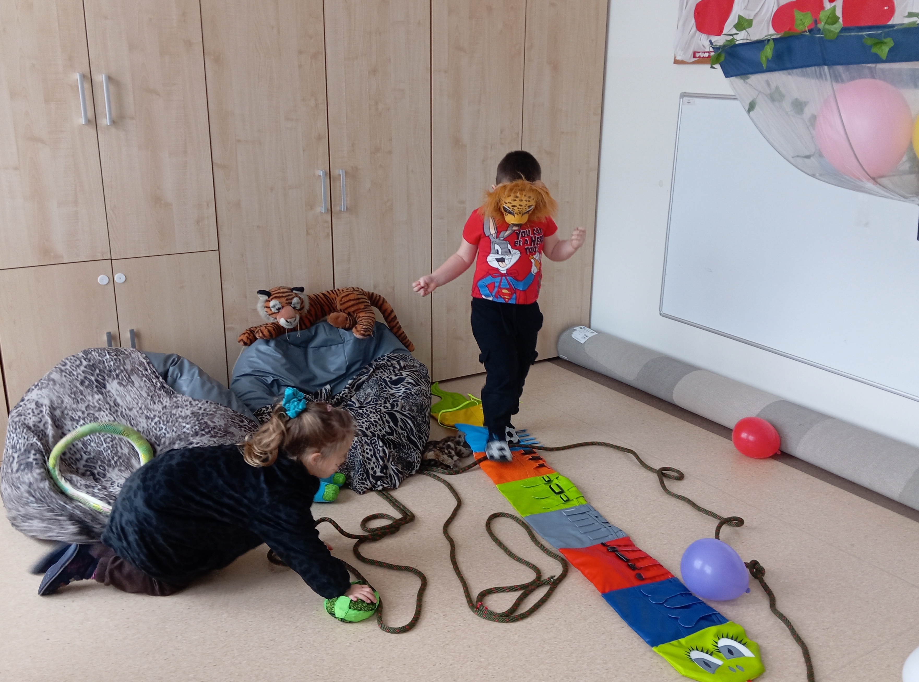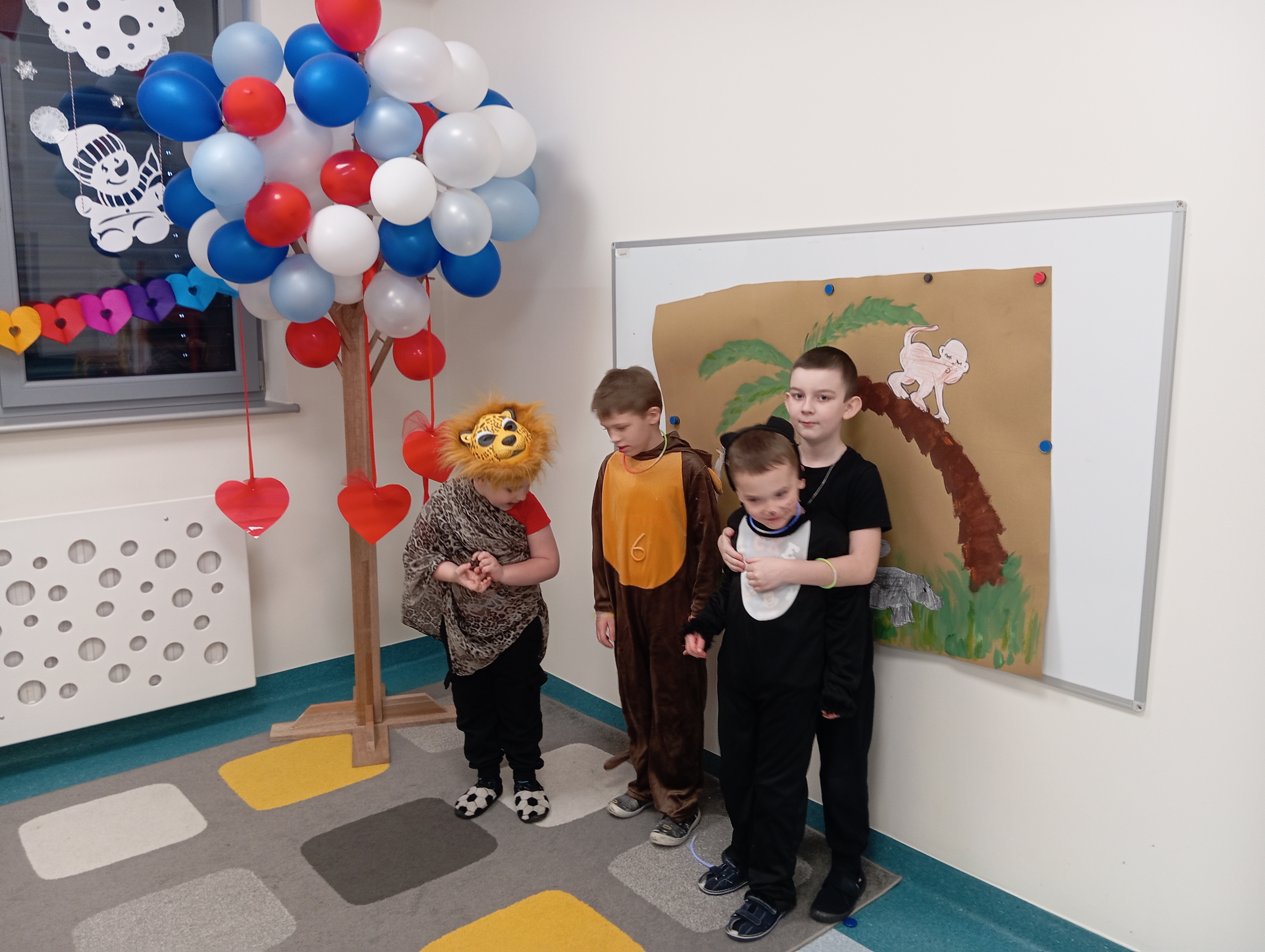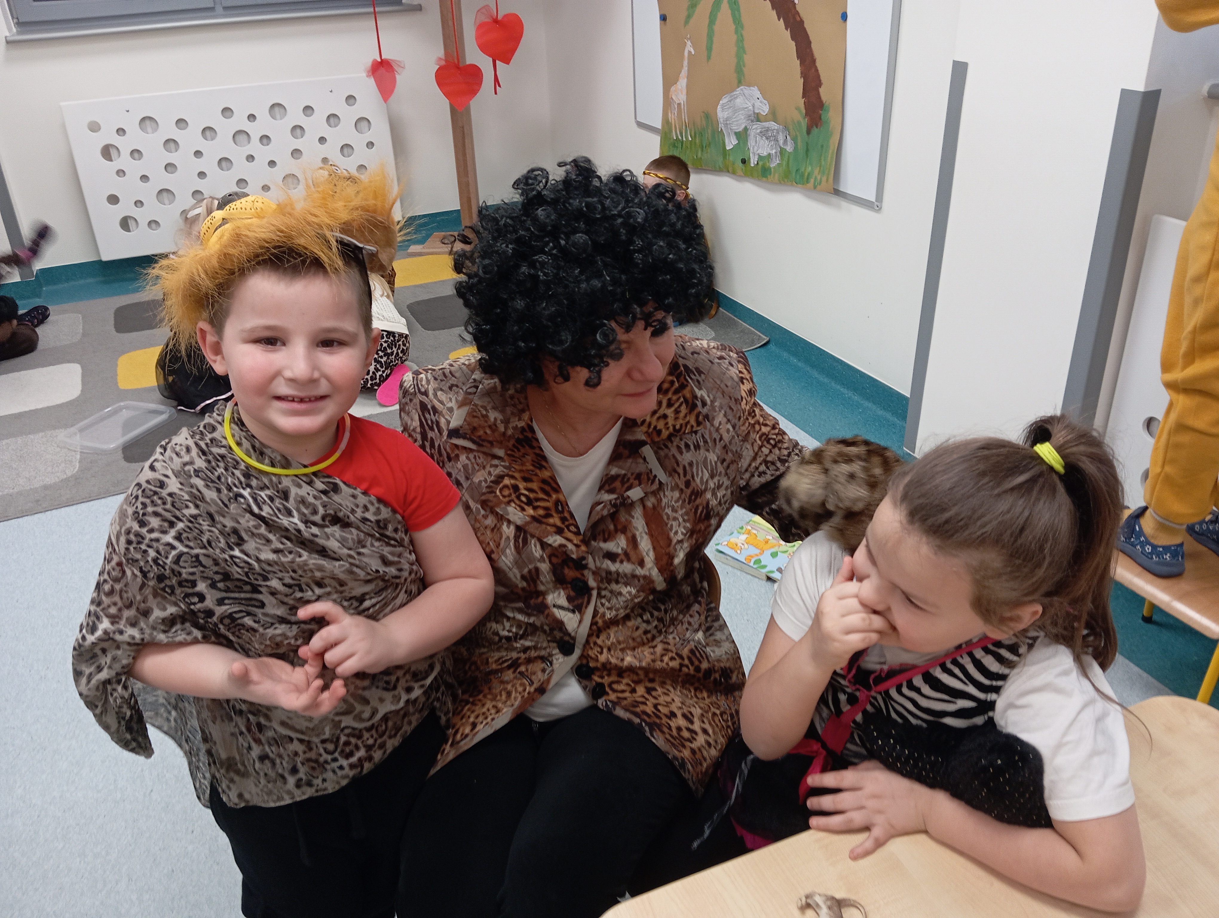 W tym roku naszym tematem przewodnim w karnawale była dżungla:) Dzień w bajkowym, egzotycznym klimacie rozpoczęliśmy od zabaw ruchowych. Po rozgrzewce wybraliśmy się na wspólne zabawy taneczne. Po drodze czuliśmy się jak podróżnicy, ponieważ korytarze naszego przedszkola zamieniły się w prawdziwą, tropikalną dżunglę:)