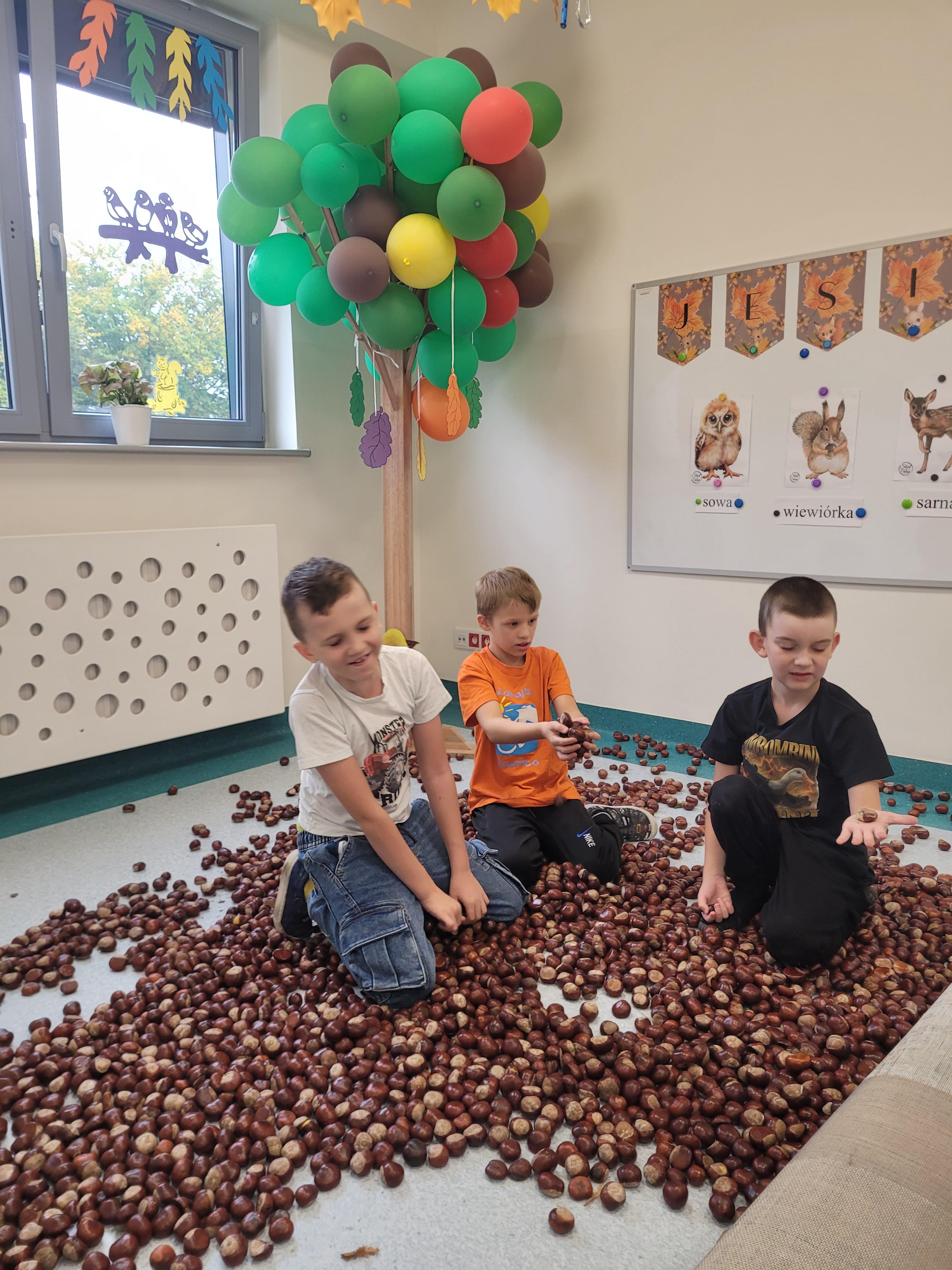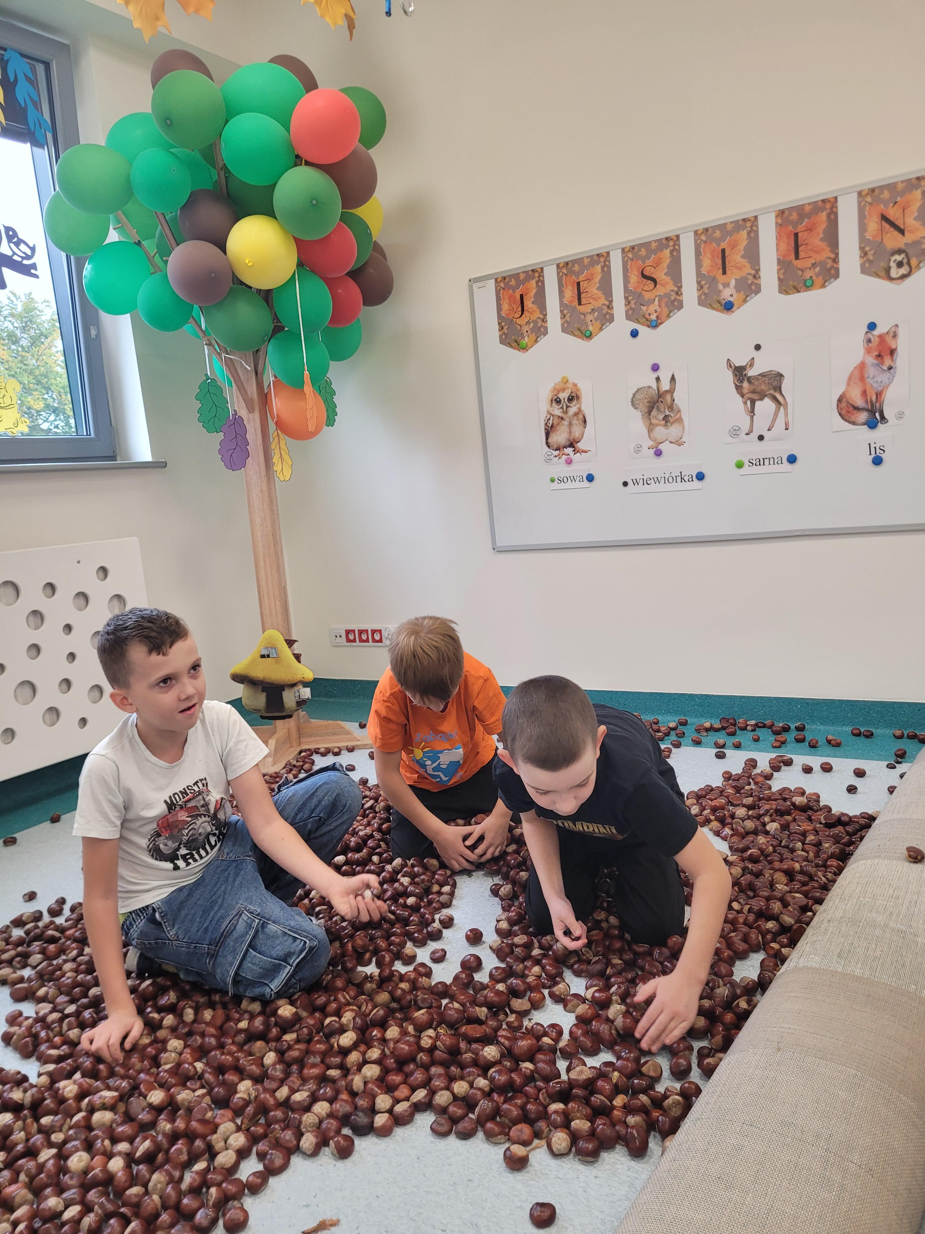 Nasze krasnale nie zwalniają tempa i całymi rodzinami zbierają kasztany.