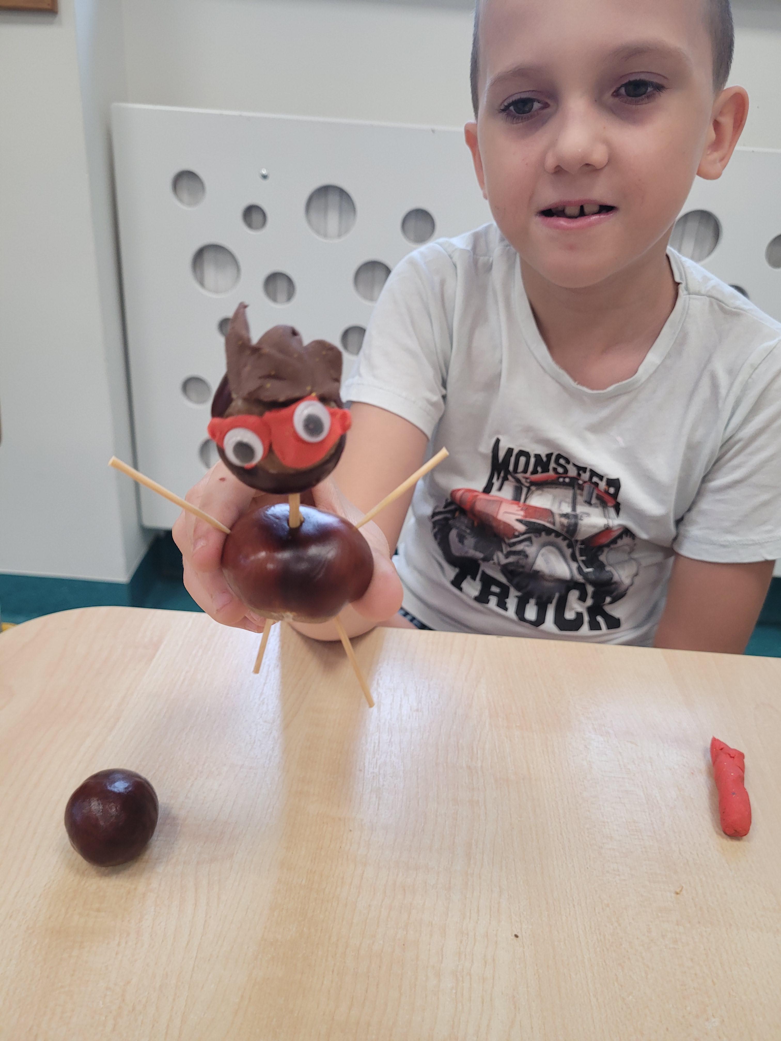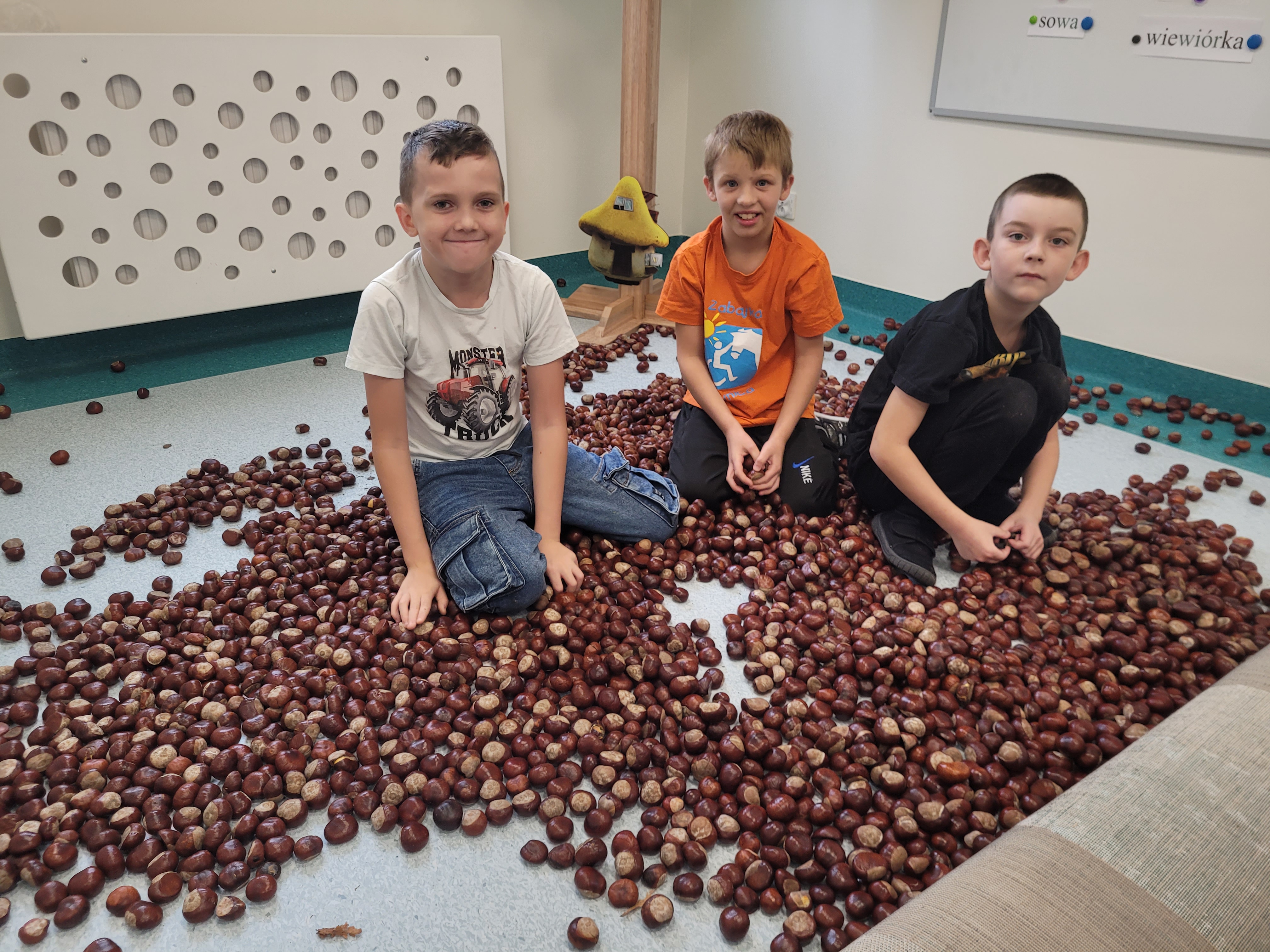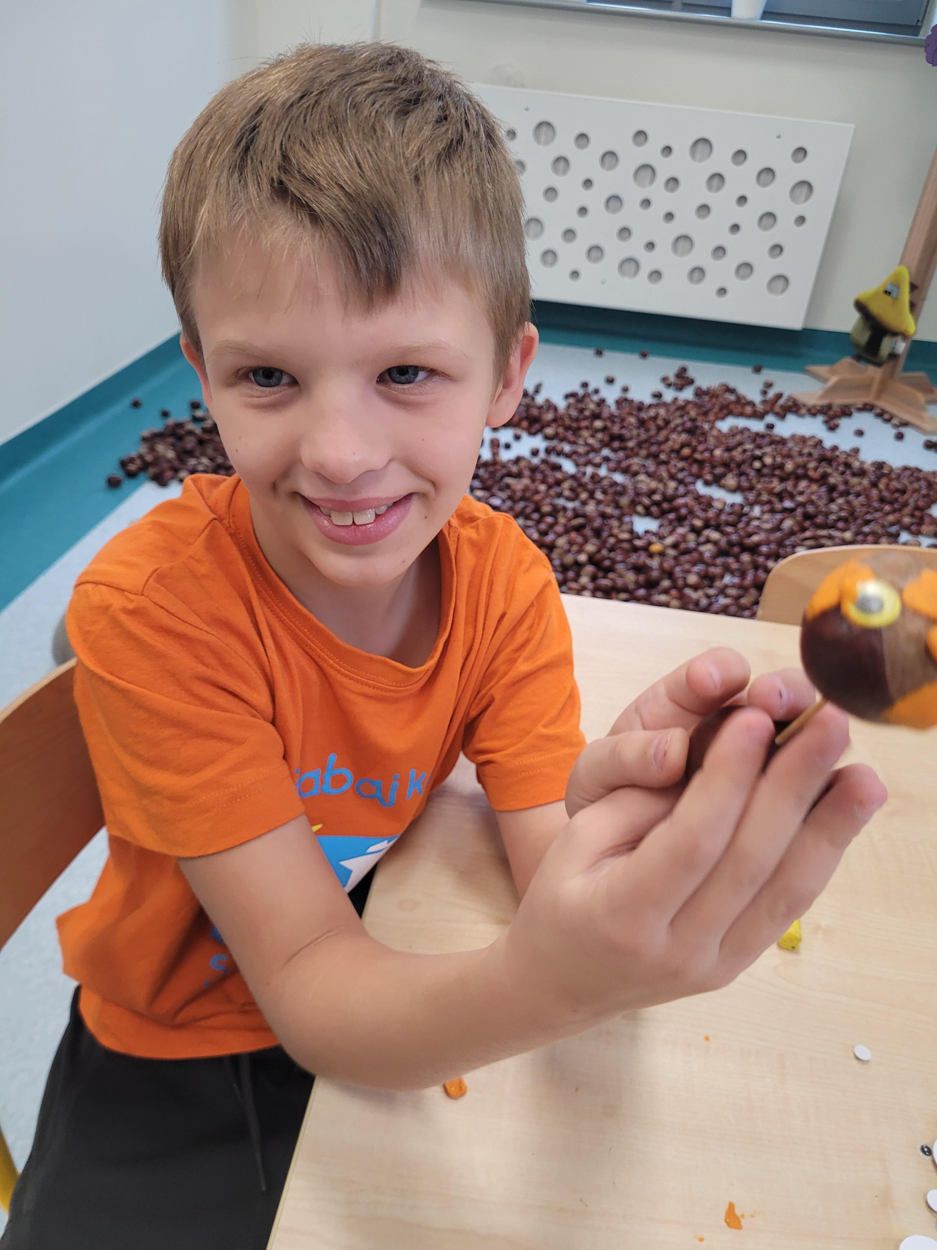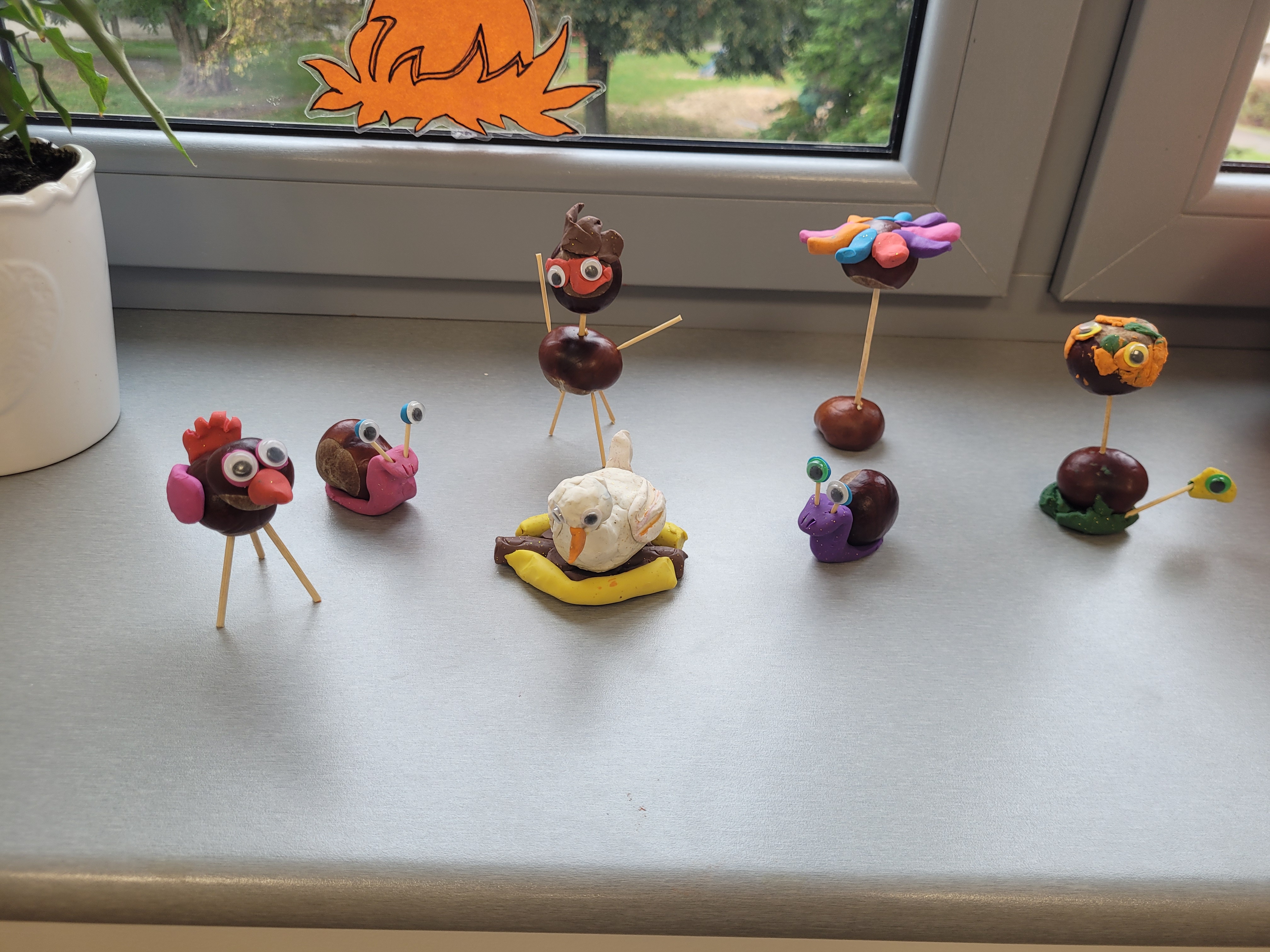Przy okazji powstają bardzo kreatywne prace z wykorzystaniem kasztanów.