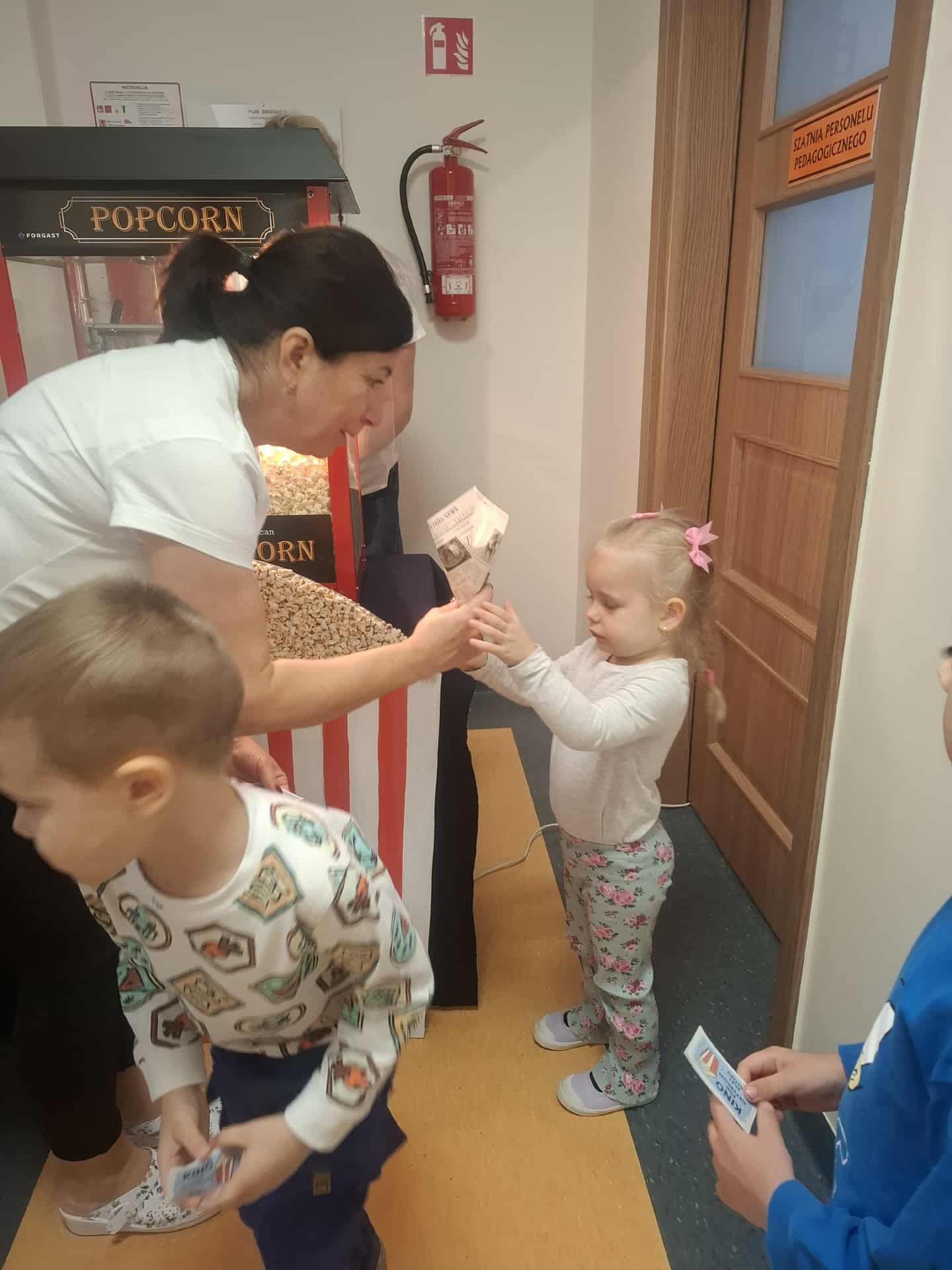 Dziś nasze przedszkolaki wybrały się do wyjątkowego Kina pod Grzybkiem! Po okazaniu biletu każdy mały widz otrzymał porcję pysznego popcornu, a w drodze do sali "kinowej" dzieci mogły zrobić sobie zdjęcie w Alei Gwiazd.Na dużym ekranie obejrzeliśmy film „Listonosz Pat”, który dostarczył dzieciom mnóstwo radości i śmiechu.