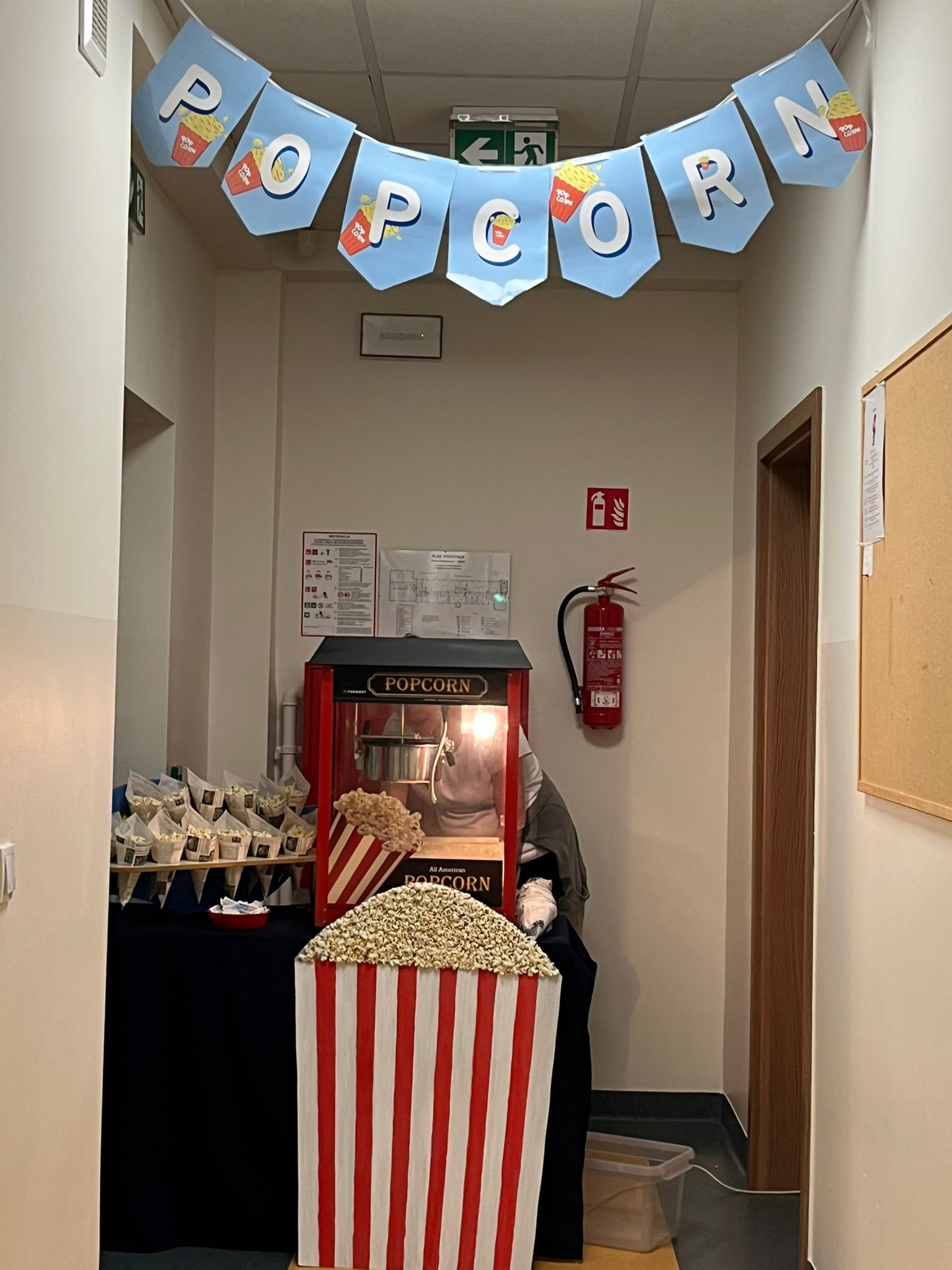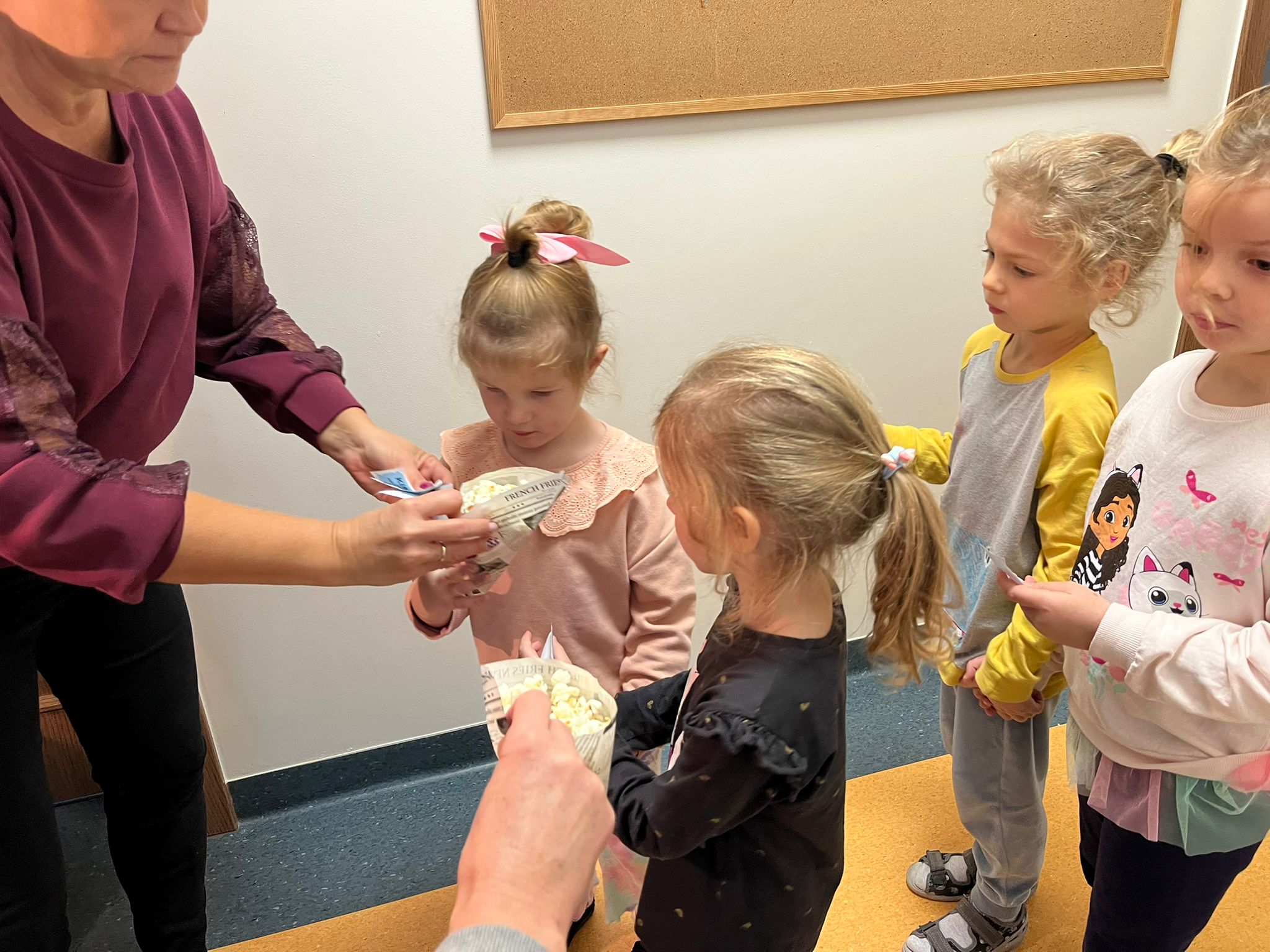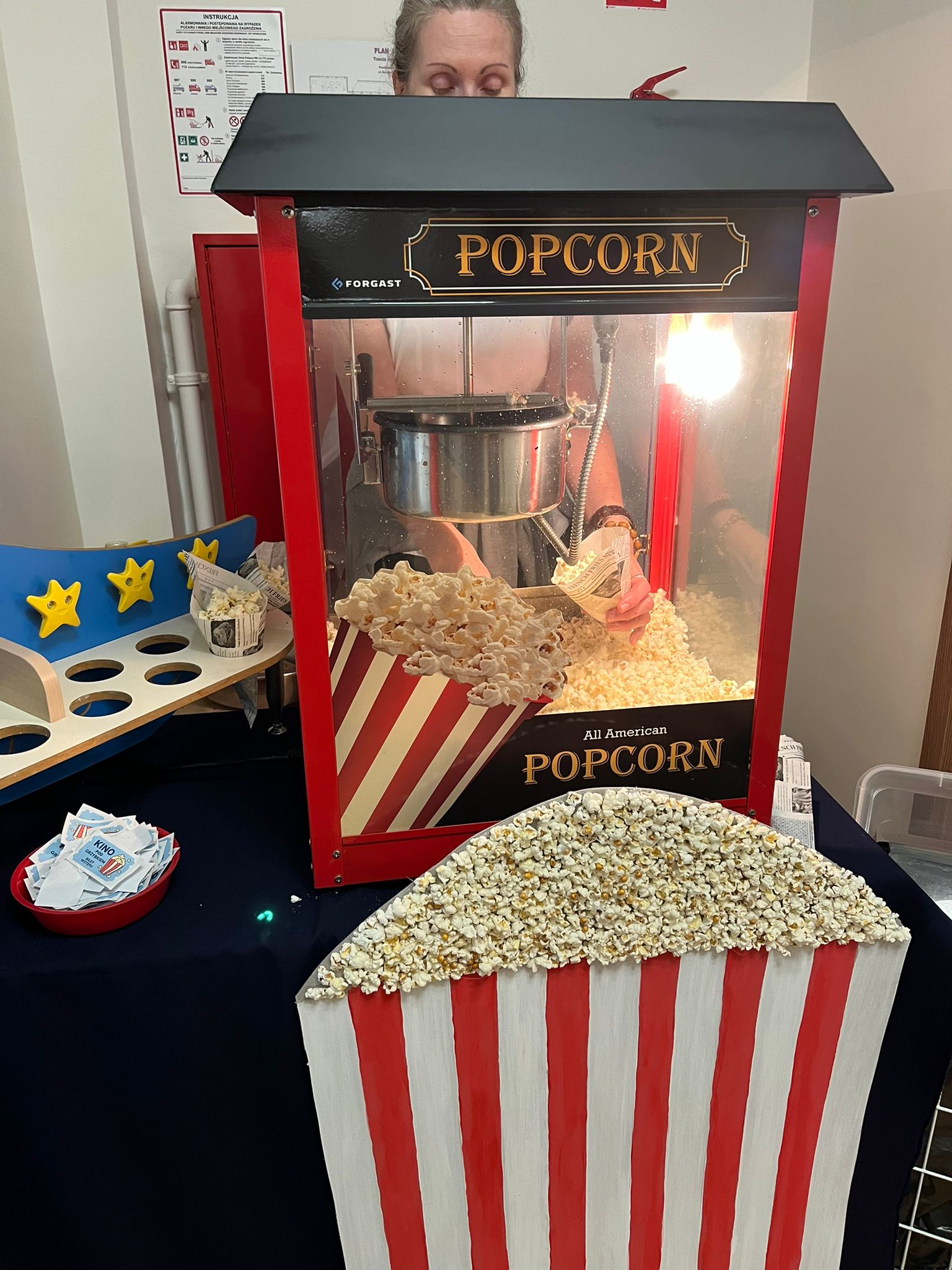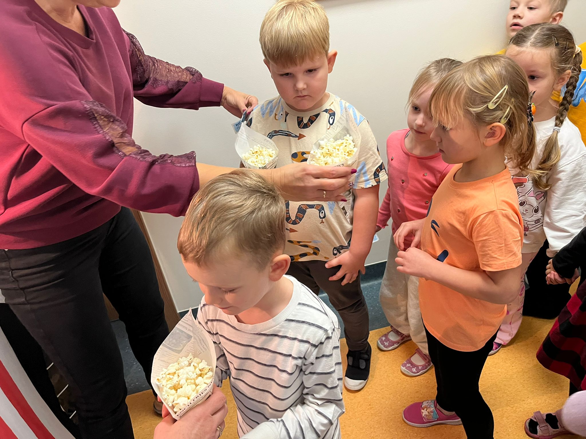 W poniedziałek dzieci otrzymały bilety wstępu do kina " Pod Grzybkiem". Każdy uczestnik po przejściu Alei Gwiazd otrzymał porcje pysznego popcornu. To był bardzo dobry początek tygodnia.