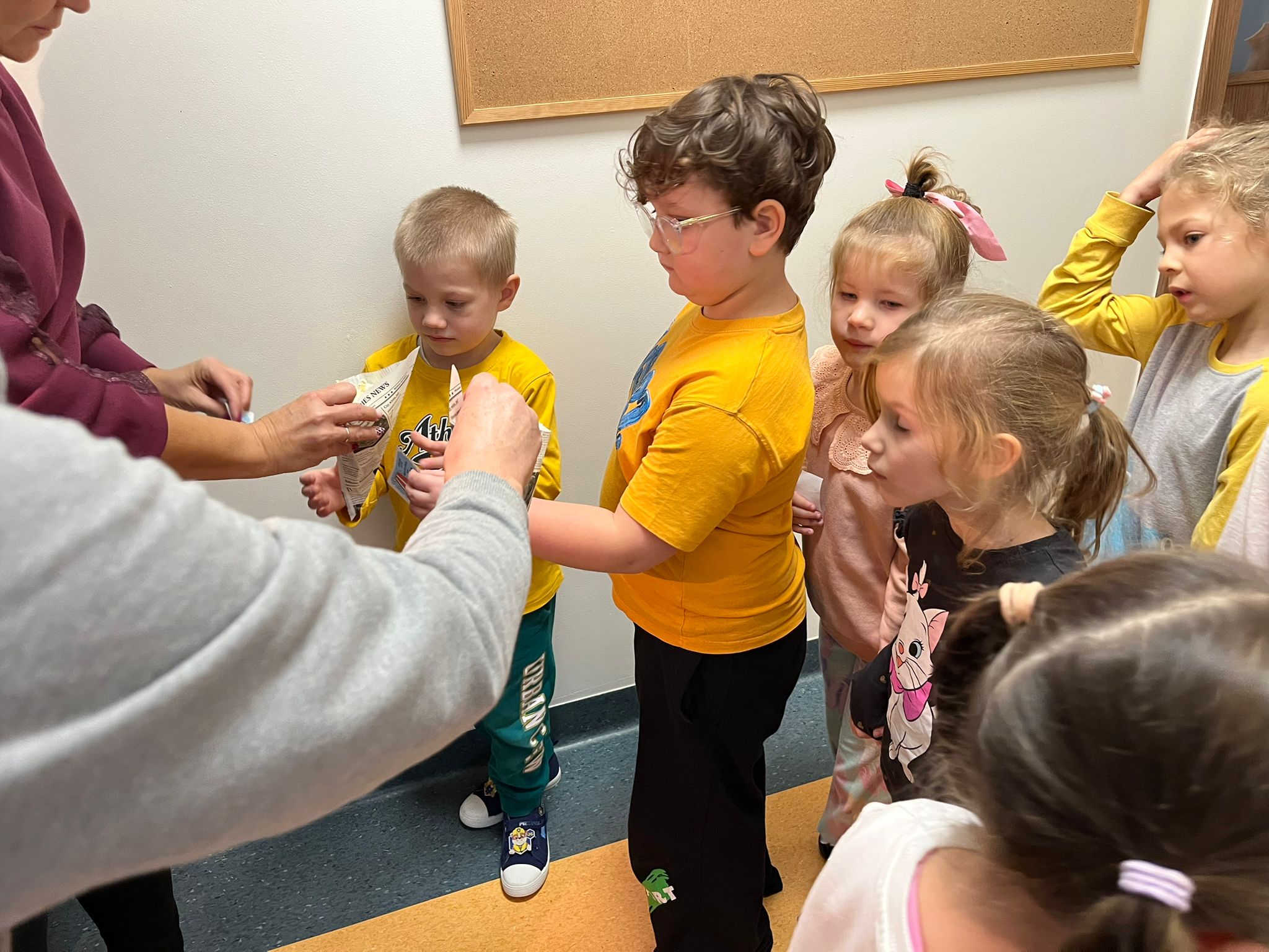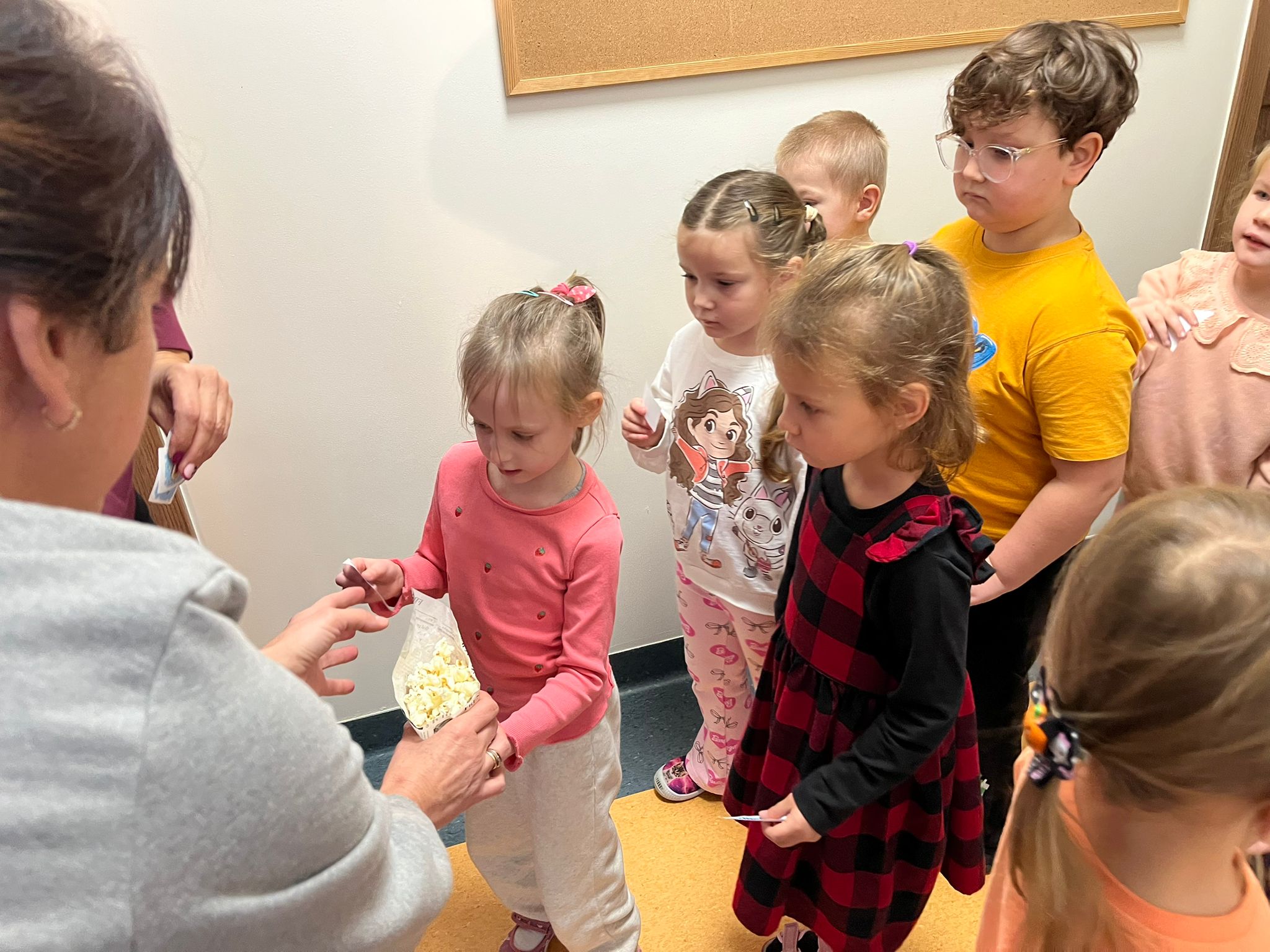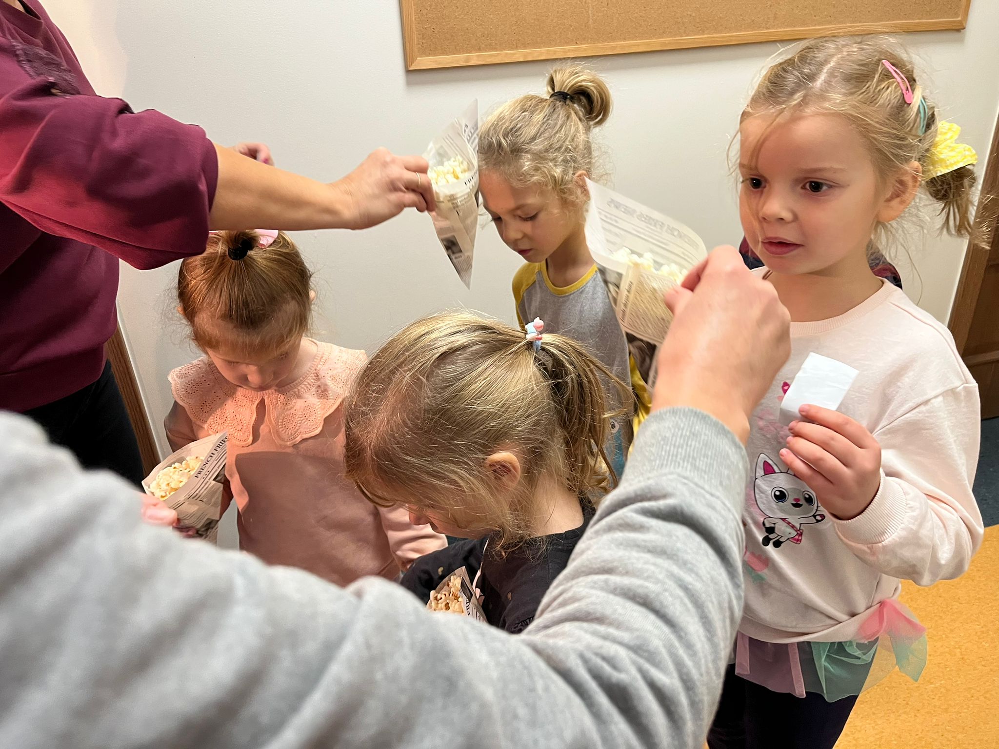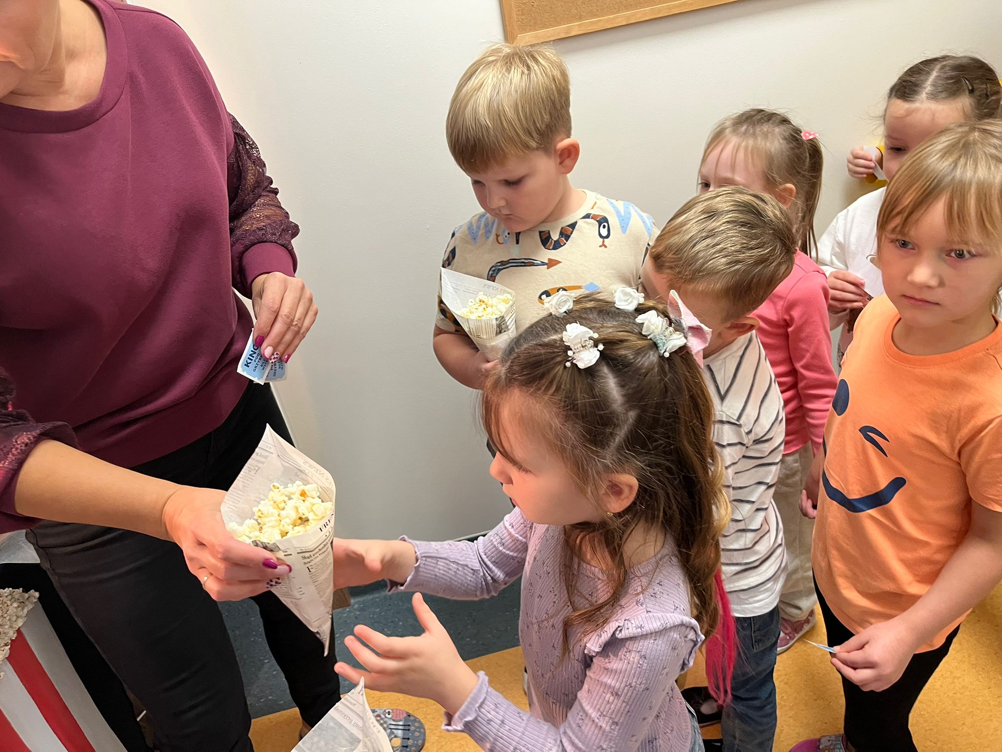W poniedziałek dzieci otrzymały bilety wstępu do kina " Pod Grzybkiem". Każdy uczestnik po przejściu Alei Gwiazd otrzymał porcje pysznego popcornu. To był bardzo dobry początek tygodnia.
