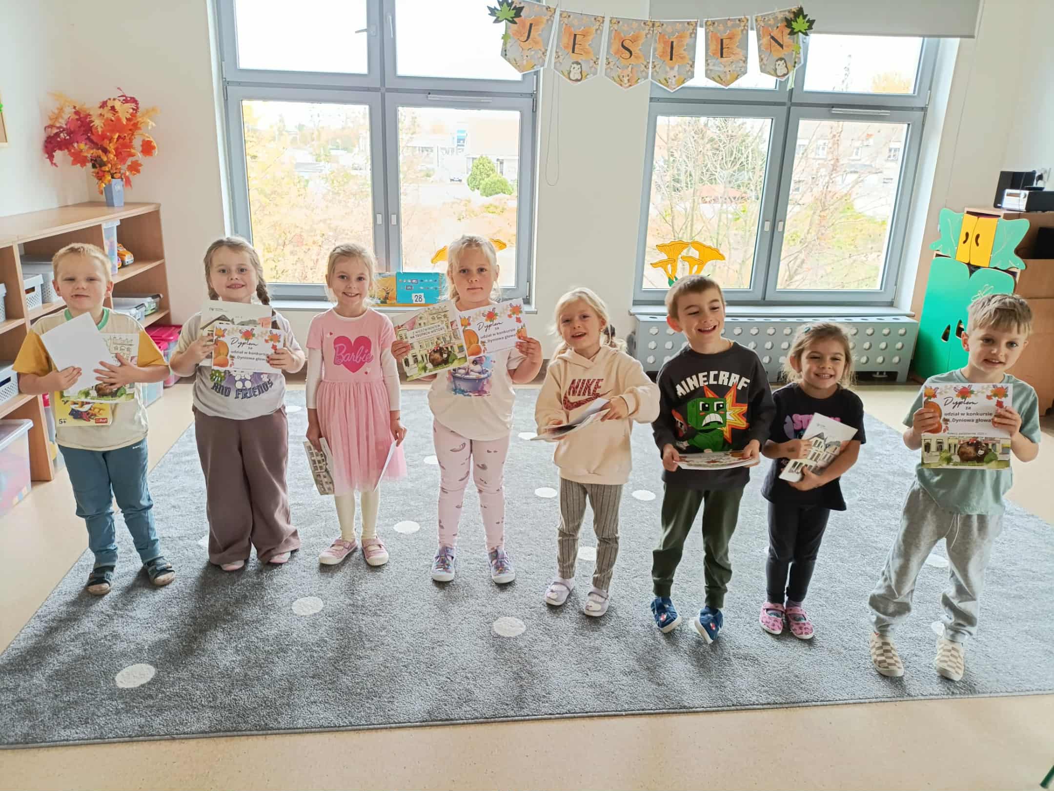 W naszym przedszkolu odbył się konkurs na stworzenie czegoś niesamowitego.. z dyni! Ciasteczkowe potwory, bajkowe karoce, przepiękne wazony - pomysłów było całe mnóstwo! Dzieci z naszej grupy, które wykonały dynie, otrzymały dyplom oraz mały upominek, a Kacper zdobył dodatkowo wyróżnienie! Gratulujemy wszystkim uczestnikom! :)