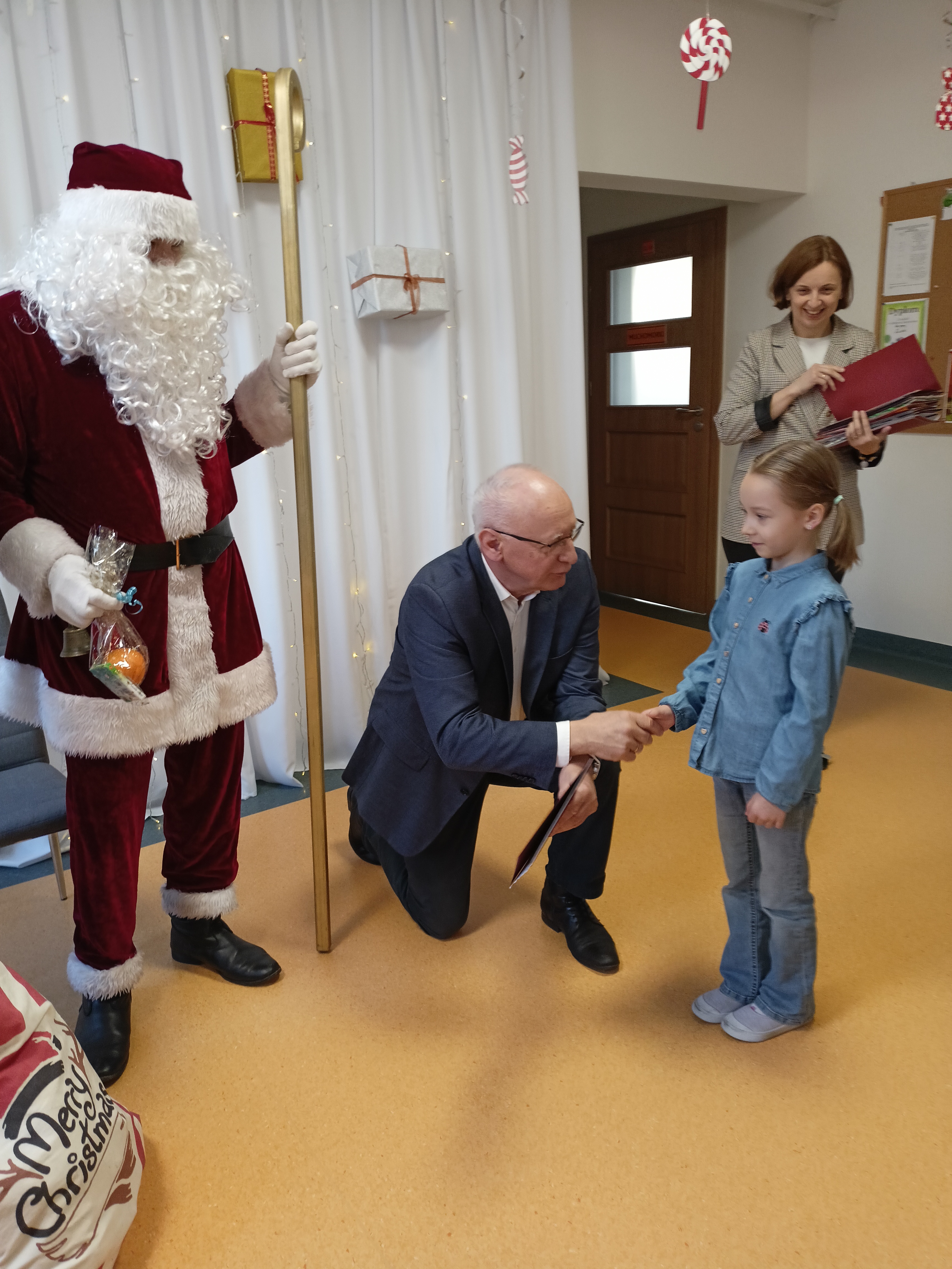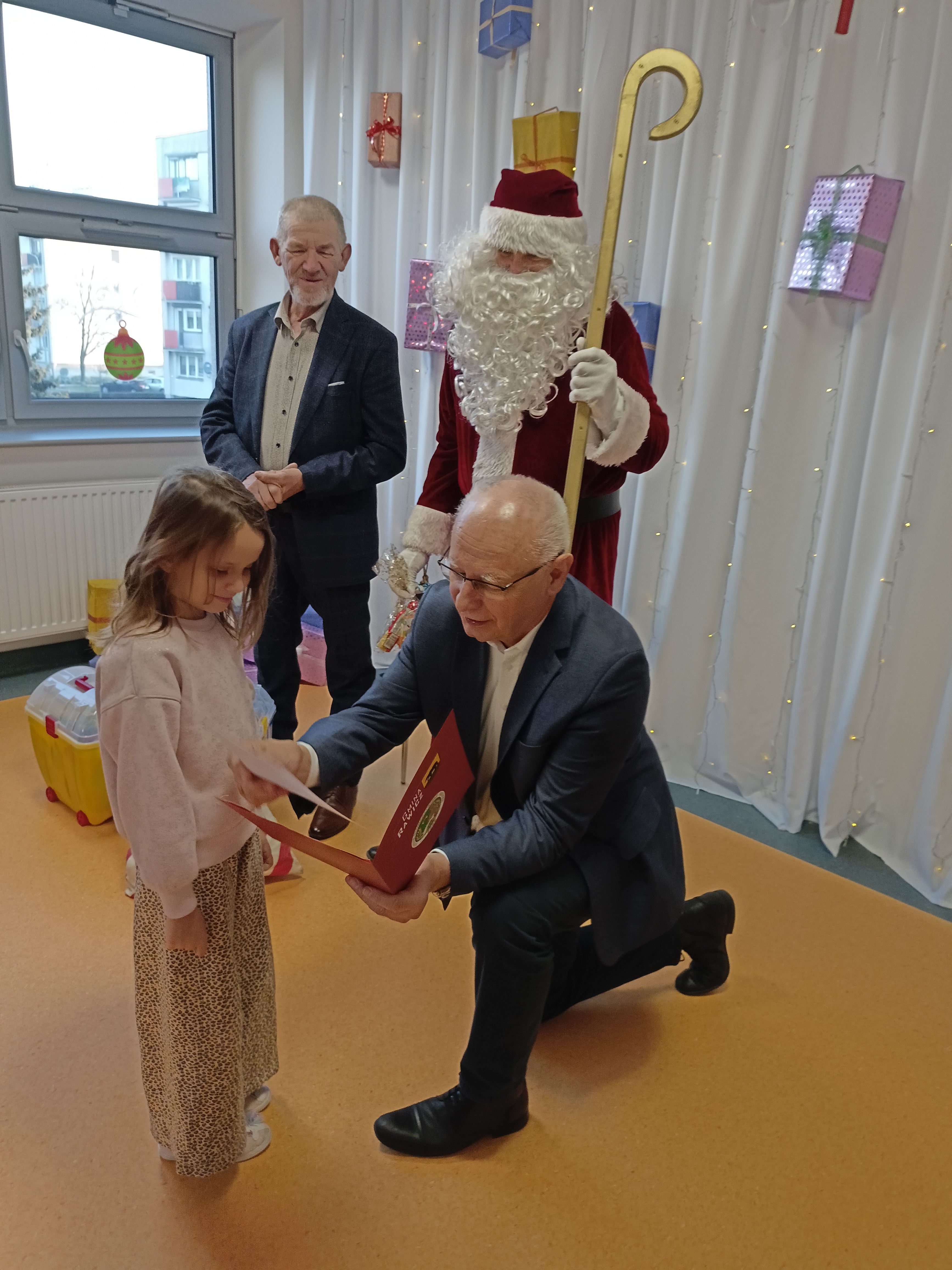 Nasze przedszkole odwiedził Święty Mikołaj z panem burmistrzem Grzegorzem Kubikiem oraz panem Stanisławem Projsem, by wręczyć nagrody laureatom konkursu ,,Mój ulubiony zwierzak " zorganizowanego przez Rawickie Stowarzyszenie Hodowców Gołębi Rasowych, Drobiu Ozdobnego i Drobnego Inwentarza. Gratulujemy! Brawo ;-)