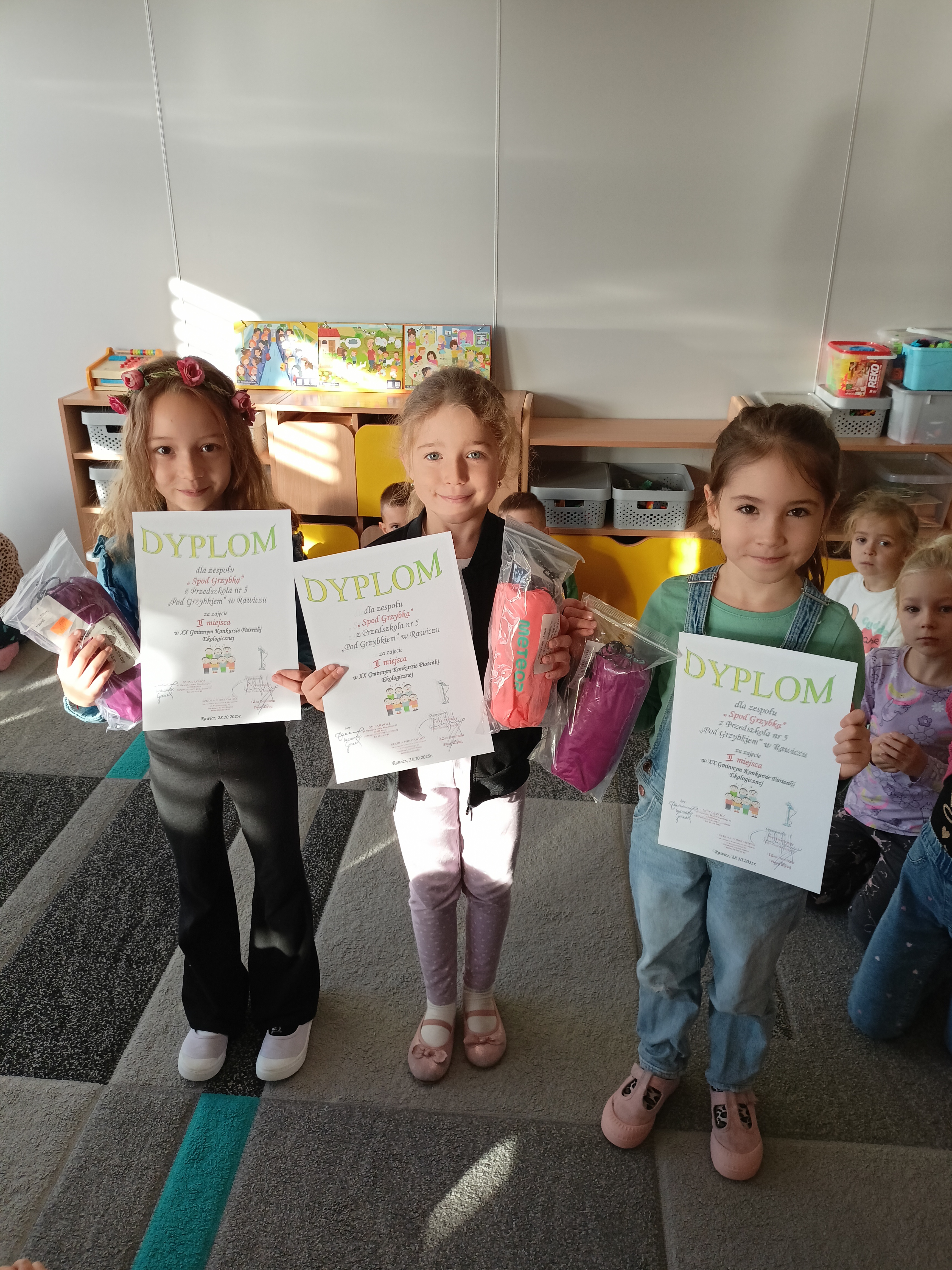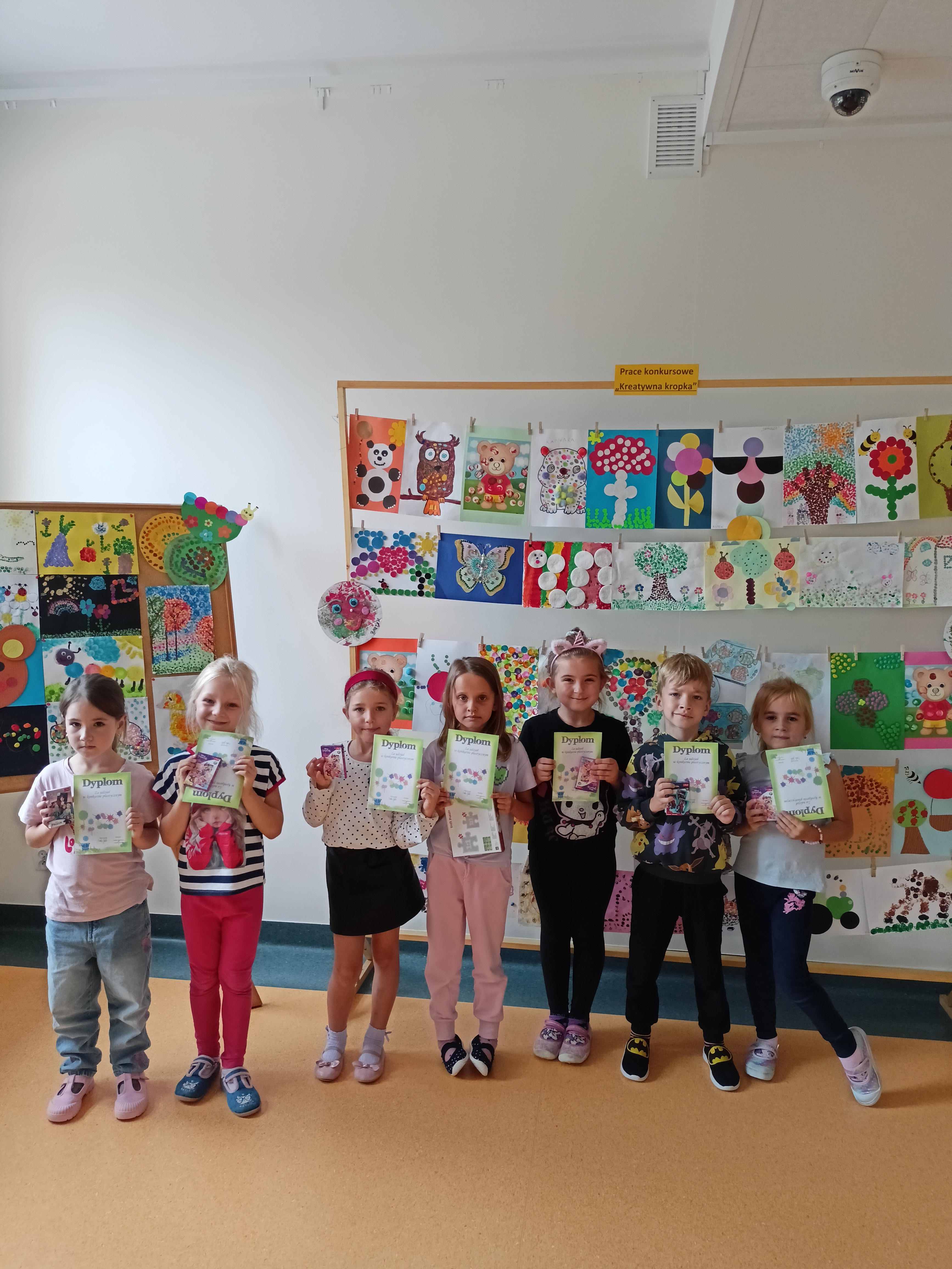 Od września dzieci wzięły udział w konkursach: ,,Kreatywna kropka'', ,,Dyniową głową", ,,XX Gminny Konkurs Piosenki Ekologicznej", ,,Najpiękniejsza kartka bożonarodzeniowa". Wszystkim dziękujemy za udział i serdecznie gratulujemy :)